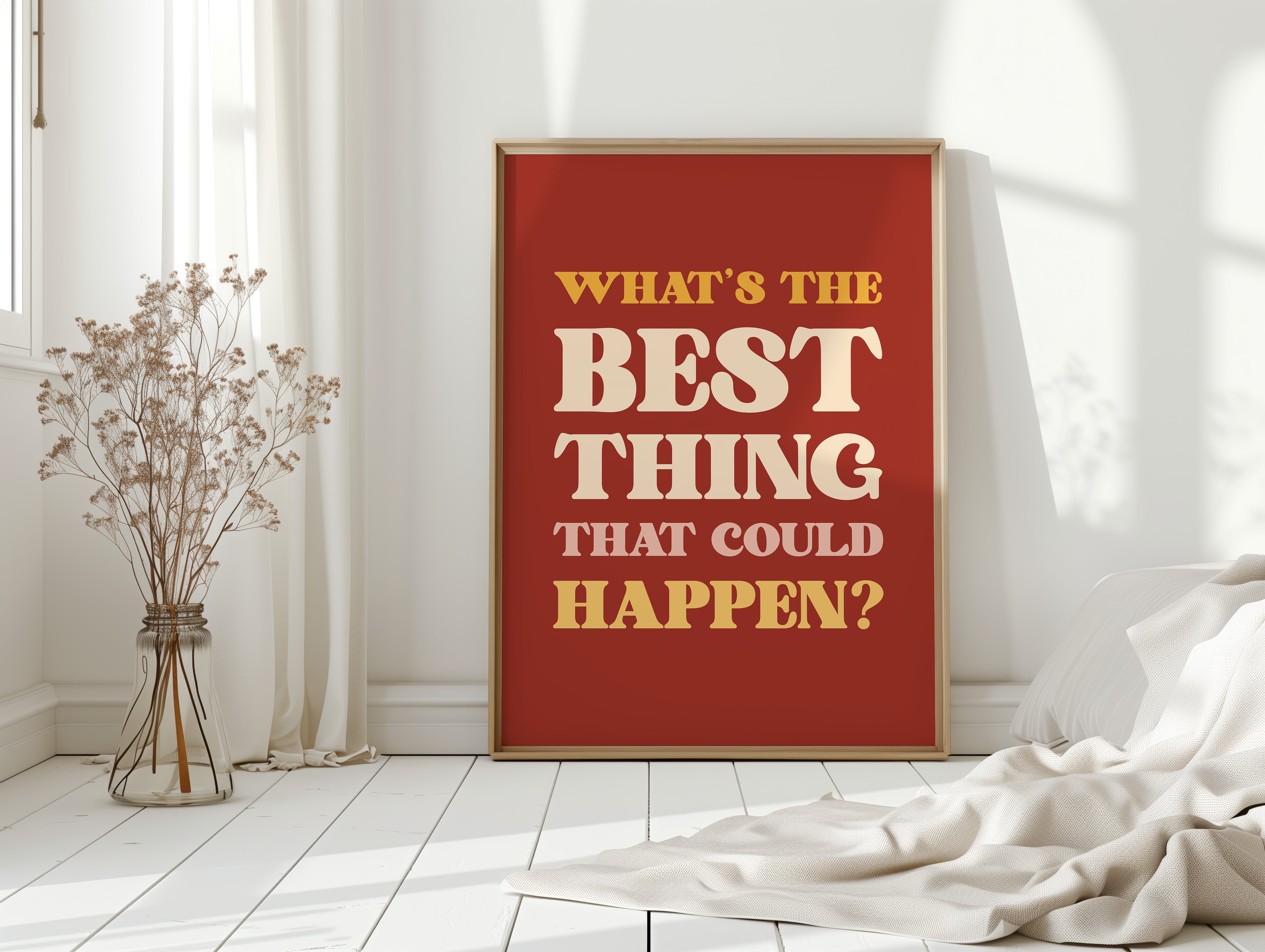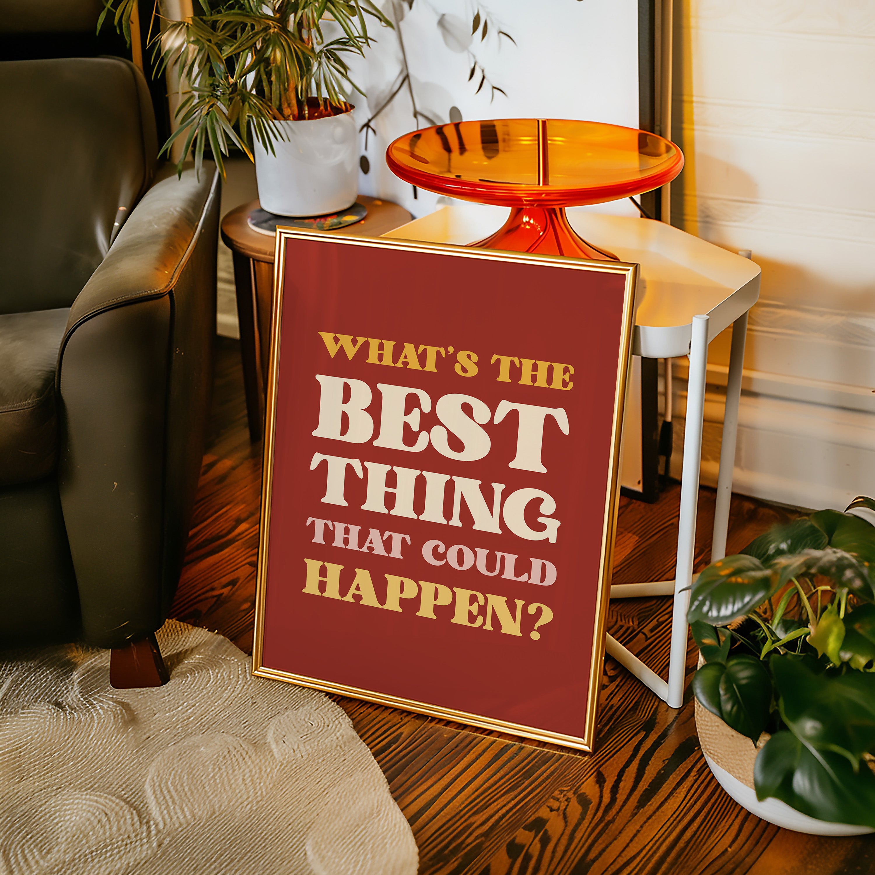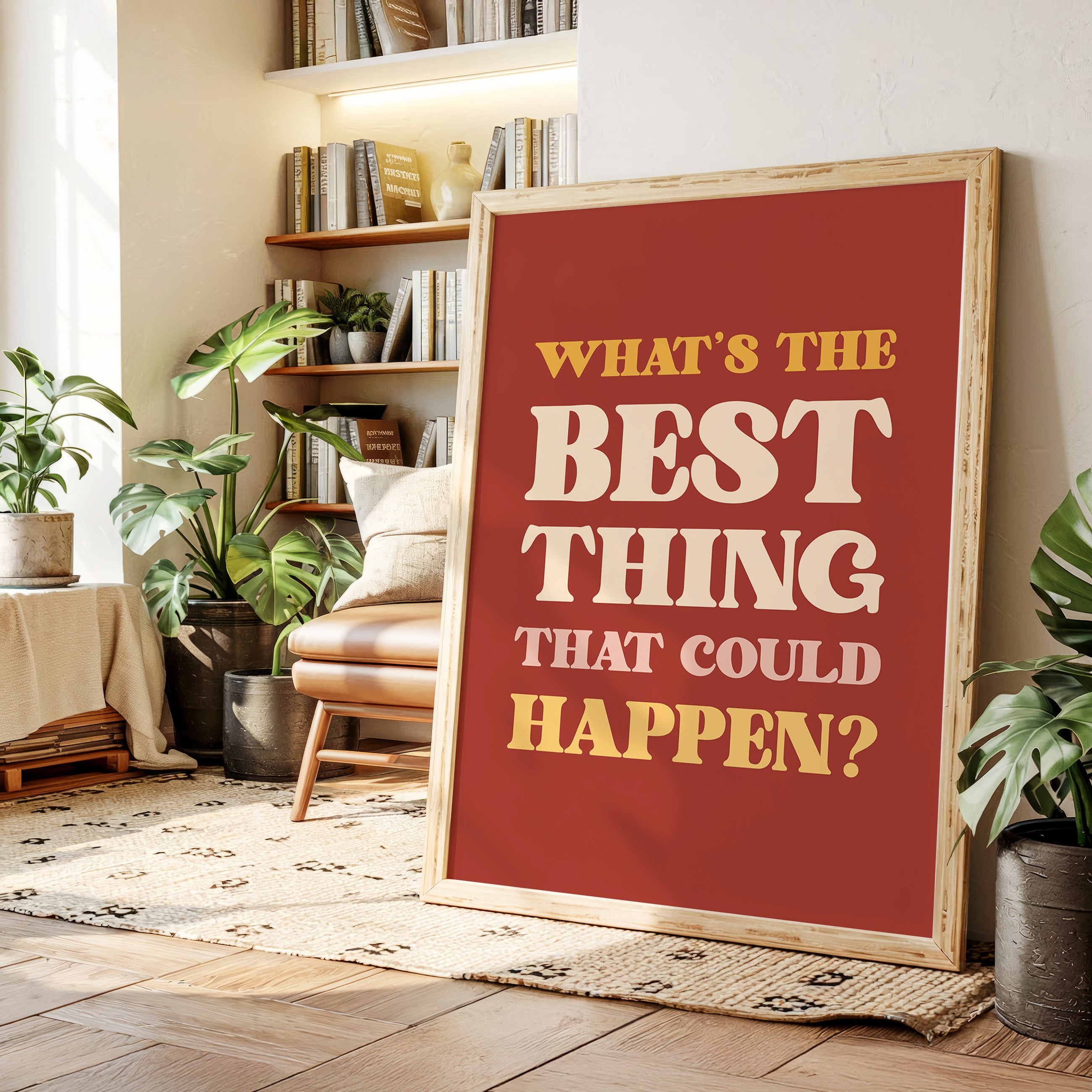 A question hangs in the air like the first rays of sunrise, filled with anticipation and wonder. This piece from our Contemporary collection captures the bold optimism of modern typography against rich earthen tones. The interplay of golden yellows and warm terracotta creates a dialogue between hope and possibility, while graduated text sizes build dramatic tension that draws the eye upward. This statement piece radiates positive energy, perfect for an inspiring home office or creative workspace where big ideas take flight. Let it serve as a daily reminder that amazing things await just around the corner.
