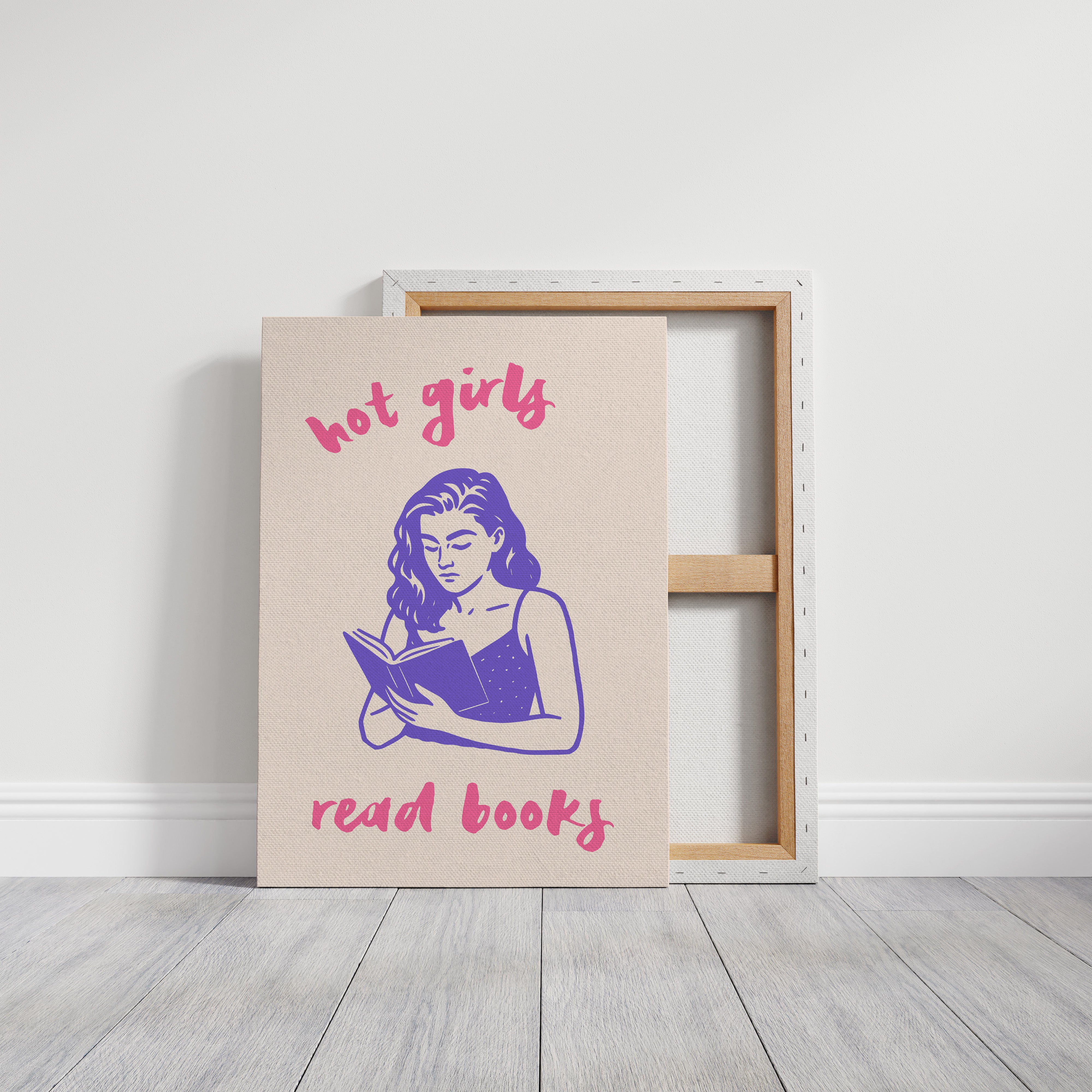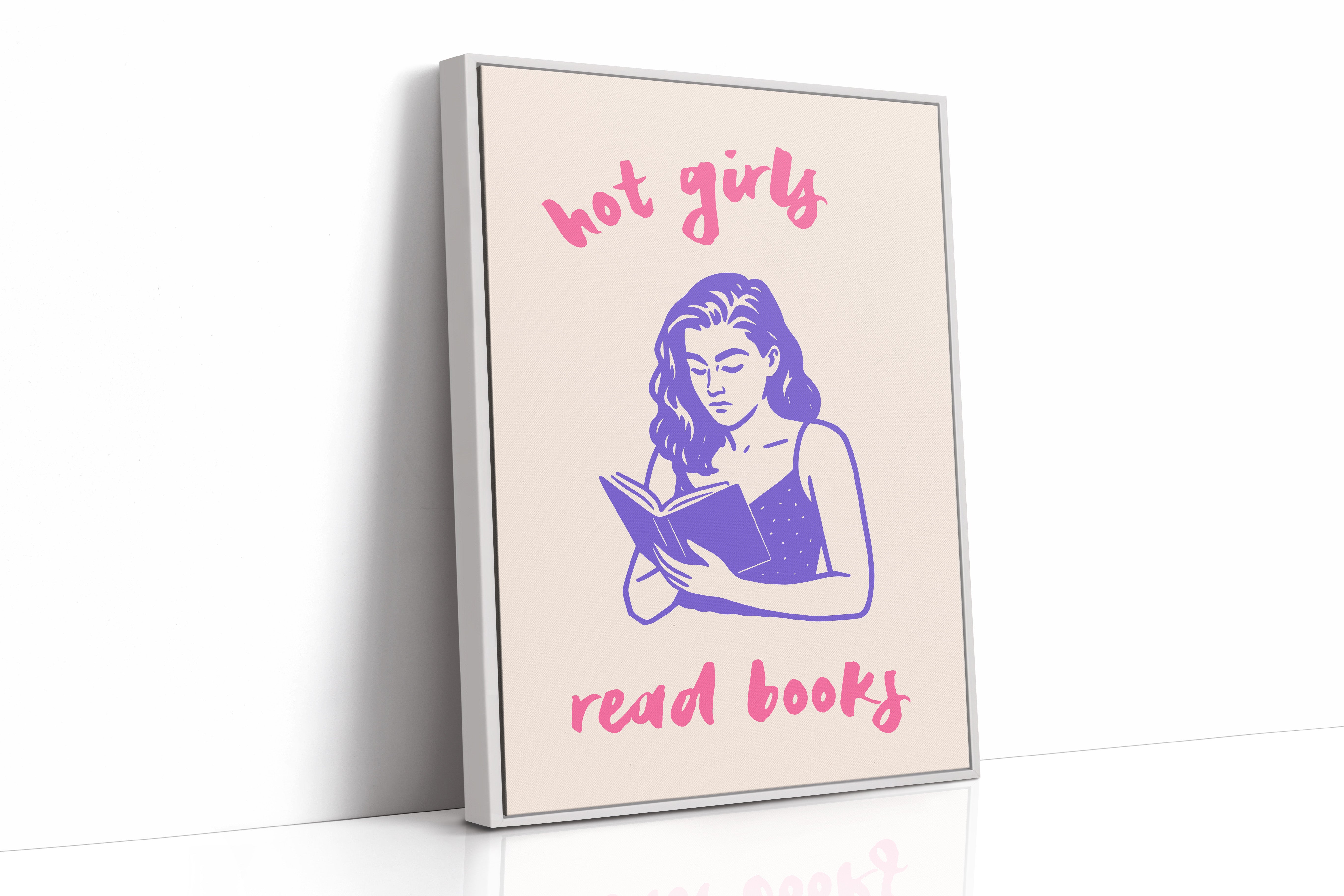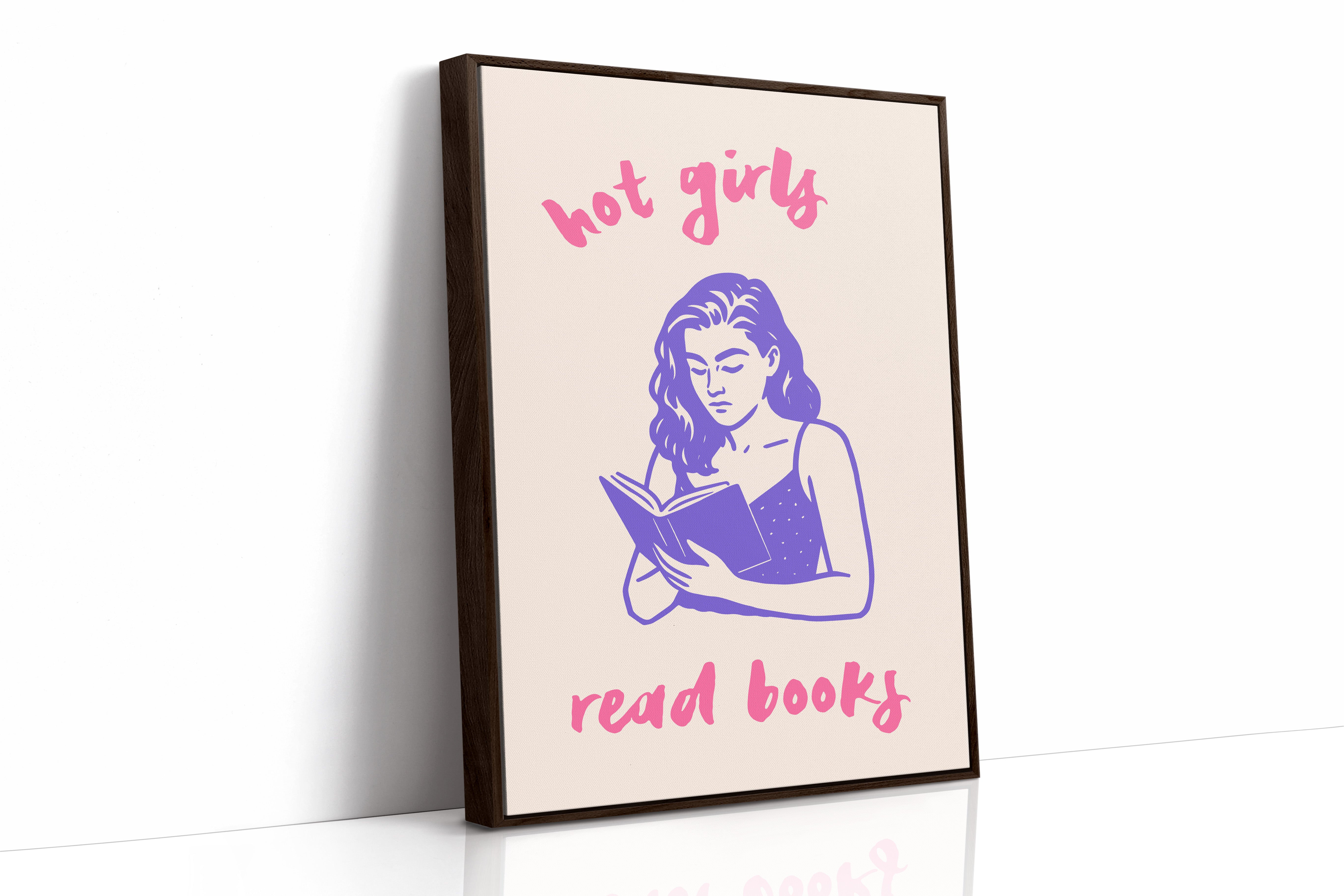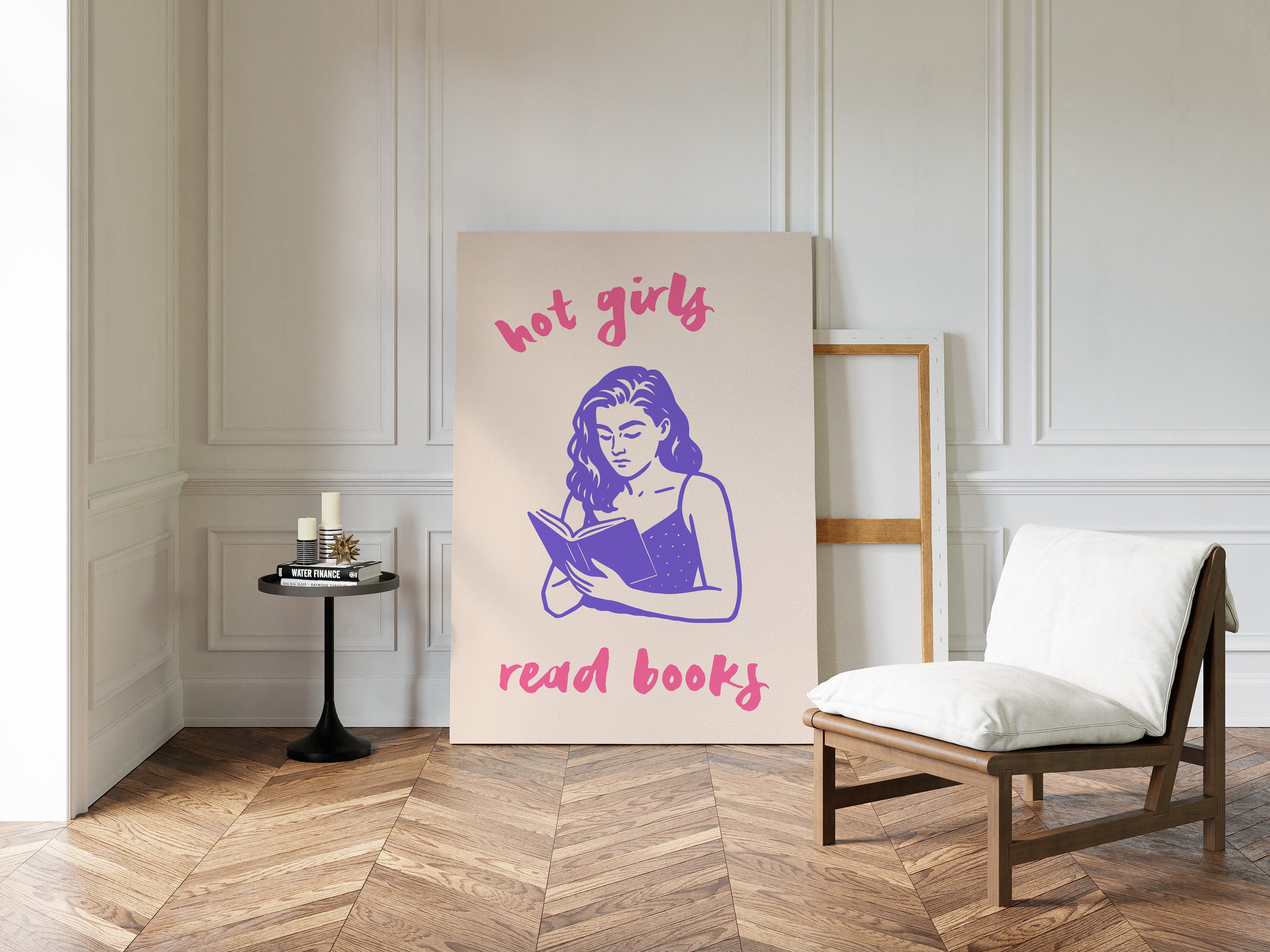 A gentle moment unfolds in shades of violet and pink, capturing the intimate communion between reader and story. The illustration's minimalist style emphasizes flowing lines and thoughtful composition, with a purple figure absorbed in the pages of an open book. The soft peach background creates a warm, inviting atmosphere that celebrates literary devotion and quiet contemplation. This piece speaks to the timeless joy of getting lost in a good book, with its modern typography adding a contemporary feminist edge. Perfect for a reading nook, home library, or any space dedicated to literary pursuits and peaceful reflection.
