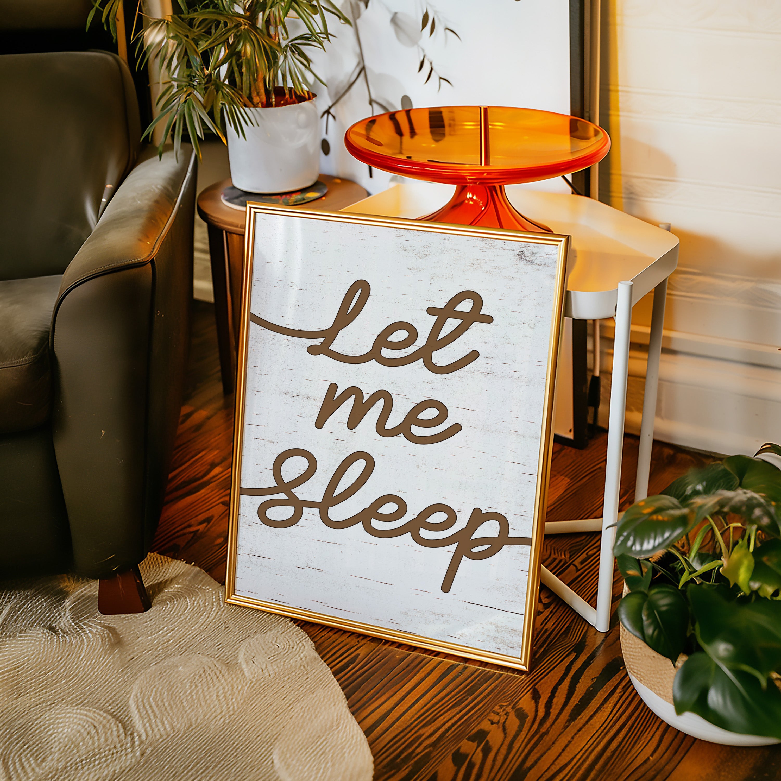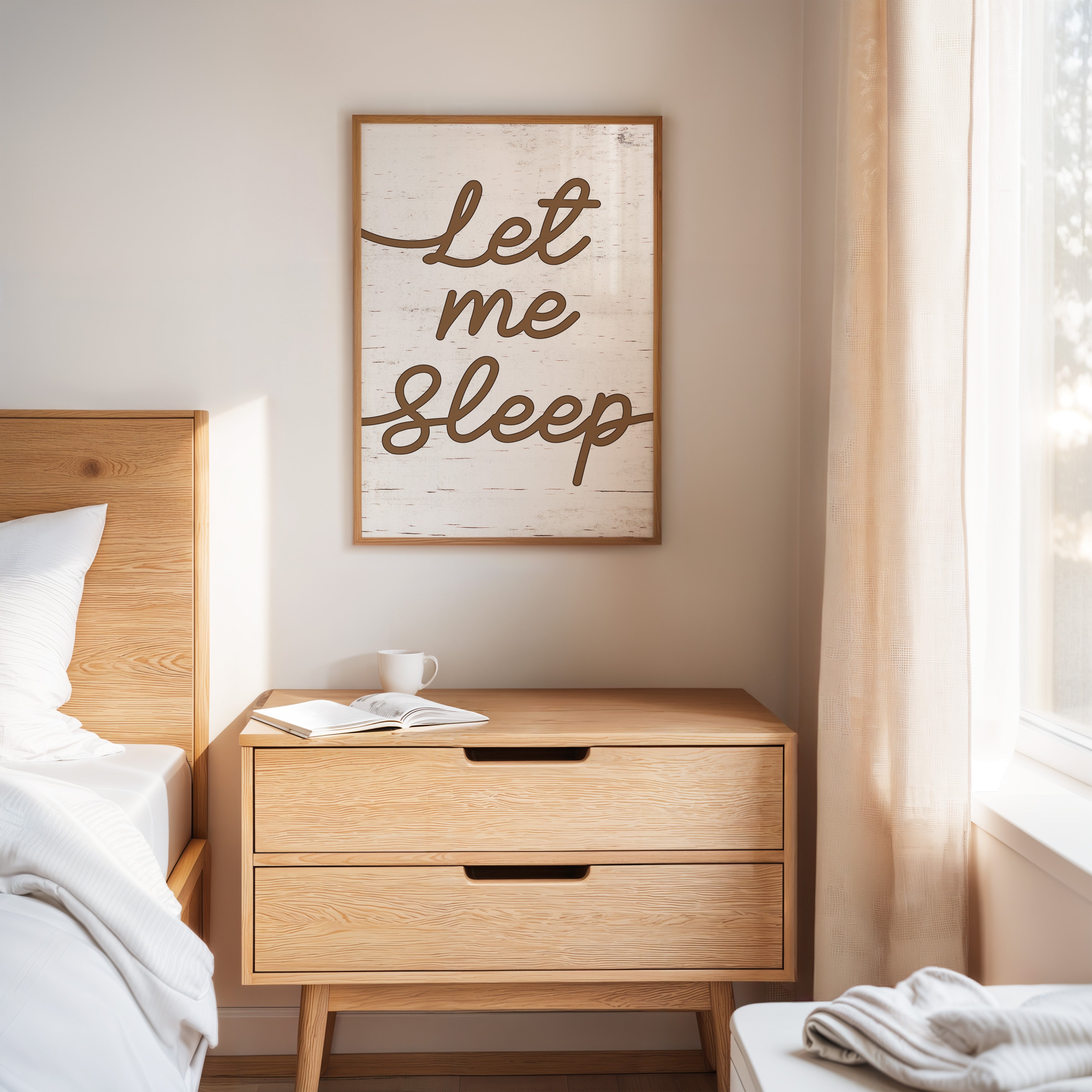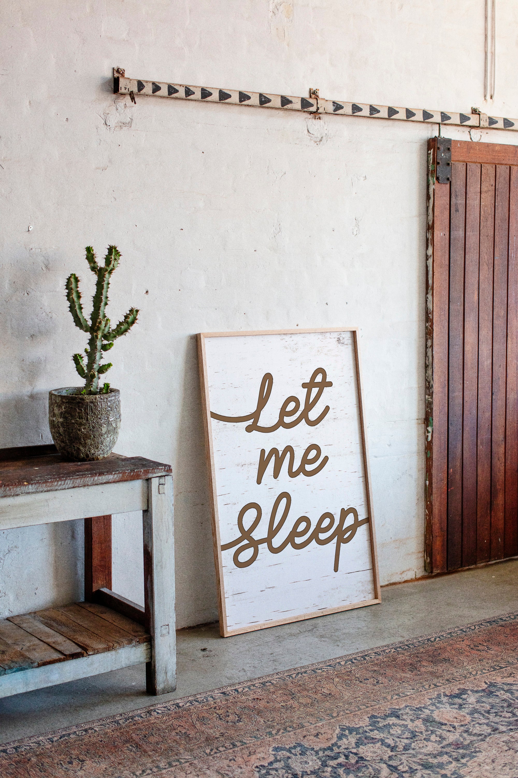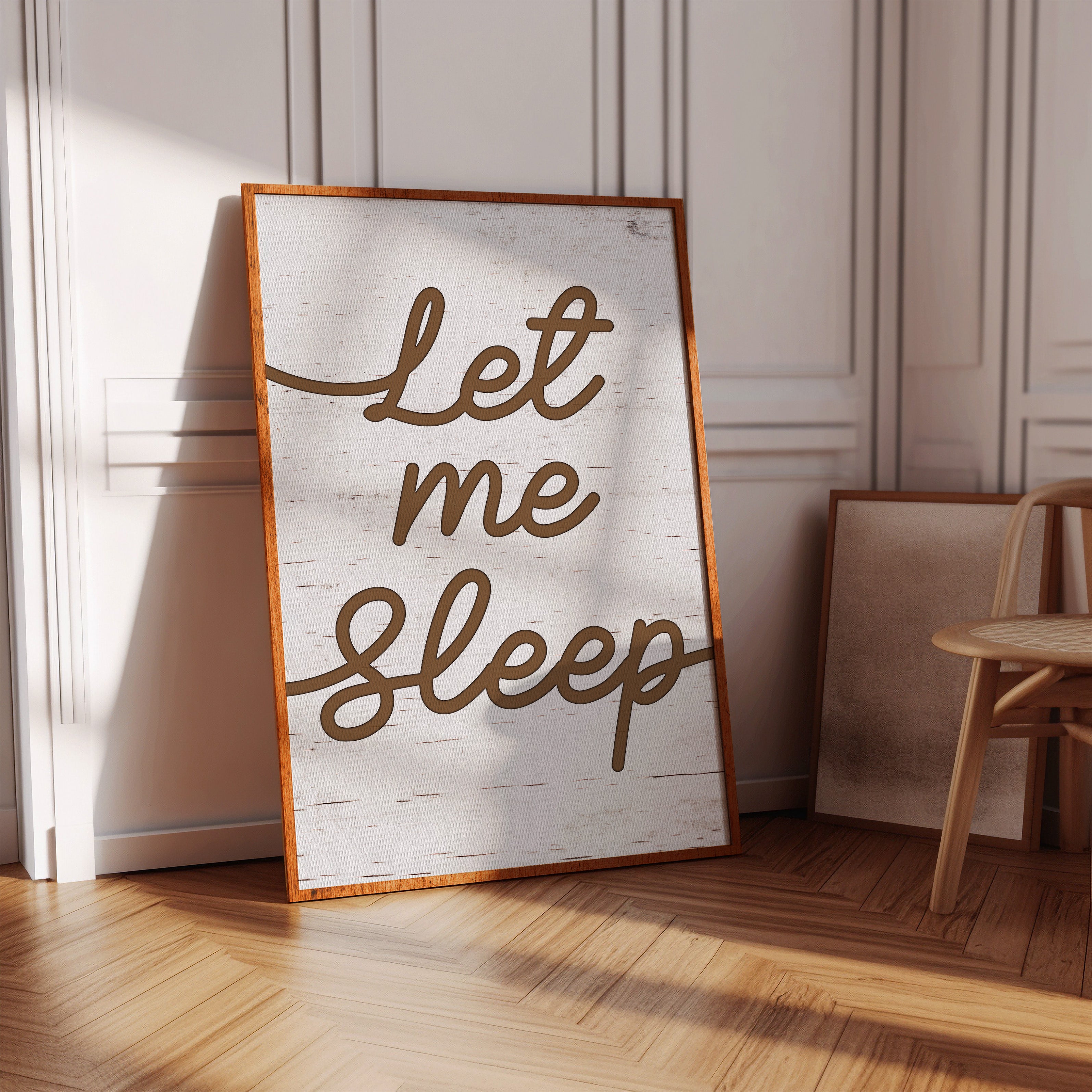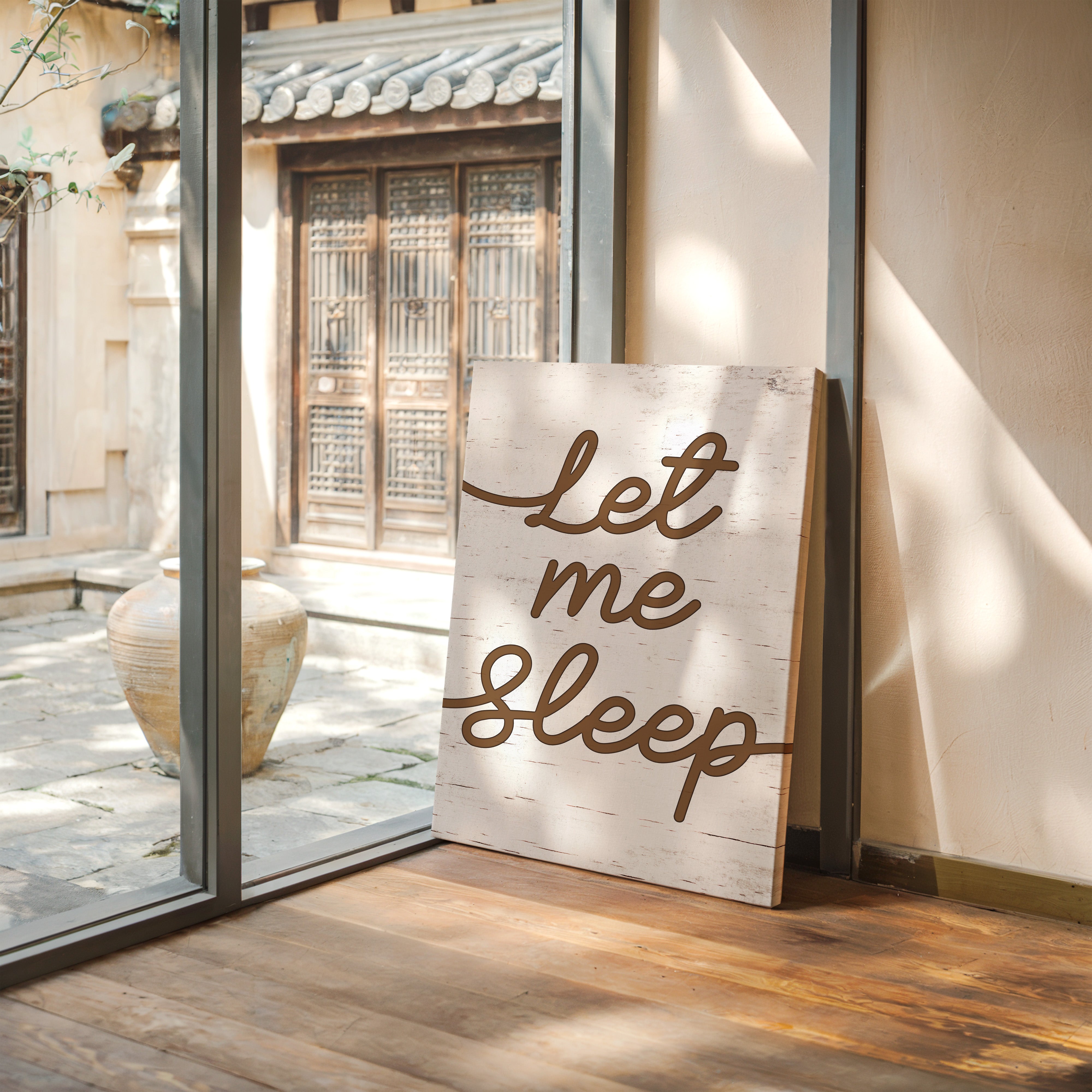 Morning light spills across crisp linens, while gentle typography speaks a universal desire for rest and peace. This contemporary typographic piece brings minimalist sophistication to modern spaces. The warm brown lettering against weathered white creates an intimate dialogue between art and viewer, while the distressed texture adds subtle depth to the simple message. The clean lines and honest sentiment transform everyday text into a meditative focal point, perfect for creating a tranquil atmosphere. Ideal for bringing a touch of calm to a bedroom, guest room, or any space where rest is cherished. The piece serves as a gentle reminder to slow down and honor the sacred ritual of rest.