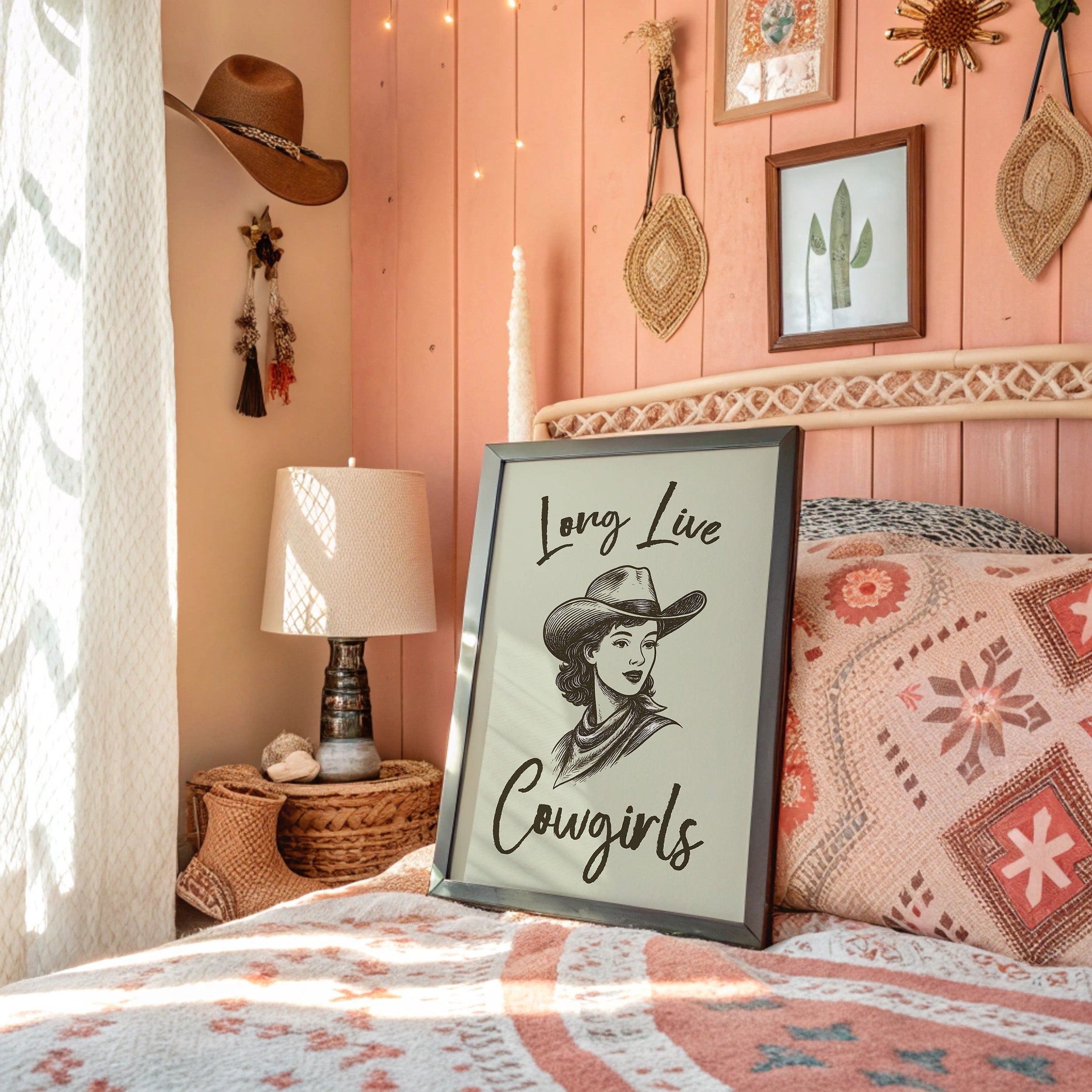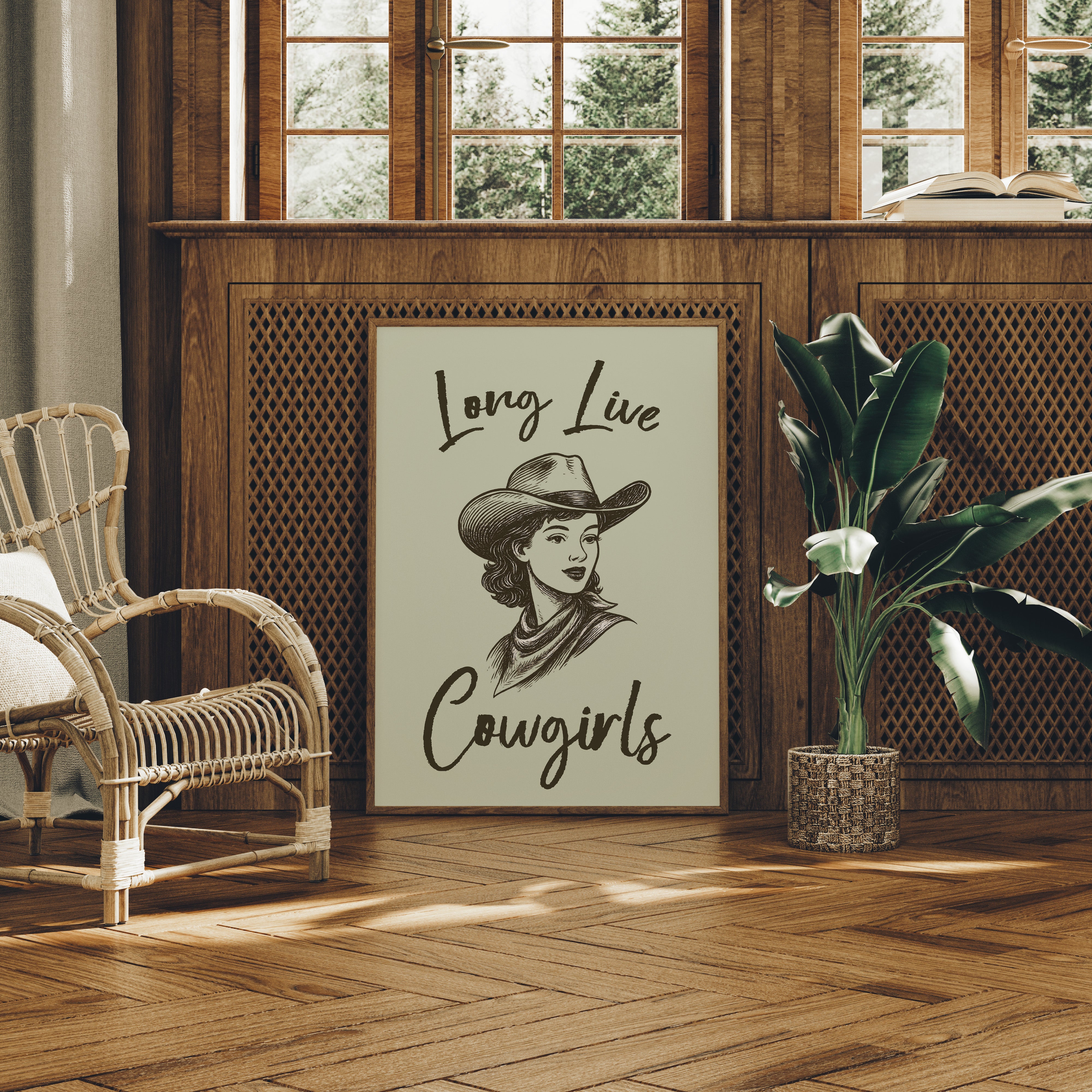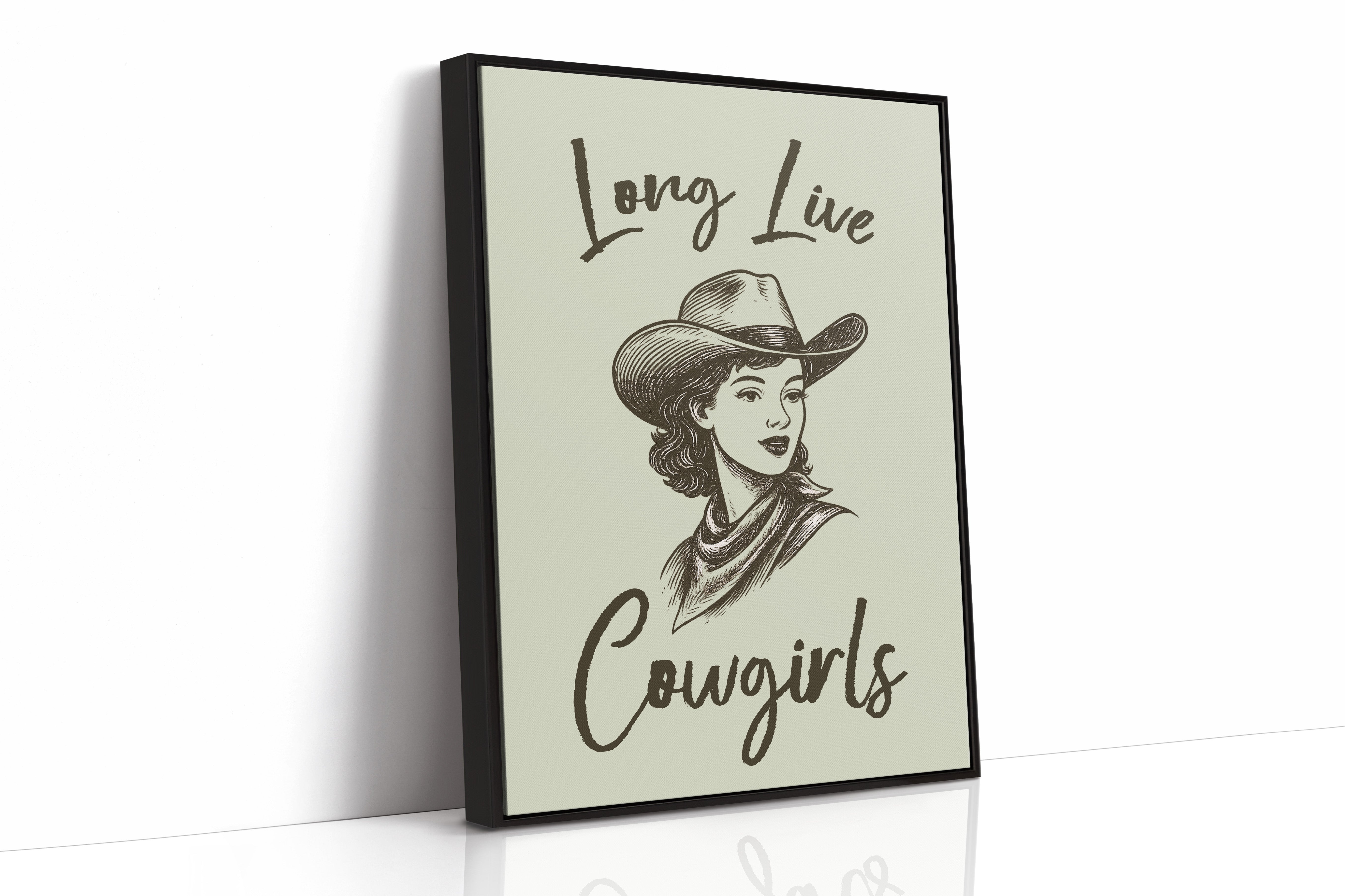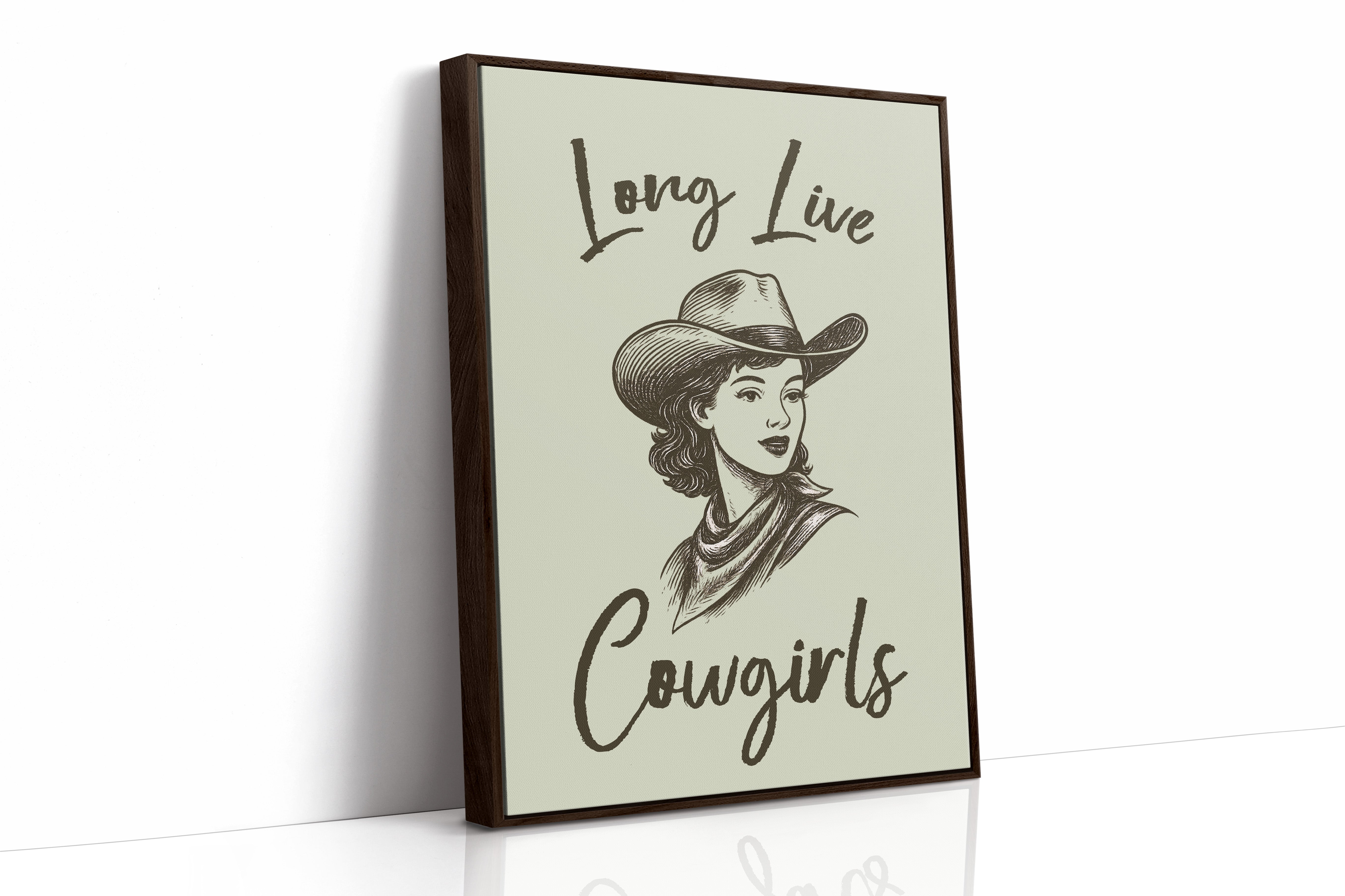 Brushstrokes dance across parchment, capturing the bold spirit of the American West in this vintage-inspired illustration. A confident cowgirl gazes ahead, her classic cowboy hat and bandana framing features that speak of determination and grace. The monochromatic sketch style brings timeless elegance to the portrait, while handwritten text adds a personal, intimate touch. Perfect for adding character to a modern farmhouse kitchen or bringing Western charm to a home office space.
