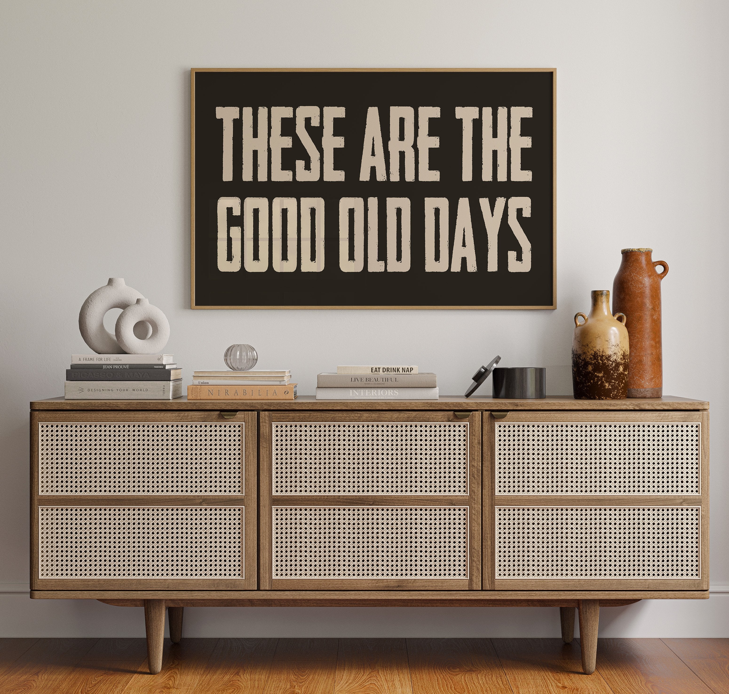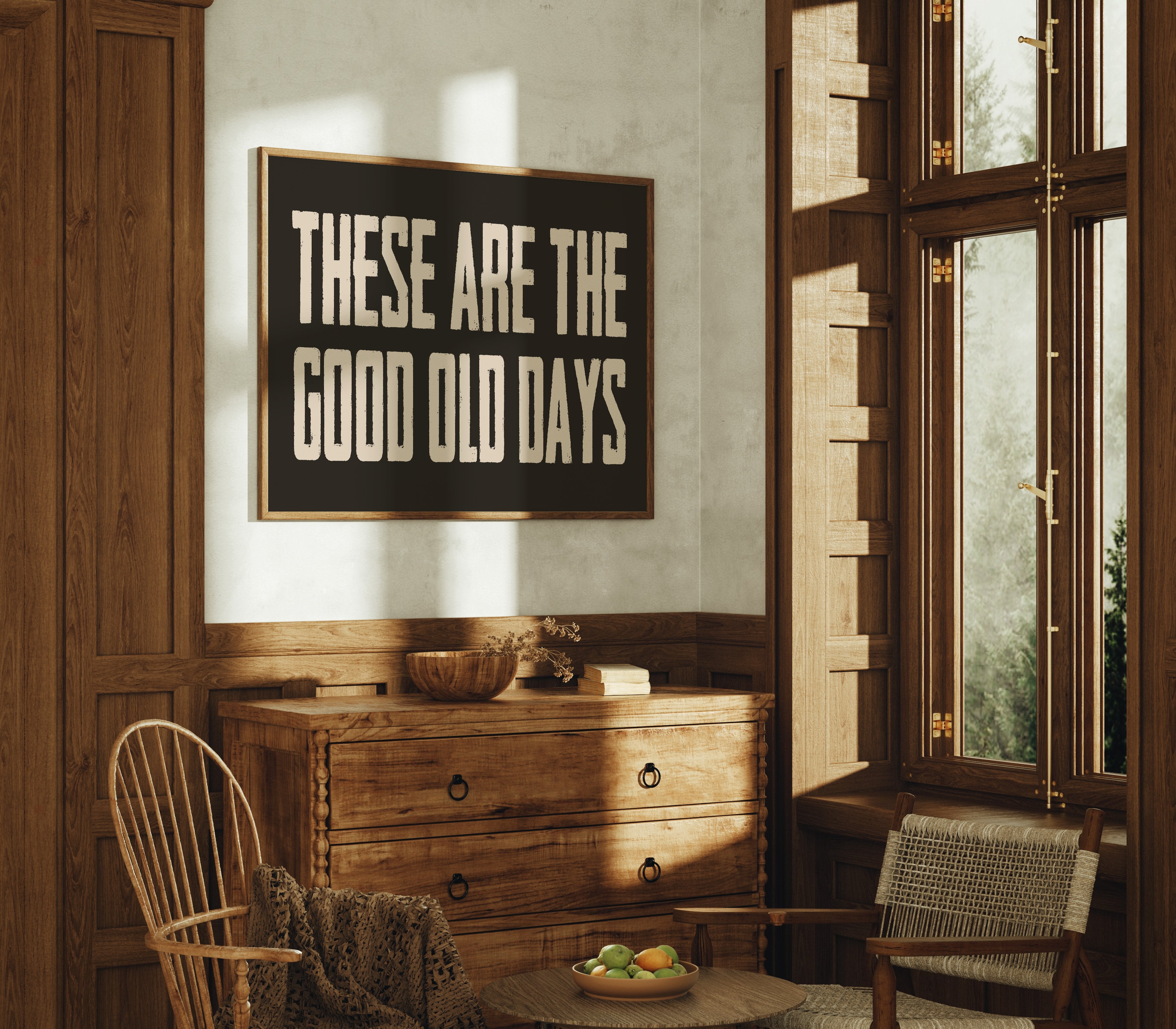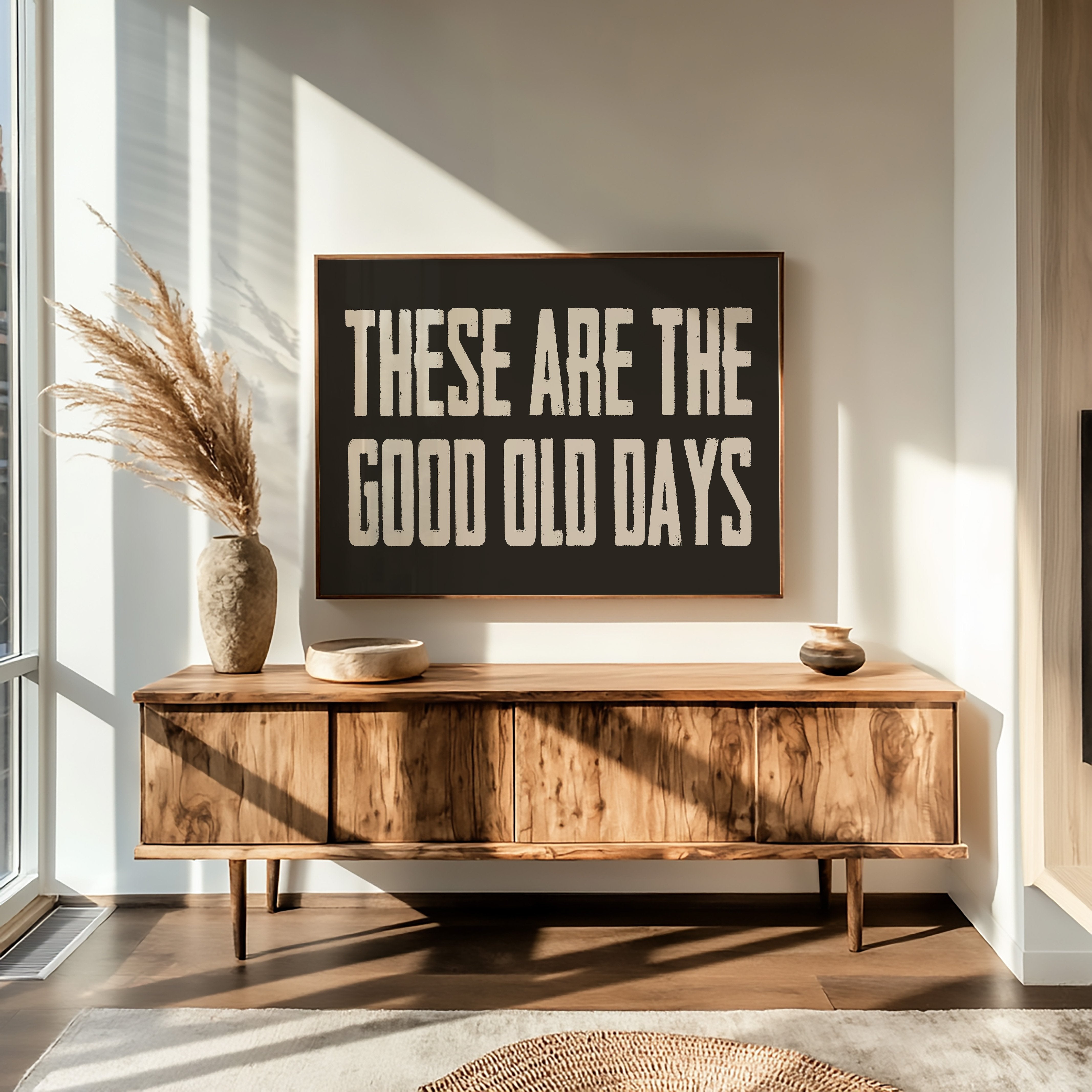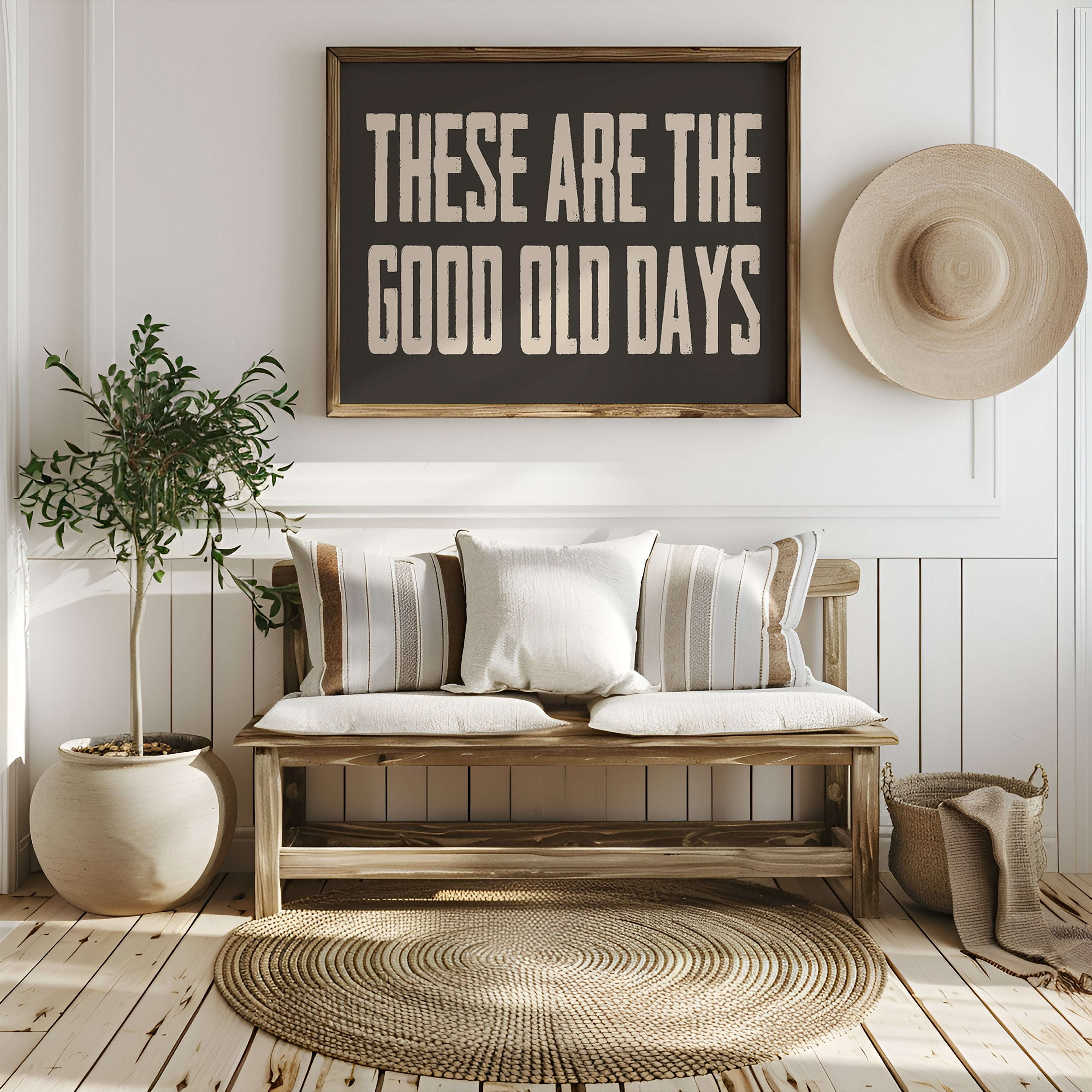 Nostalgia hangs in the air like the scent of rain on warm pavement. Bold, weathered typography creates a statement that resonates with the soula reminder of simpler moments when joy was found in unhurried conversations and sunset drives. The stark contrast between cream lettering and deep brown background evokes the feel of vintage signage, where messages were meant to last generations rather than moments. This statement piece brings character to a modern farmhouse kitchen, industrial loft space, or as a focal point in a reading nook where memories are cherished and new ones begin.