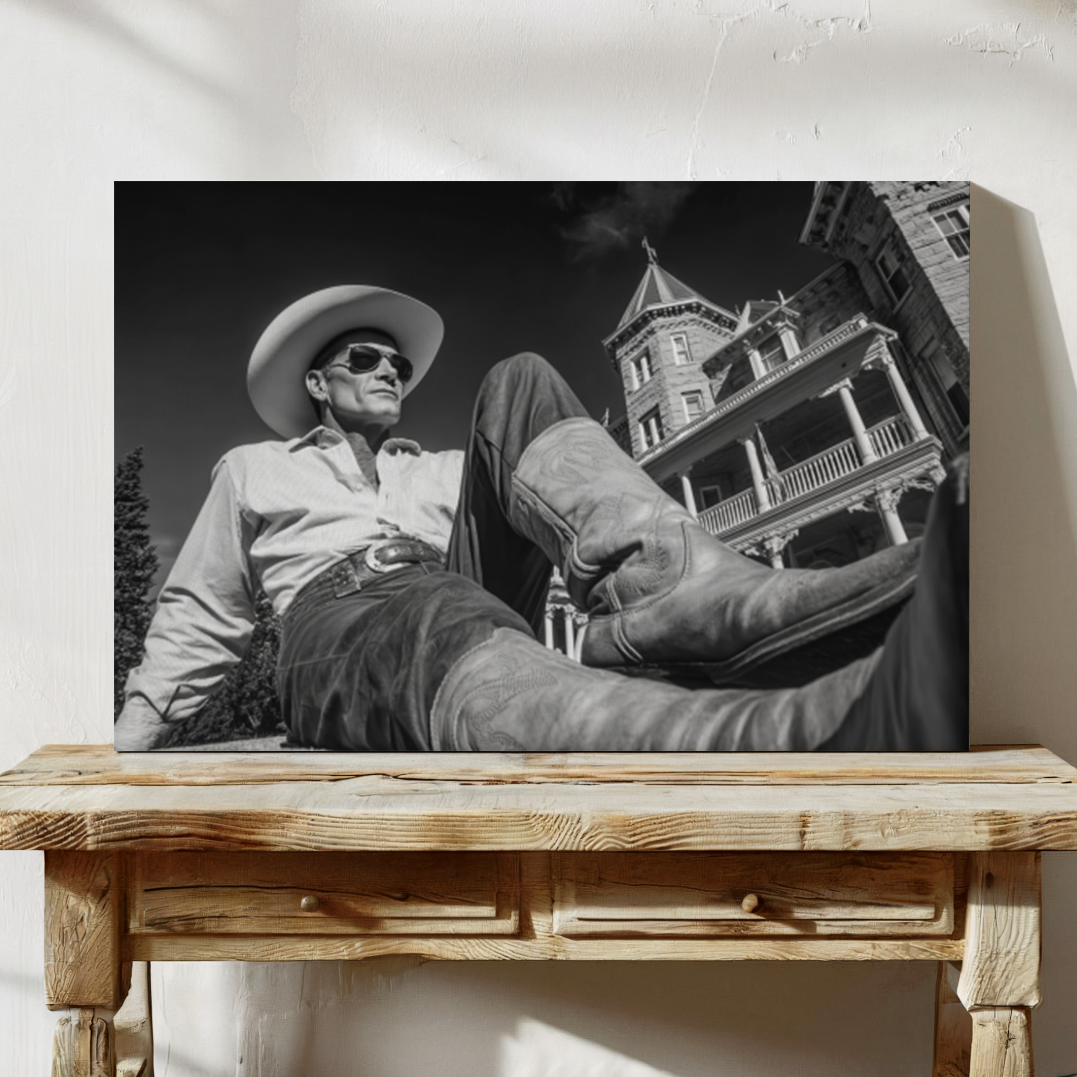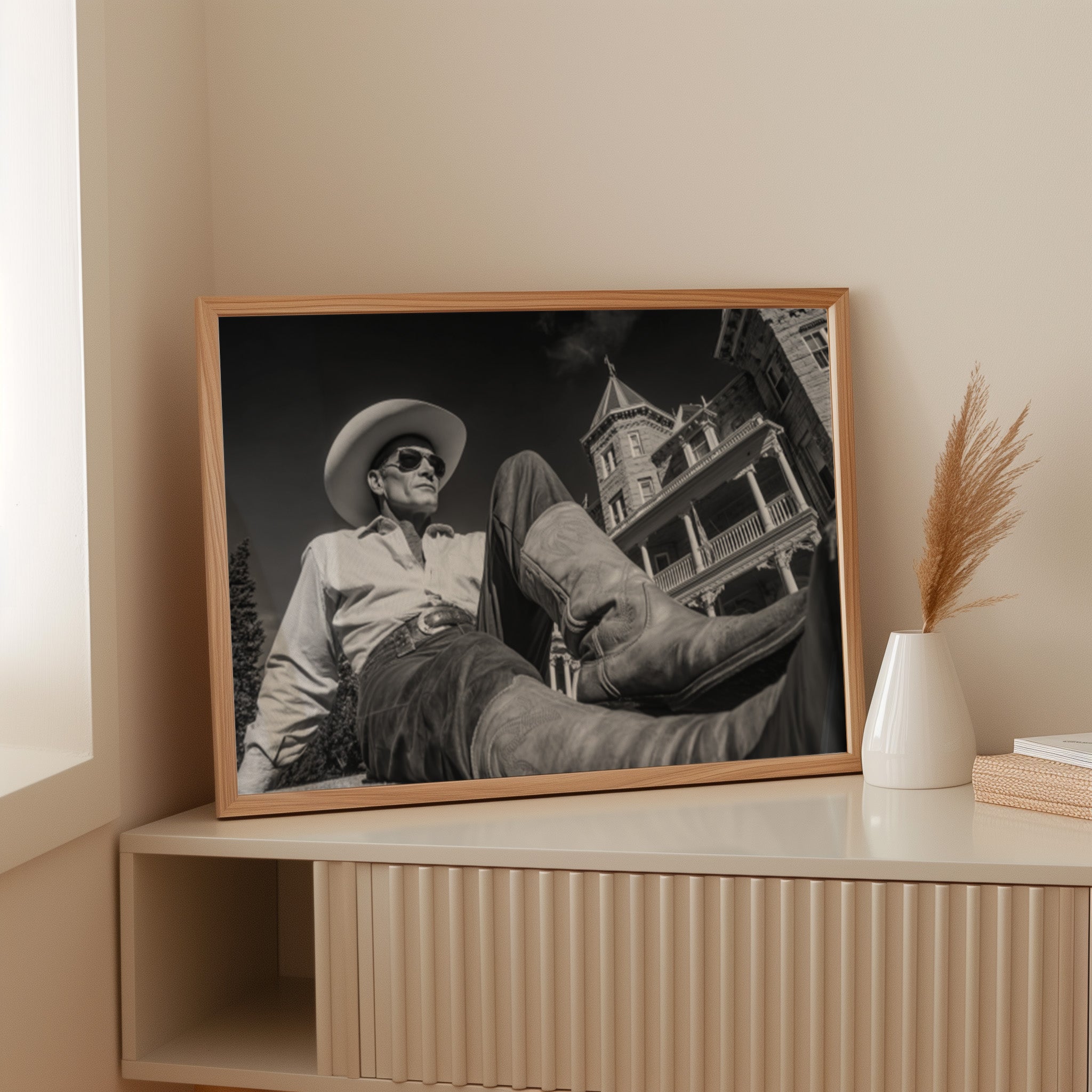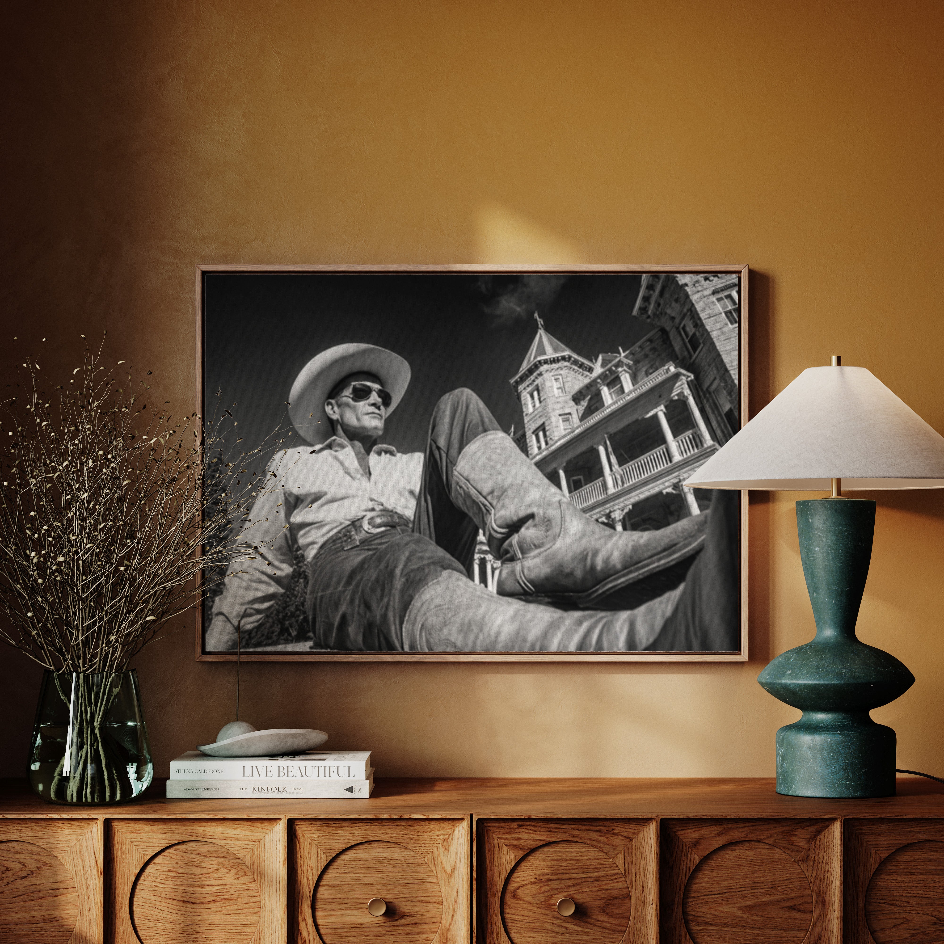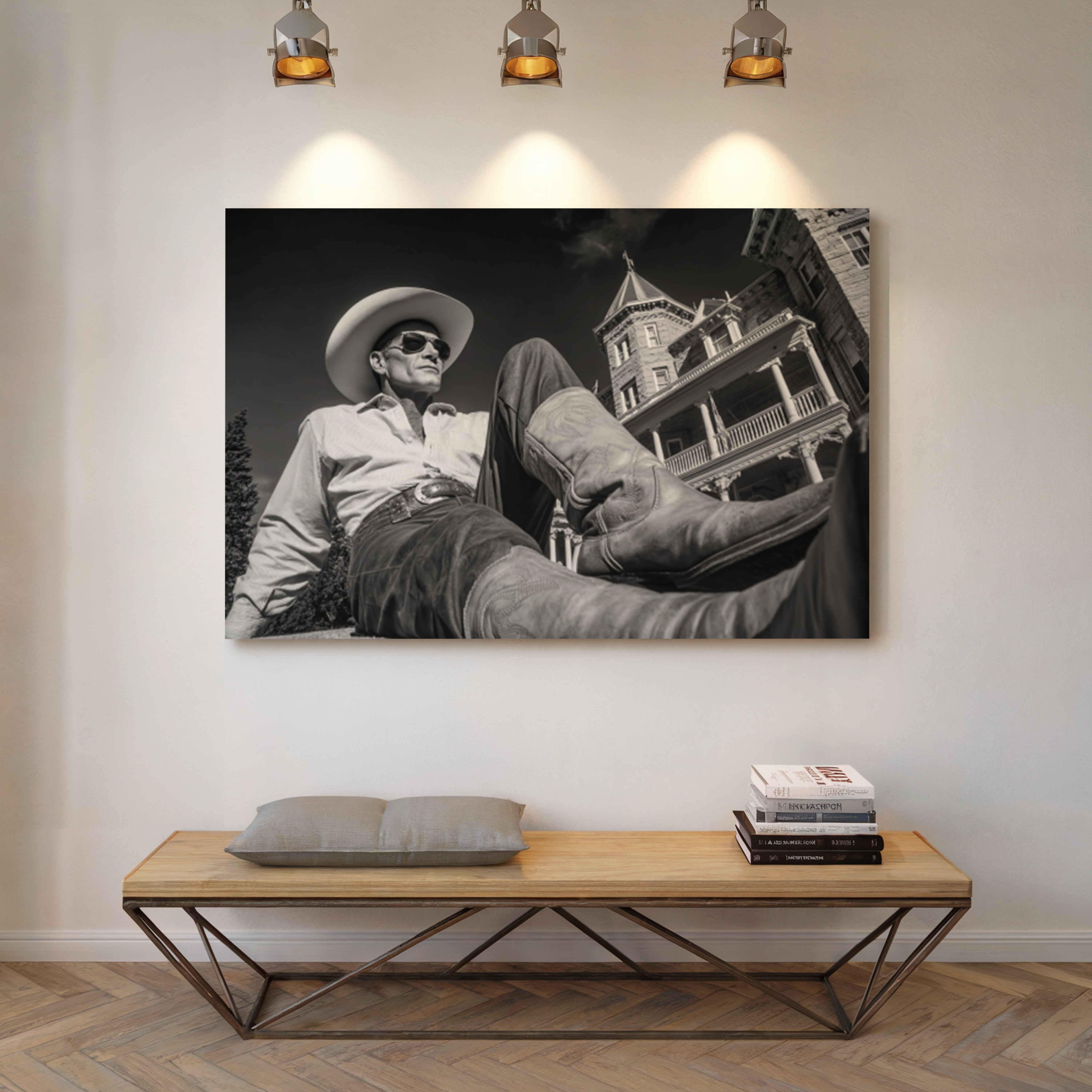 Perfect for creating a sophisticated focal point in living rooms, home offices, or any space where you want to celebrate the art of taking time to appreciate life's finer moments. This piece brings the relaxed confidence of western lifestyle into modern interiors with cinematic style.