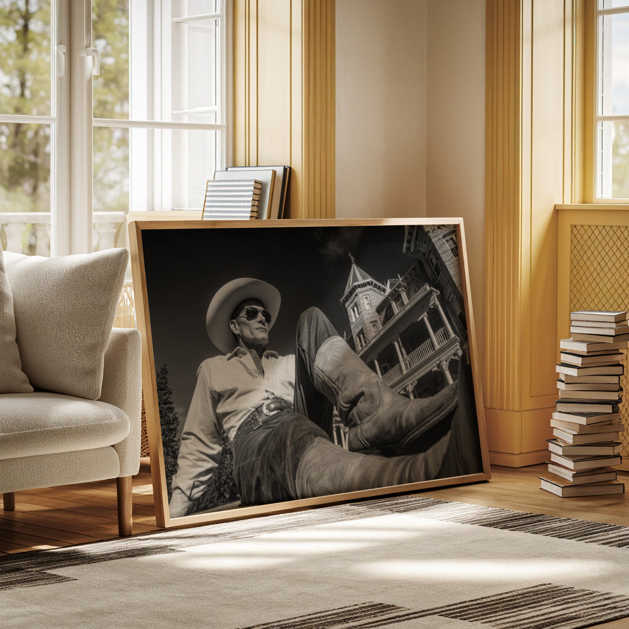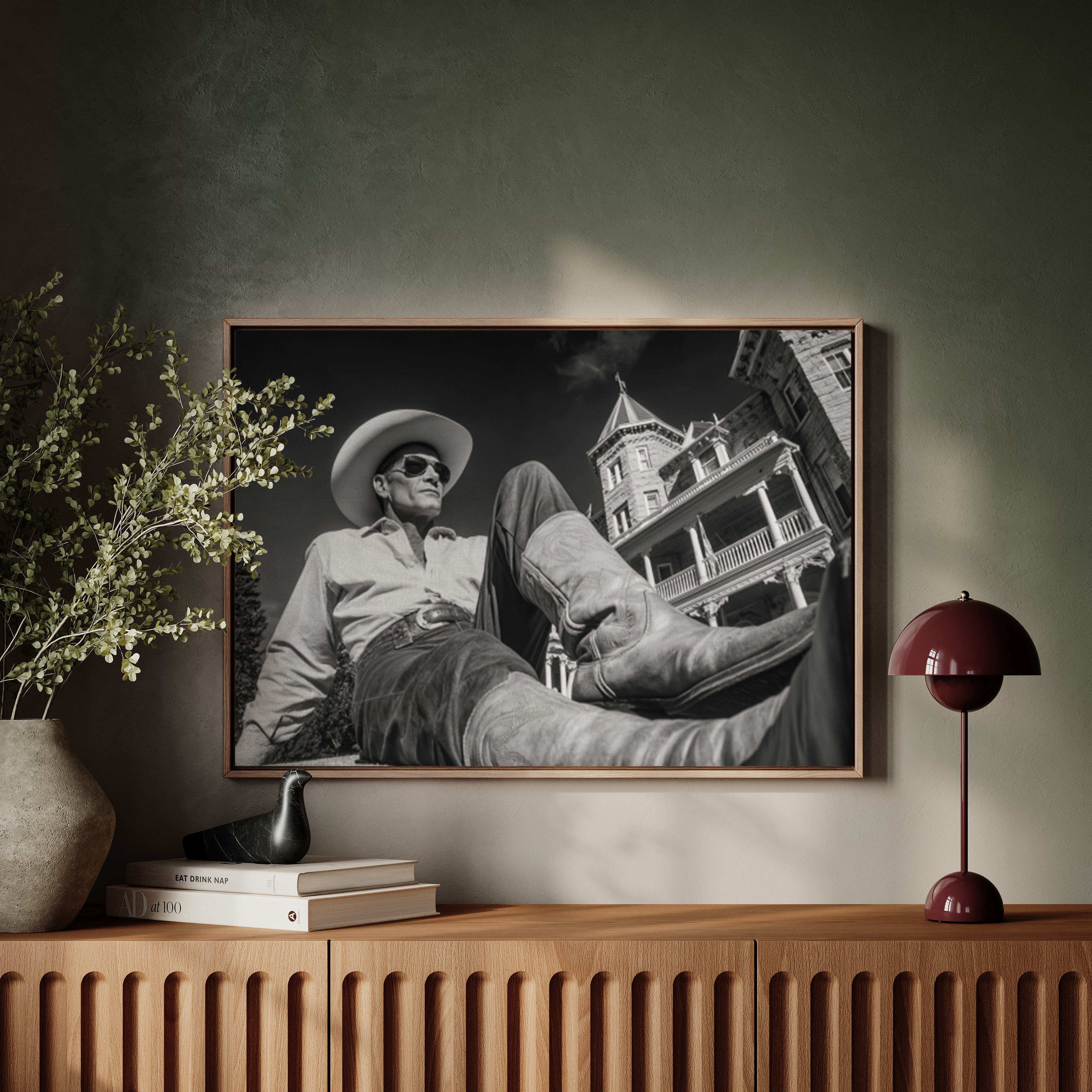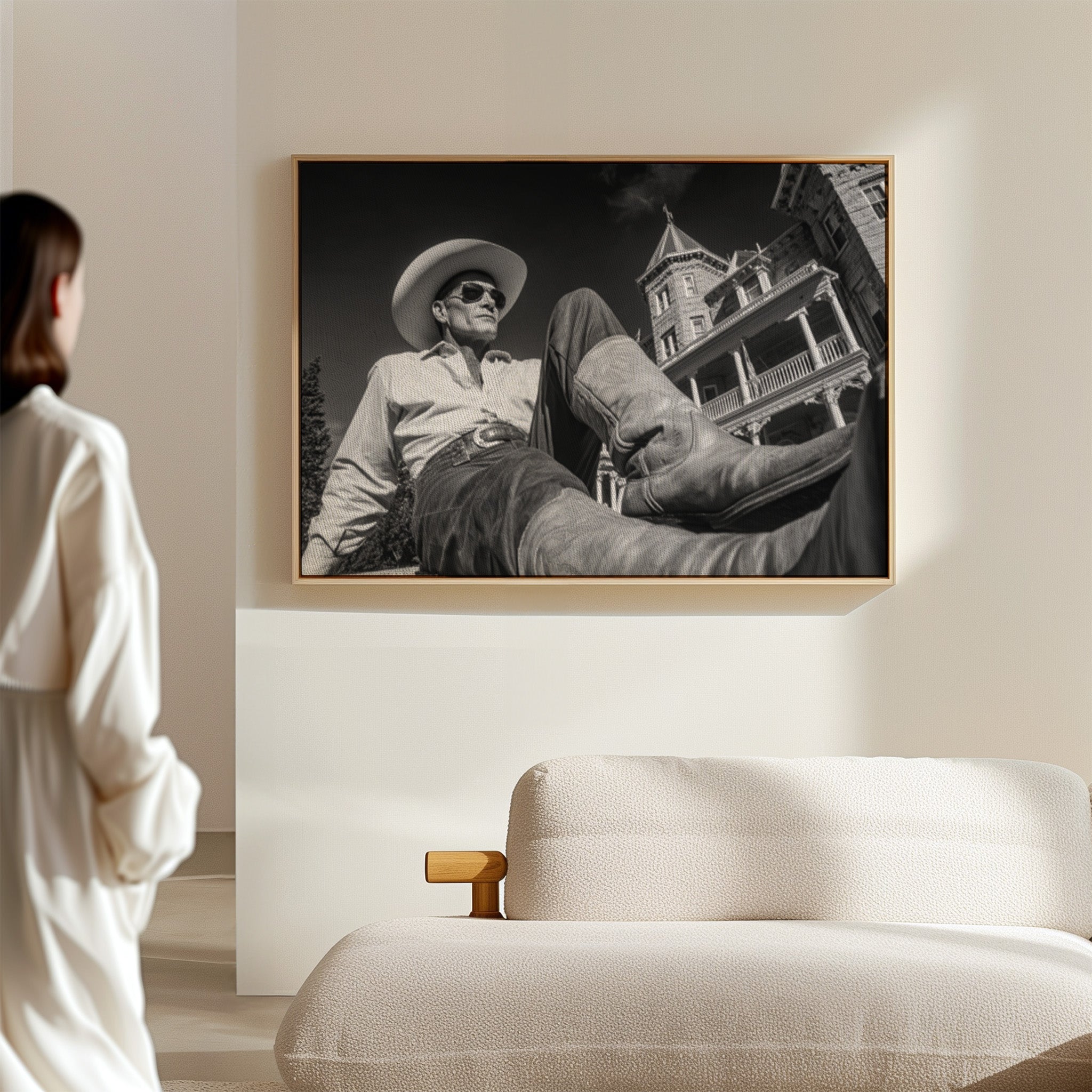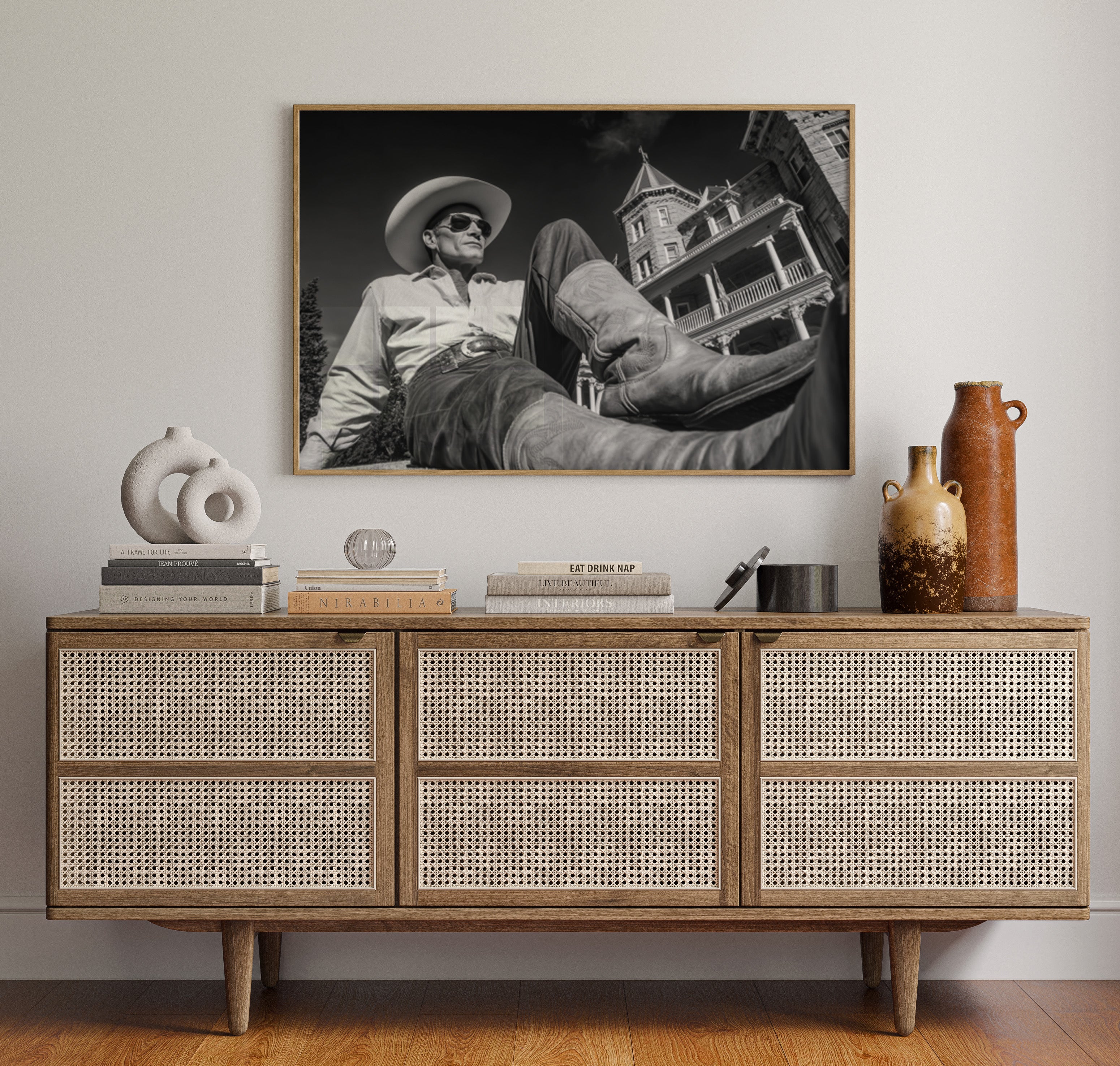 Perfect for creating a sophisticated focal point in living rooms, home offices, or any space where you want to celebrate the art of taking time to appreciate life's finer moments. This piece brings the relaxed confidence of western lifestyle into modern interiors with cinematic style.