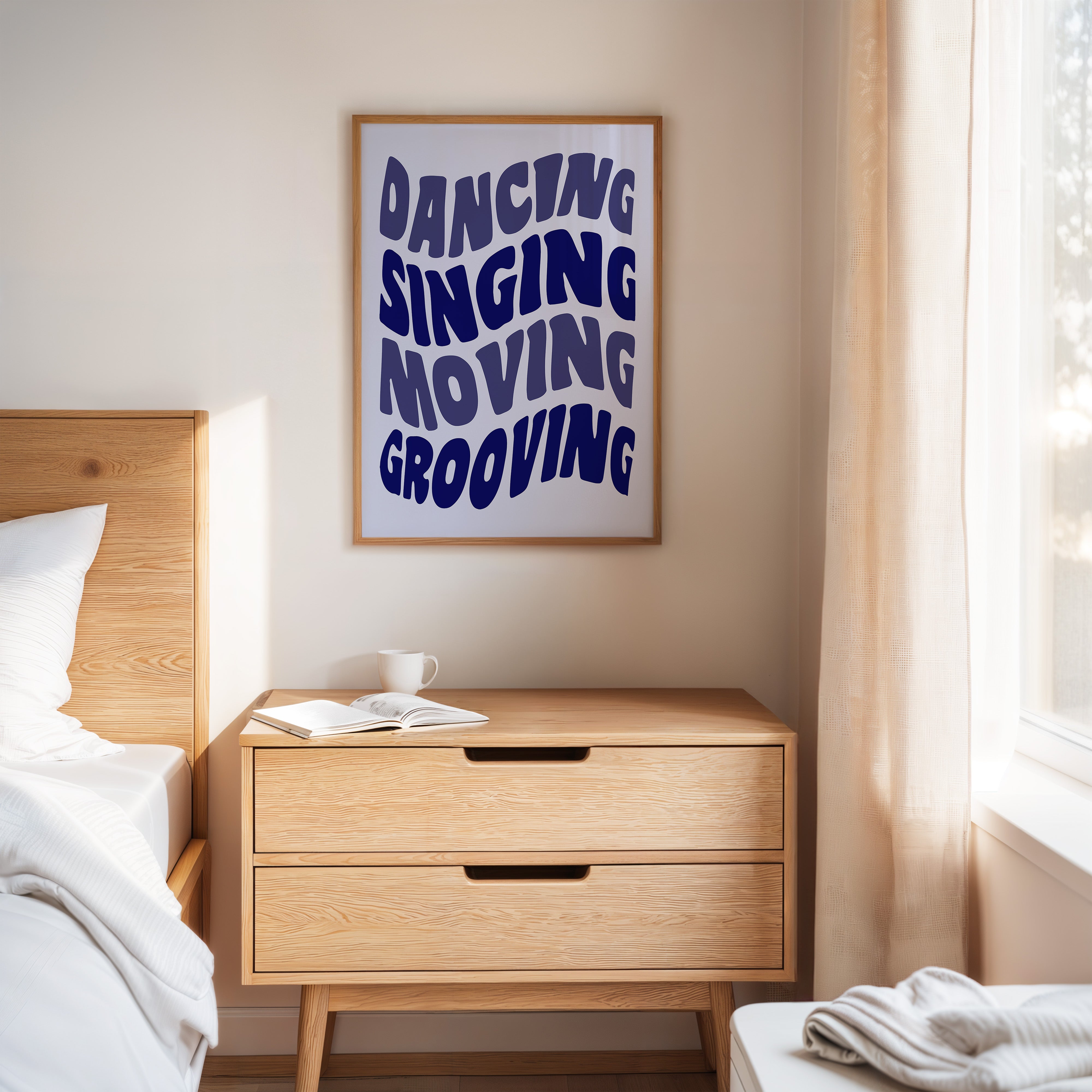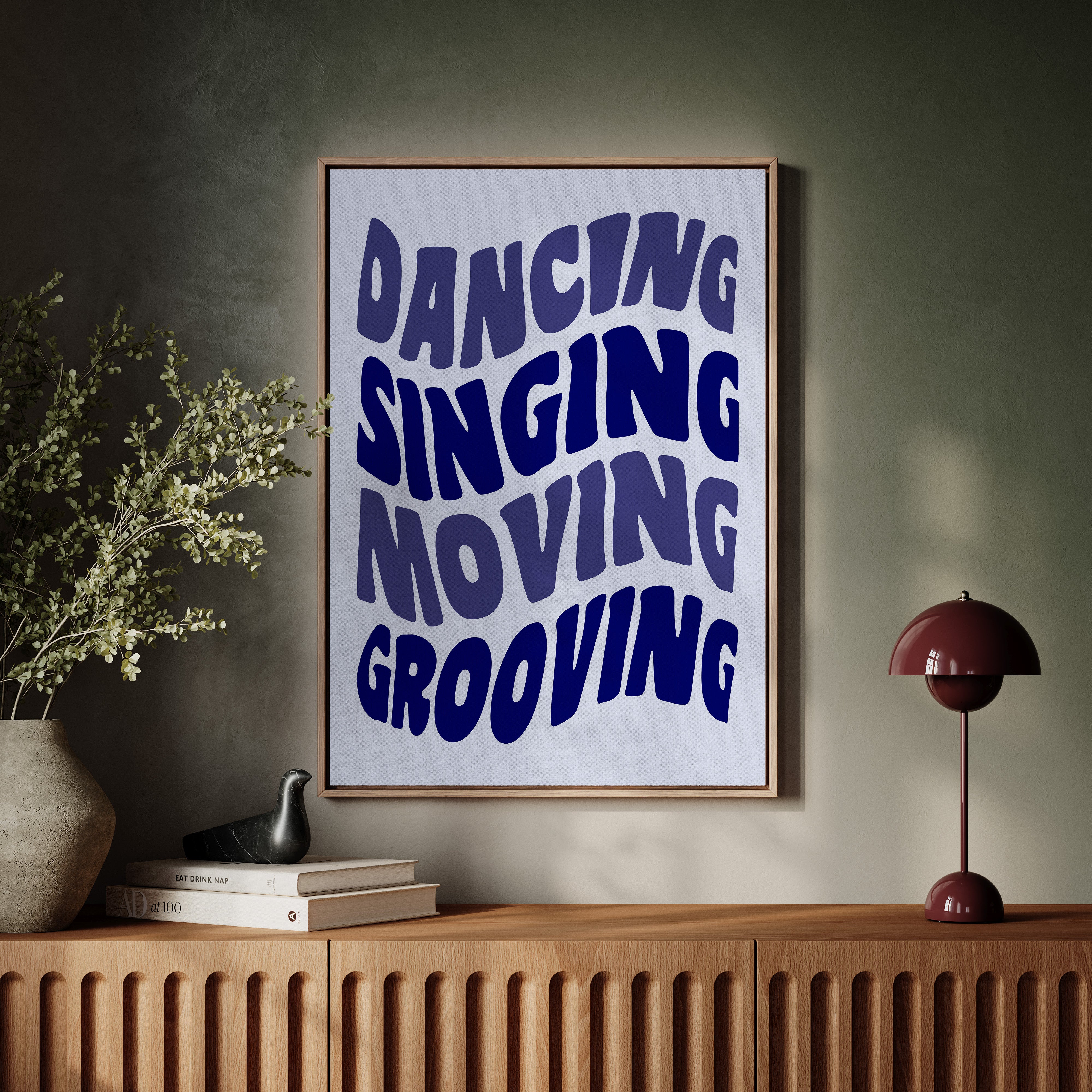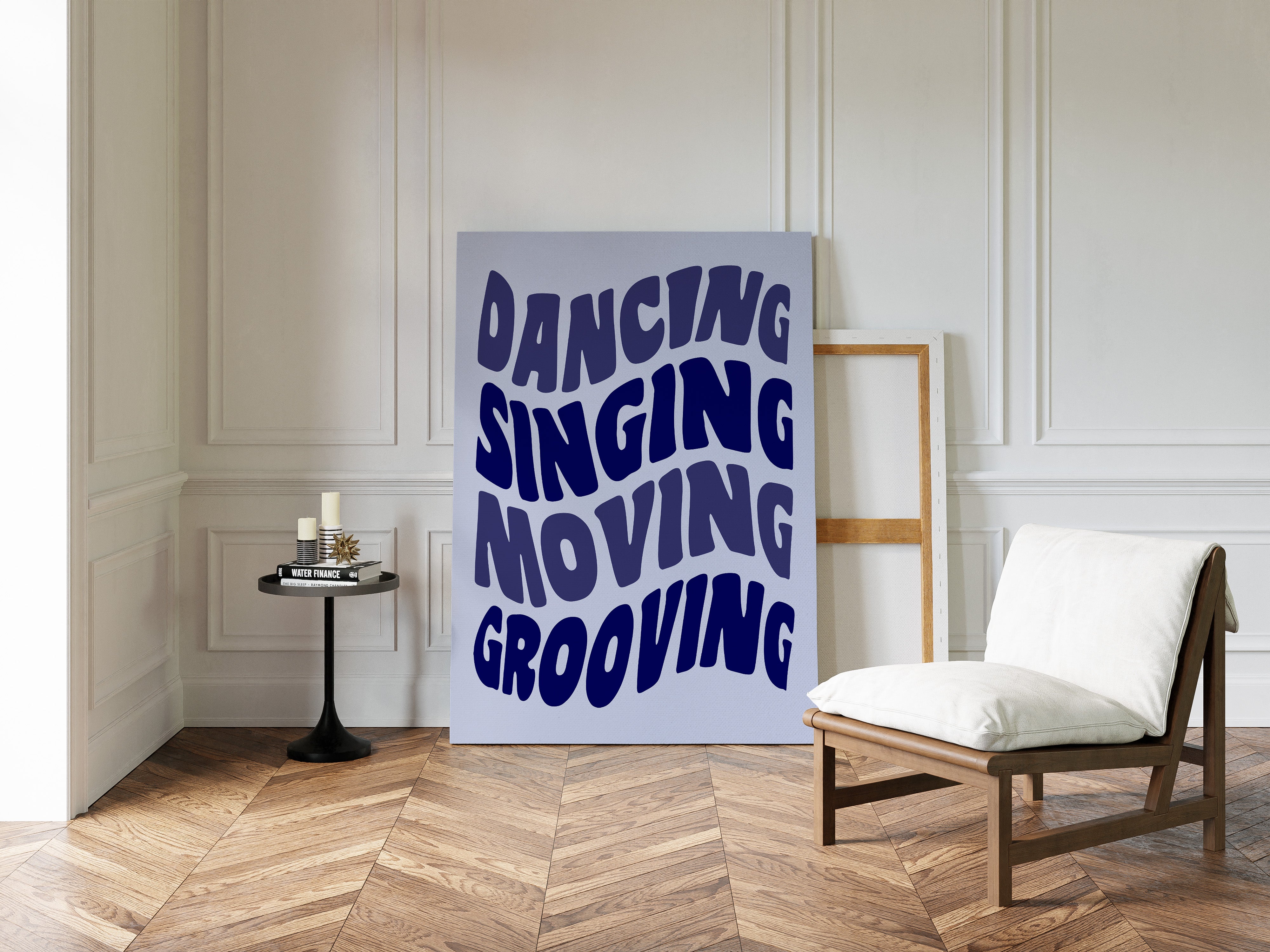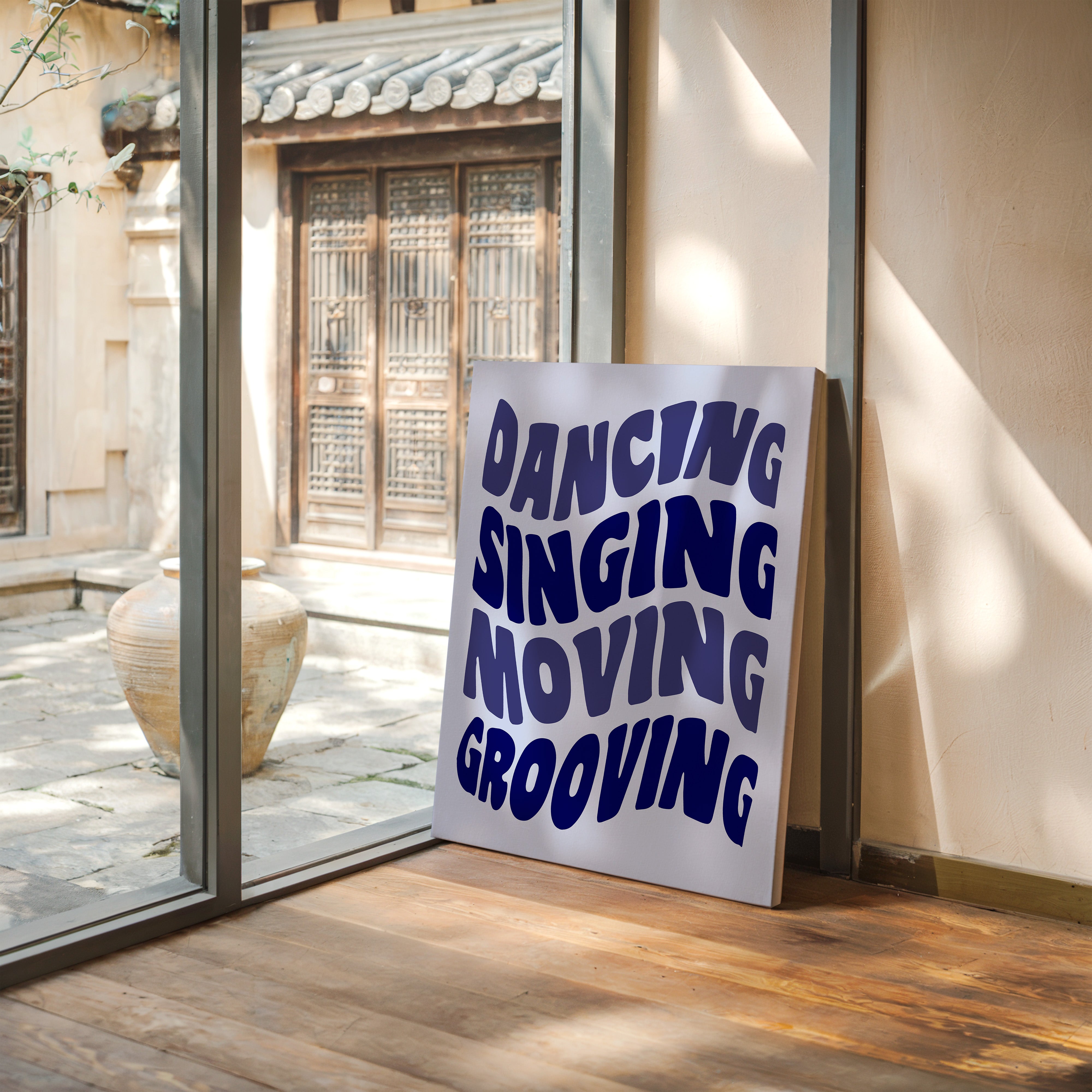 Letters dance and sway against a twilight backdrop, each curve and bend suggesting movement frozen in time. This piece from our Contemporary collection captures the fluid intersection of typography and motion. Deep navy forms pulse with kinetic energy against the soft lavender background, creating a visual rhythm that feels both bold and meditative. The stacked words create their own choreography, each letter flowing naturally into the next like a perfectly composed verse. This statement piece brings dynamic energy to modern spaces, ideal for creative studios, music rooms, or any space that celebrates artistic expression. Its mesmerizing flow invites viewers to pause and feel the beat of its typographic dance.