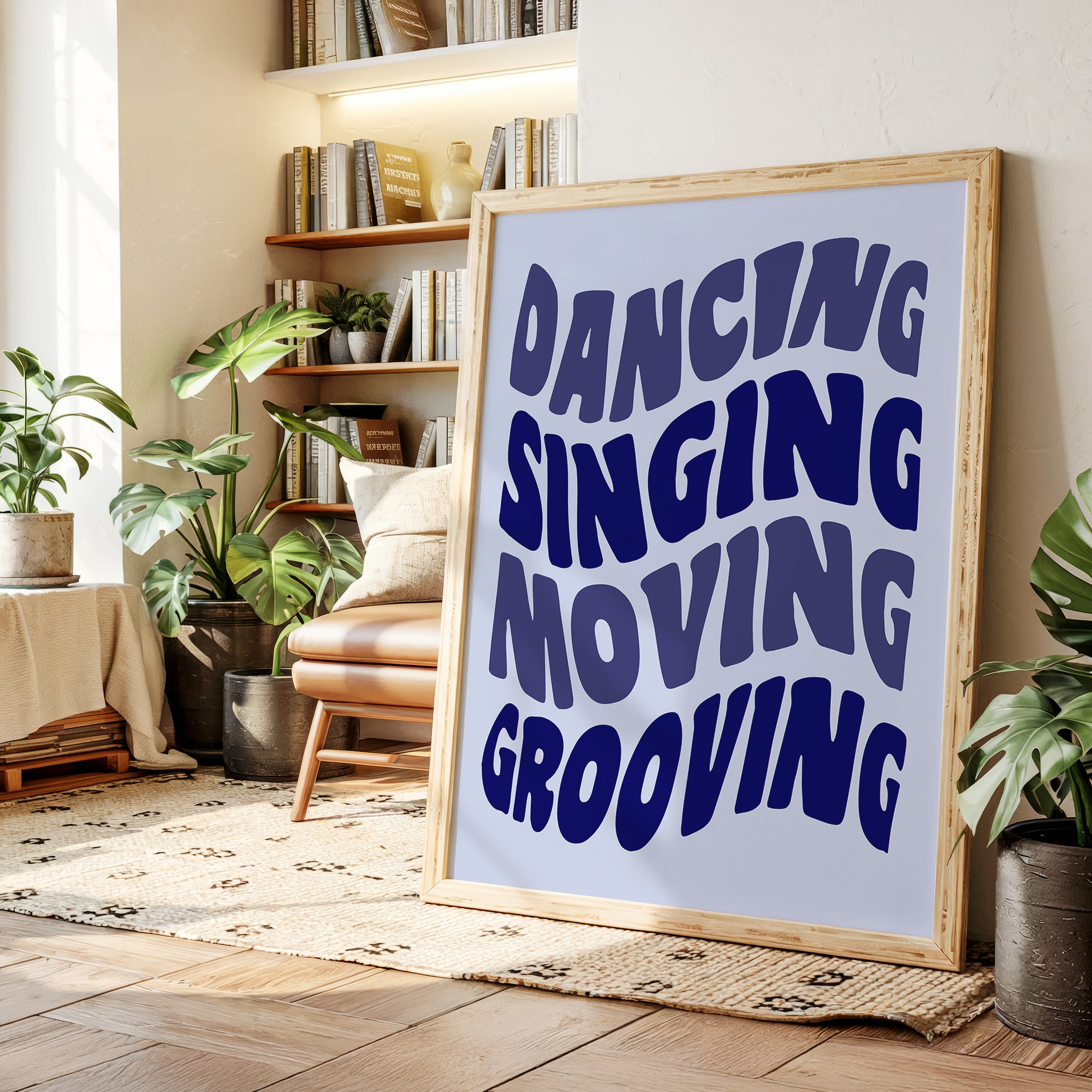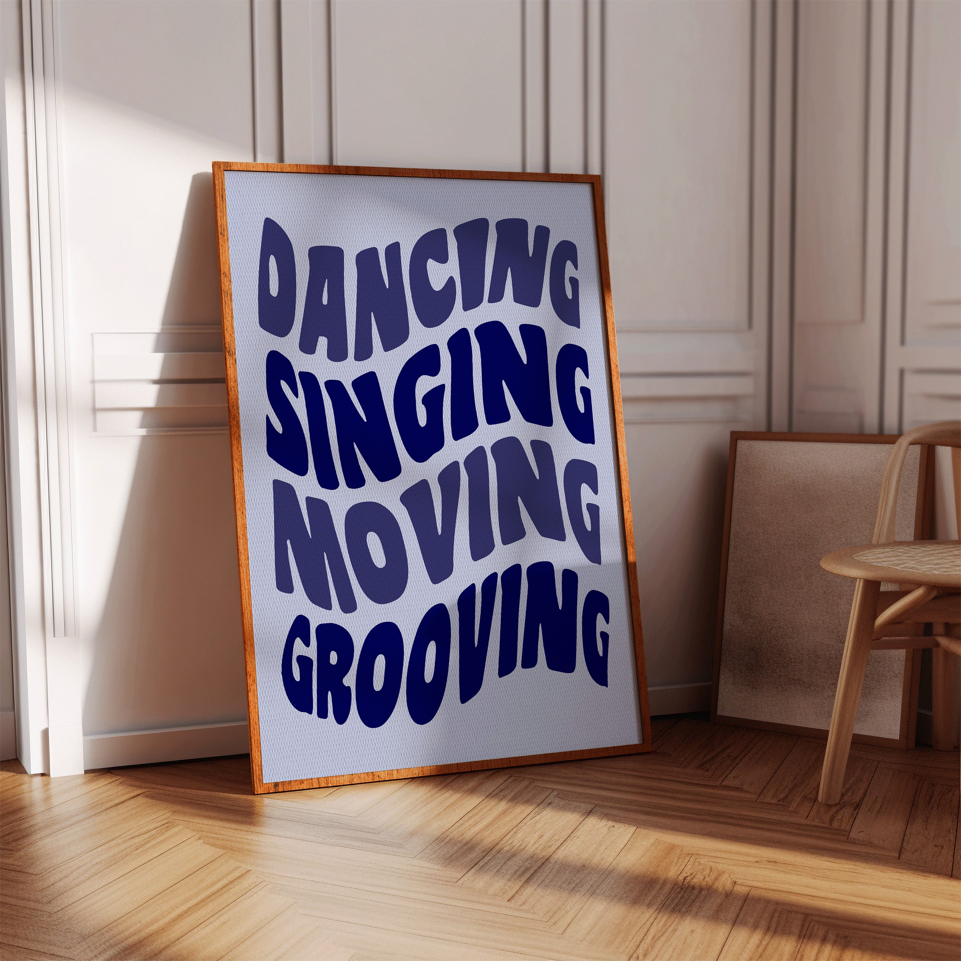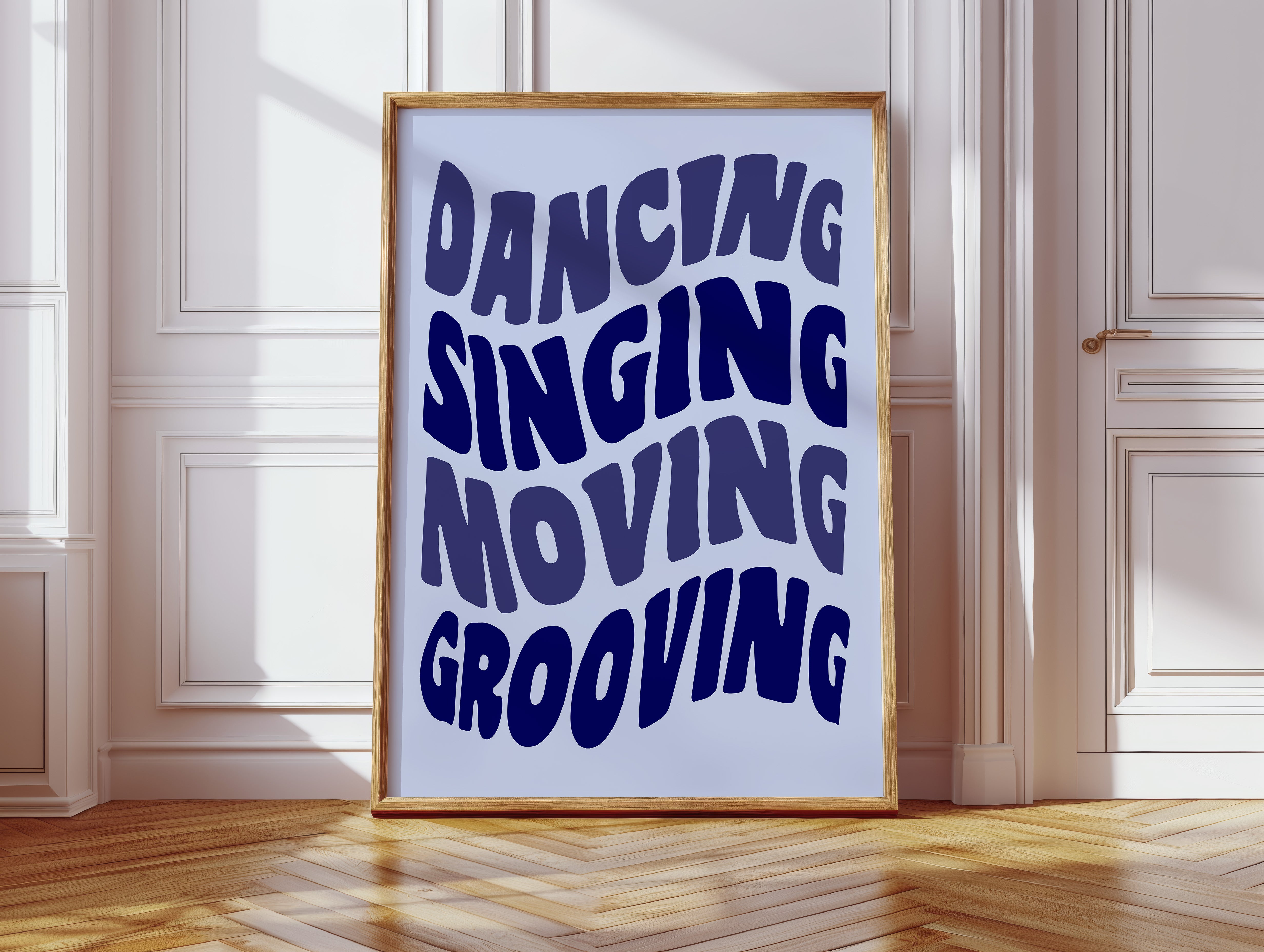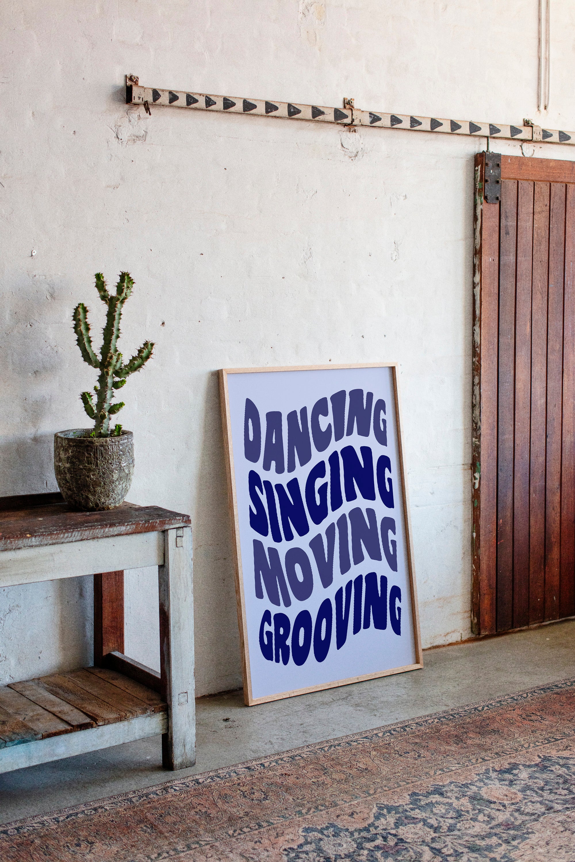 Letters dance and sway against a twilight backdrop, each curve and bend suggesting movement frozen in time. This piece from our Contemporary collection captures the fluid intersection of typography and motion. Deep navy forms pulse with kinetic energy against the soft lavender background, creating a visual rhythm that feels both bold and meditative. The stacked words create their own choreography, each letter flowing naturally into the next like a perfectly composed verse. This statement piece brings dynamic energy to modern spaces, ideal for creative studios, music rooms, or any space that celebrates artistic expression. Its mesmerizing flow invites viewers to pause and feel the beat of its typographic dance.
