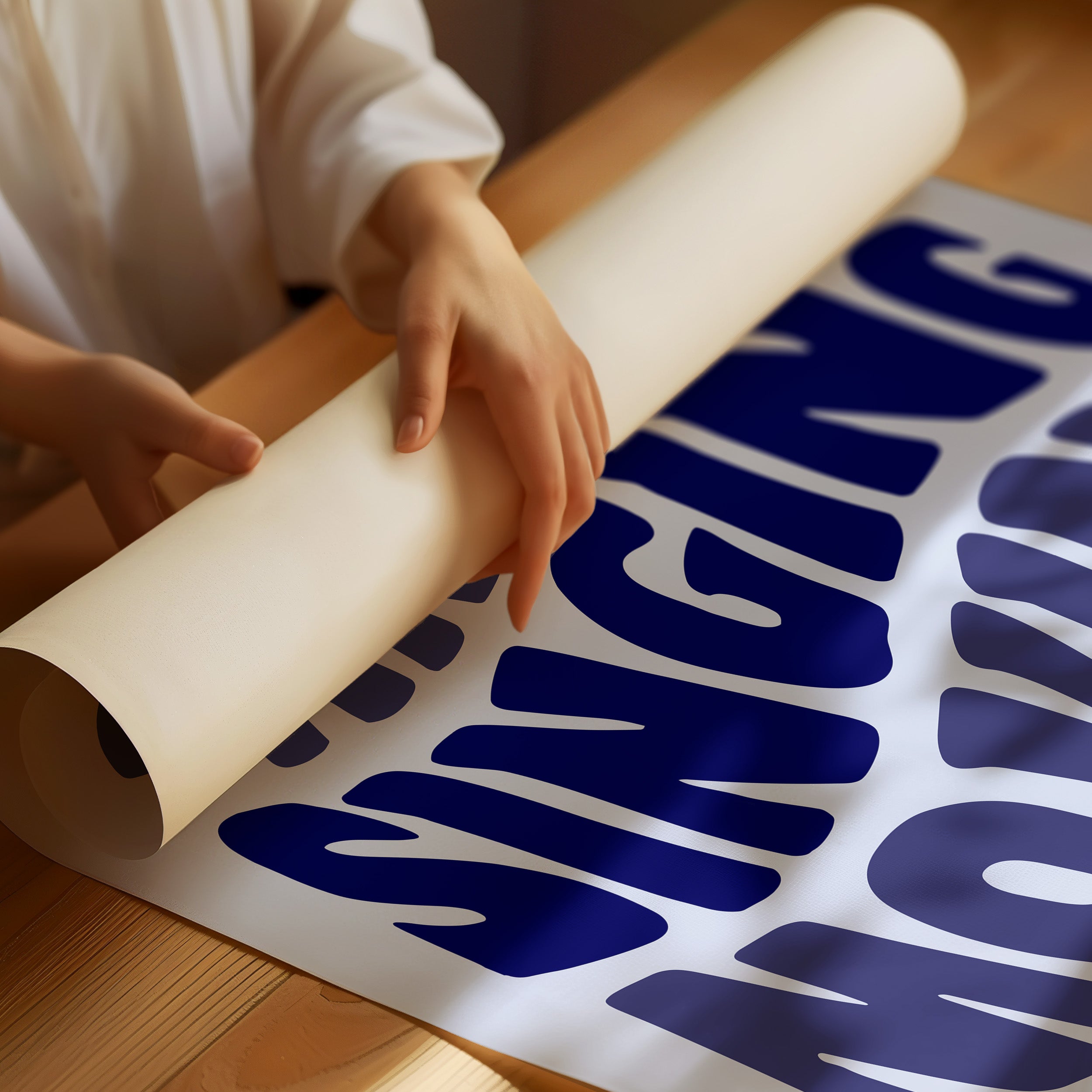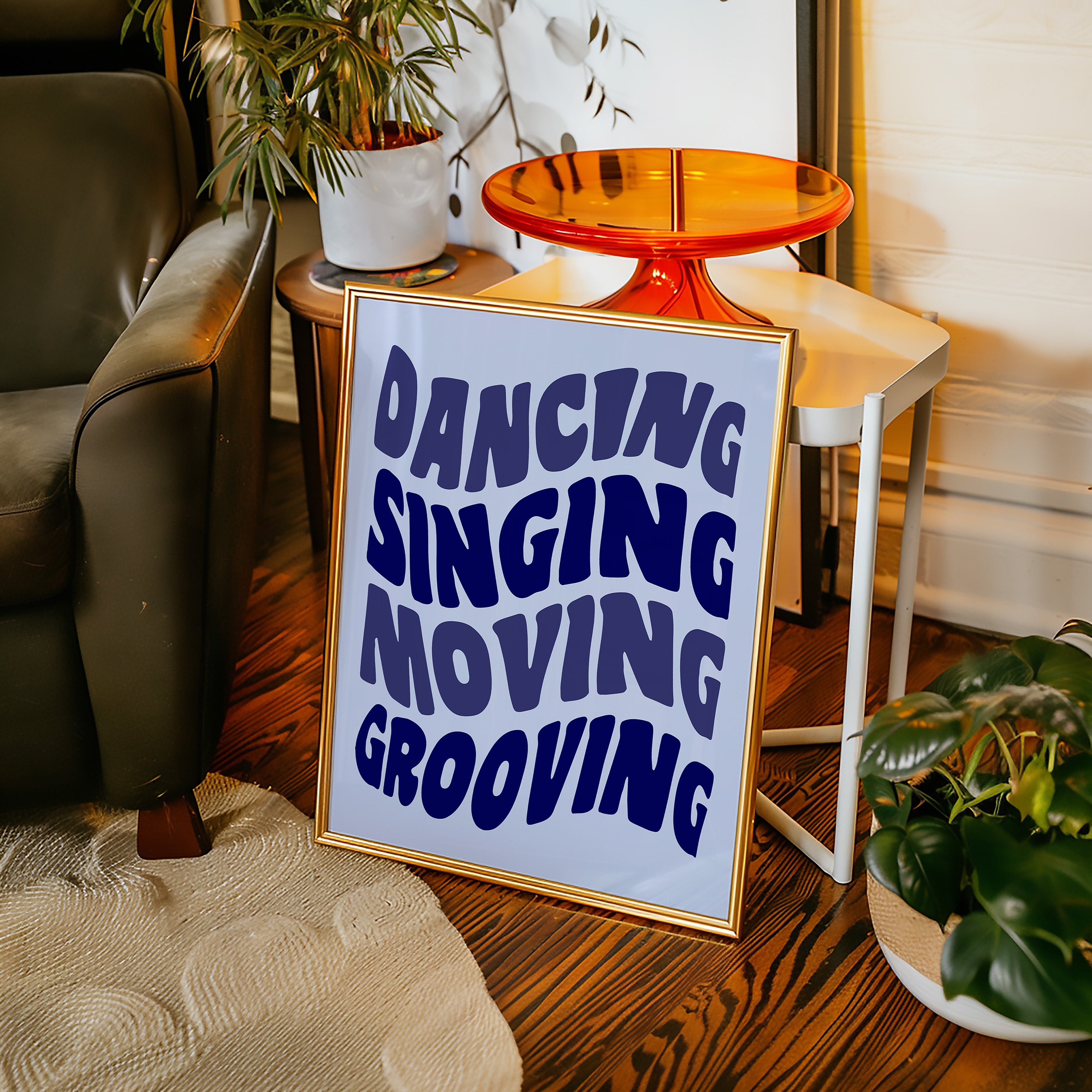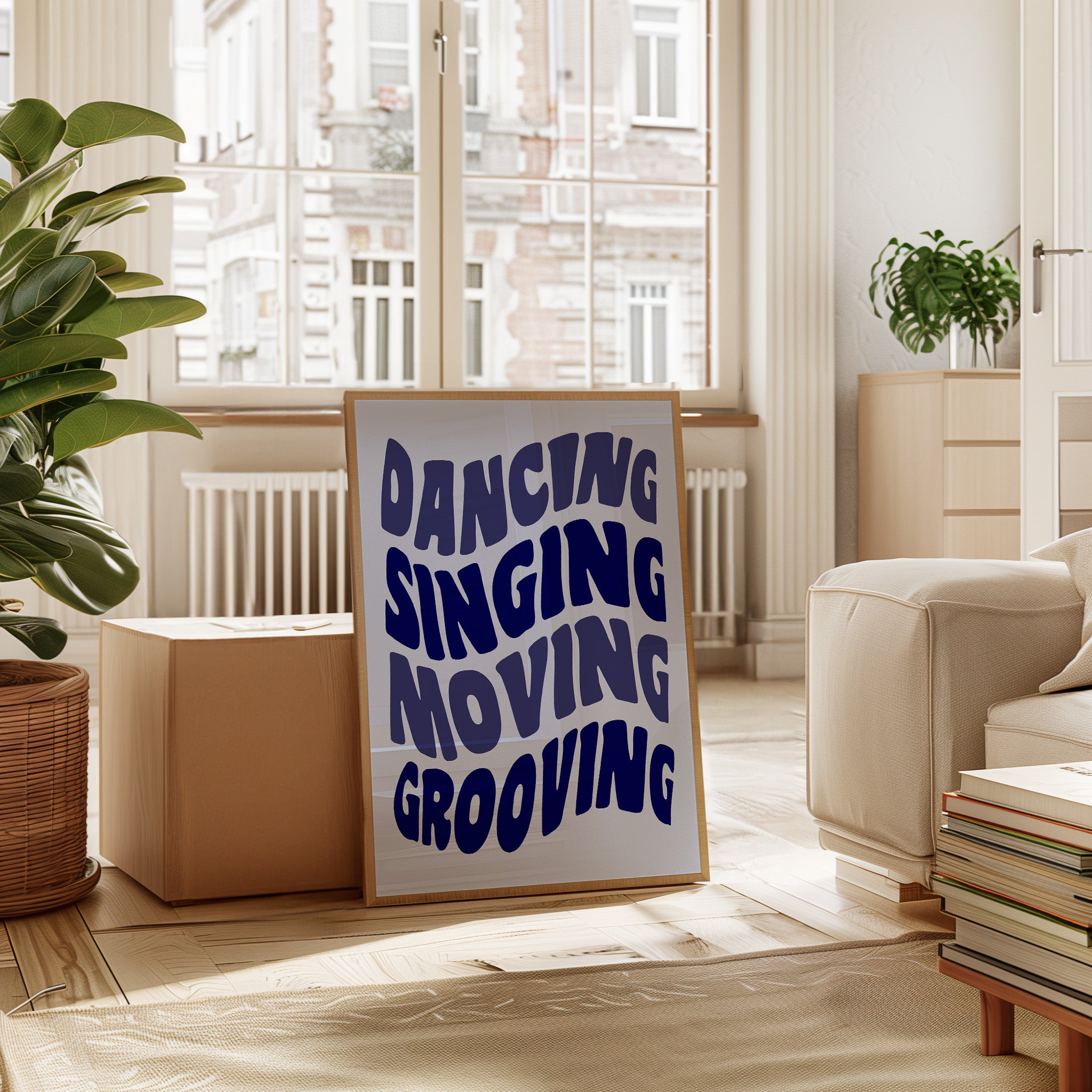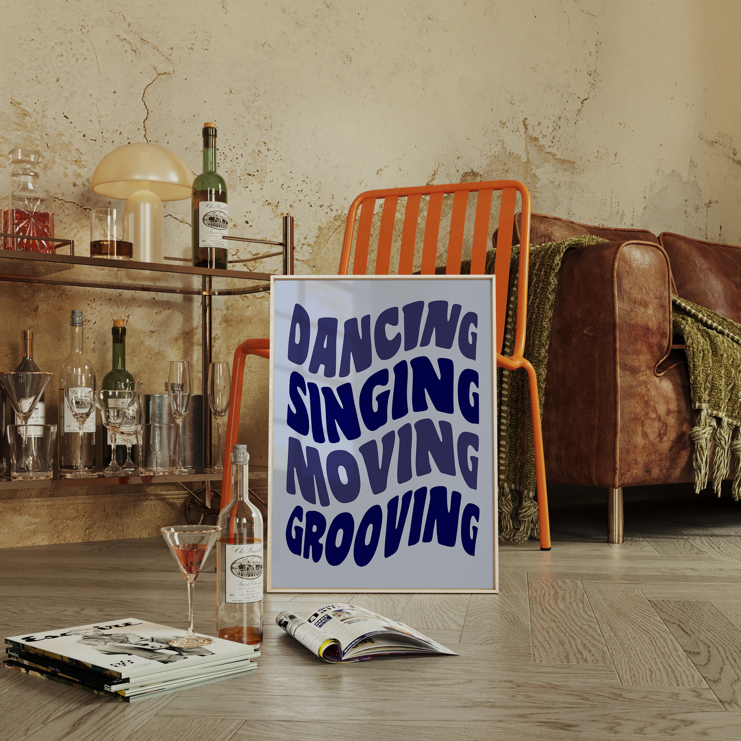 Letters dance and sway against a twilight backdrop, each curve and bend suggesting movement frozen in time. This piece from our Contemporary collection captures the fluid intersection of typography and motion. Deep navy forms pulse with kinetic energy against the soft lavender background, creating a visual rhythm that feels both bold and meditative. The stacked words create their own choreography, each letter flowing naturally into the next like a perfectly composed verse. This statement piece brings dynamic energy to modern spaces, ideal for creative studios, music rooms, or any space that celebrates artistic expression. Its mesmerizing flow invites viewers to pause and feel the beat of its typographic dance.