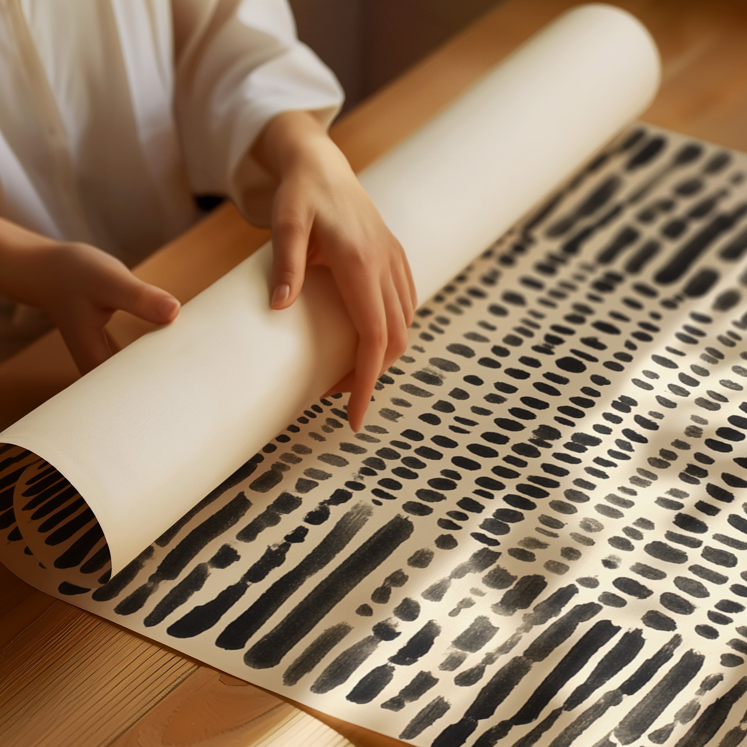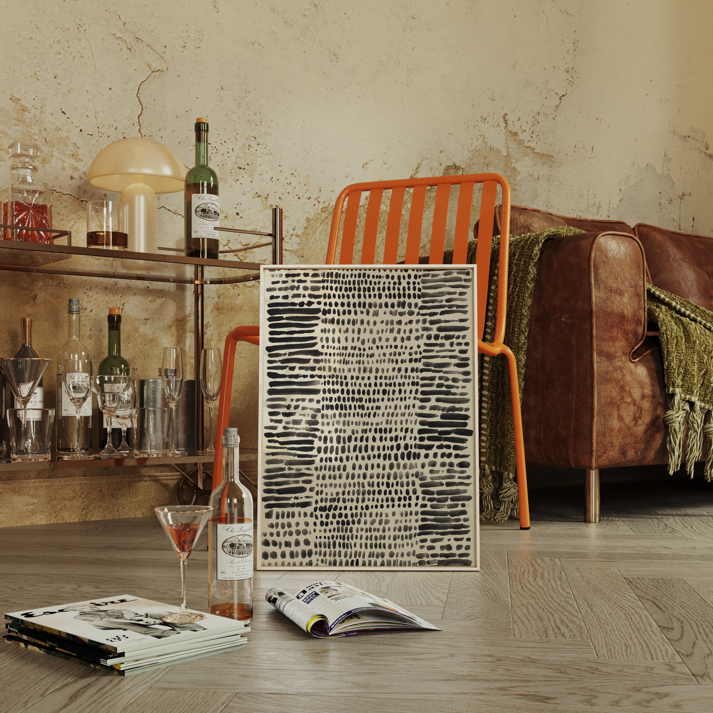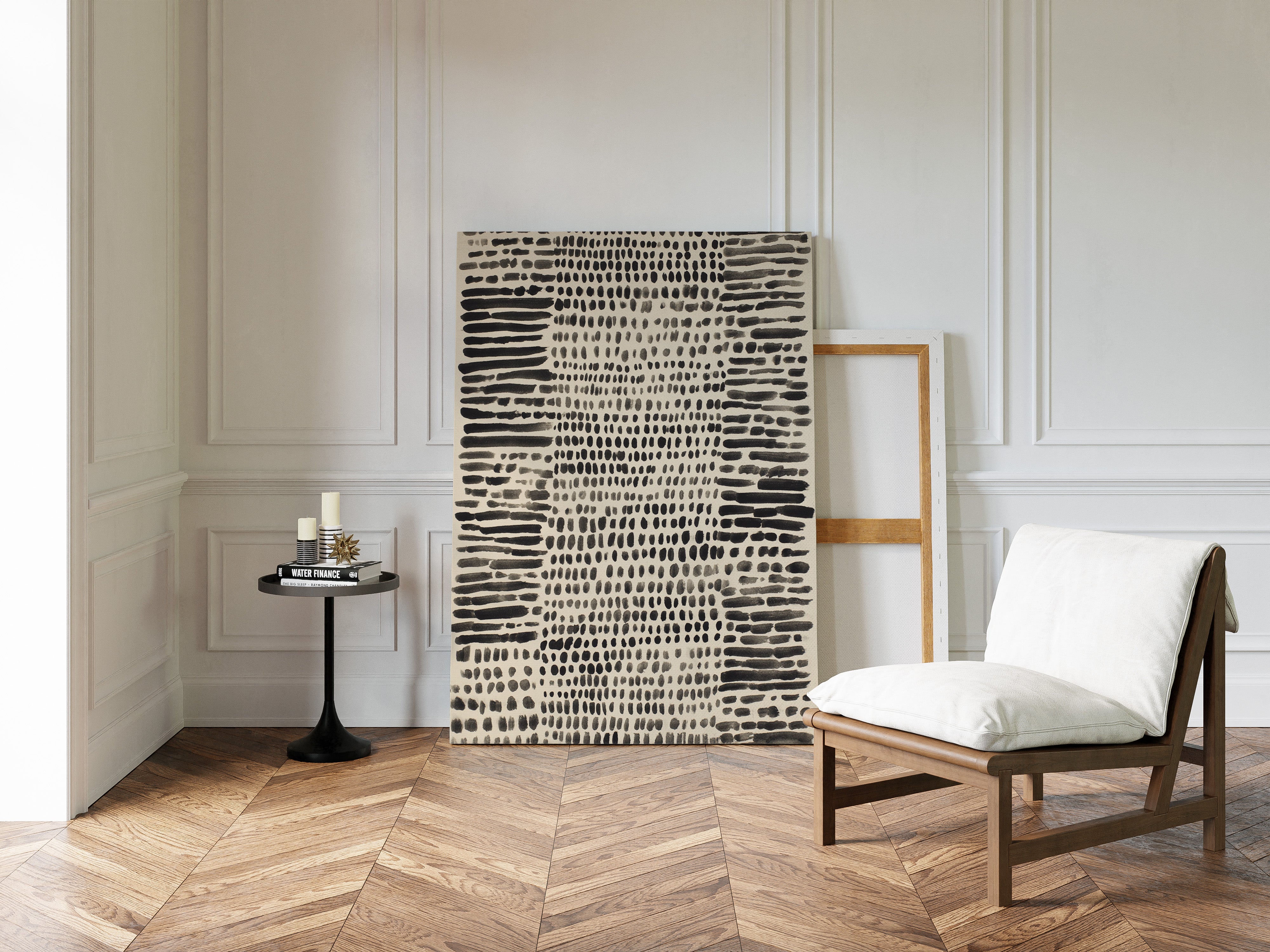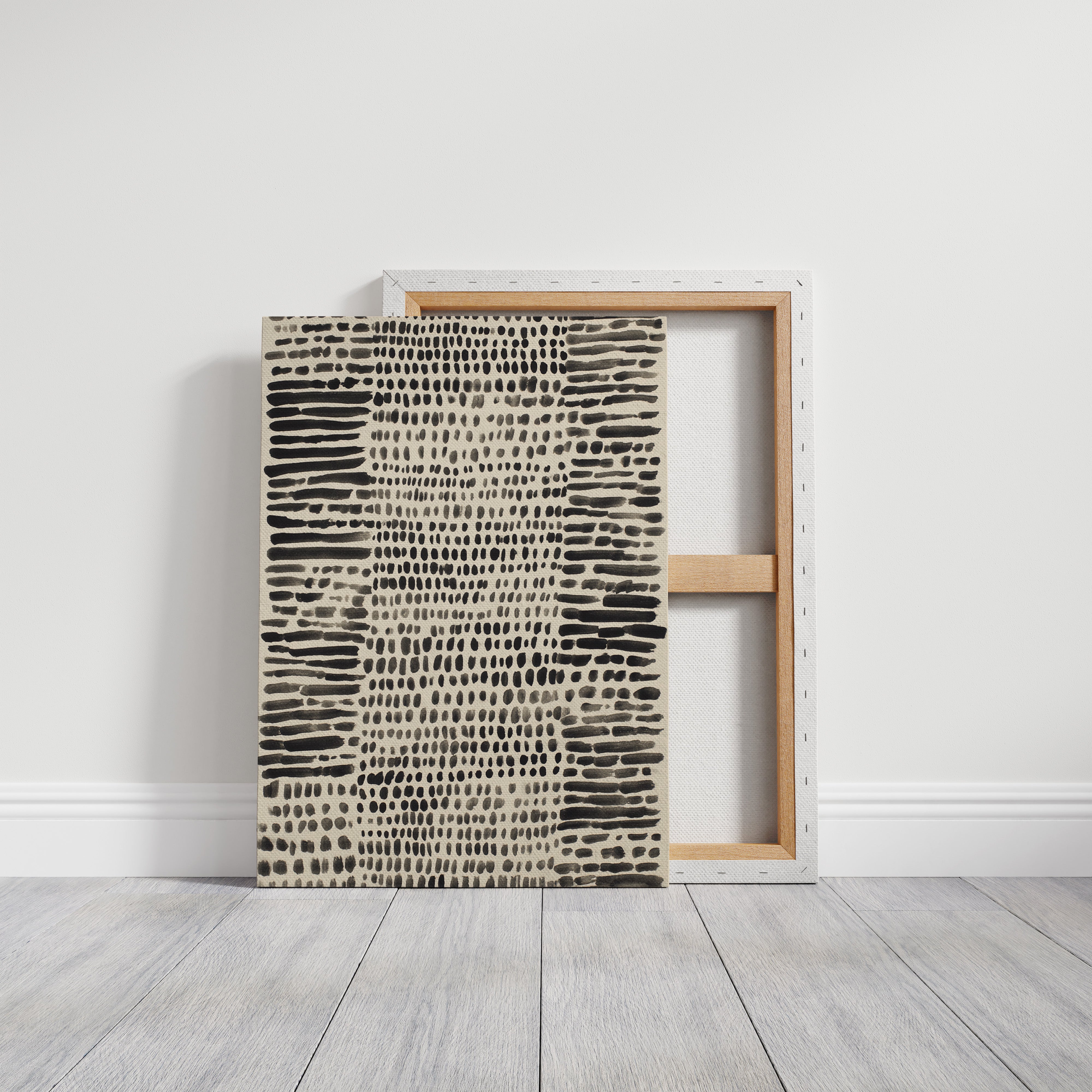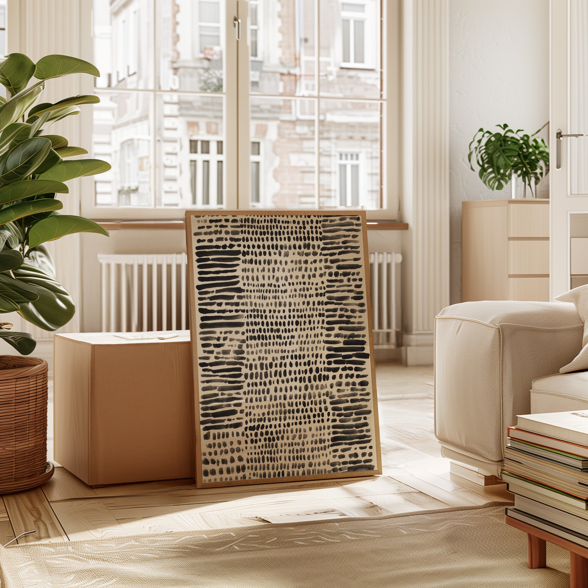 In a dance of monochrome, the strokes breathe life onto the canvas, each line a heartbeat, each dot a whisper of intent. This piece embodies the essence of artisanal craftsmanship, where each mark tells a story of patience and precision. The interplay of bold lines and delicate dots creates a visual symphony, drawing the eye into a world where simplicity meets complexity, and every detail invites exploration. Ideal for a modern living space or a serene reading nook, this artwork transforms walls into galleries of thought and inspiration.