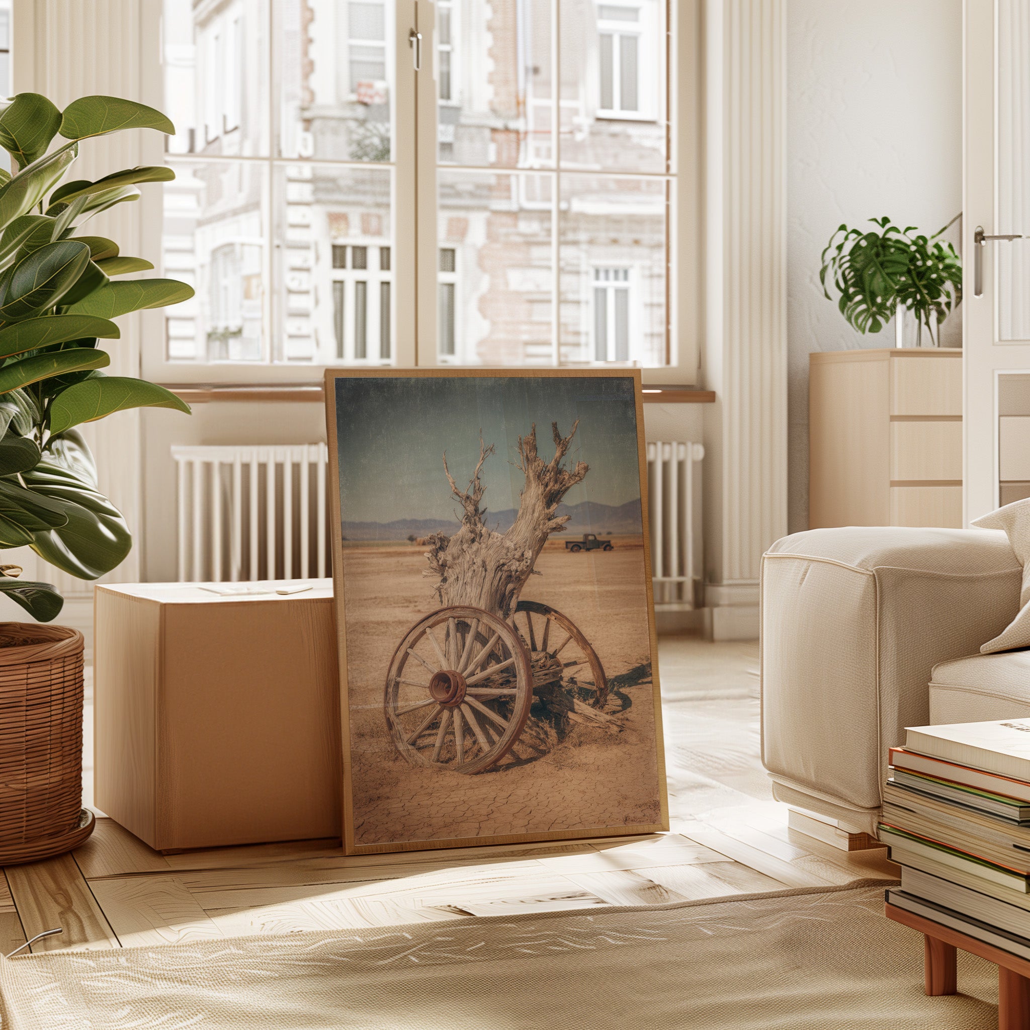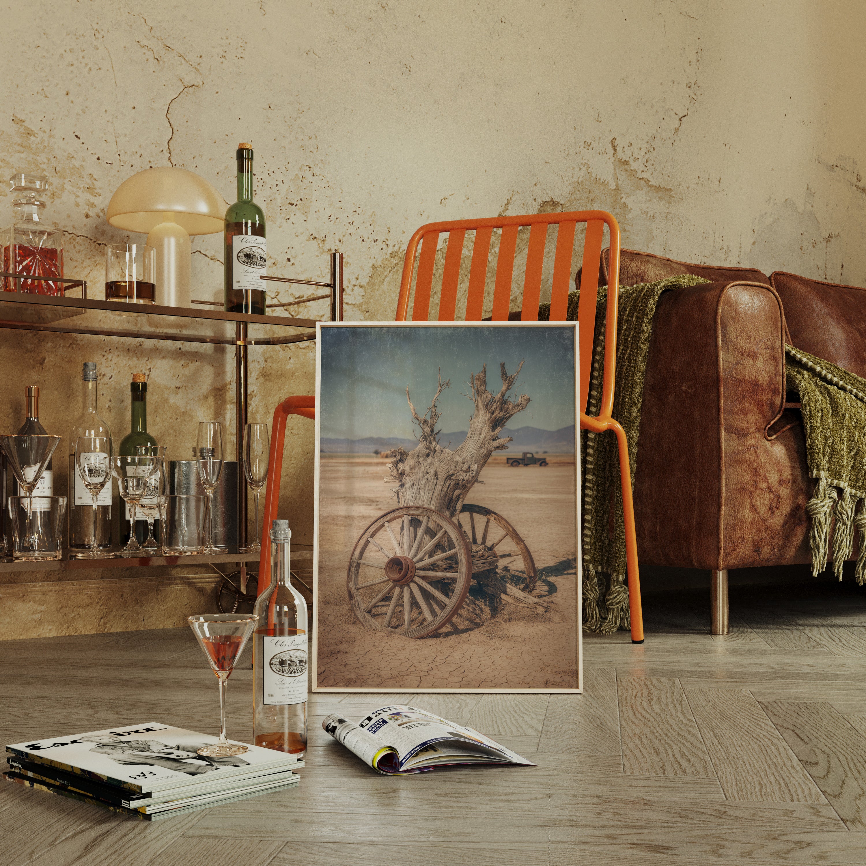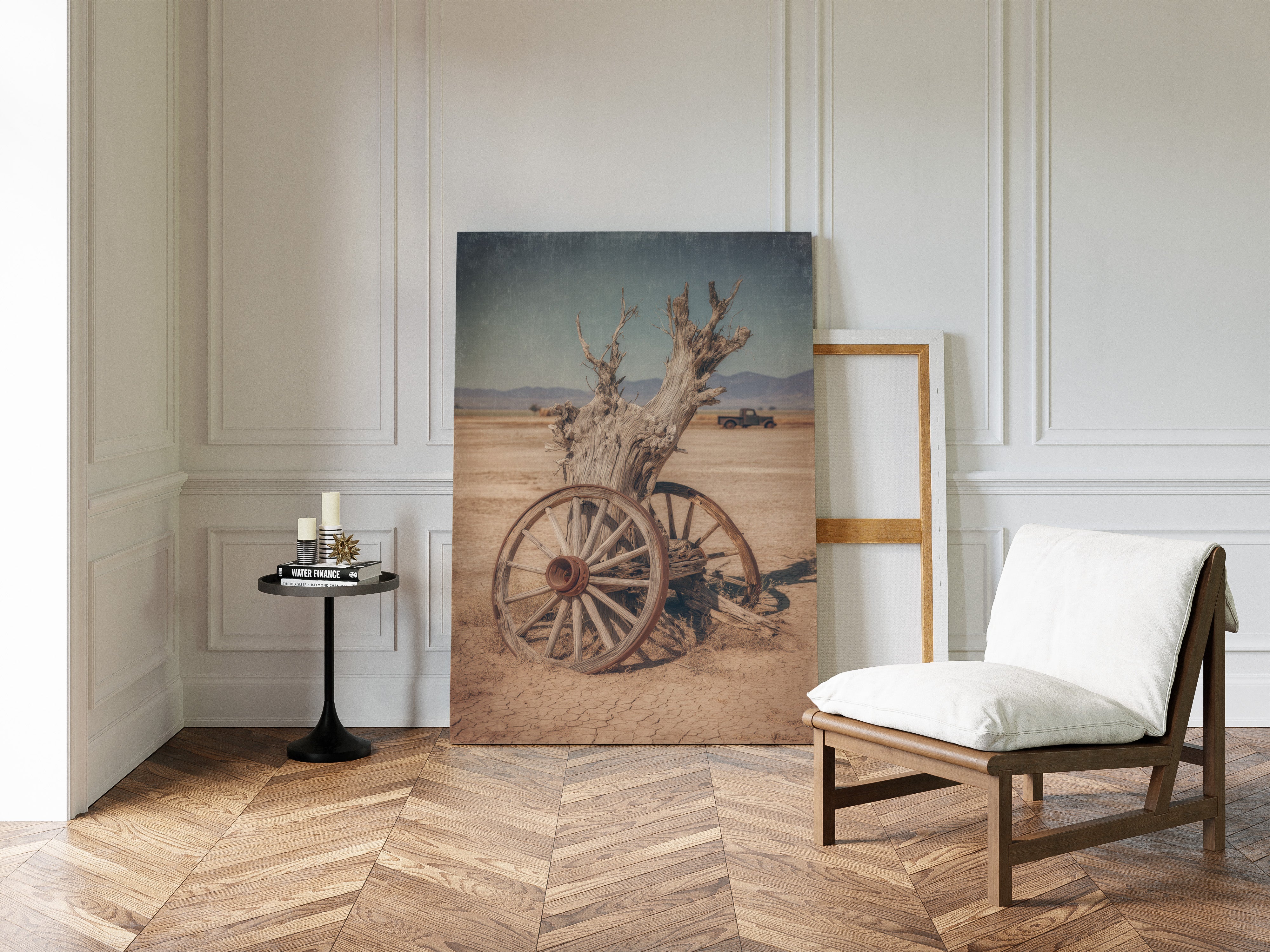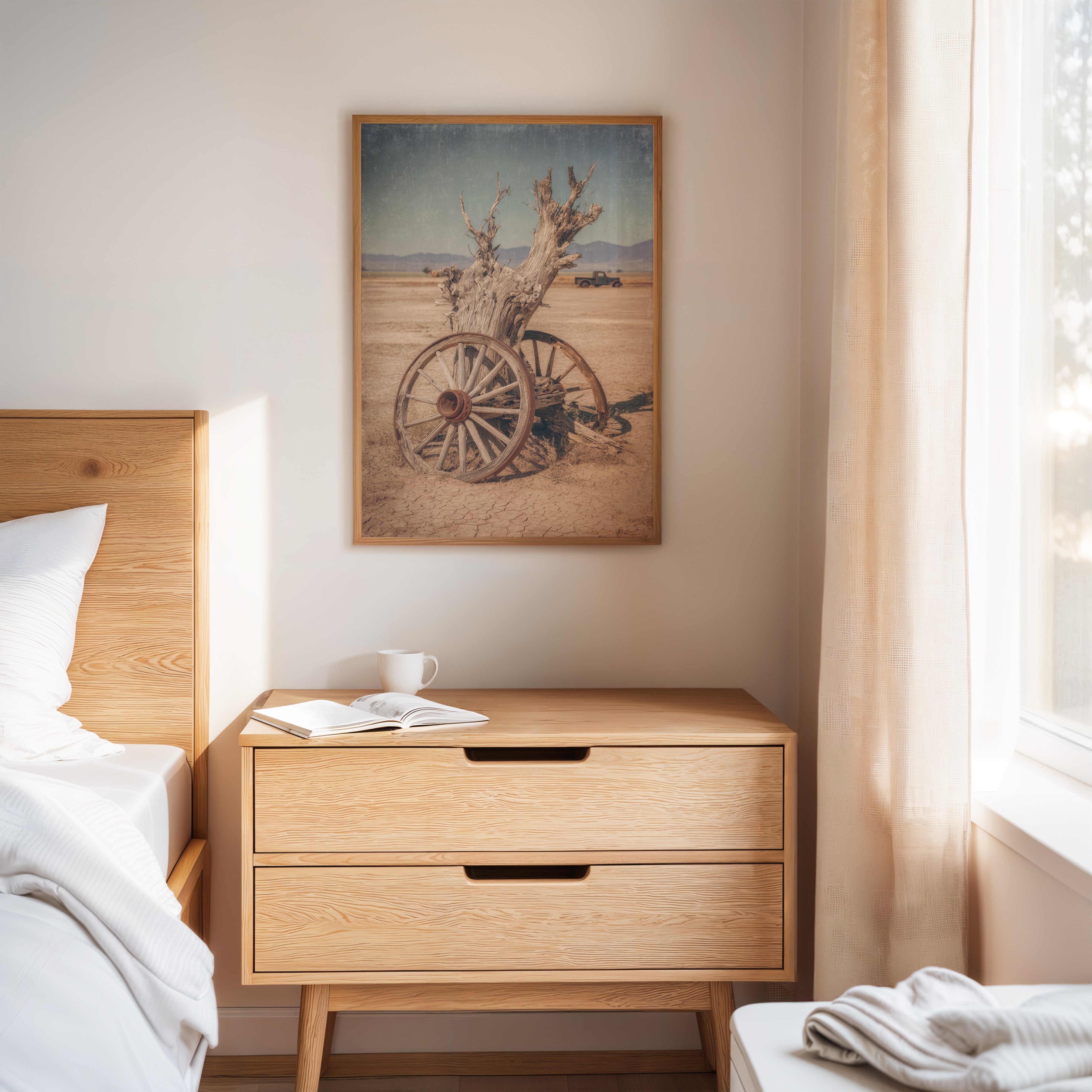 The muted earth tones and textured finish evoke the dry heat and endless horizons, creating a tactile experience that transports you to a simpler time.