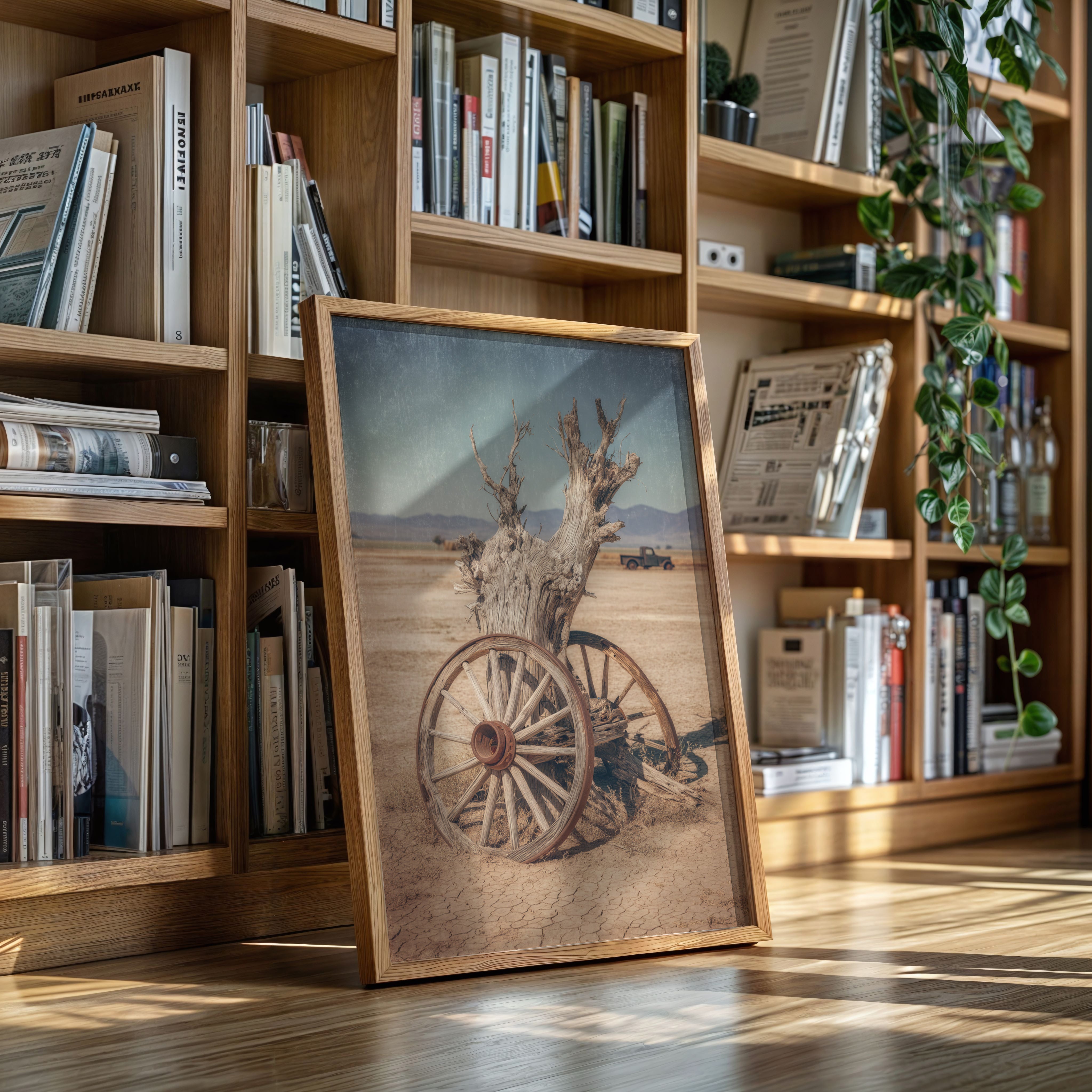 In a world constantly spinning forward, there's an unspoken beauty in the remnants of what once was—a forgotten wagon wheel against the vastness of the desert.