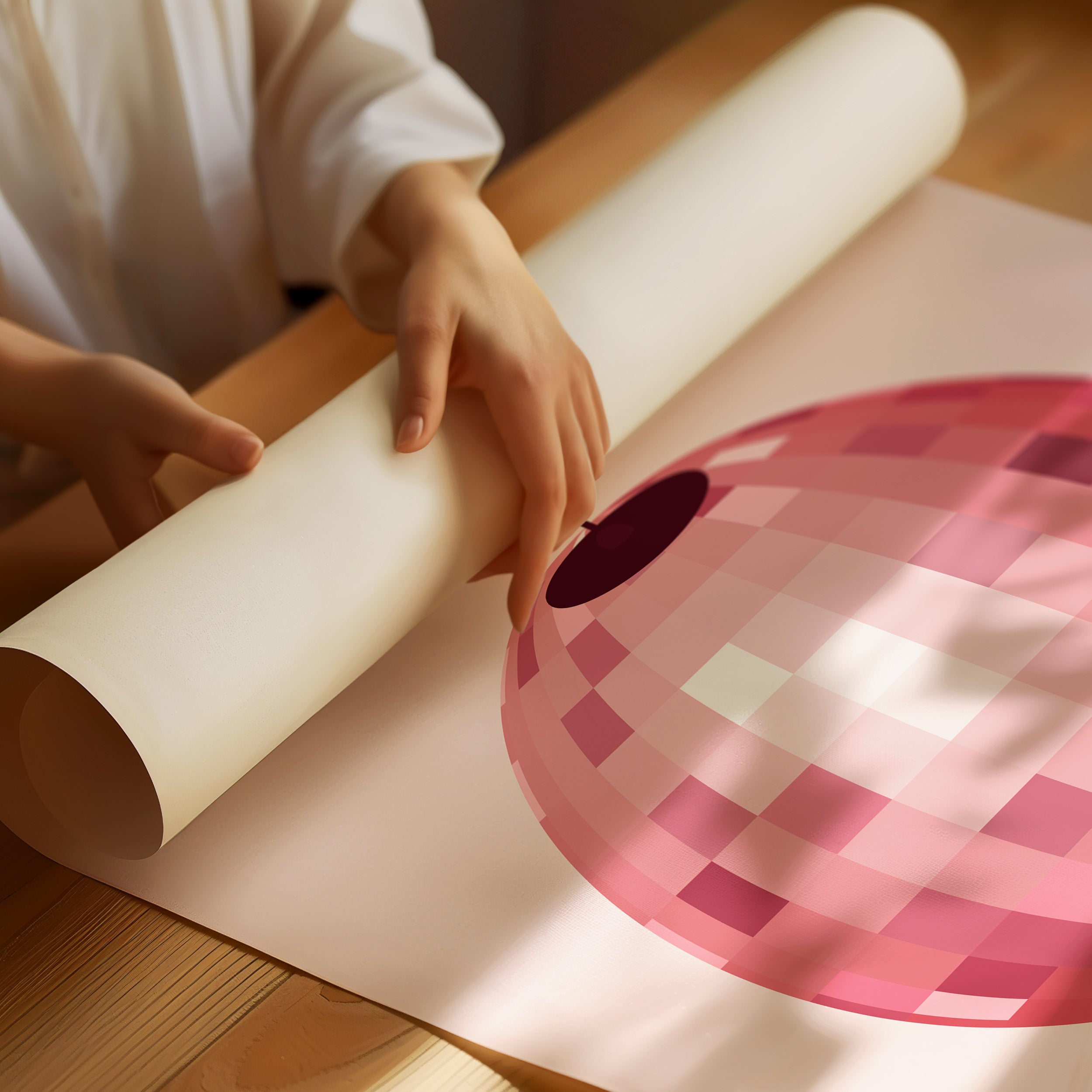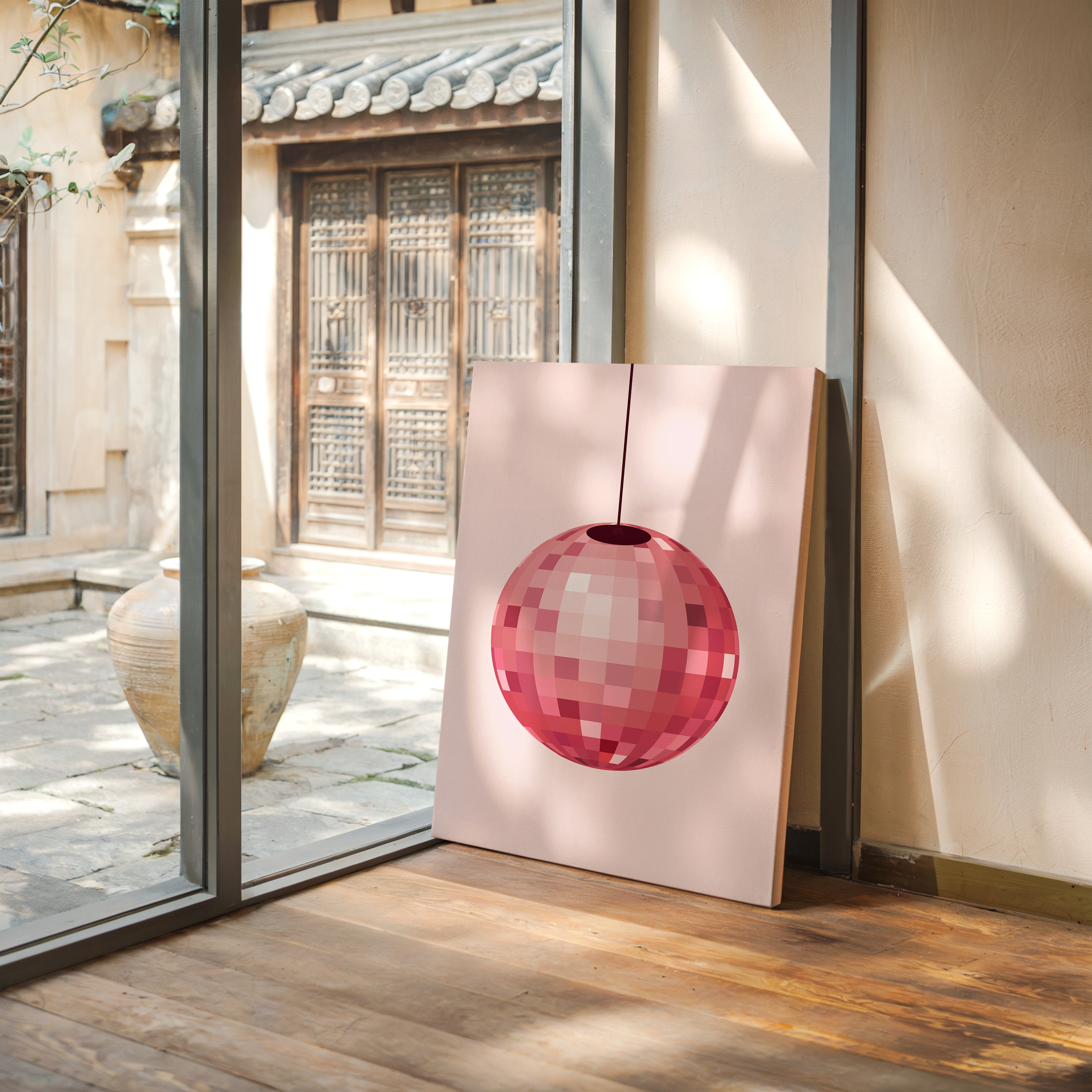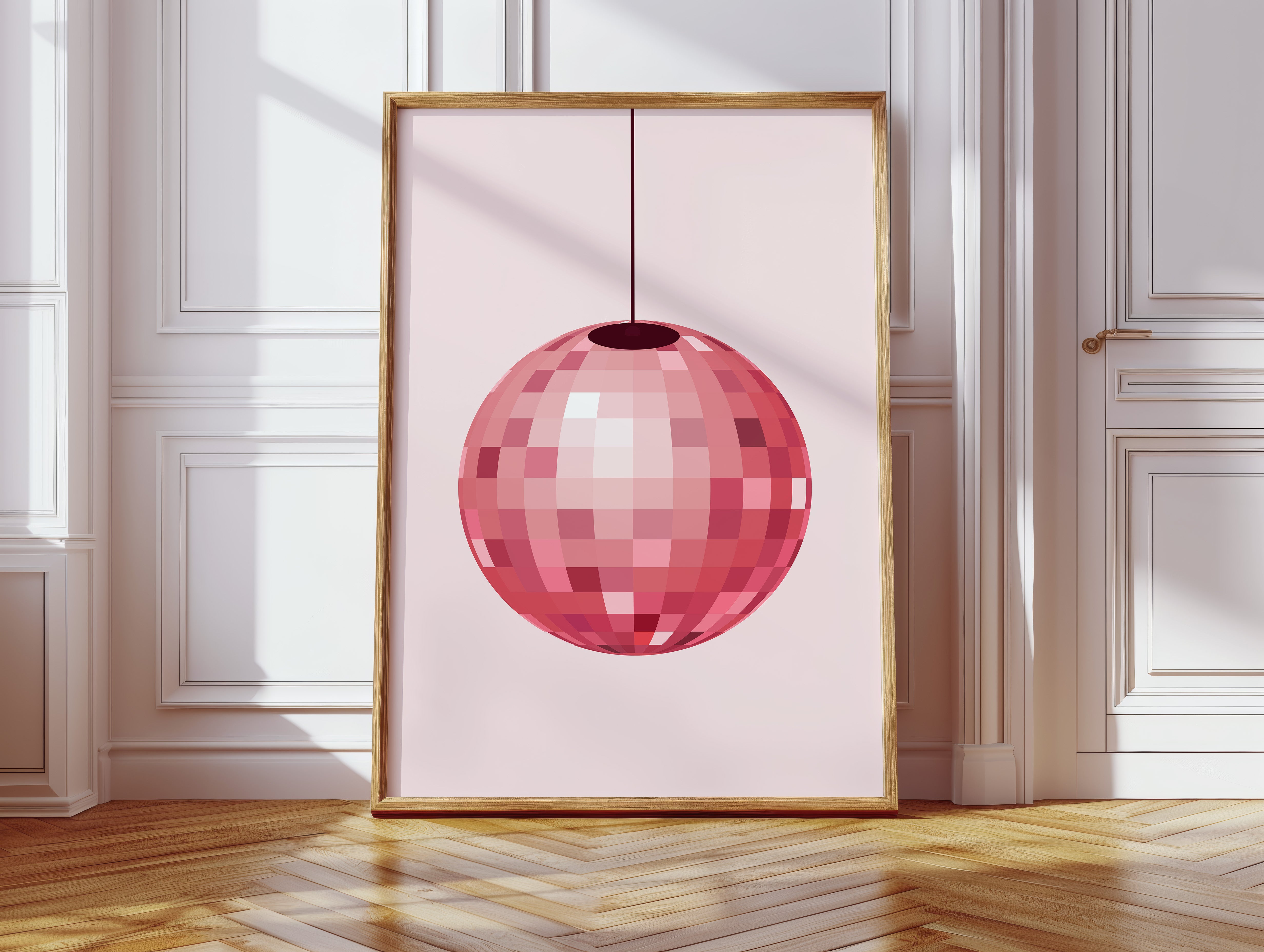A shimmering sphere catches light like captured stardust, each facet telling its own rosy story. This piece from our Contemporary collection celebrates the intersection of nostalgia and modern minimalism. The disco ball's warm pink hues create a gentle cascade of light, transforming ordinary spaces into dreamy sanctuaries where every reflection holds a memory of dancing till dawn. Its geometric patterns play with shadow and shine, creating an ever-changing display of rose gold warmth. Perfect for adding a touch of playful sophistication to a dining room or creating an unexpected focal point in a modern home office. Let this piece be your daily reminder that joy can be found in life's simple rotations.