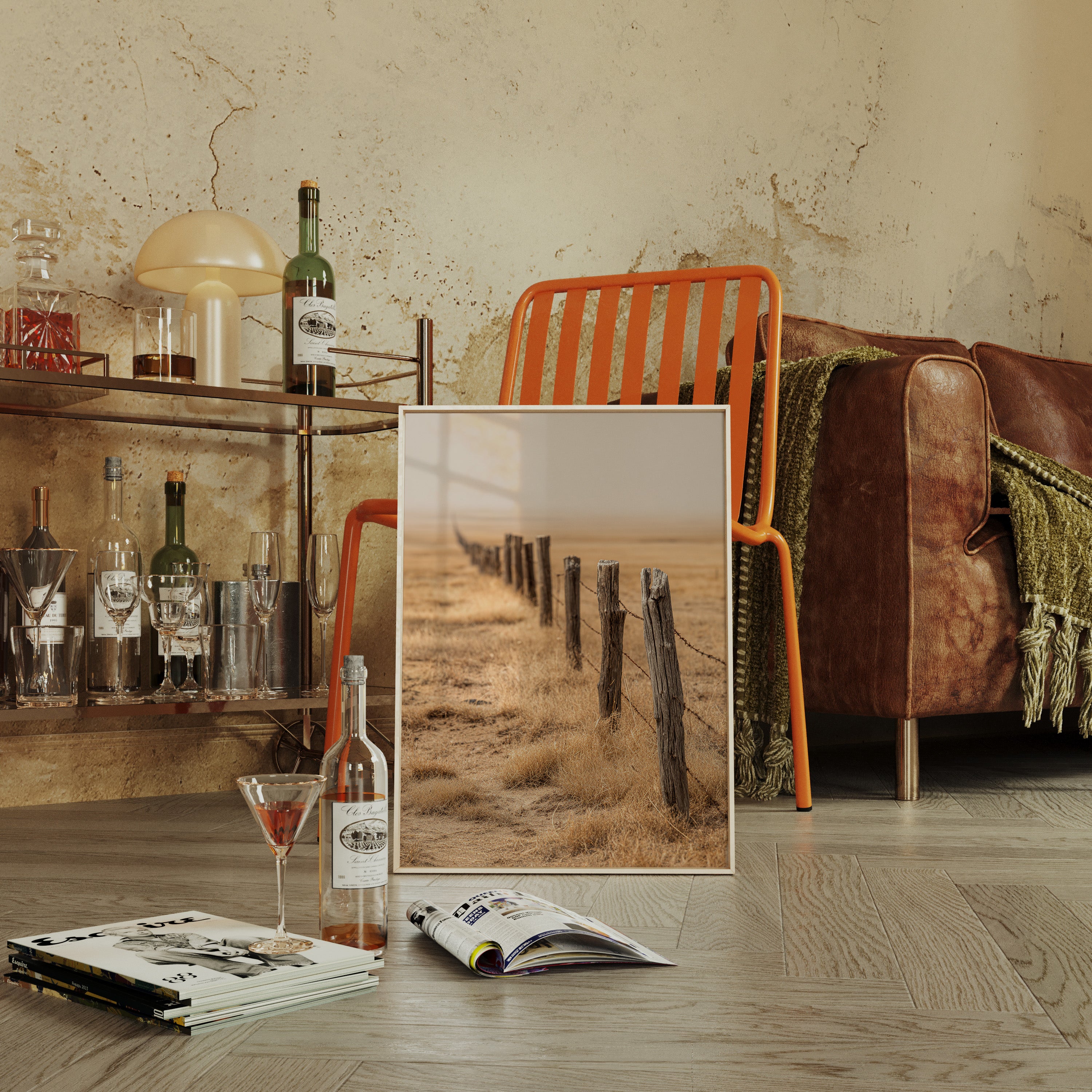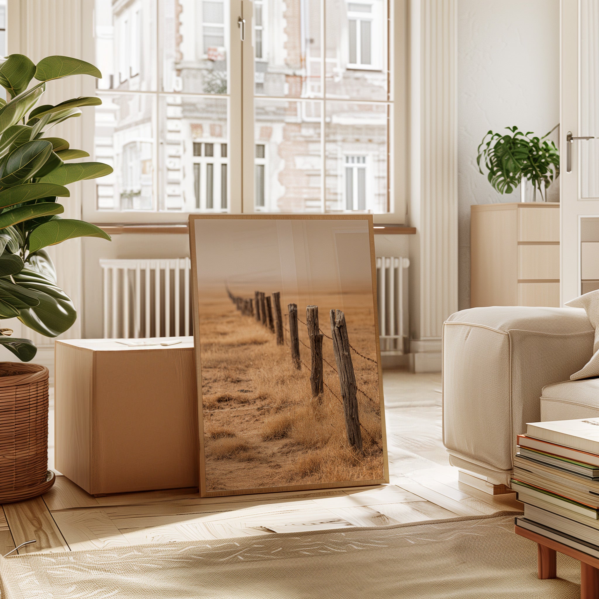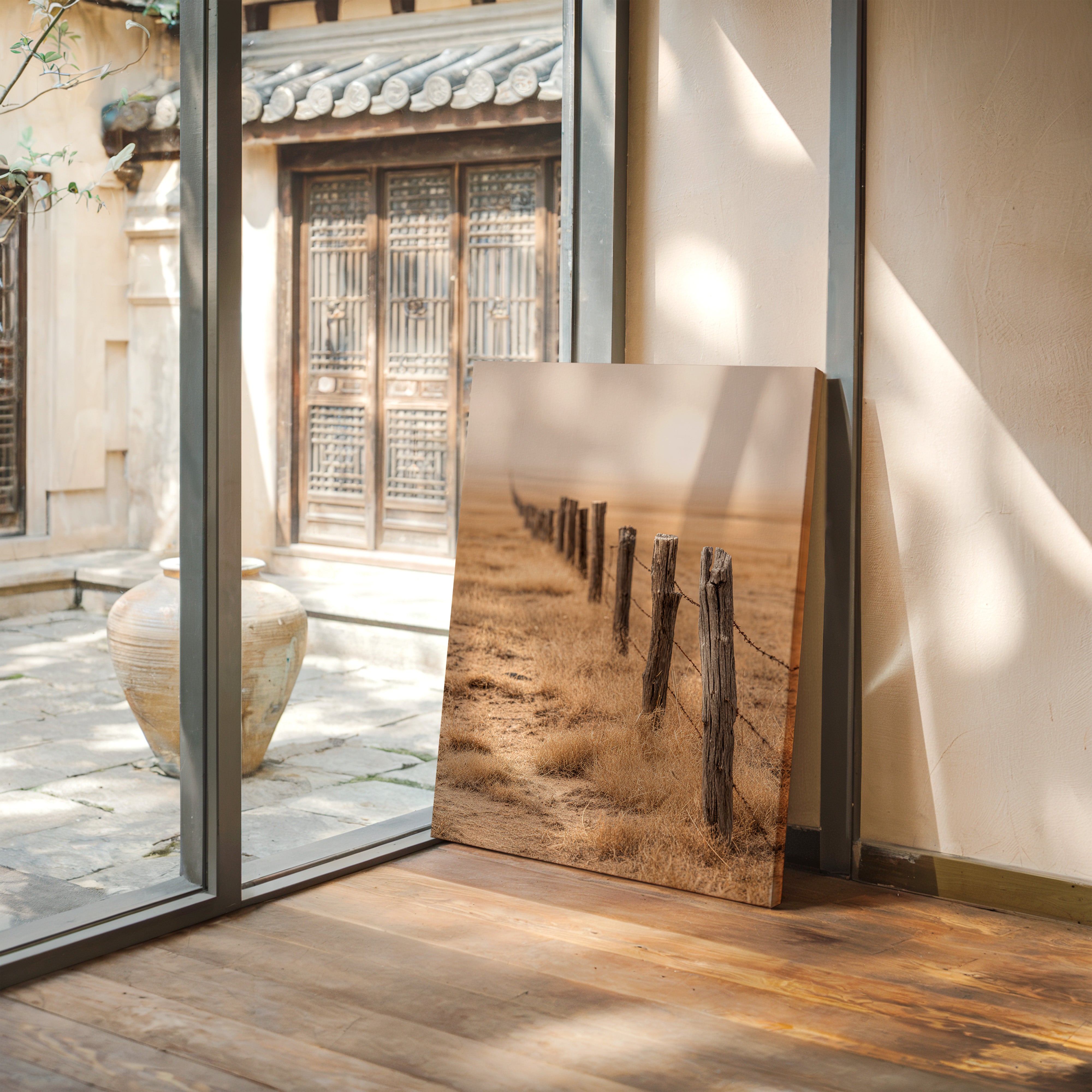 This artwork captures the serene beauty of a rustic landscape, inspired by the timeless elegance of warm minimalism. Each brushstroke echoes the simplicity and depth found in nature's untouched corners, inviting a moment of reflection and peace.