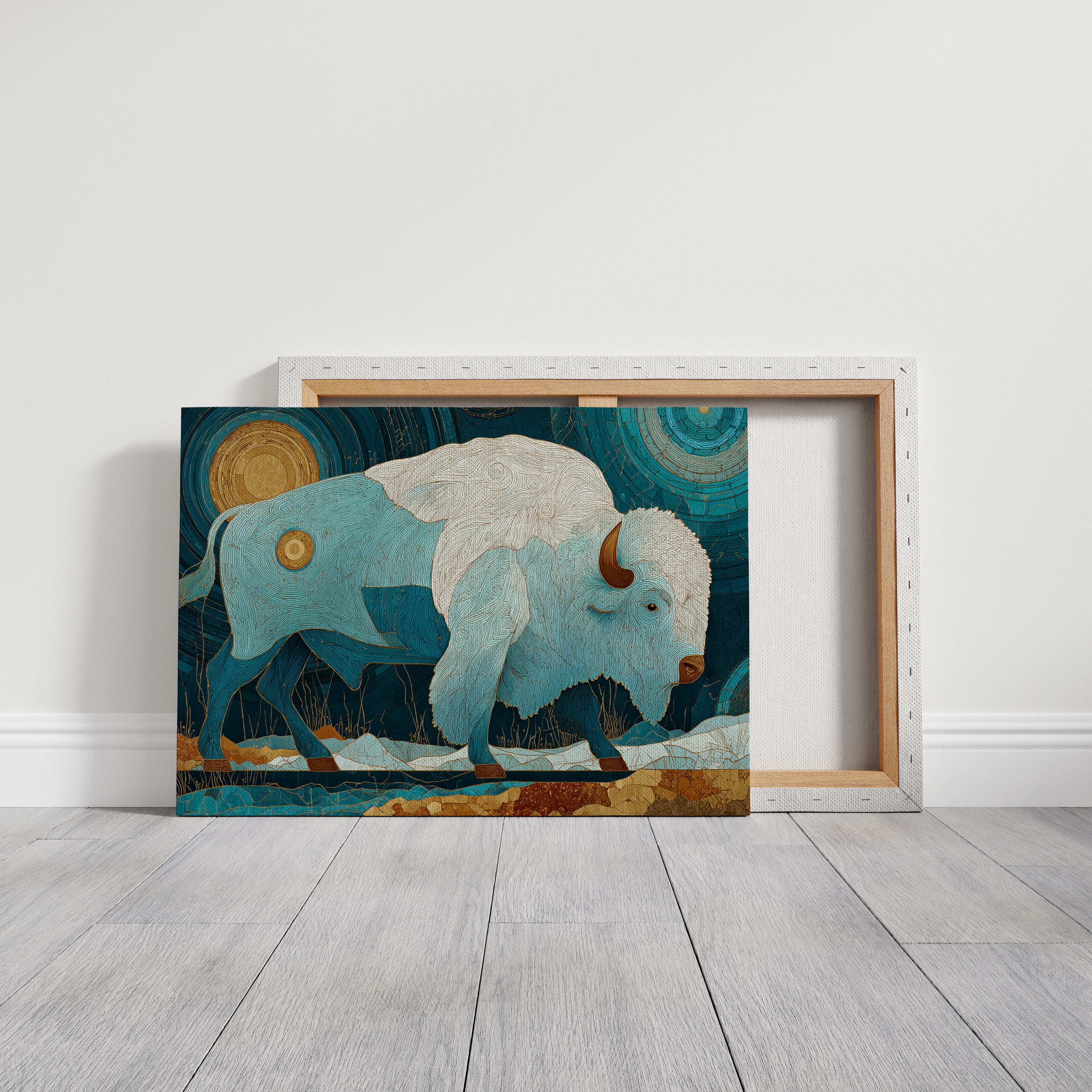 Sacred Bison Under Celestial Moons | Gallery Canvas / 11" x 9" | $65.00
