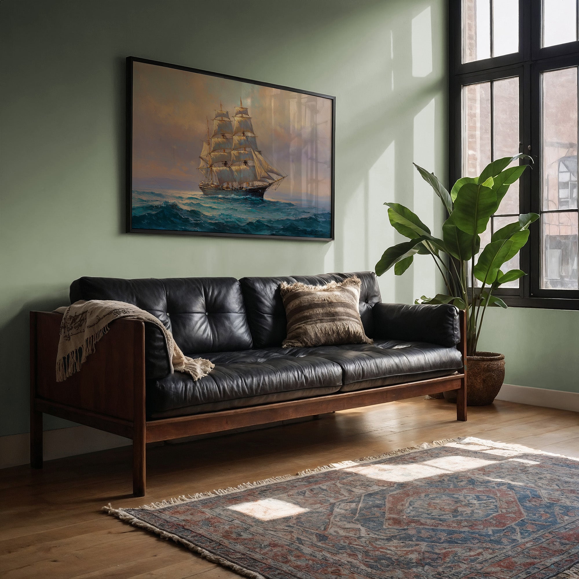 Your artwork should take up 60-75% of wall space above furniture. For standard sofas, choose 24"x36" or larger. When in doubt, go slightly bigger.