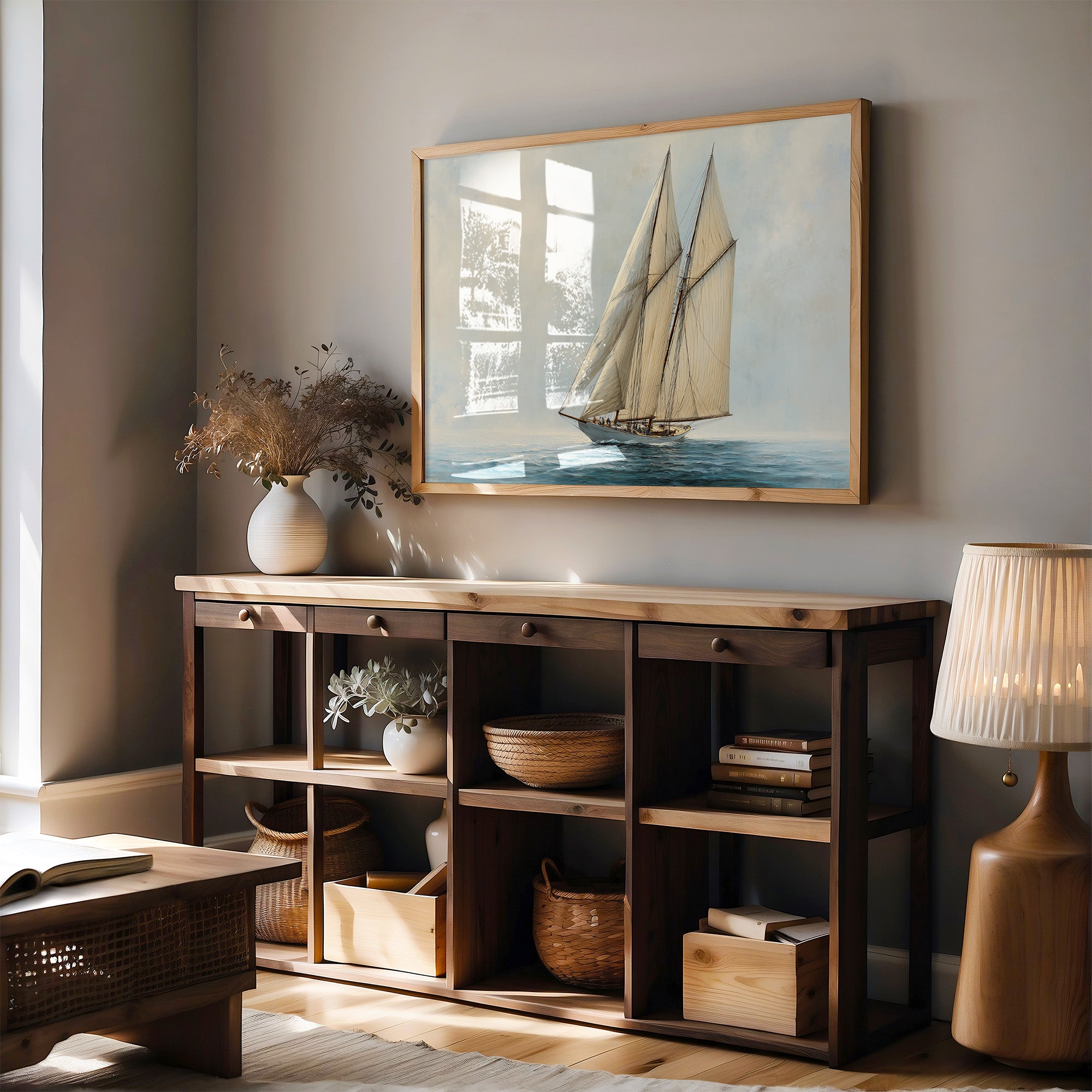 Your artwork should take up 60-75% of wall space above furniture. For standard sofas, choose 24"x36" or larger. When in doubt, go slightly bigger.