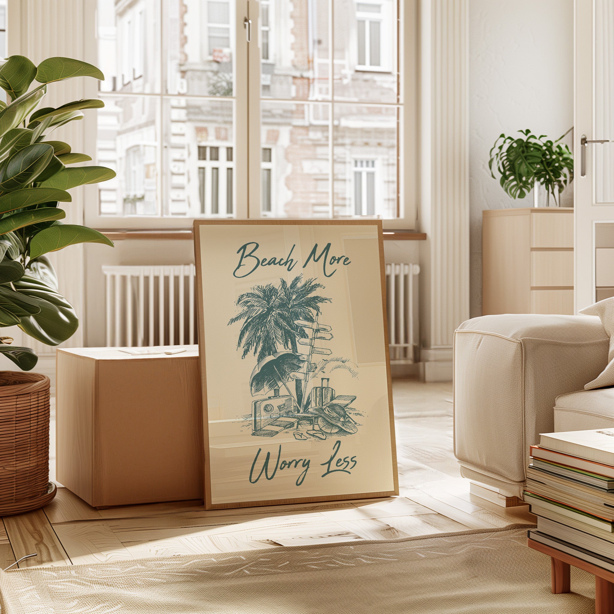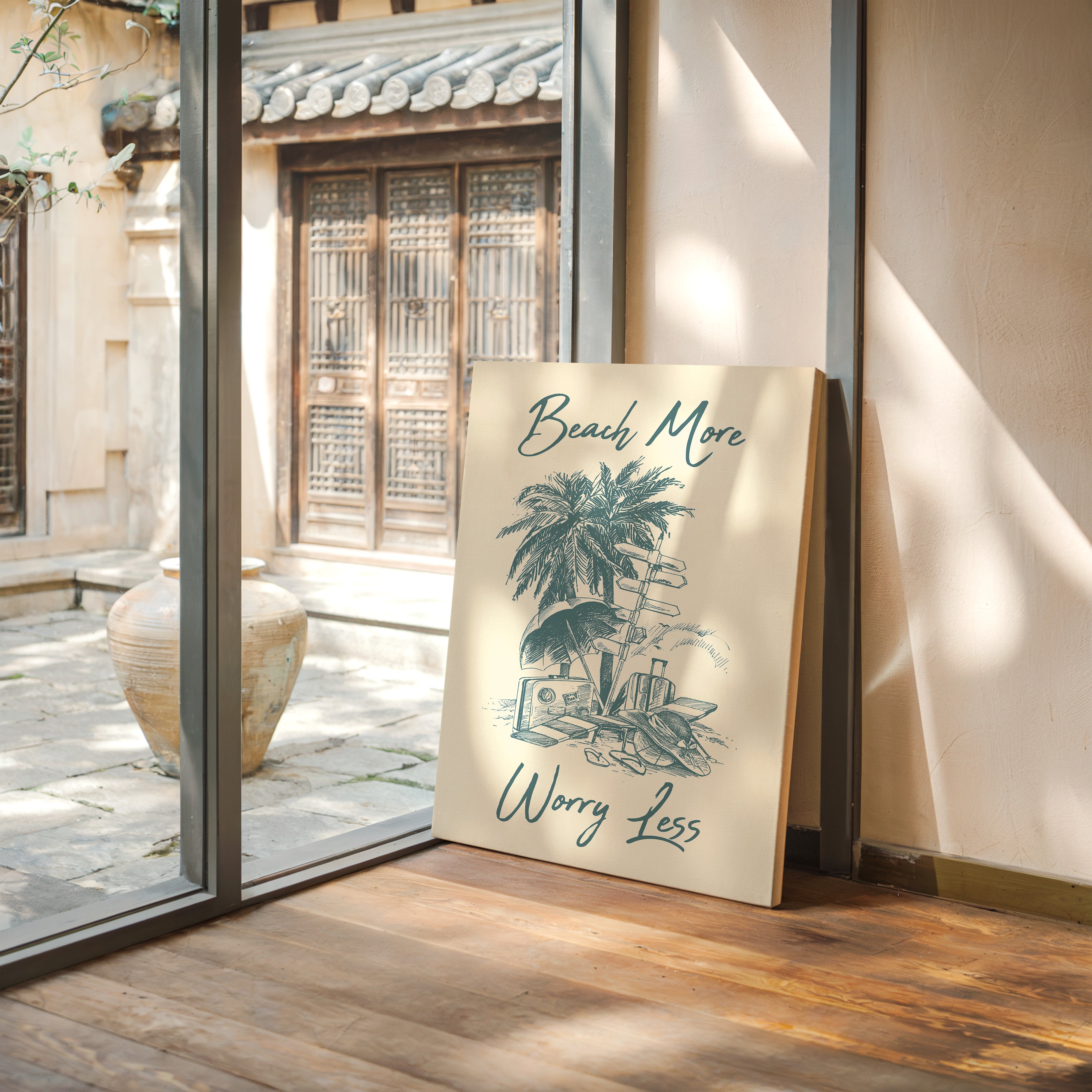Beneath the swaying palms, time lingers in a sun-drenched moment. This piece captures the essence of carefree days by the shore, inviting a sense of adventure and relaxation. Each elementthe vintage radio, sun hat, and suitcase tells a story of sun-soaked wanderlust and the joy of simple pleasures. Perfect for a coastal retreat or a cozy reading nook, this artwork evokes the spirit of summer escapes. Let it remind you to pause and savor life's fleeting moments.