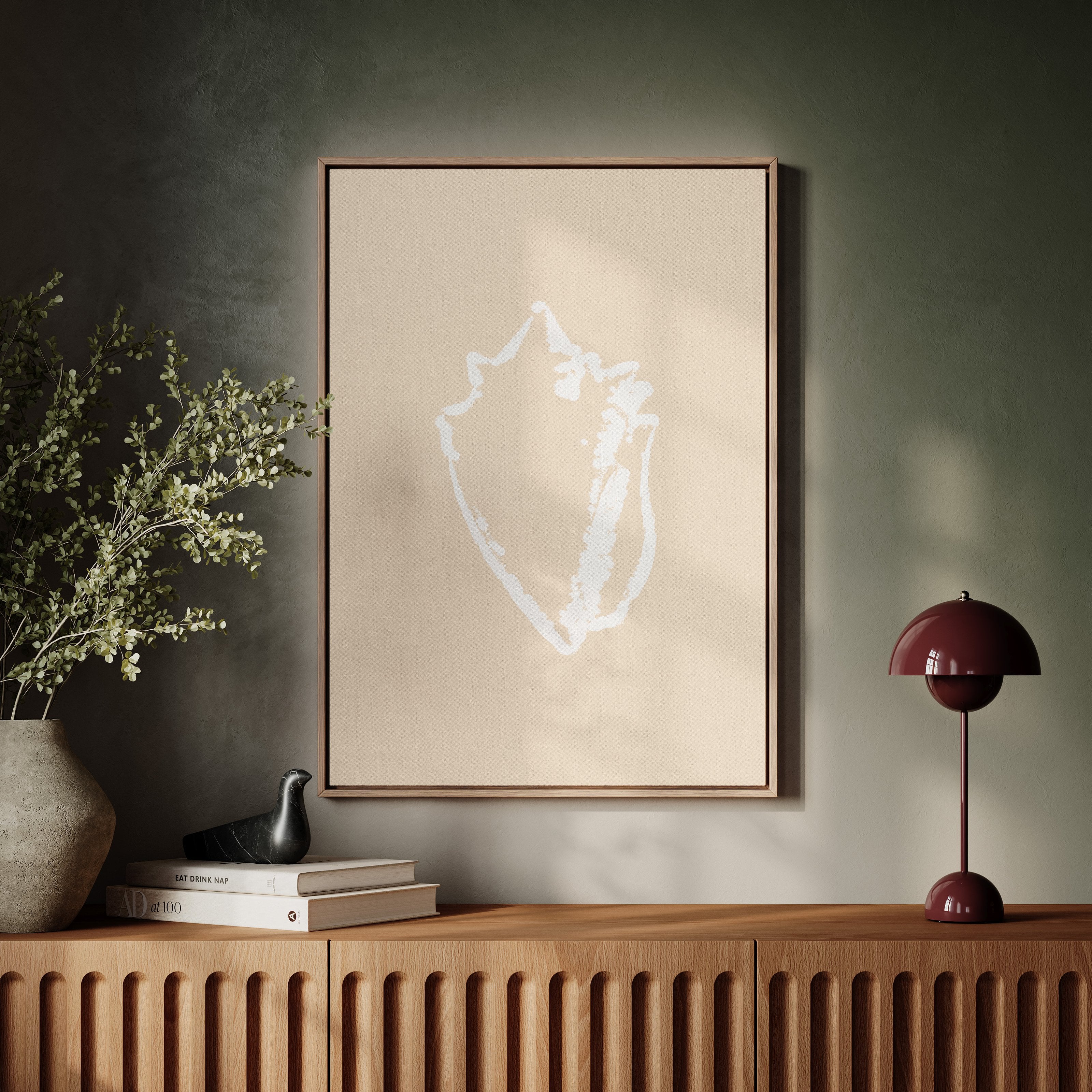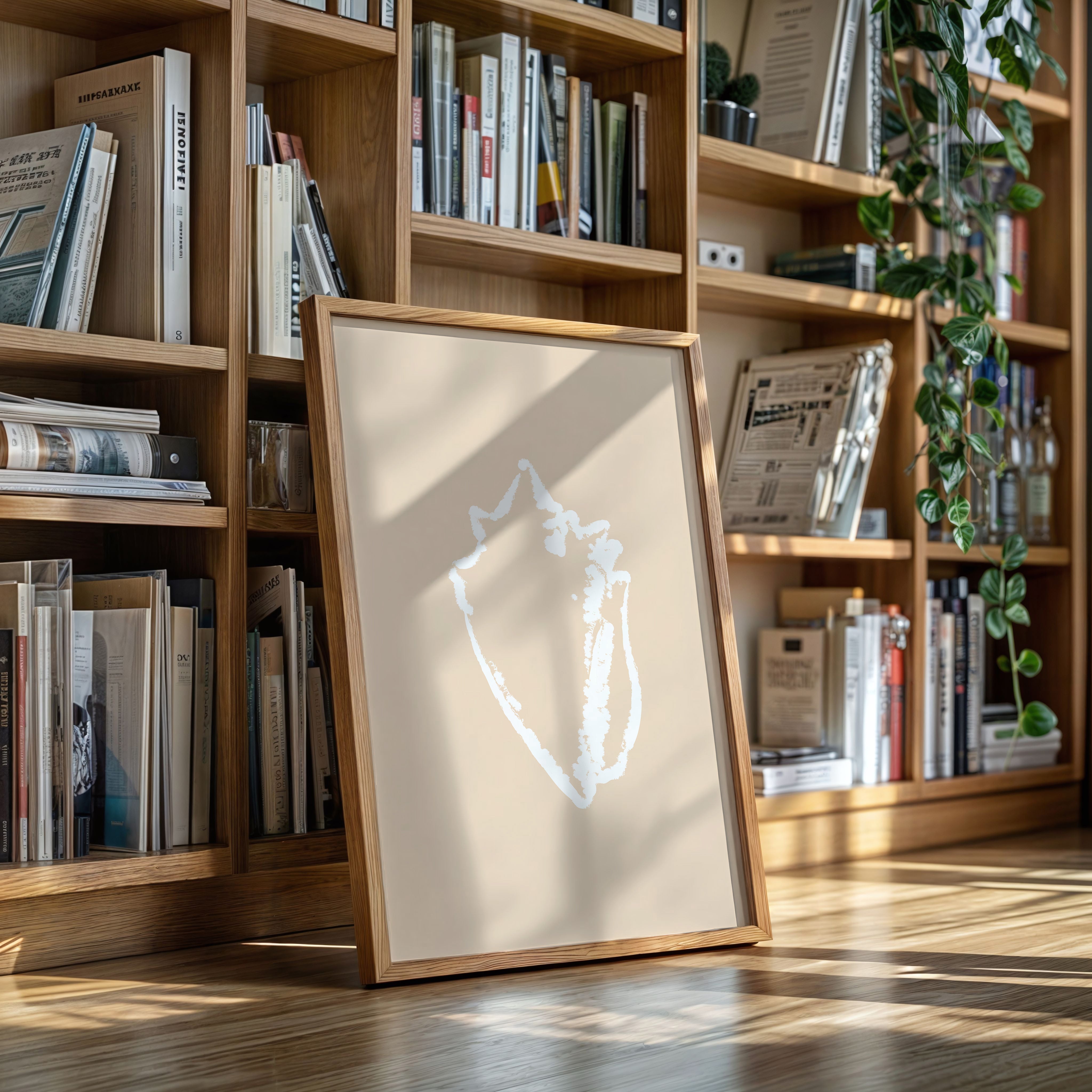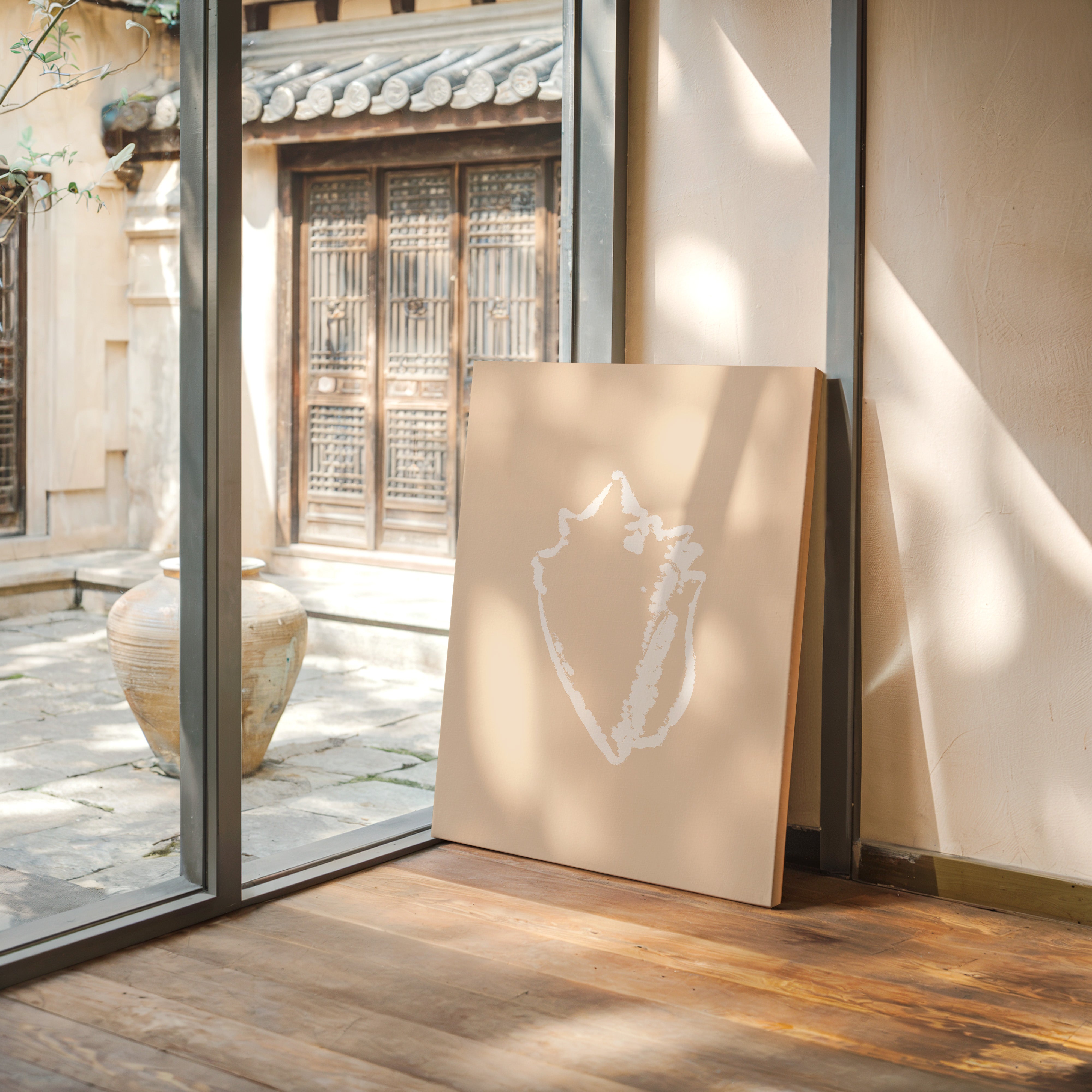 A delicate silhouette emerges against warm sand tones, capturing the graceful curves of nature's architecture. This piece from our Contemporary collection celebrates minimalist beauty through subtle contrast and negative space. The shell's organic form tells a story of tidal rhythms and ocean memories, its white outline floating ethereally on the blush background like a treasured specimen carefully preserved. Perfect for adding a touch of coastal serenity to a modern bedroom or bringing refined natural elements to a sophisticated living space. Each viewing reveals new details in its masterfully simple composition.