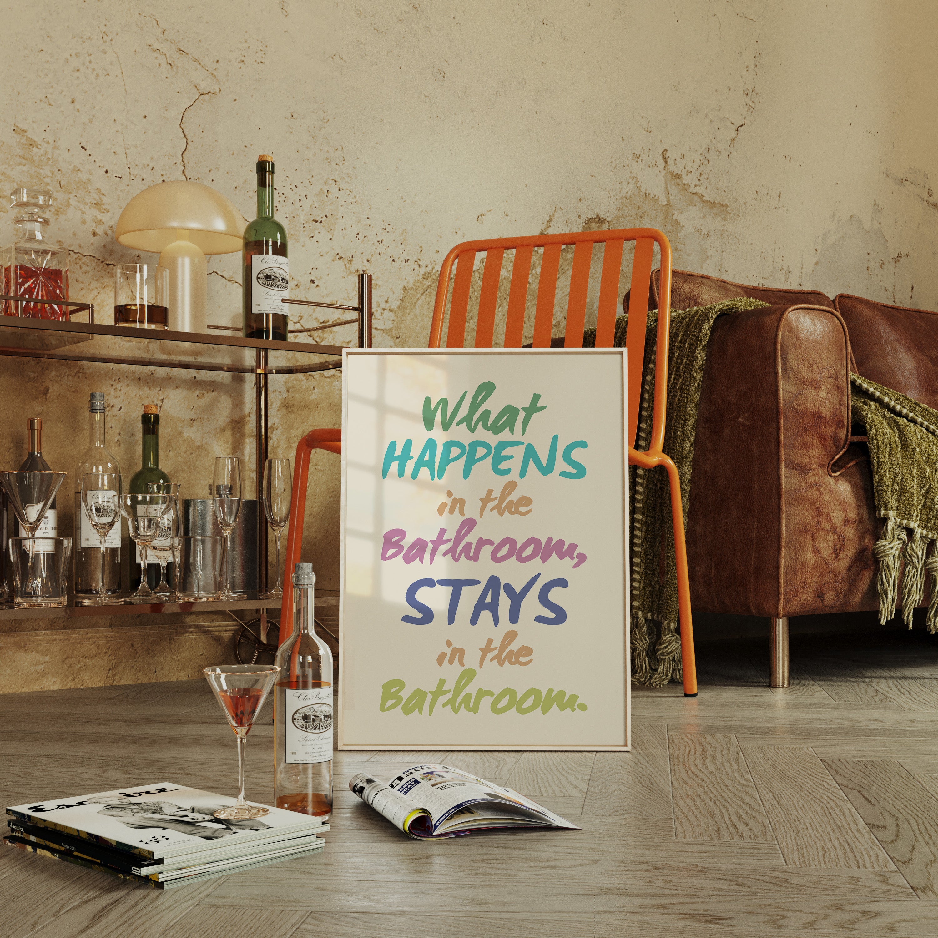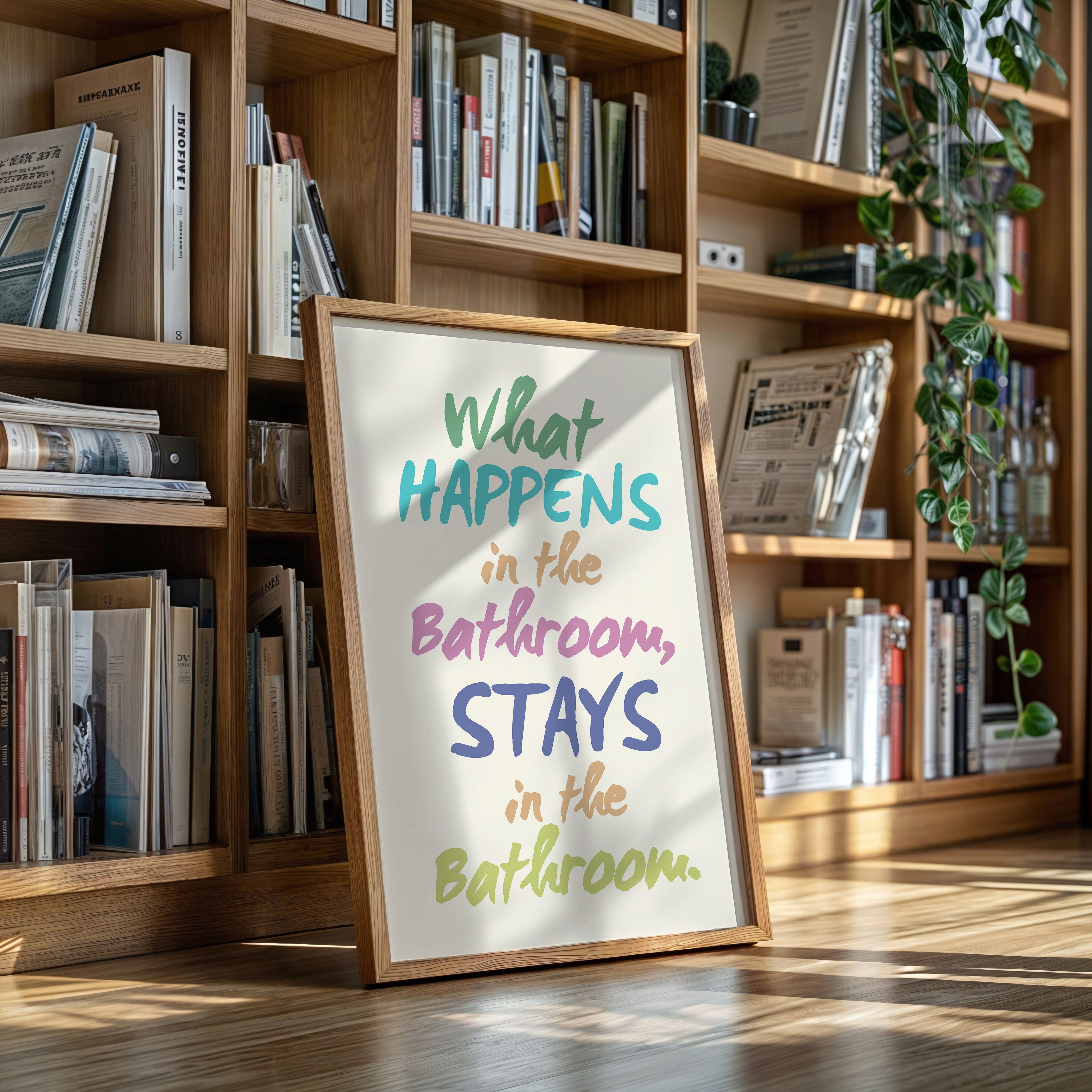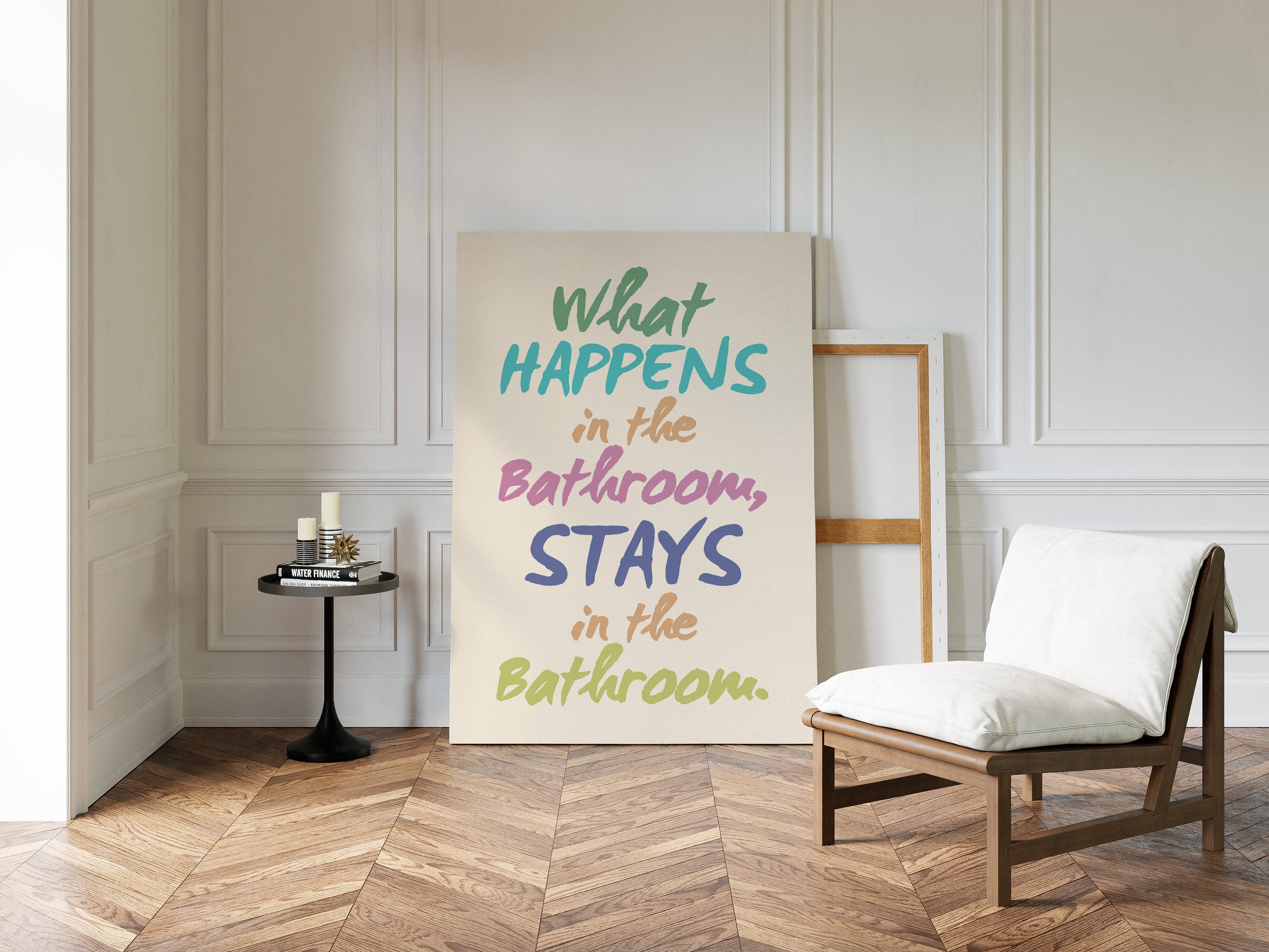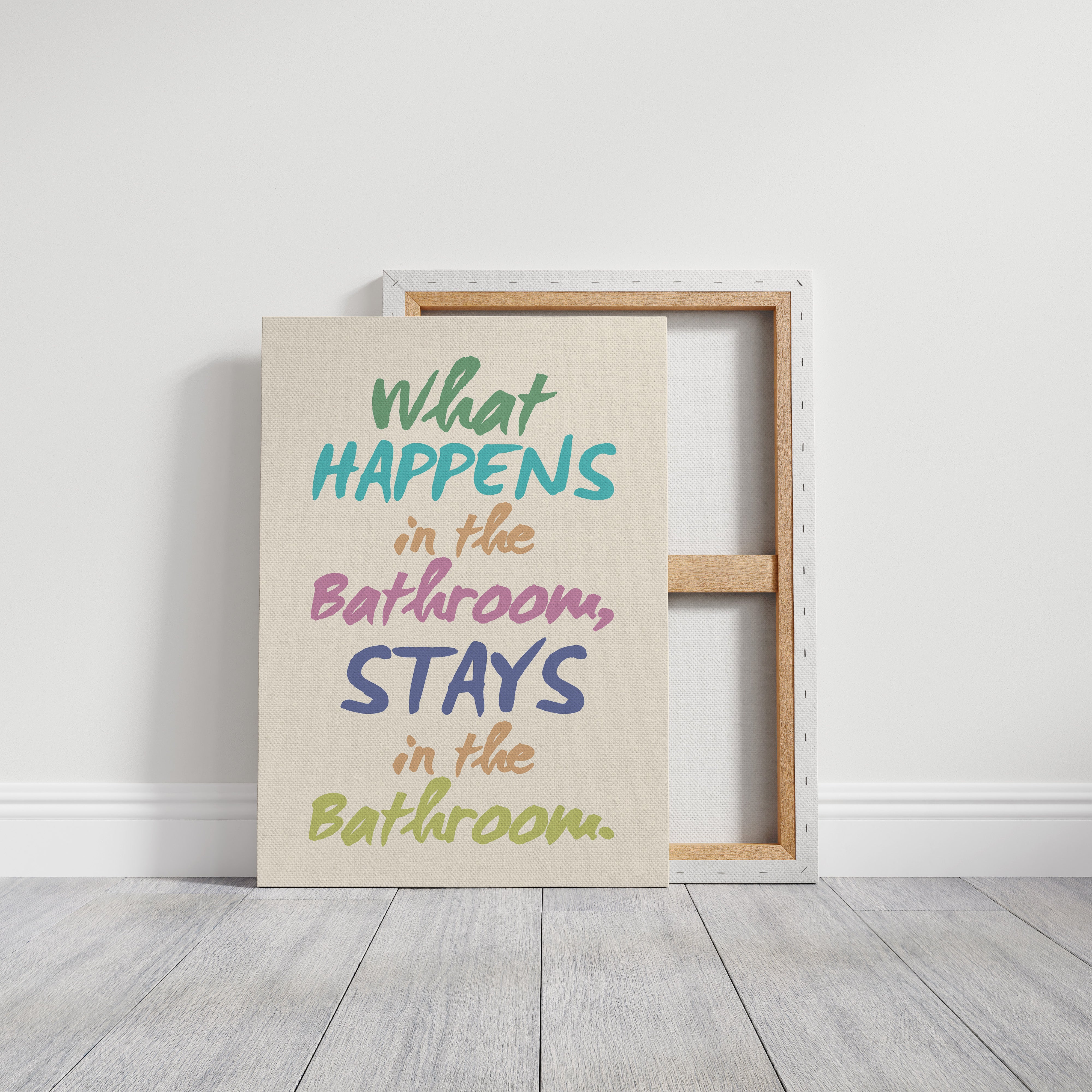 Playful pastels dance across cream-colored canvas, bringing lighthearted wisdom to life through bold brush strokes and gentle humor. This piece from our Contemporary collection perfectly captures the essence of modern typography art with a dash of wit. The cascading letters in soothing mint, turquoise, and lavender create a rhythmic flow that draws the eye downward, while the message itself delivers a knowing smile. A gentle reminder that some moments are meant to be private, wrapped in the comfort of pastel hues and casual elegance. Perfect for adding a touch of personality to powder rooms or master baths, this piece sparks joy while maintaining sophistication. The soft color palette ensures it complements any bathroom decor while adding just the right amount of charm and character.