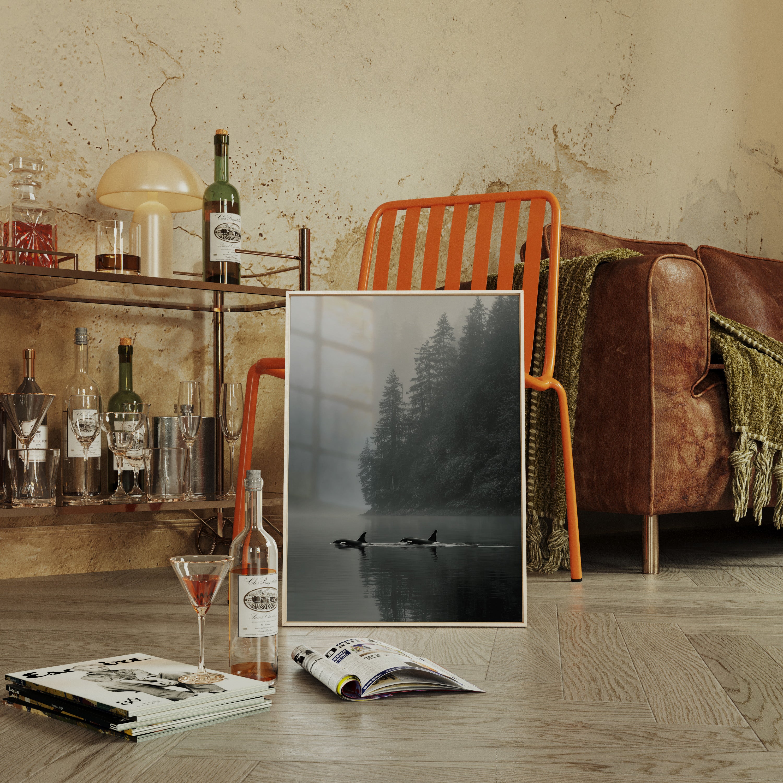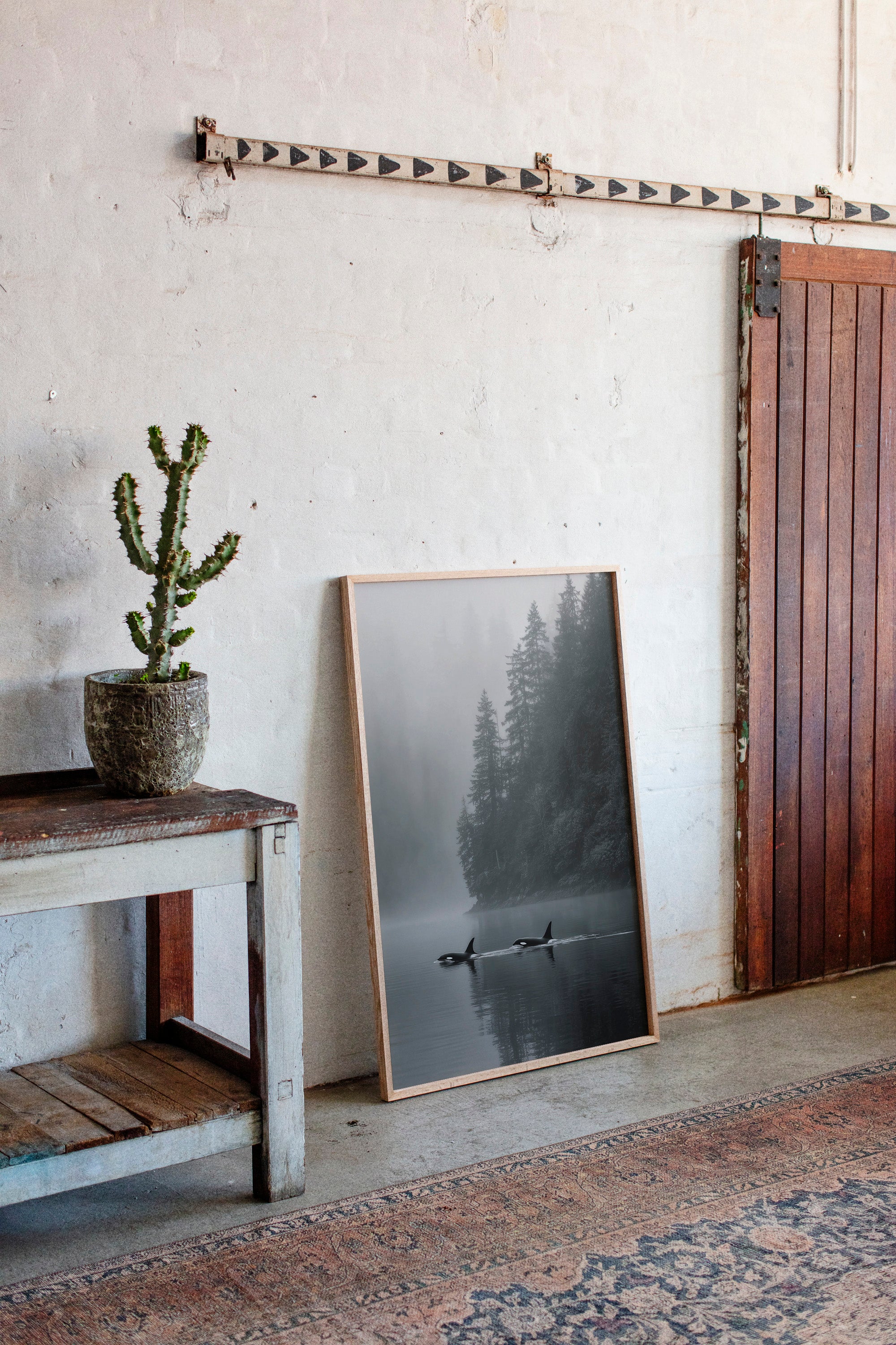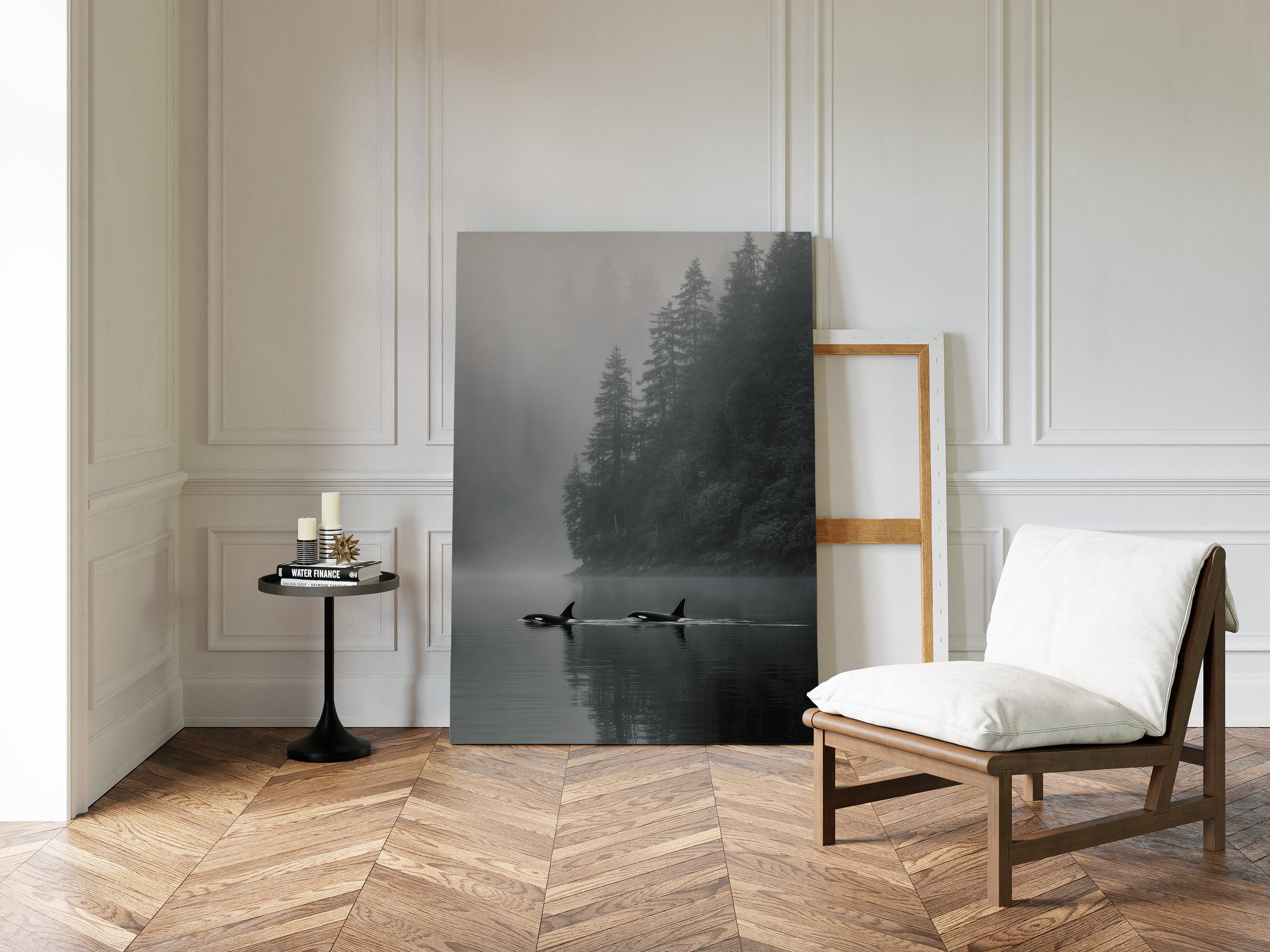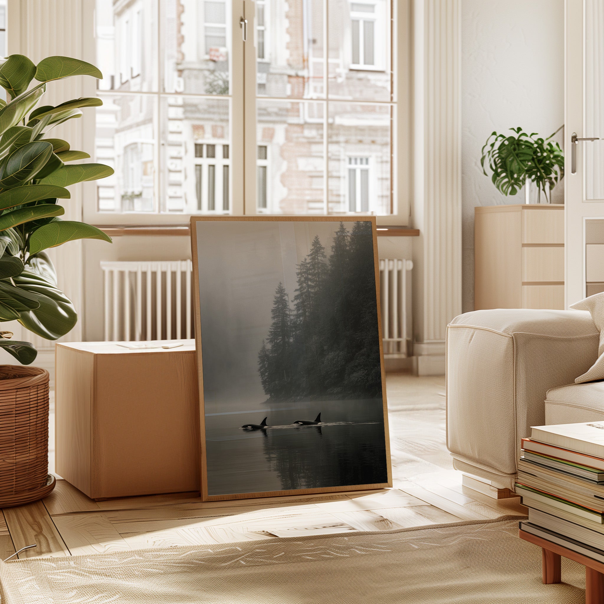 In the stillness of dawn, two orcas glide through a curtain of fog, their graceful movements weaving stories into the cool, reflective waters. This piece draws inspiration from the beauty of nature's quiet moments, capturing the essence of the artisanal spirit. The monochrome palette enhances the mystery, with soft greys and deep blacks that evoke a sense of serene isolation, inviting viewers to reflect on their own journeys through the mist of life. Ideal for a tranquil space, this piece complements serene bedrooms or calming reading nooks, where reflection and peace reign.