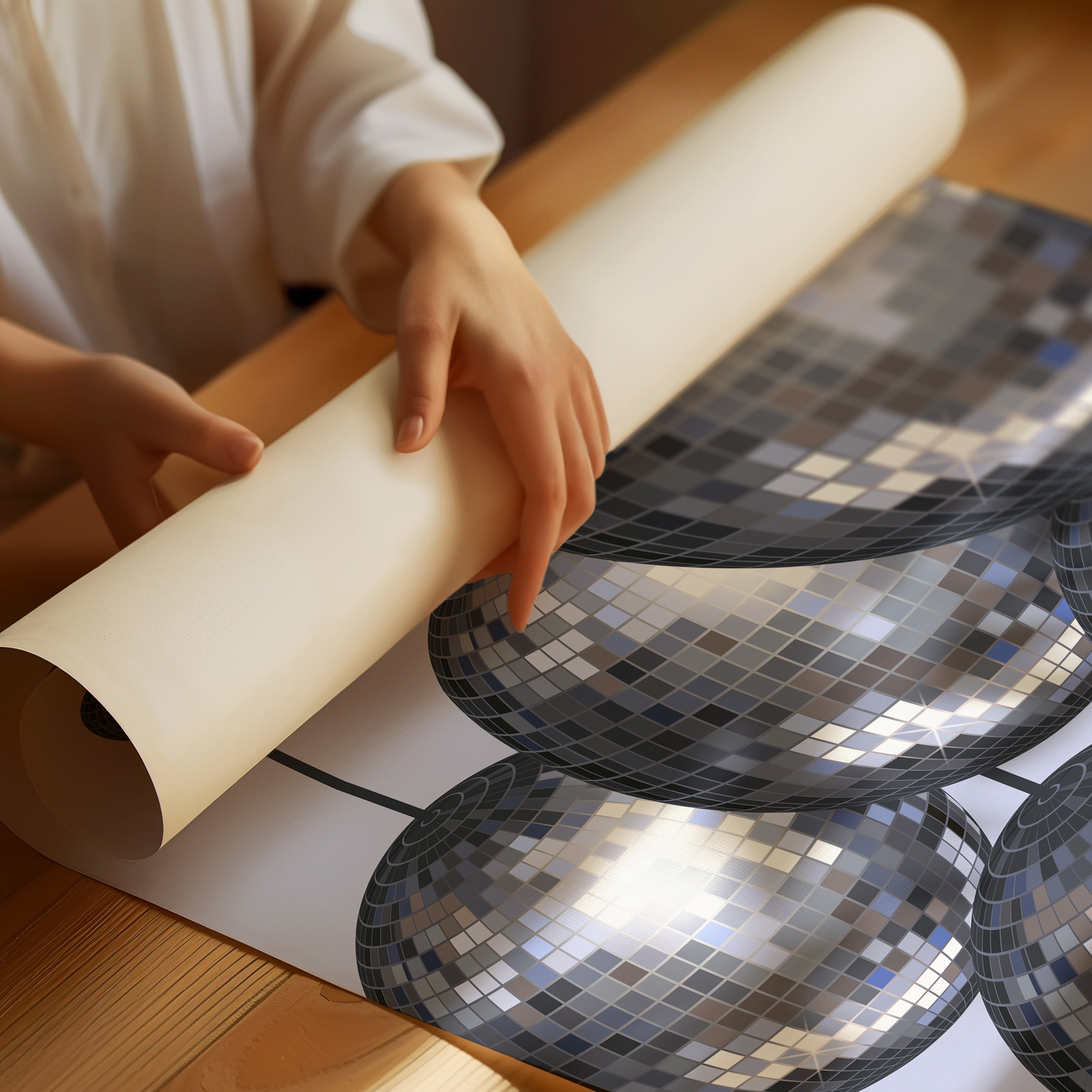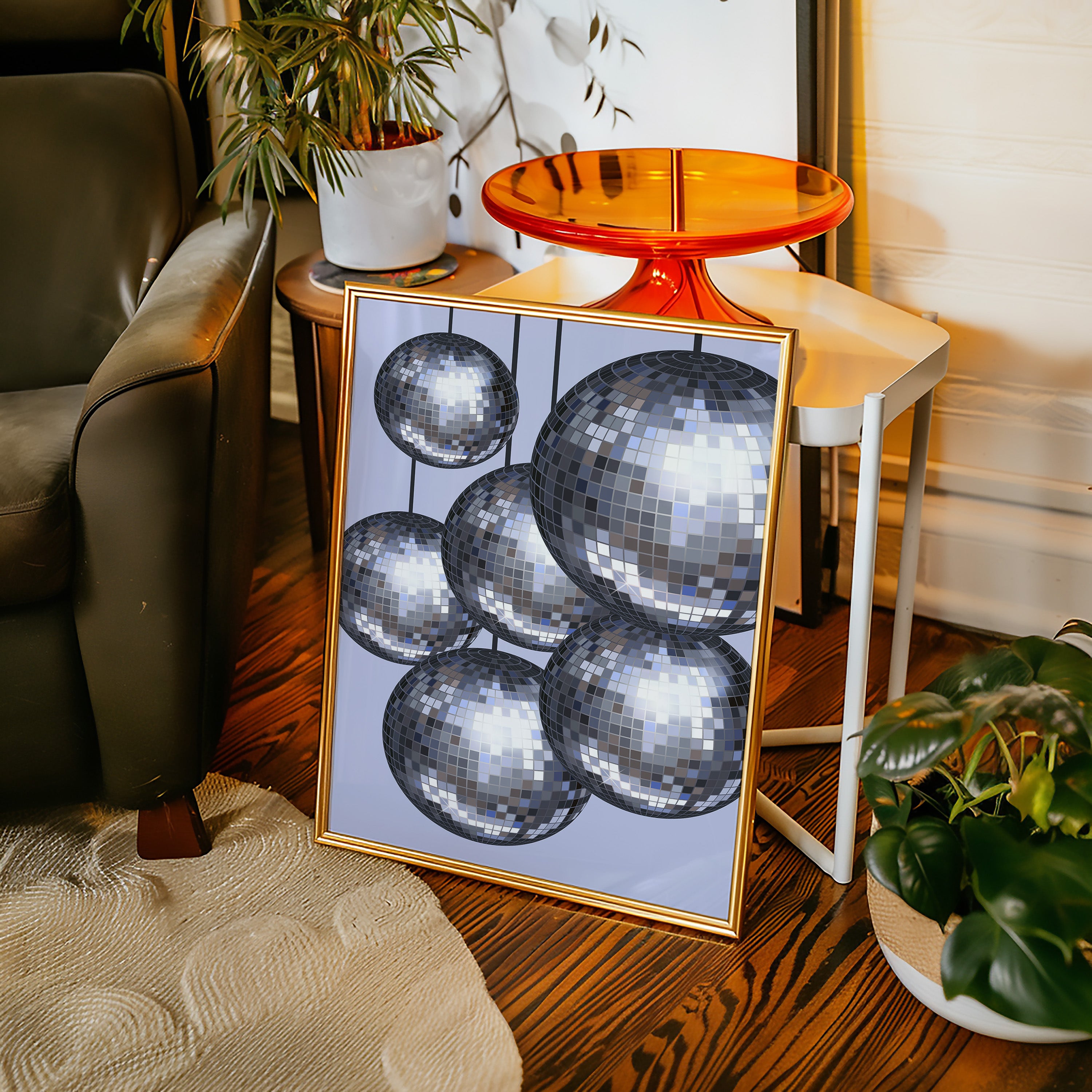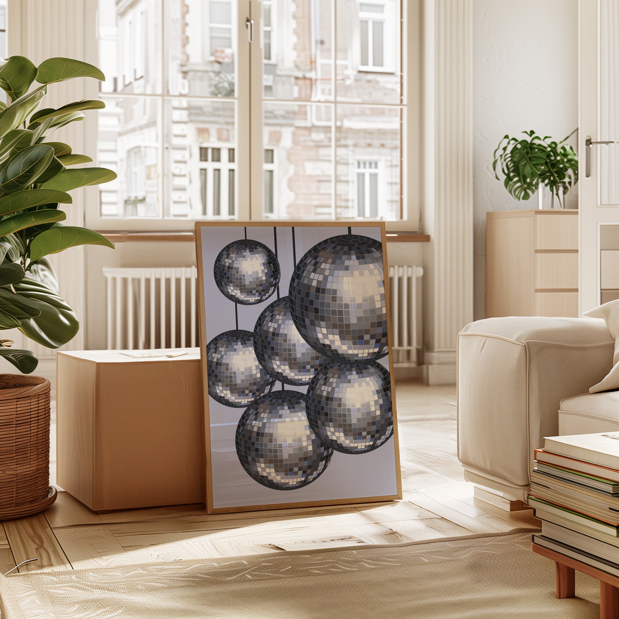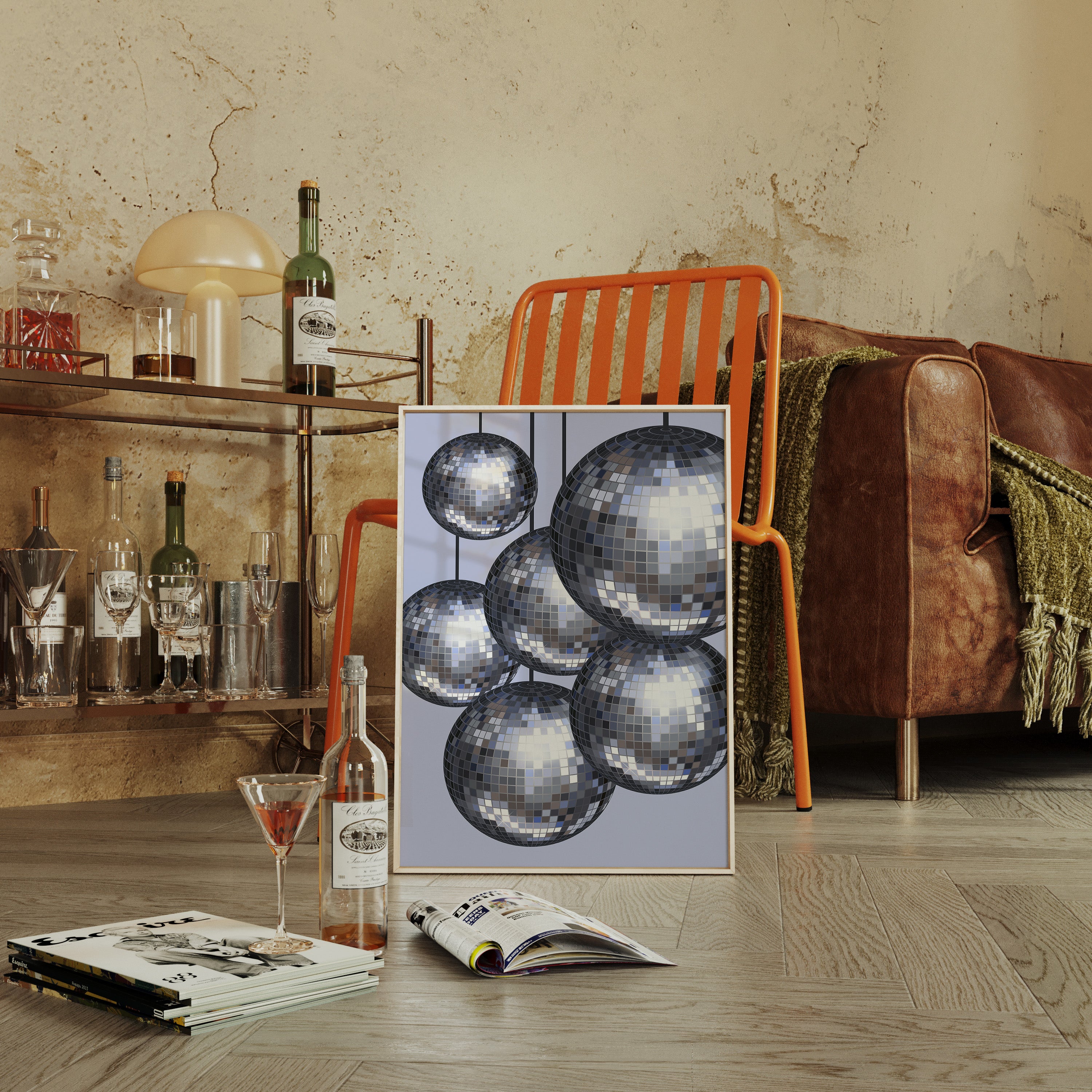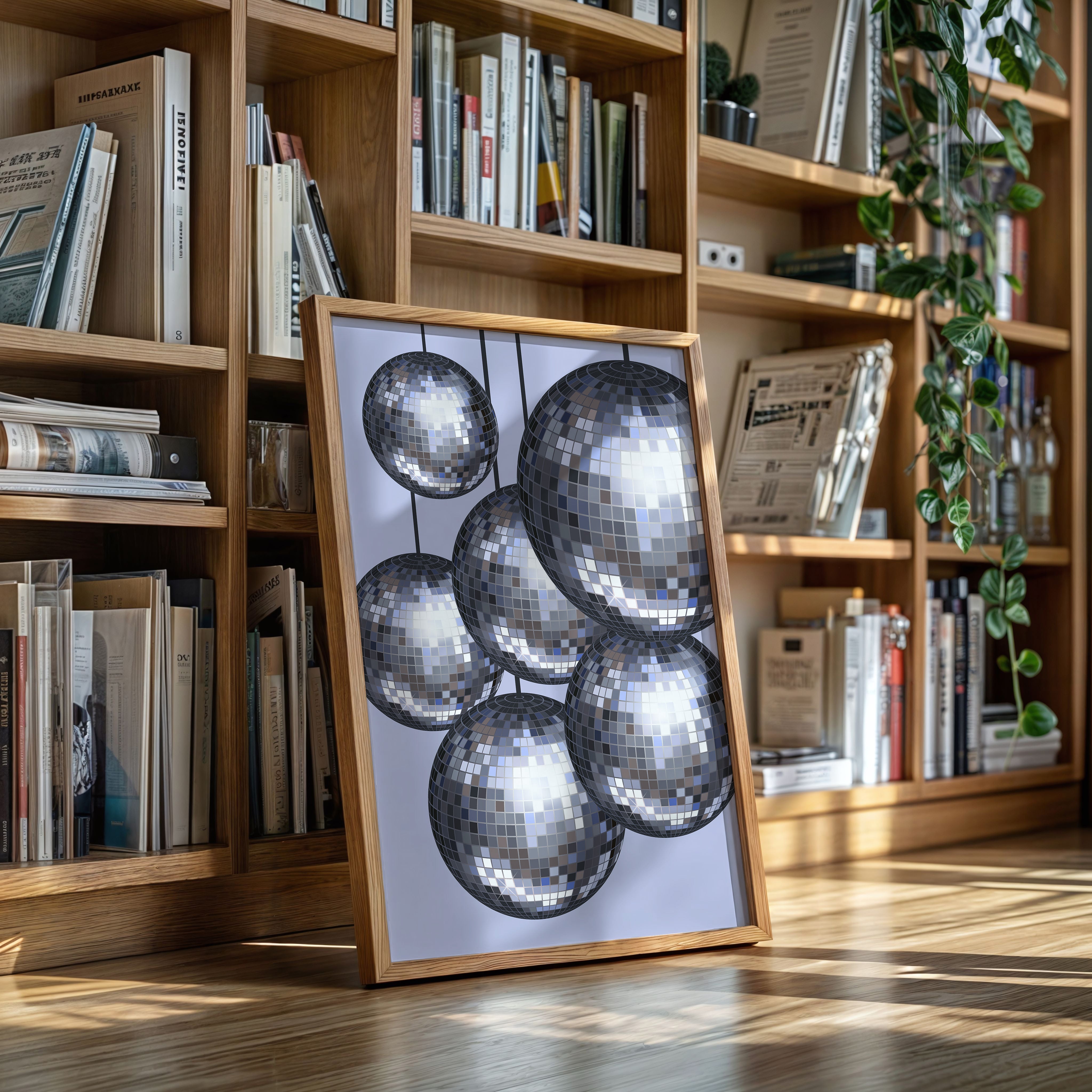 Suspended in twilight's embrace, mirror balls catch and scatter light like stars fallen to earth. This piece from our Contemporary collection captures the electric anticipation of nightlife in elegant suspension. Each faceted sphere reflects fragments of possibility, creating a constellation of metallic moments frozen in time. The cool silver tones play against a soft lavender backdrop, while geometric patterns create a mesmerizing dance of light and shadow. Perfect for adding glamour to a modern living space or bringing sophisticated energy to an entertainment area. This statement piece invites viewers to lose themselves in its infinite reflections, each tiny mirror telling its own story of nights yet to unfold.