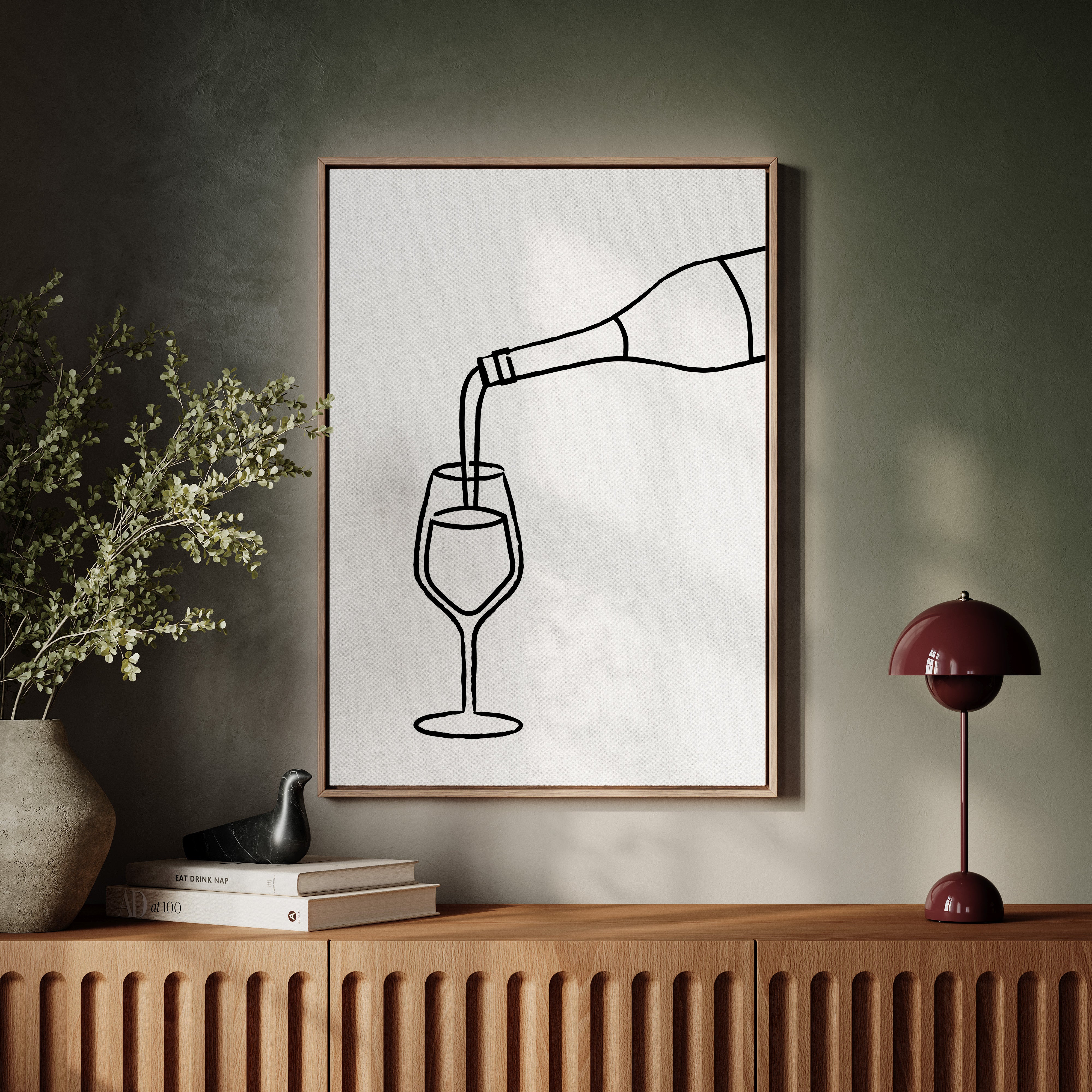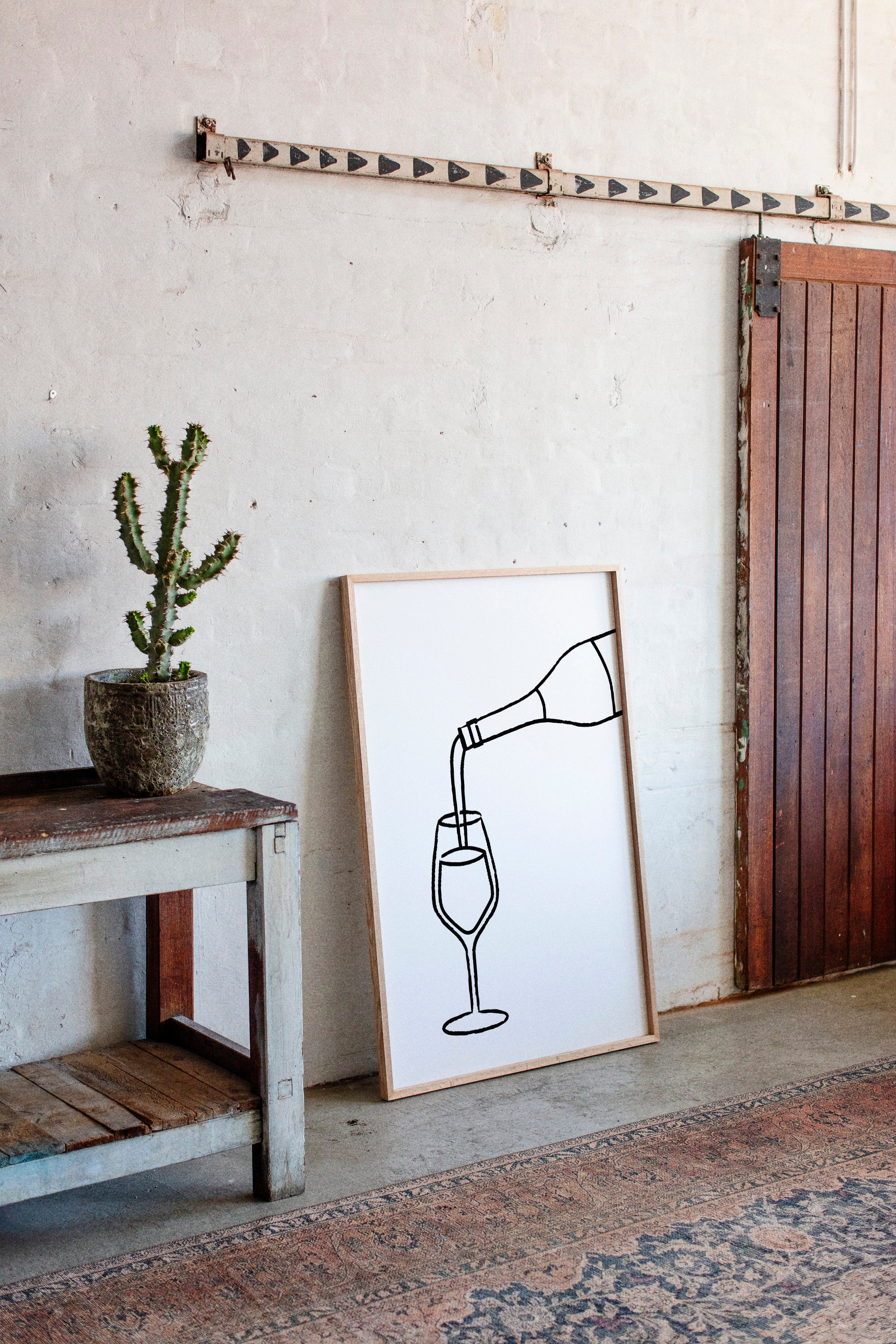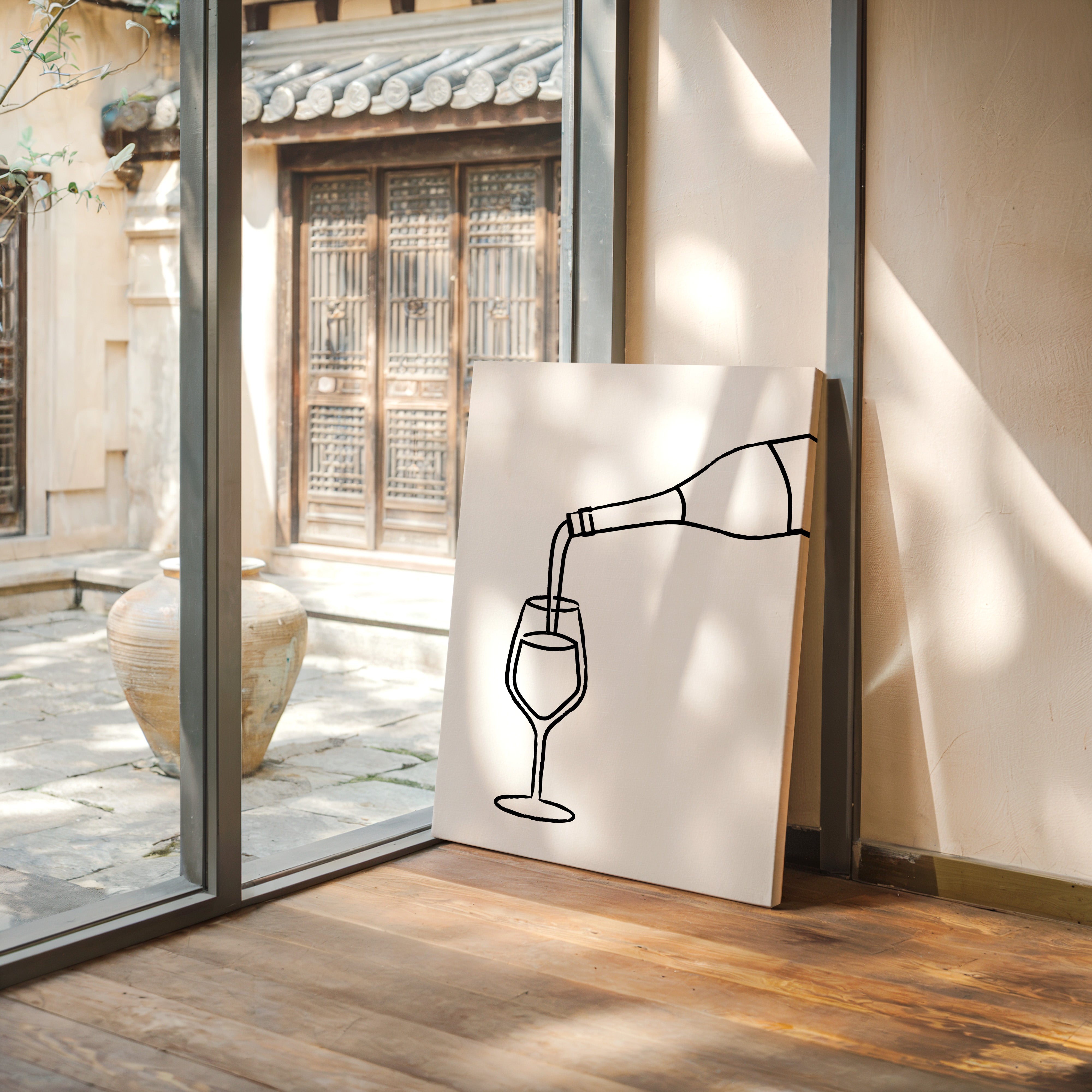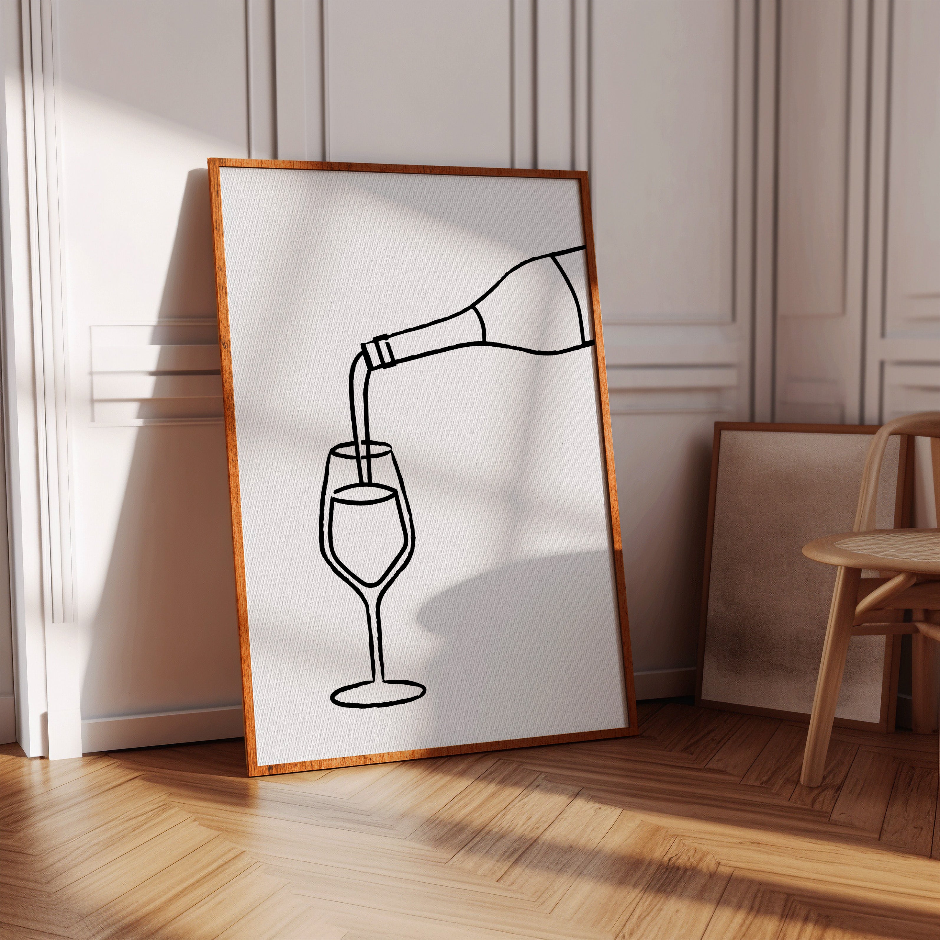 A single, graceful line captures the timeless ritual of wine being poured, each drop holding possibilities. This piece from our Contemporary collection celebrates minimalism through bold, purposeful strokes. The stark black and white composition draws focus to the elegant curve of the bottle and the waiting glass below, suggesting both movement and stillness in perfect balance. The clean lines and negative space create a sophisticated statement that speaks to modern sensibilities while honoring age-old traditions. Perfect for dining rooms, wine cellars, or kitchen spaces where it adds both artistic merit and conversational charm. Each viewing invites a moment to pause and appreciate life's simple ceremonies.