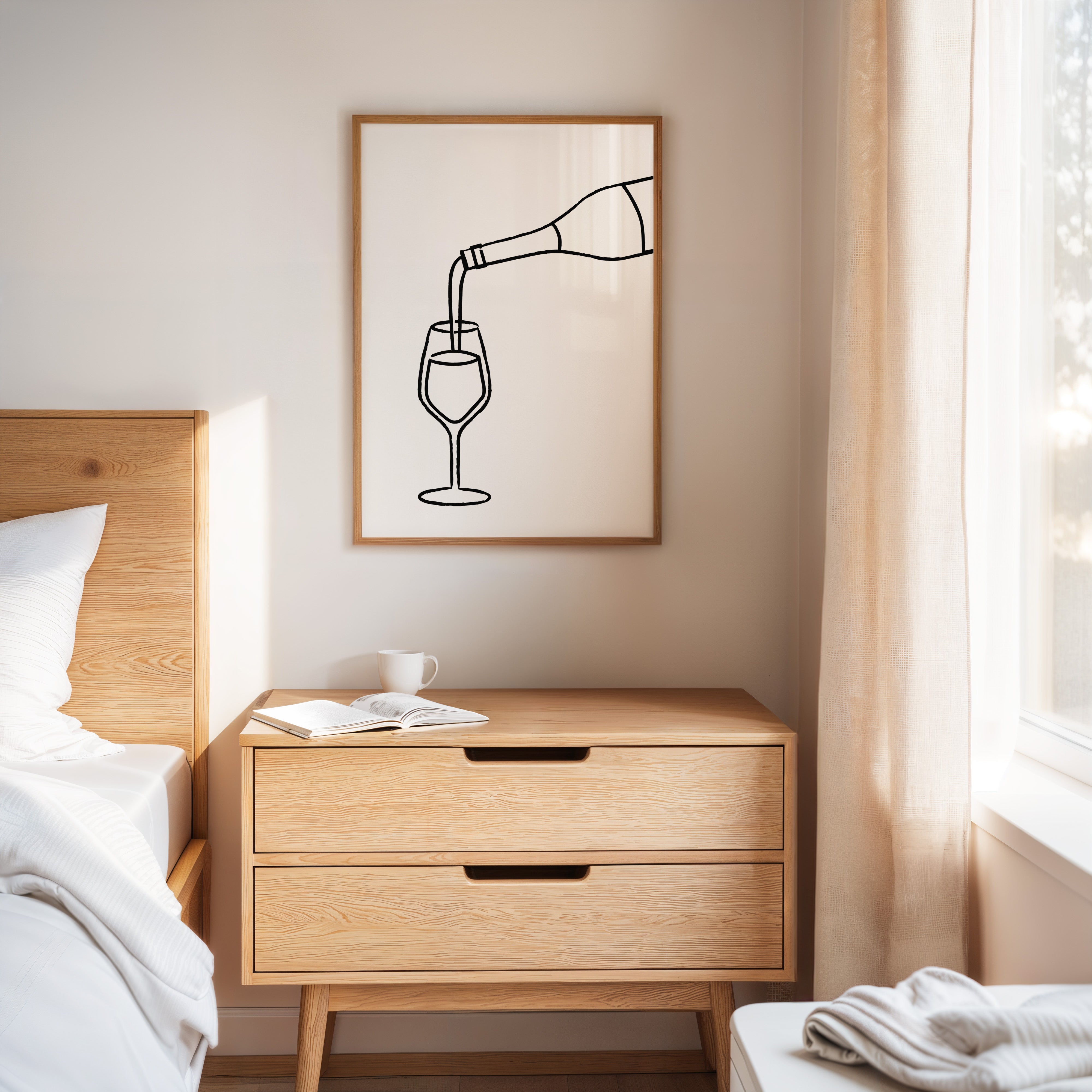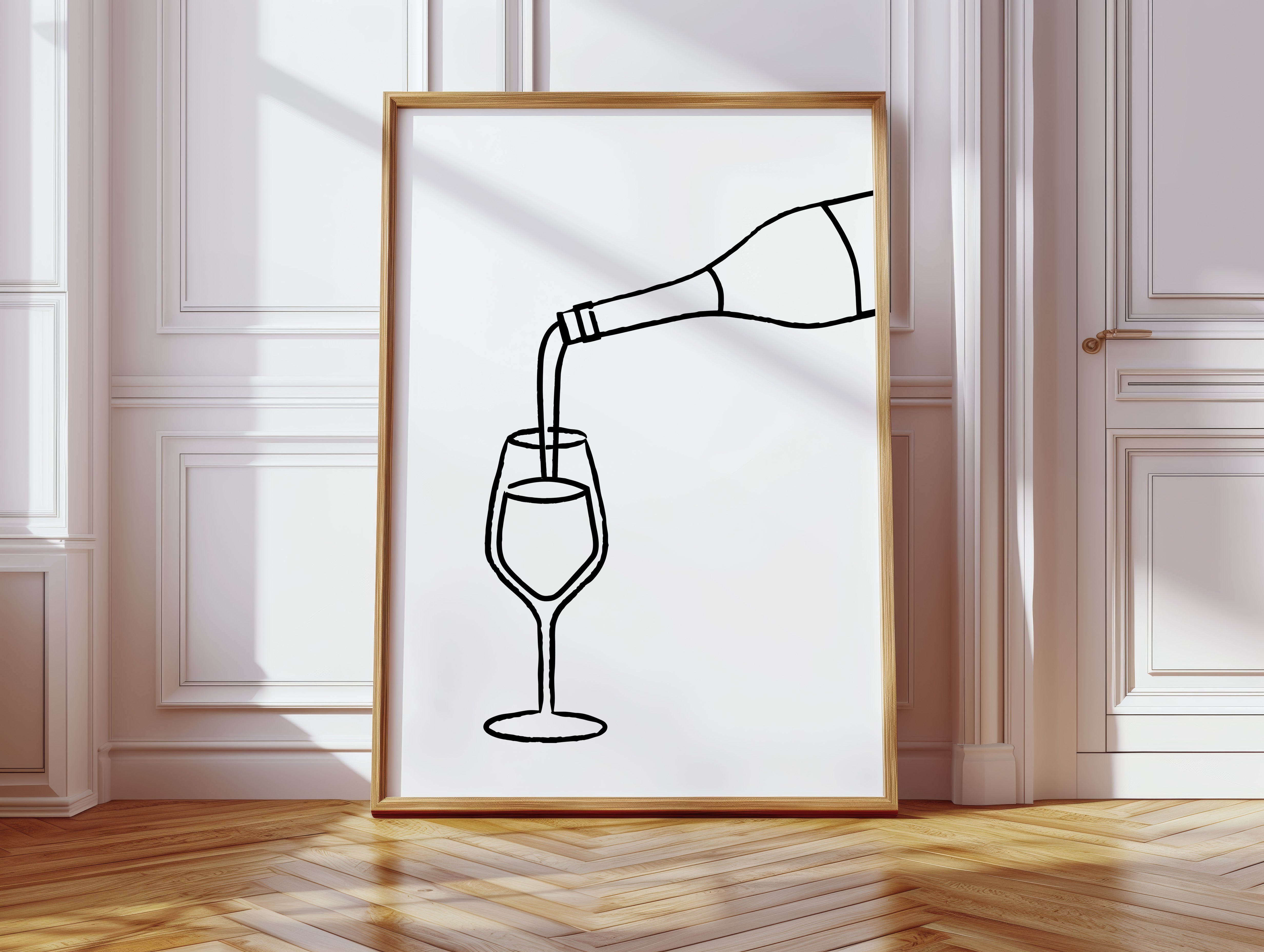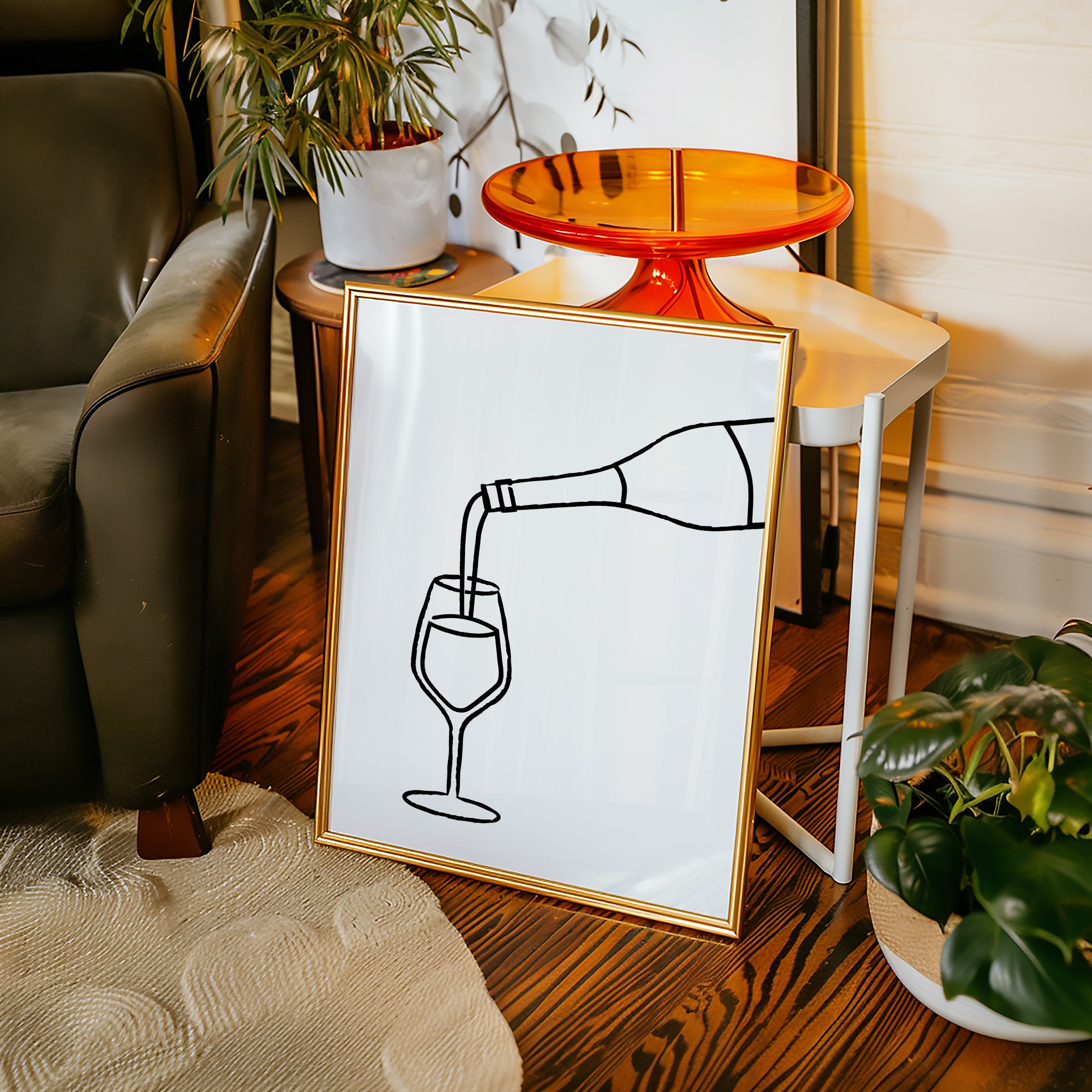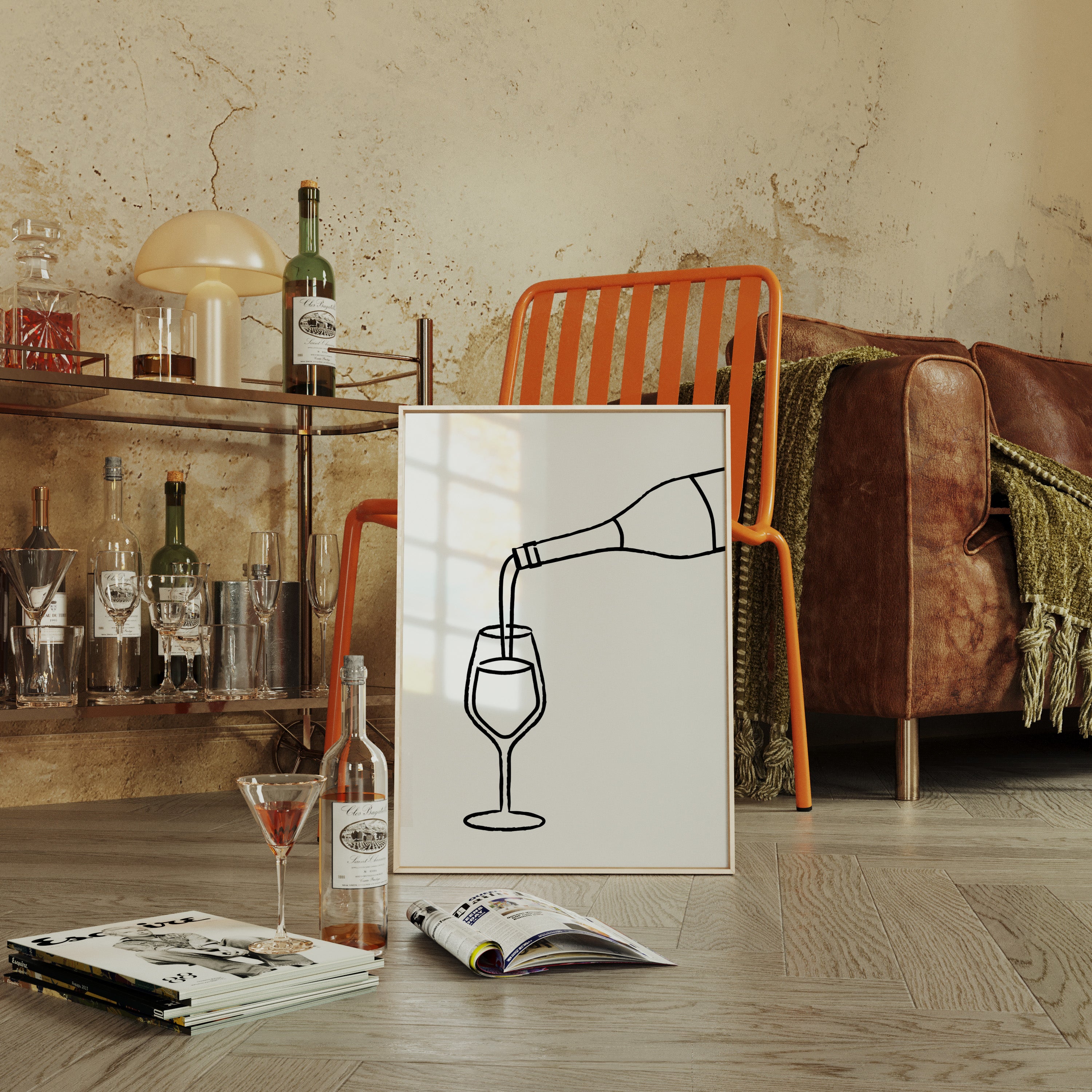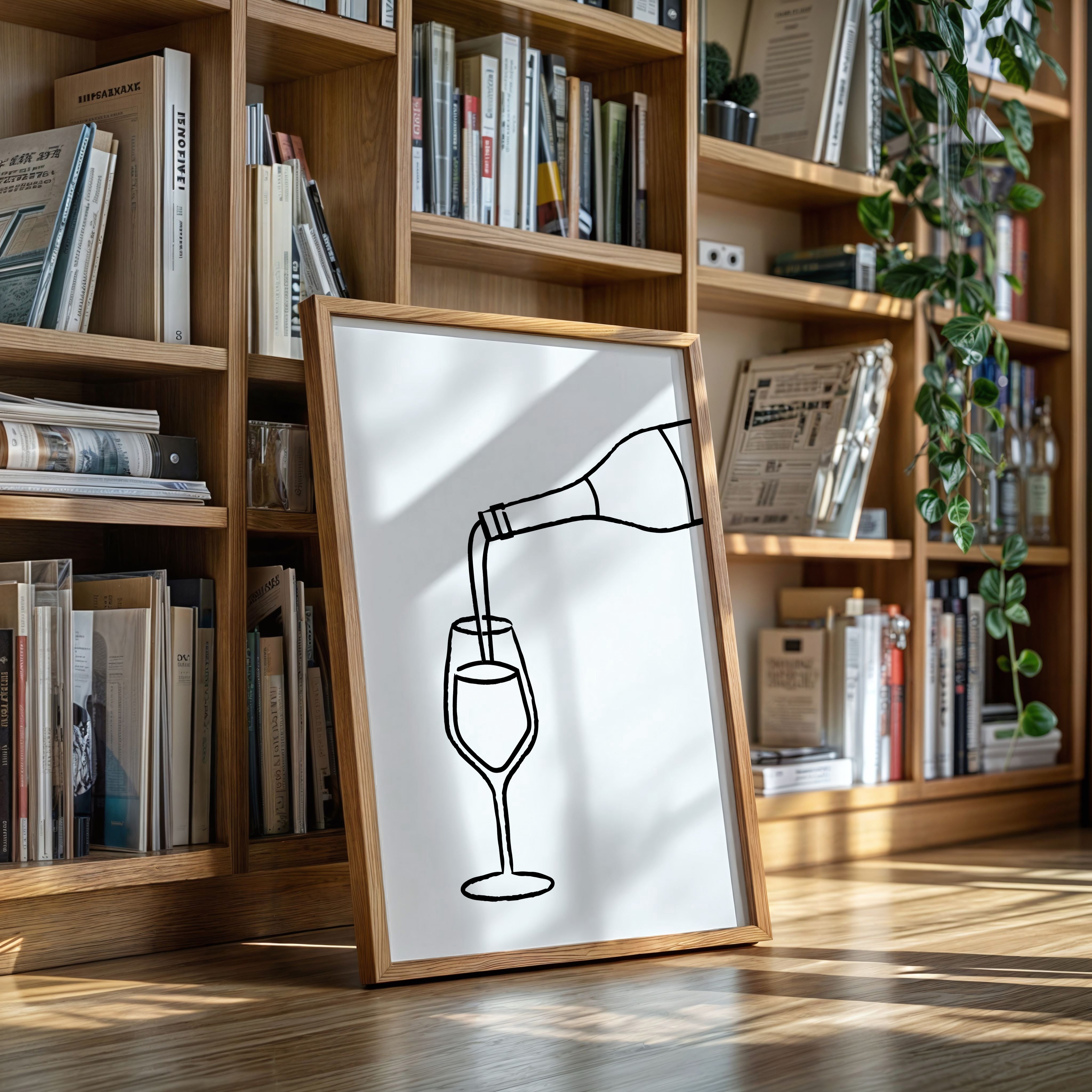 A single, graceful line captures the timeless ritual of wine being poured, each drop holding possibilities. This piece from our Contemporary collection celebrates minimalism through bold, purposeful strokes. The stark black and white composition draws focus to the elegant curve of the bottle and the waiting glass below, suggesting both movement and stillness in perfect balance. The clean lines and negative space create a sophisticated statement that speaks to modern sensibilities while honoring age-old traditions. Perfect for dining rooms, wine cellars, or kitchen spaces where it adds both artistic merit and conversational charm. Each viewing invites a moment to pause and appreciate life's simple ceremonies.