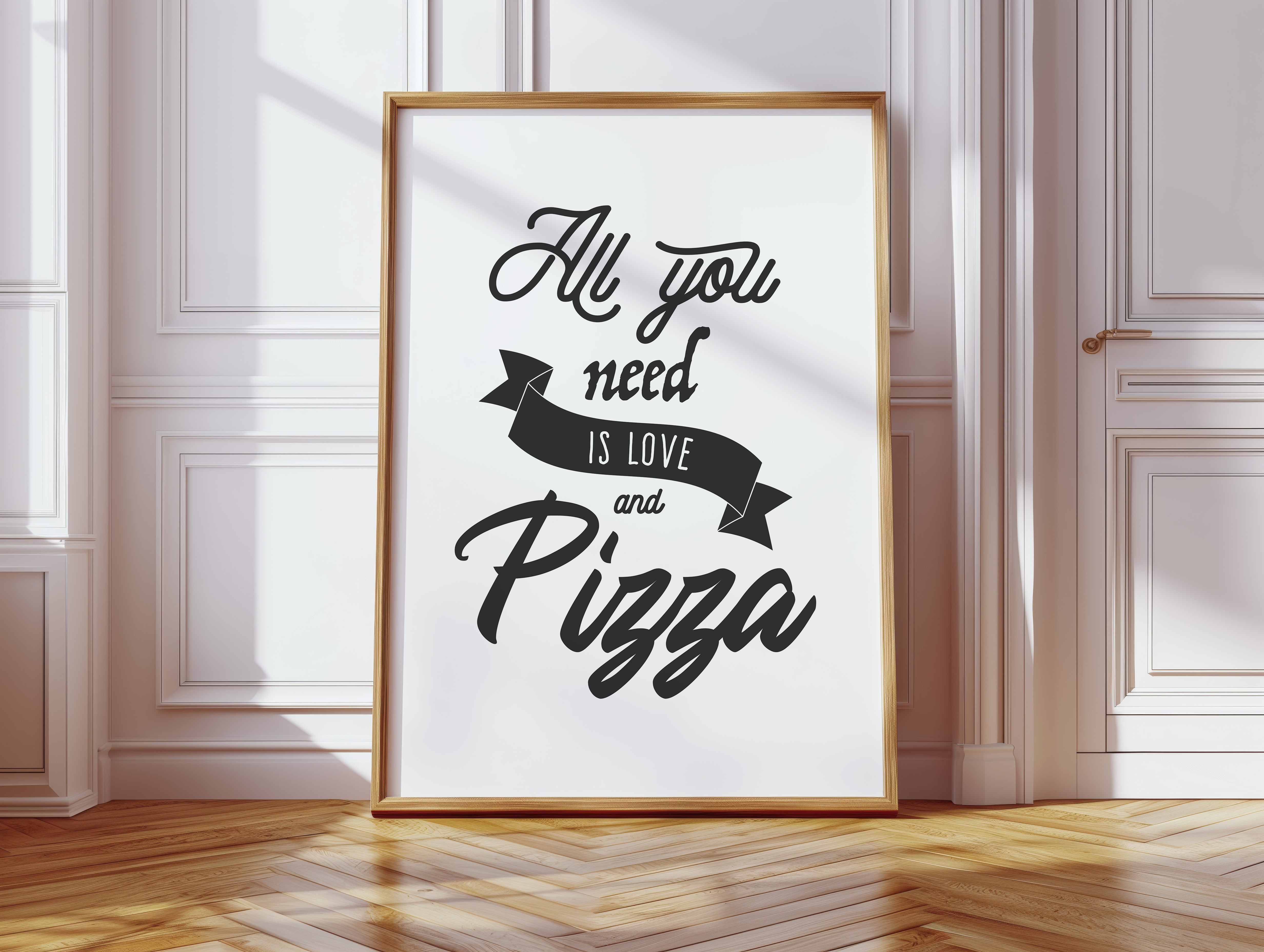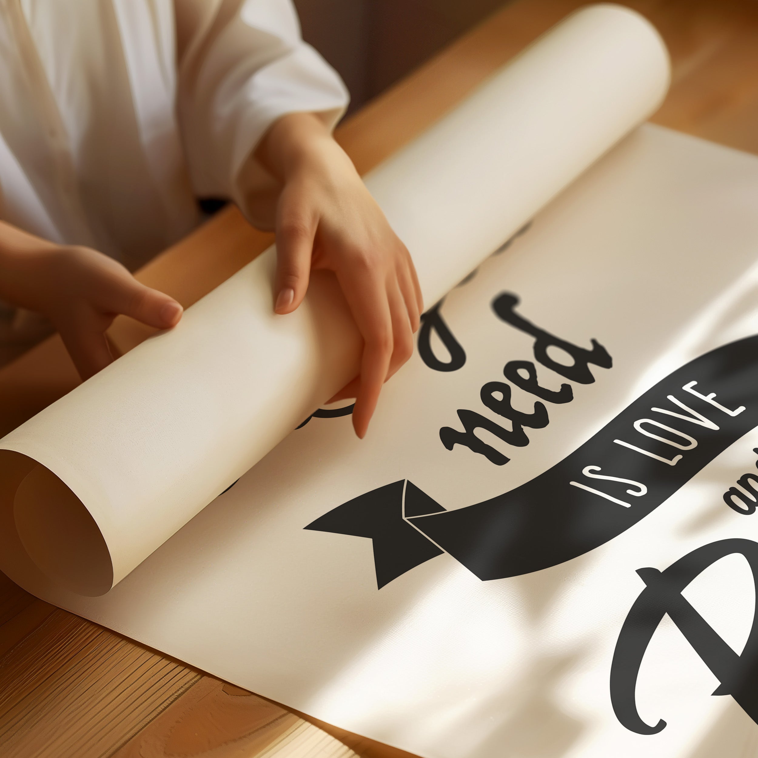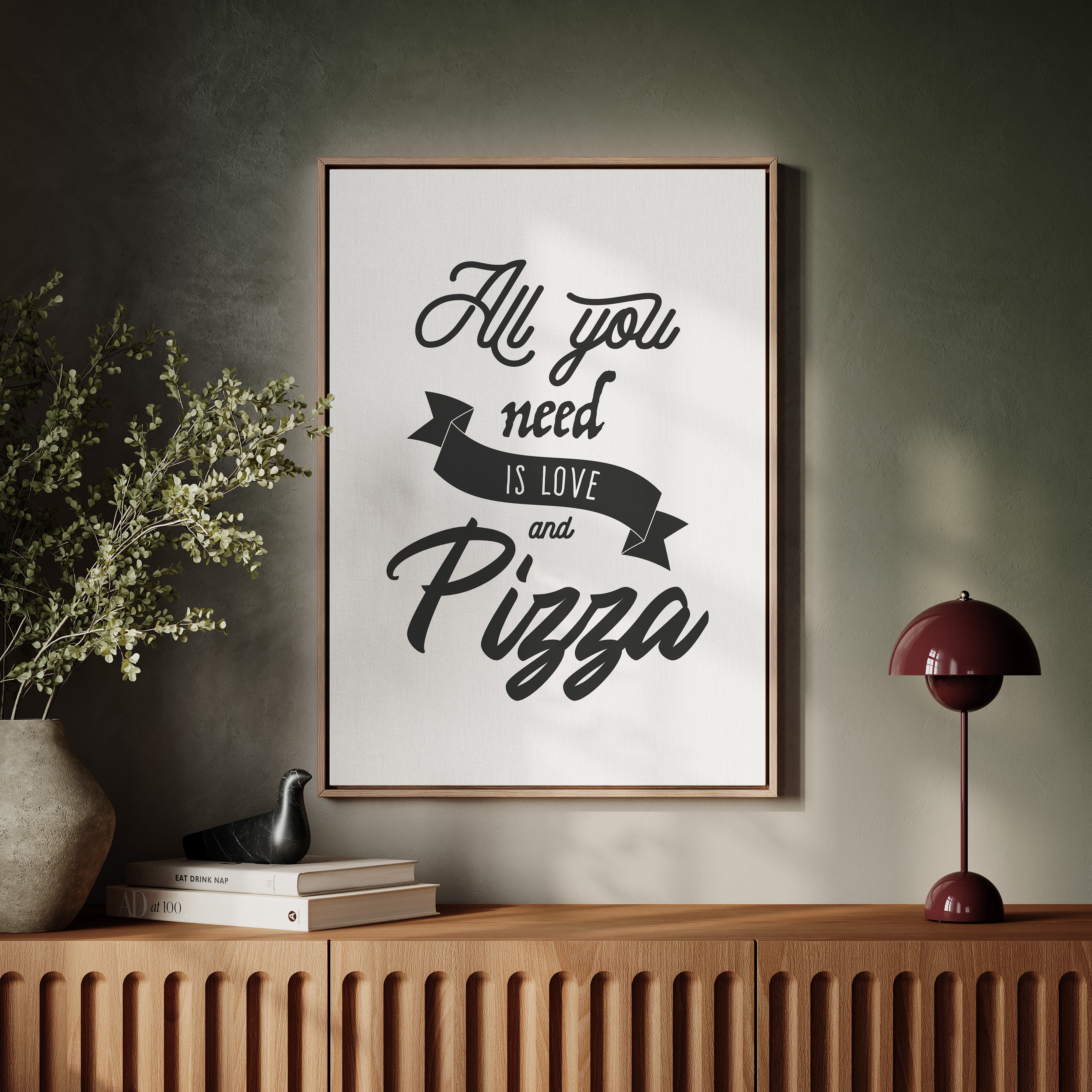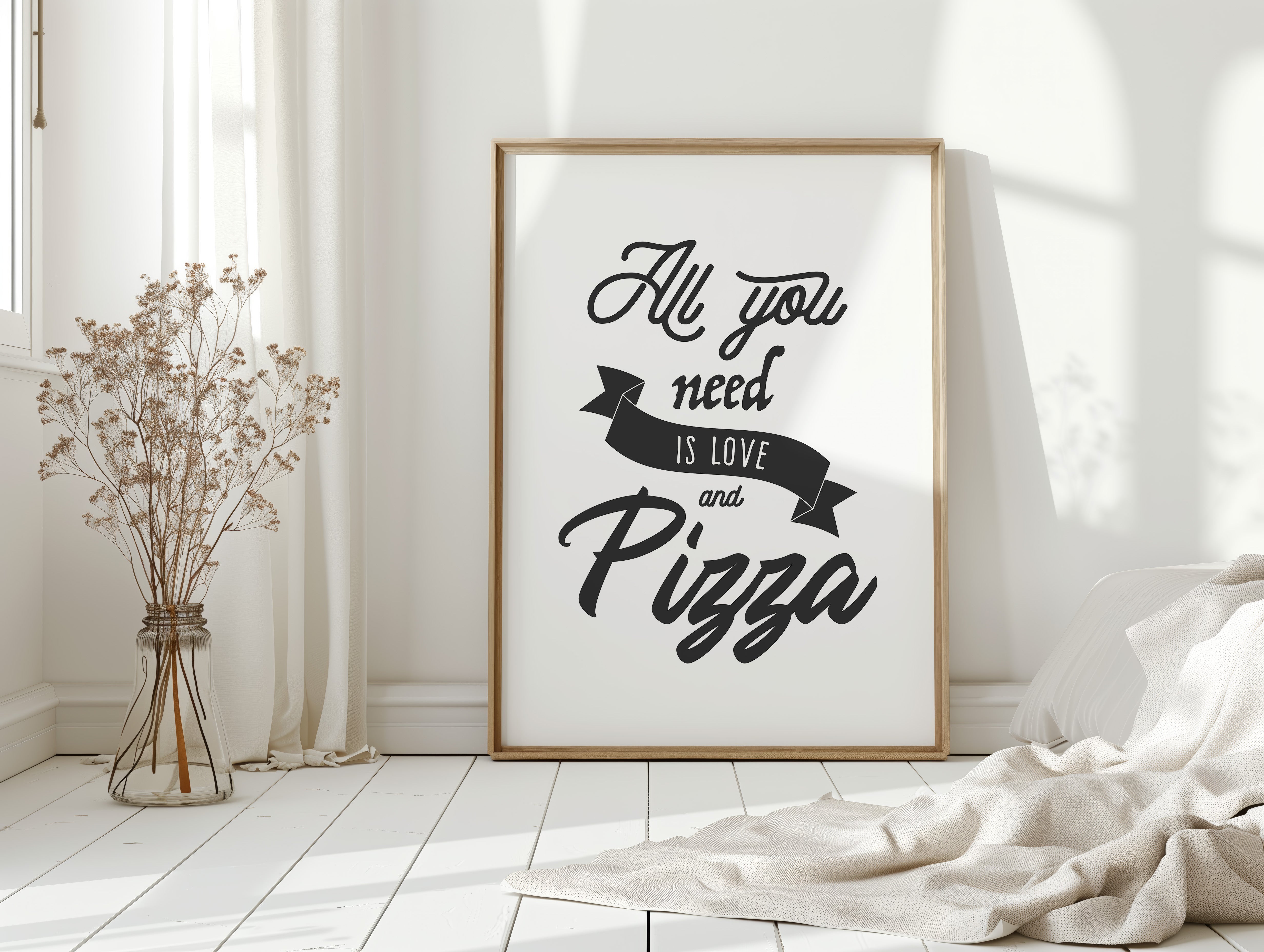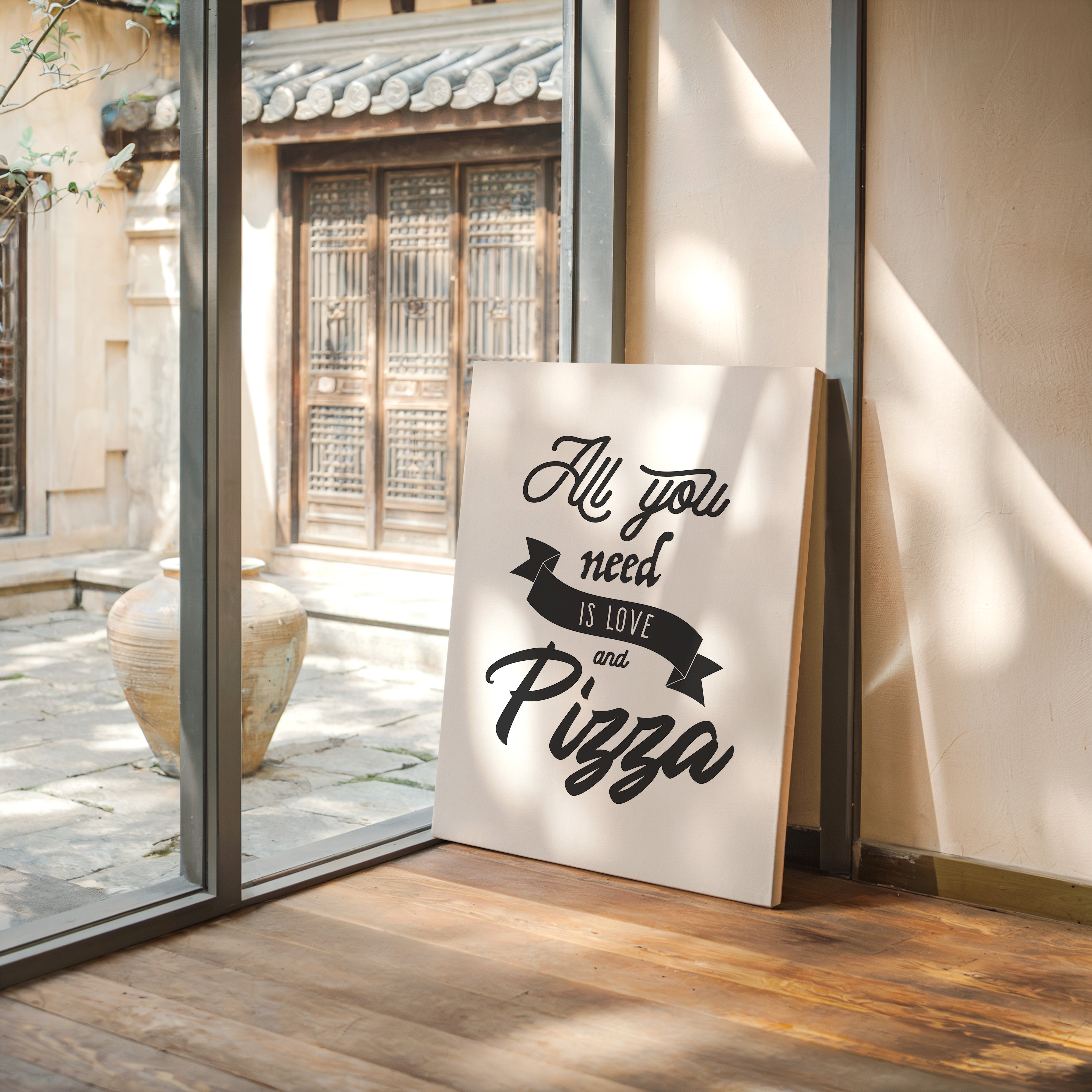 Bold strokes of black against pristine white capture life's most essential ingredients. This contemporary typographic piece speaks volumes through minimalist design. The playful script dances across the canvas, weaving together comfort and joy in a statement that's both whimsical and profound. The ribbon detail adds a classic touch, while maintaining modern sensibilities in its clean execution. Perfect for bringing personality to a dining room or adding a dash of humor to a modern kitchen space. Its timeless message serves as a daily reminder of life's simple pleasures.