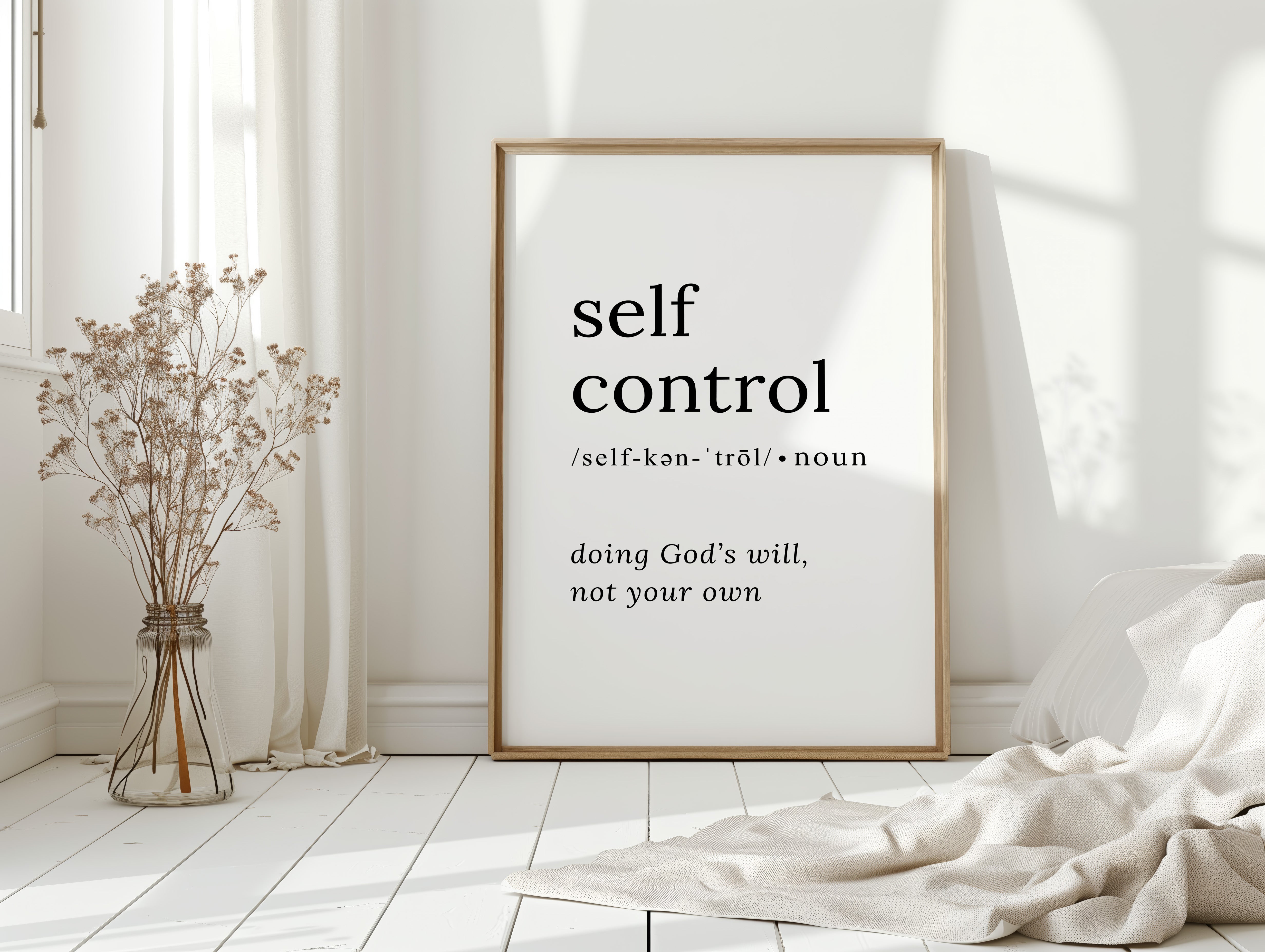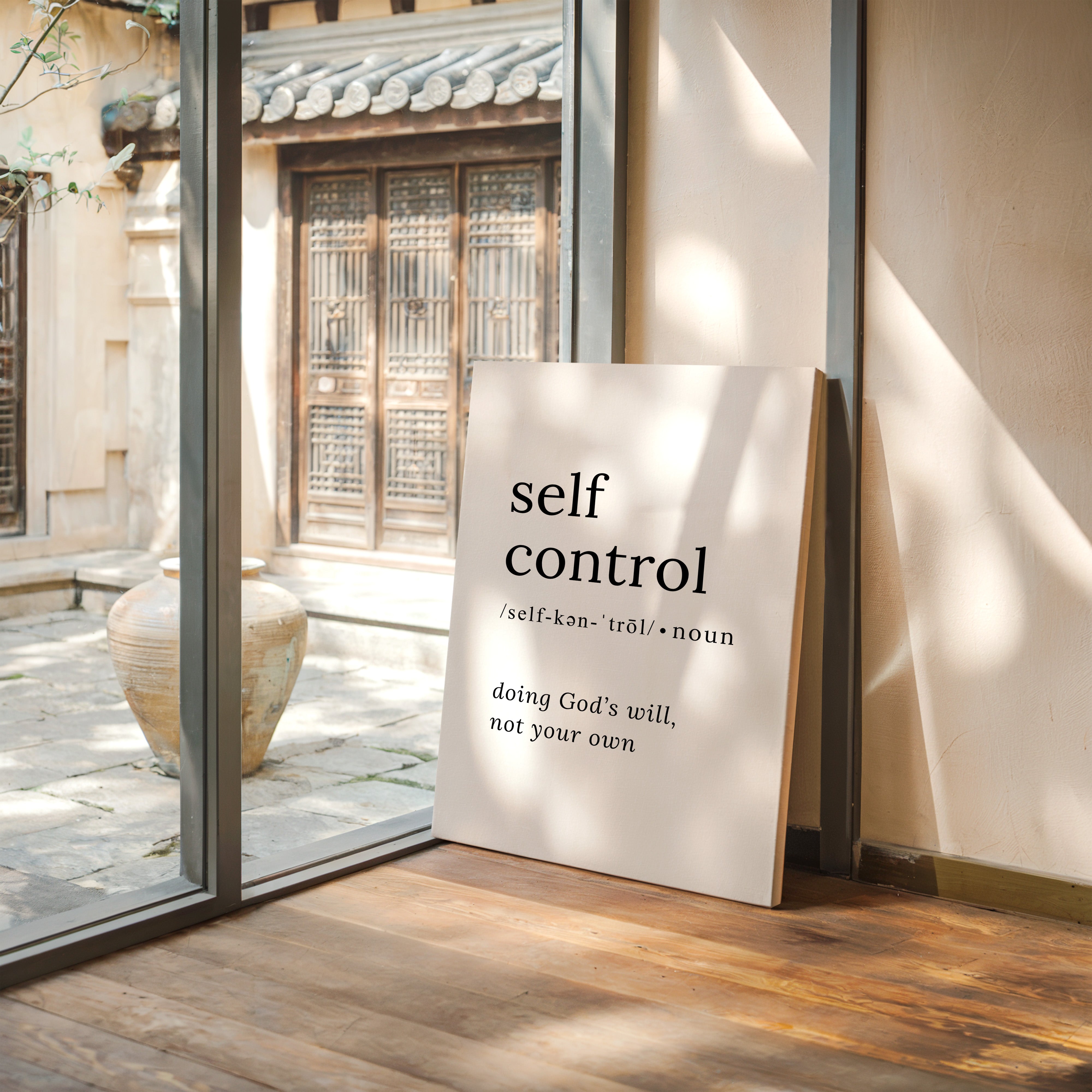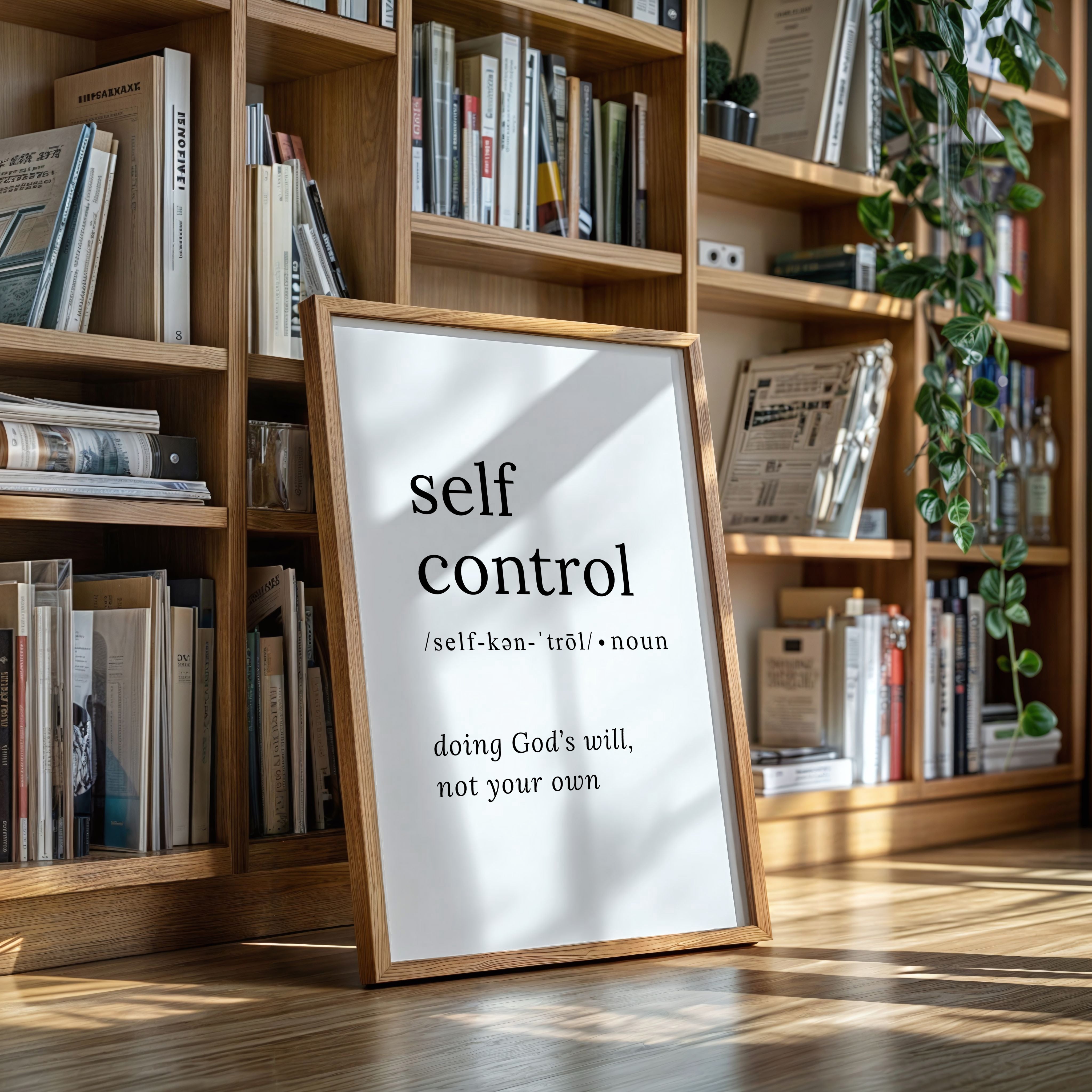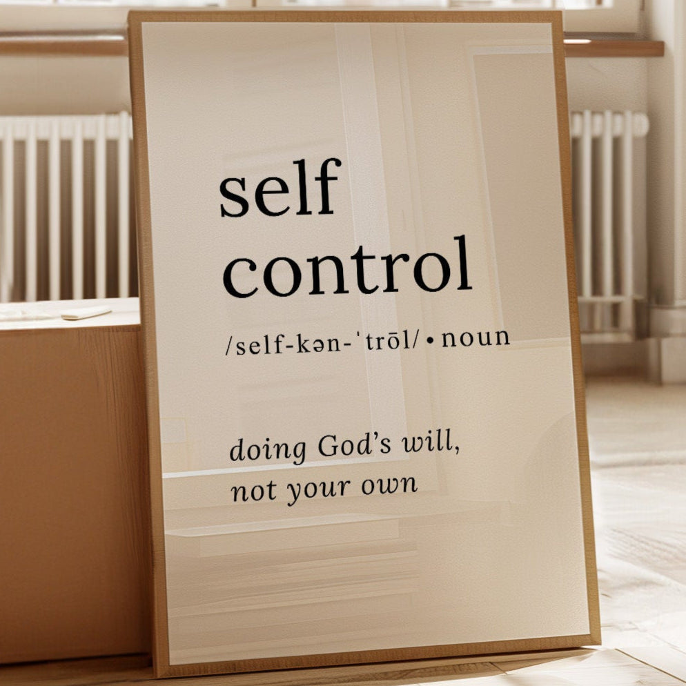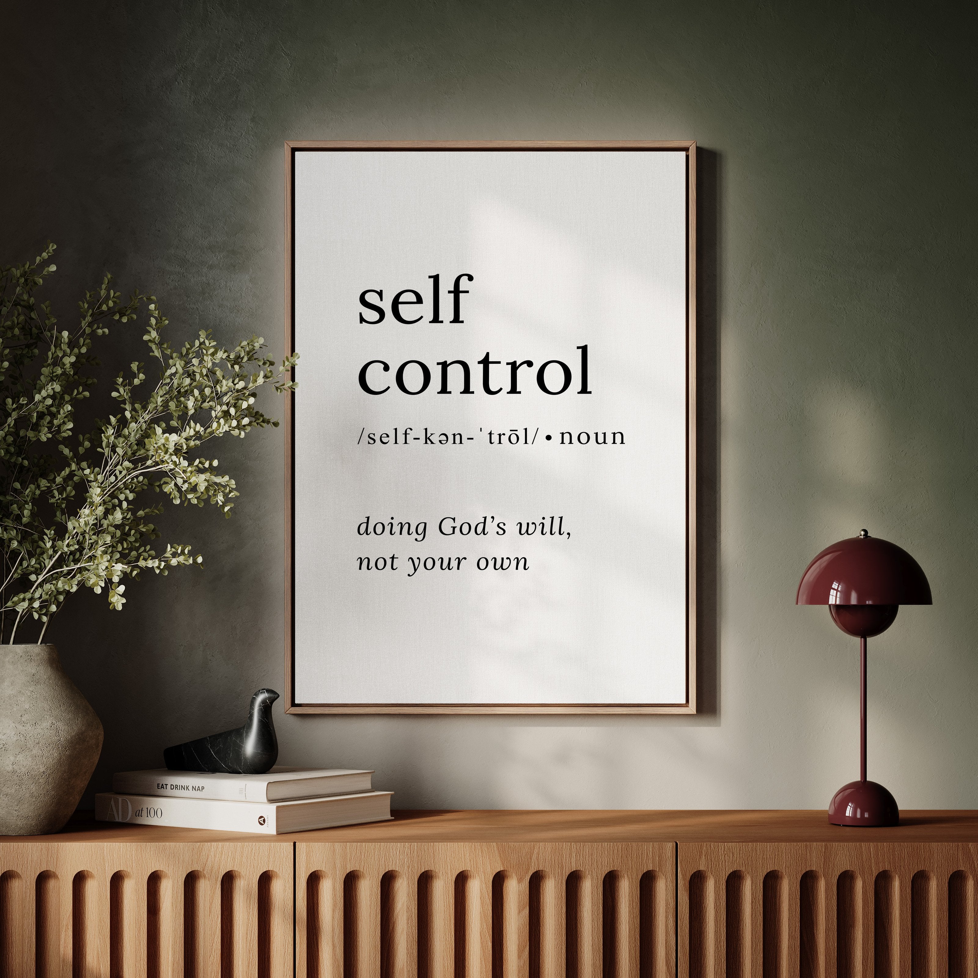 Black letters stand stark against pristine white, carrying weight beyond their simple forms. This piece from our Contemporary Typography collection marries minimalist design with profound spiritual meaning. The definition format creates an unexpected vehicle for divine wisdom, while the clean serif font and precise spacing speak to both academic authority and spiritual clarity. Perfect for a home office or meditation space where it can serve as a daily reminder of purpose and discipline. Its timeless message offers both guidance and contemplation in quiet moments.