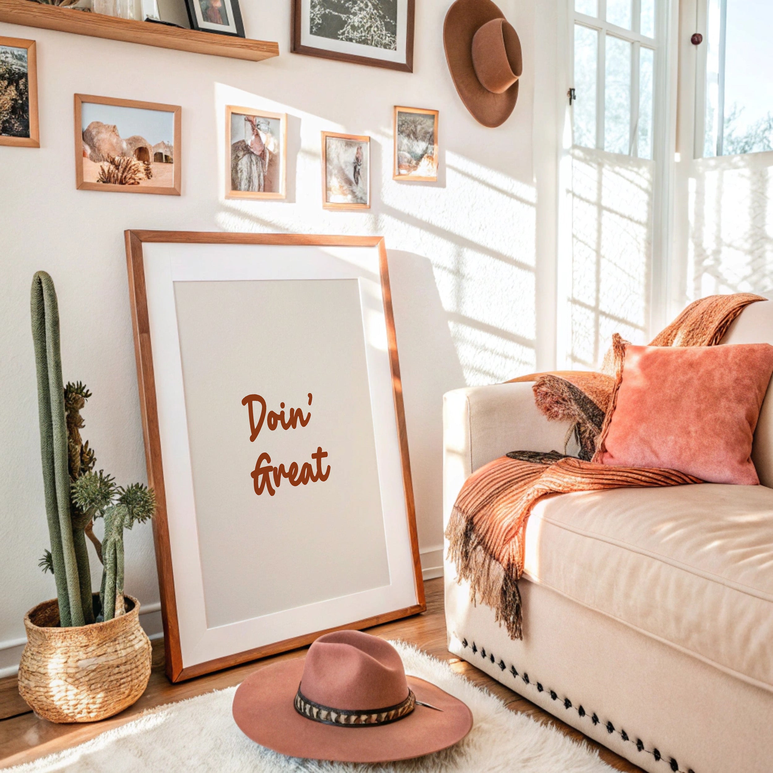 A simple yet powerful statement emerges from the gentle cream backdrop, written in a warm terracotta that feels like sunset light on adobe walls. The casual brush script dances with confidence and ease, making a bold declaration in just two words. Like a friend's encouraging note left on your mirror, it carries both intimacy and strength in its strokes. Perfect for bringing inspiration to a home office, creative studio, or any space where daily motivation makes a difference.