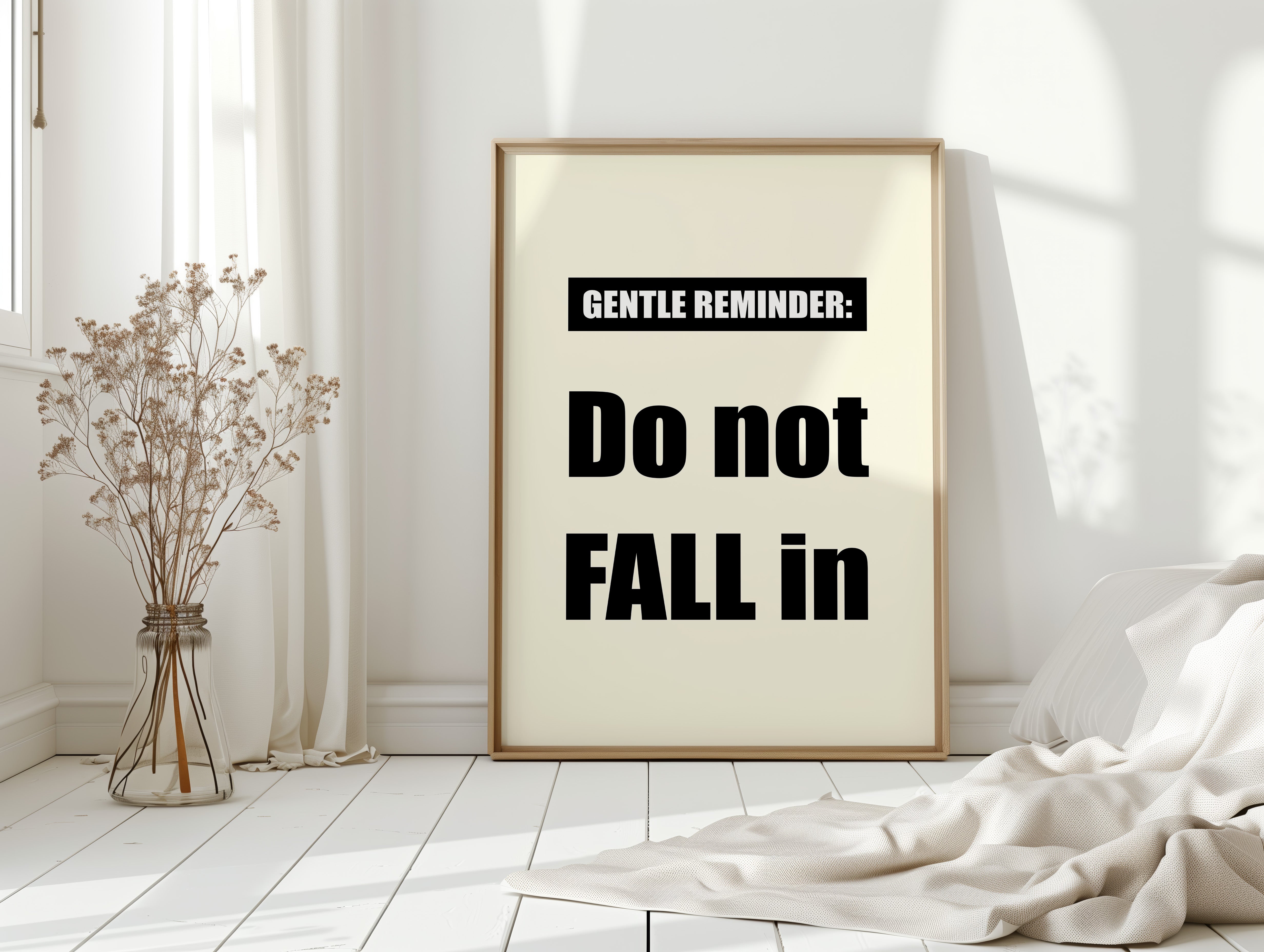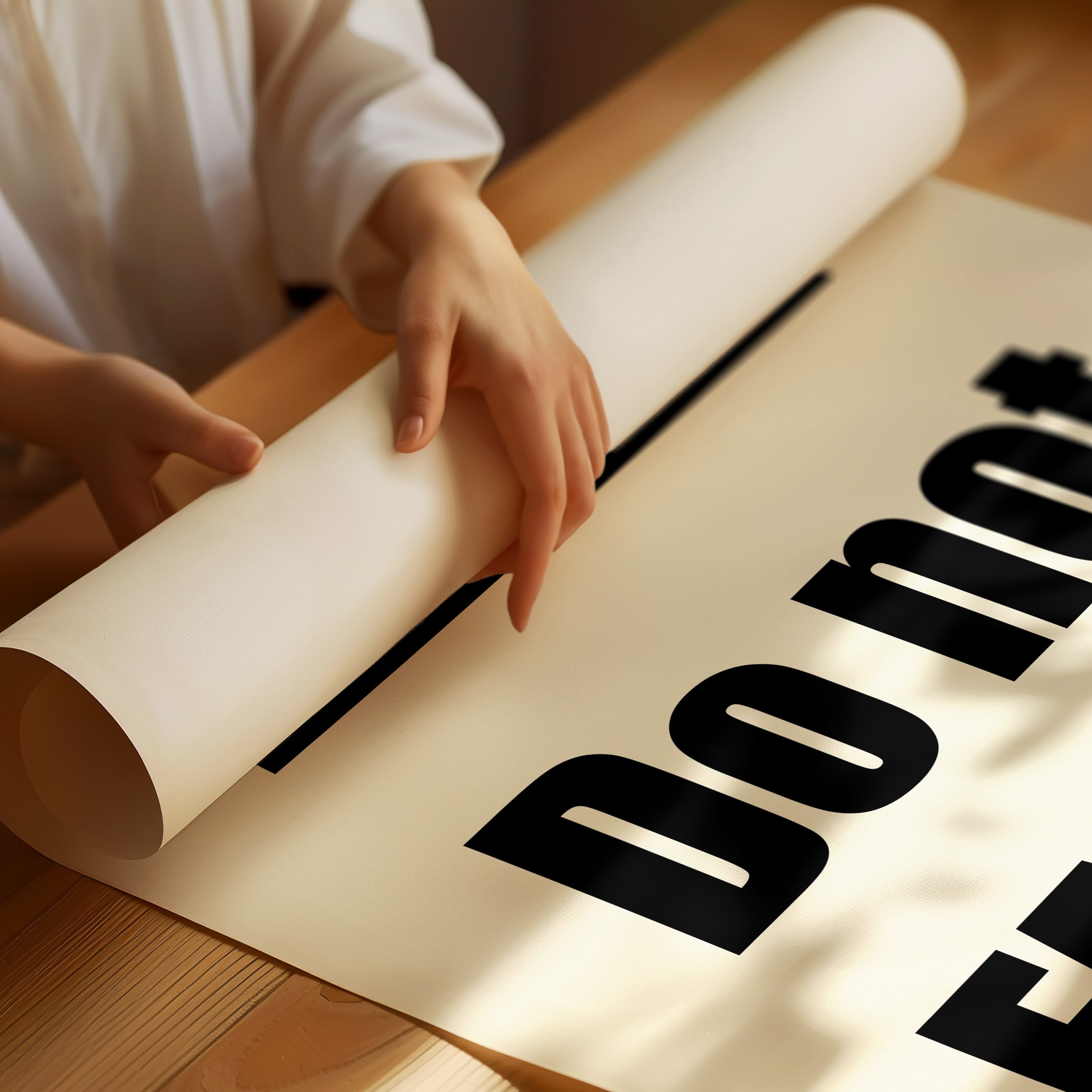 Bold black letters float against cream, delivering their message with quiet authority and grace. This piece from our Contemporary collection marries minimalist design with powerful intent. The stark contrast between text and background creates a compelling visual rhythm, while the graduated sizing of words builds dramatic tension through typography. Perfect for a home office or meditation space where daily reminders serve as gentle anchors. This piece speaks volumes through simplicity, offering both motivation and mindful pause in your daily routine.