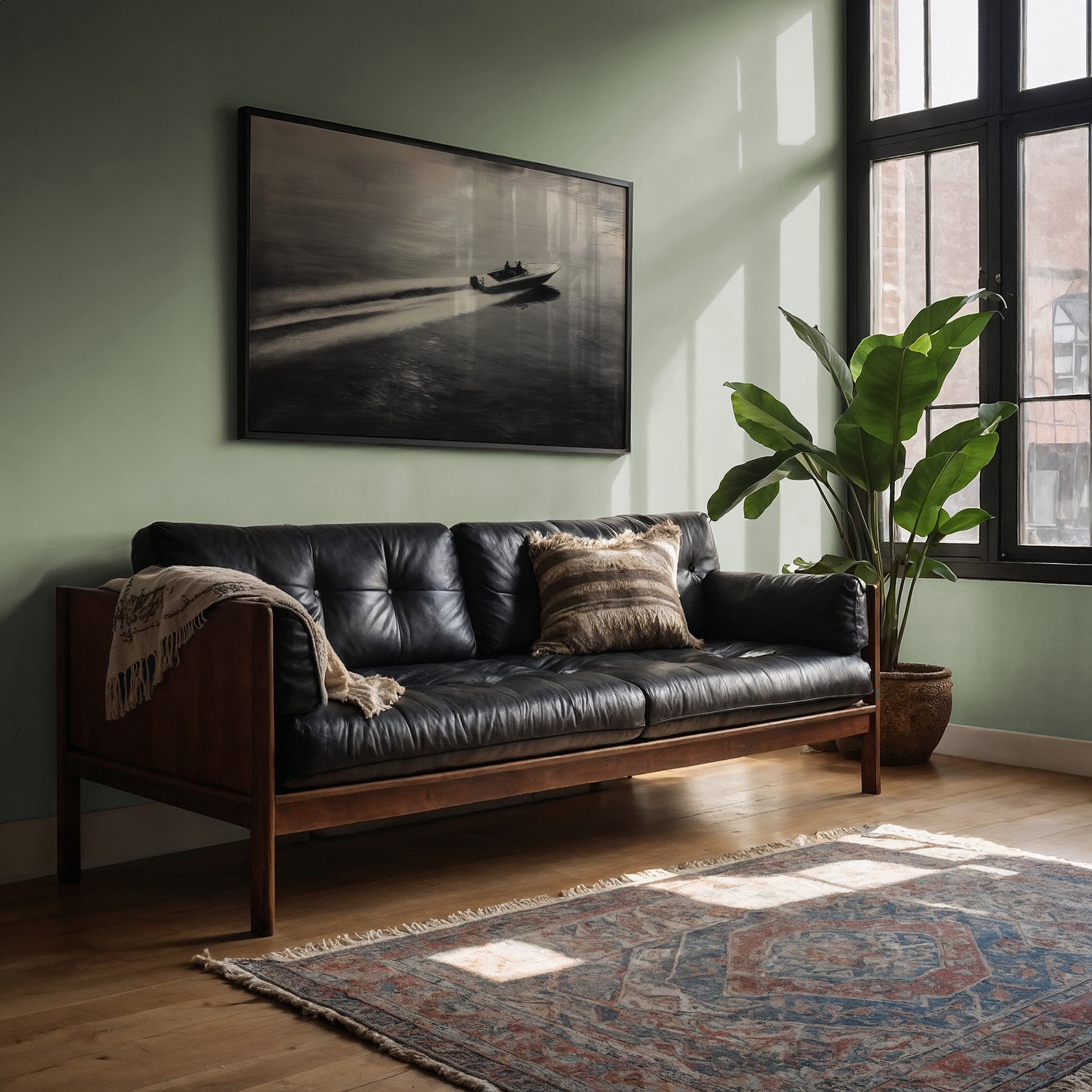 Your artwork should take up 60-75% of wall space above furniture. For standard sofas, choose 24"x36" or larger. When in doubt, go slightly bigger.