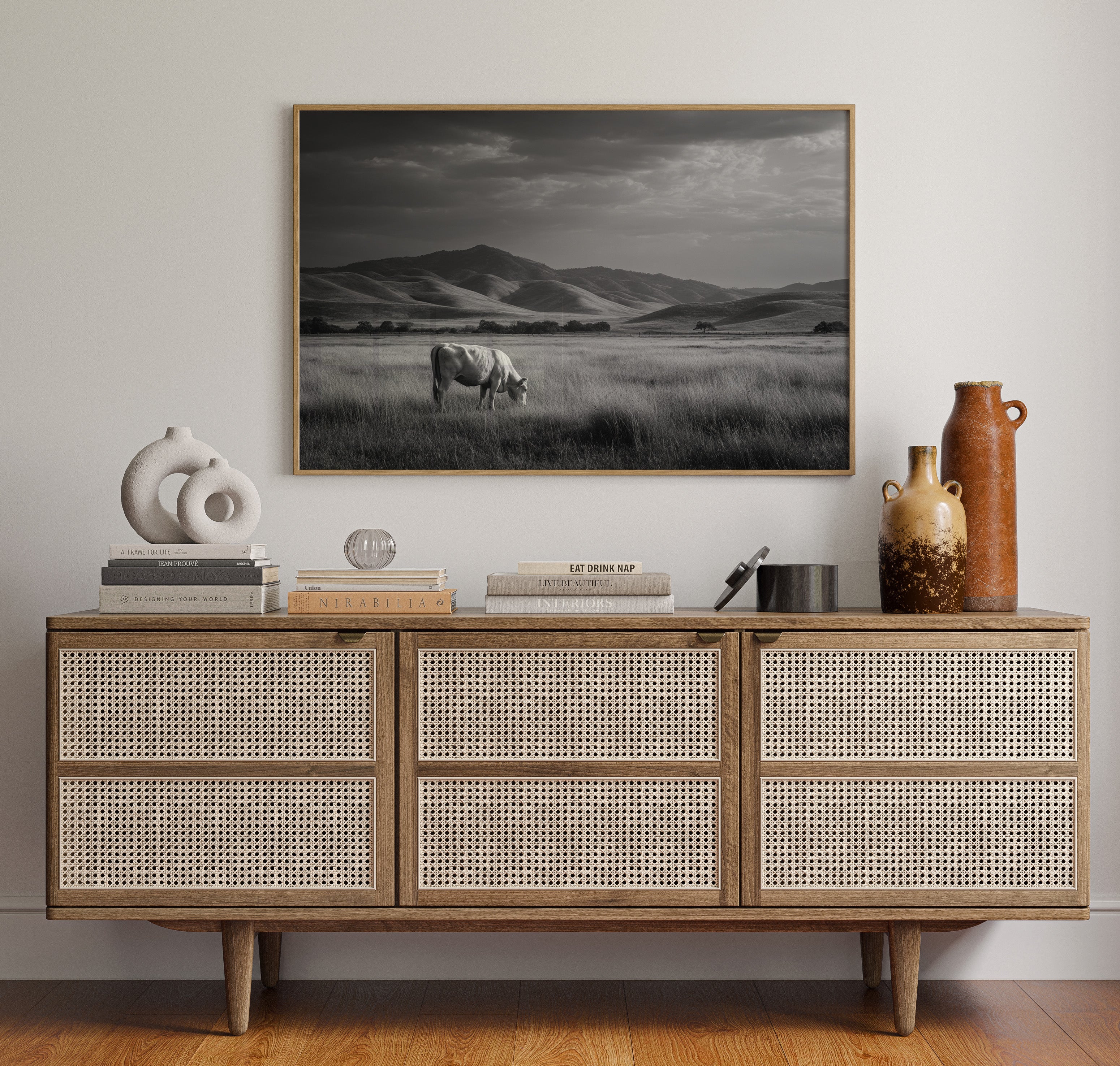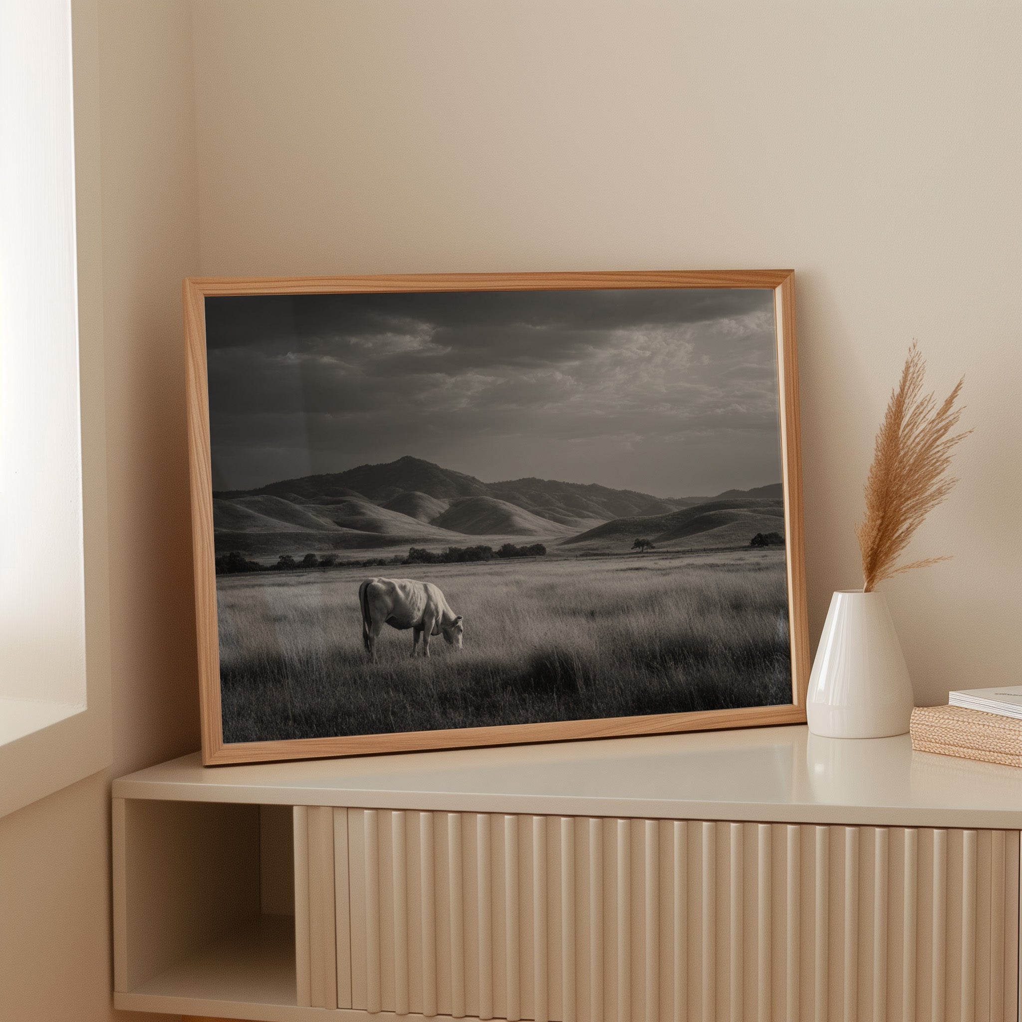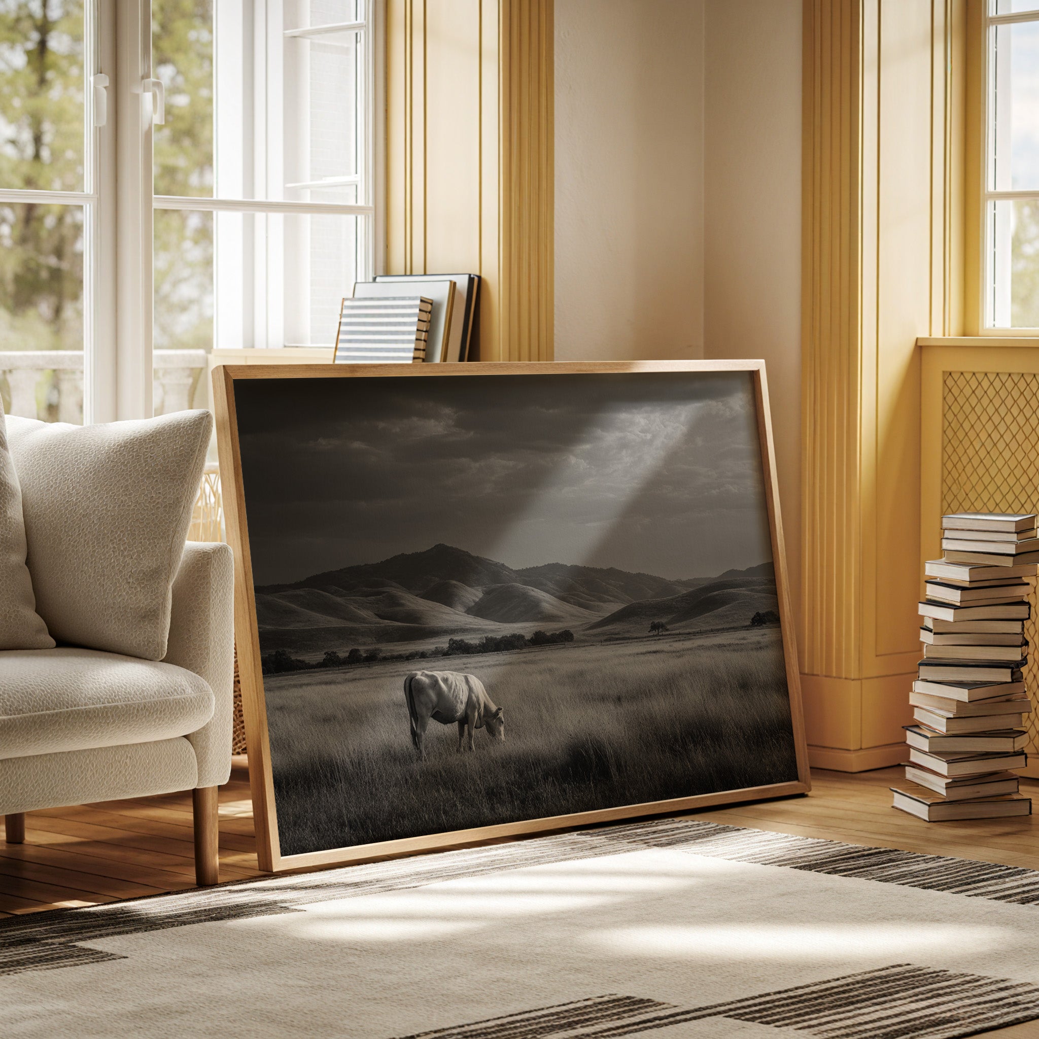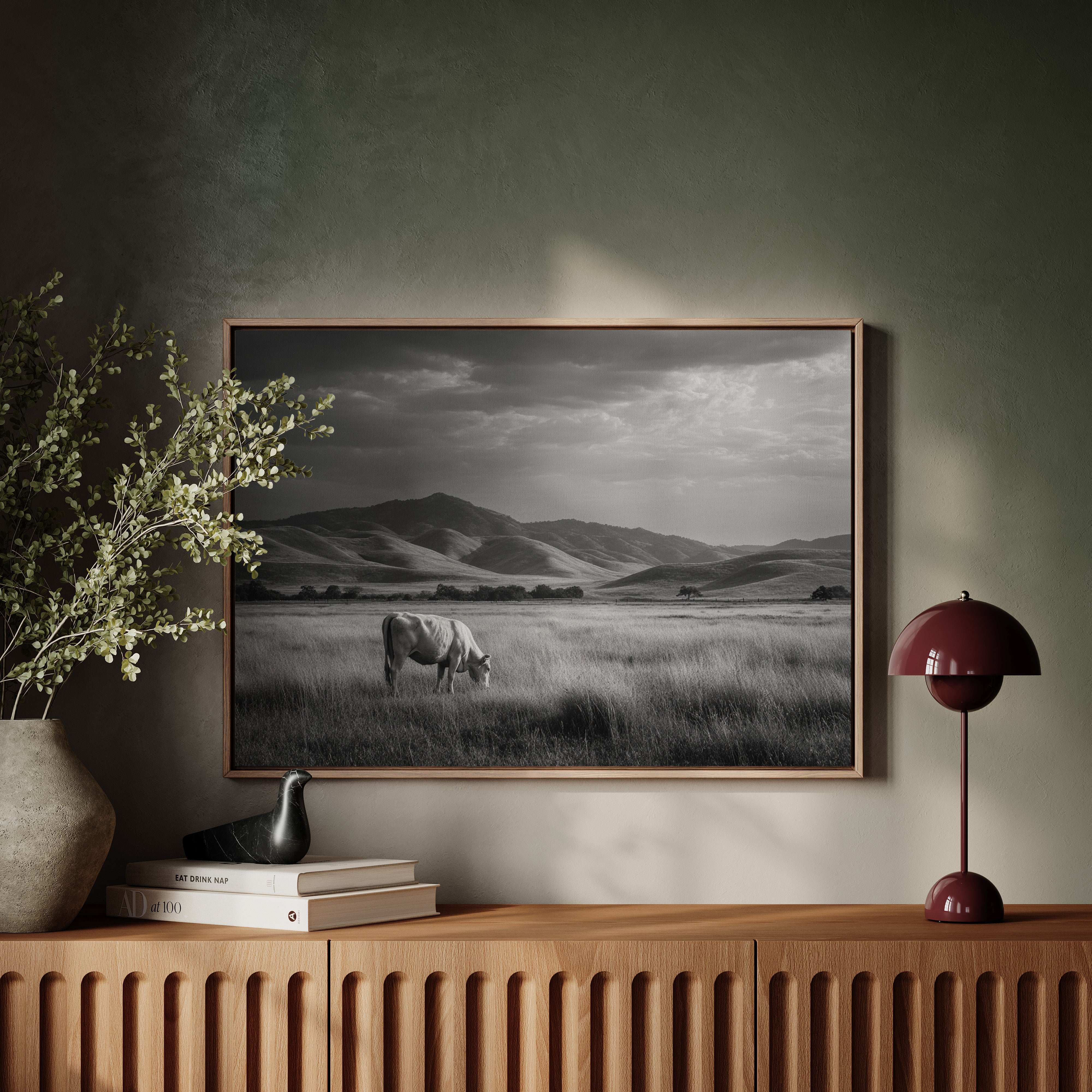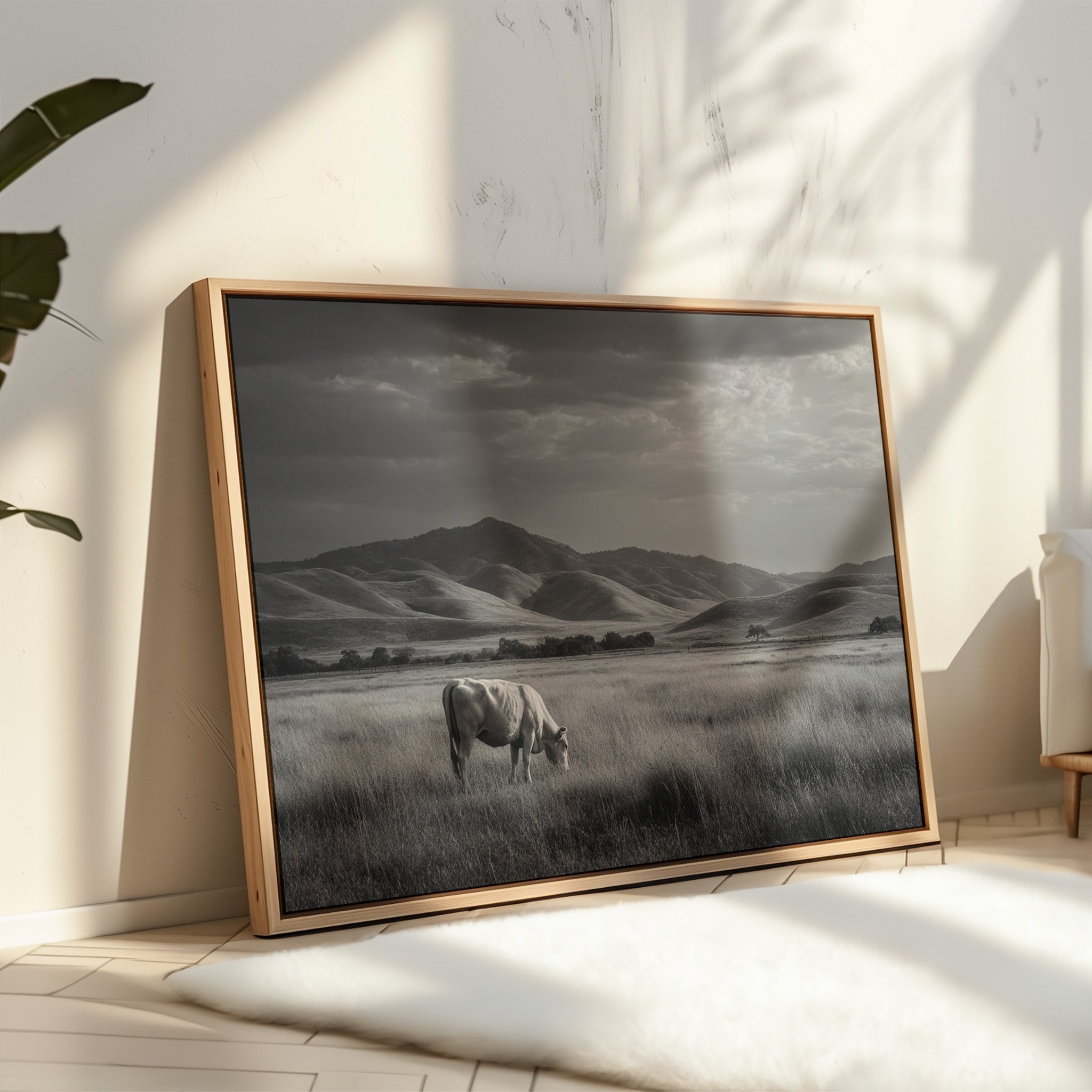 Part of our Tranquil Range collection, this contemplative black and white photograph captures the profound serenity of rural ranch life with artistic elegance. The expansive landscape and gentle composition create a sense of infinite peace that speaks to our deepest longing for simplicity and connection with the natural world.