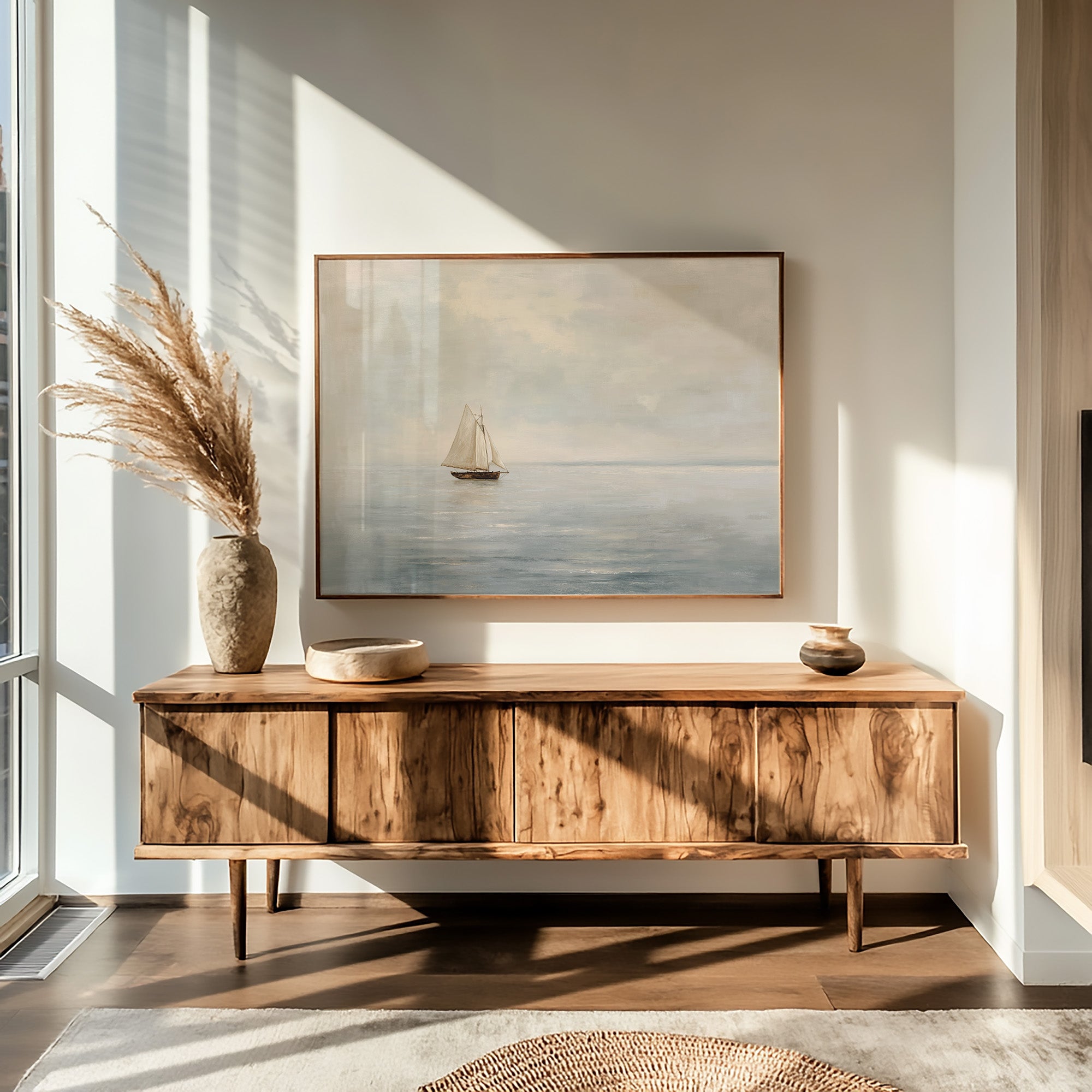 Your artwork should take up 60-75% of wall space above furniture. For standard sofas, choose 24"x36" or larger. When in doubt, go slightly bigger.