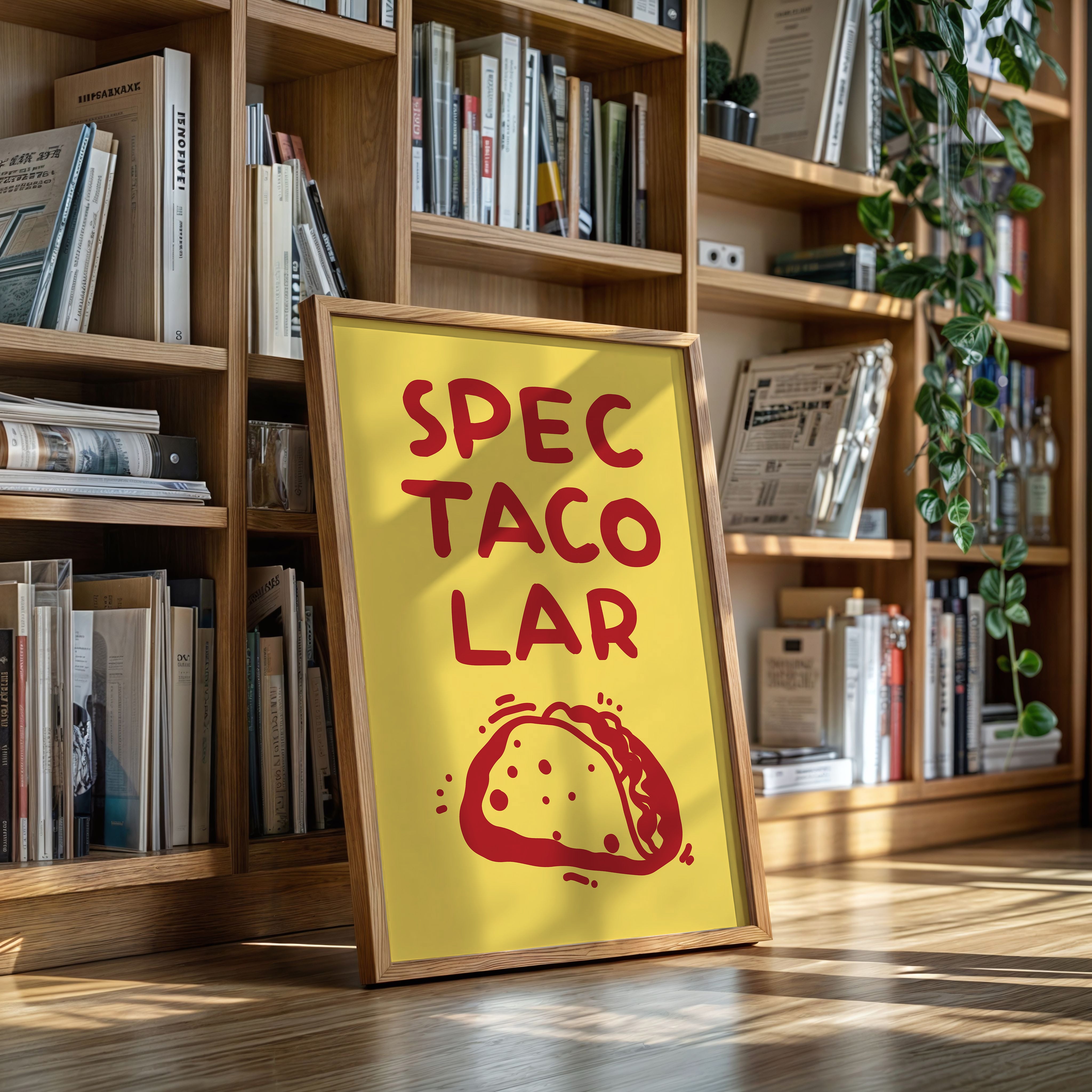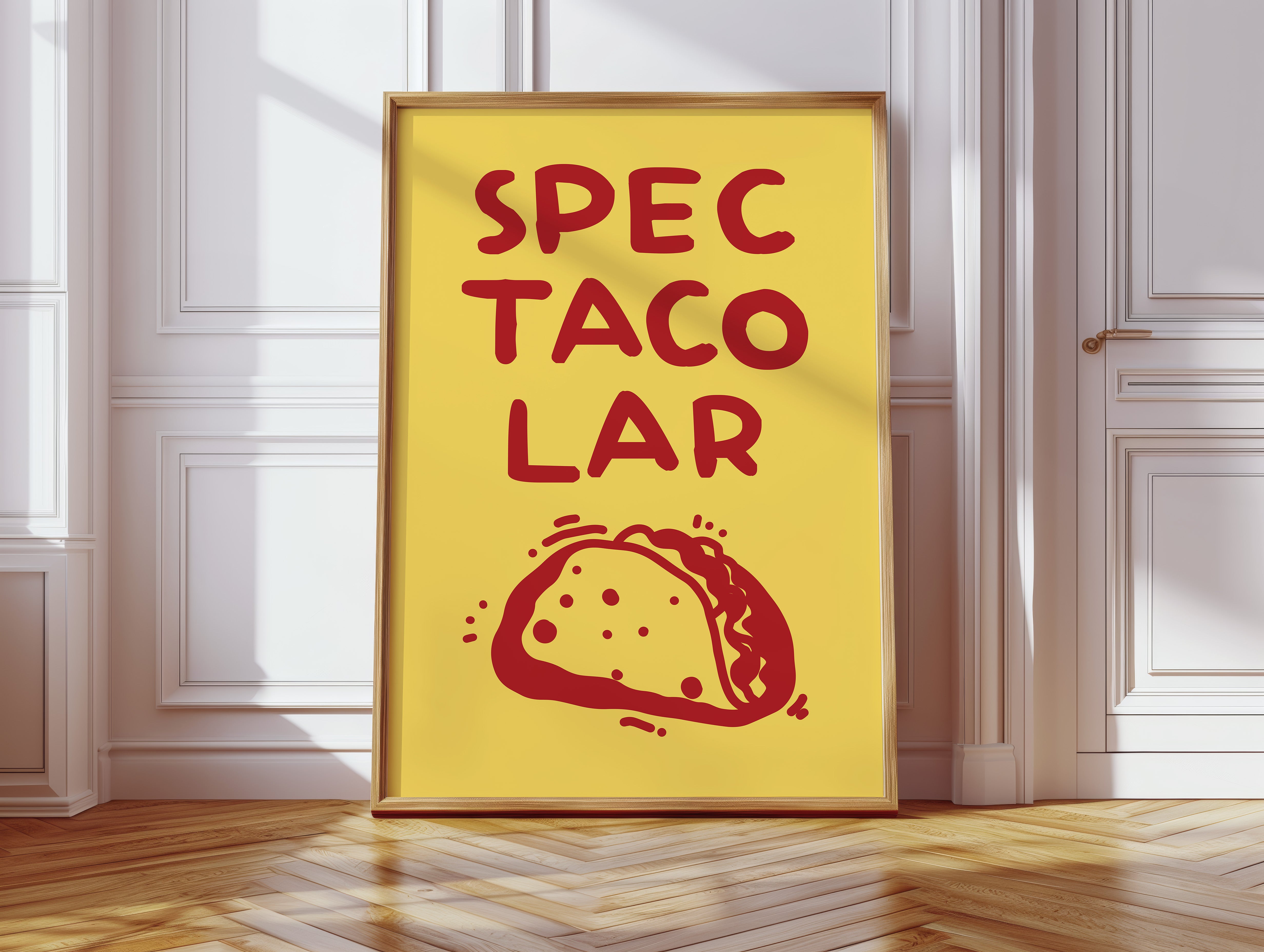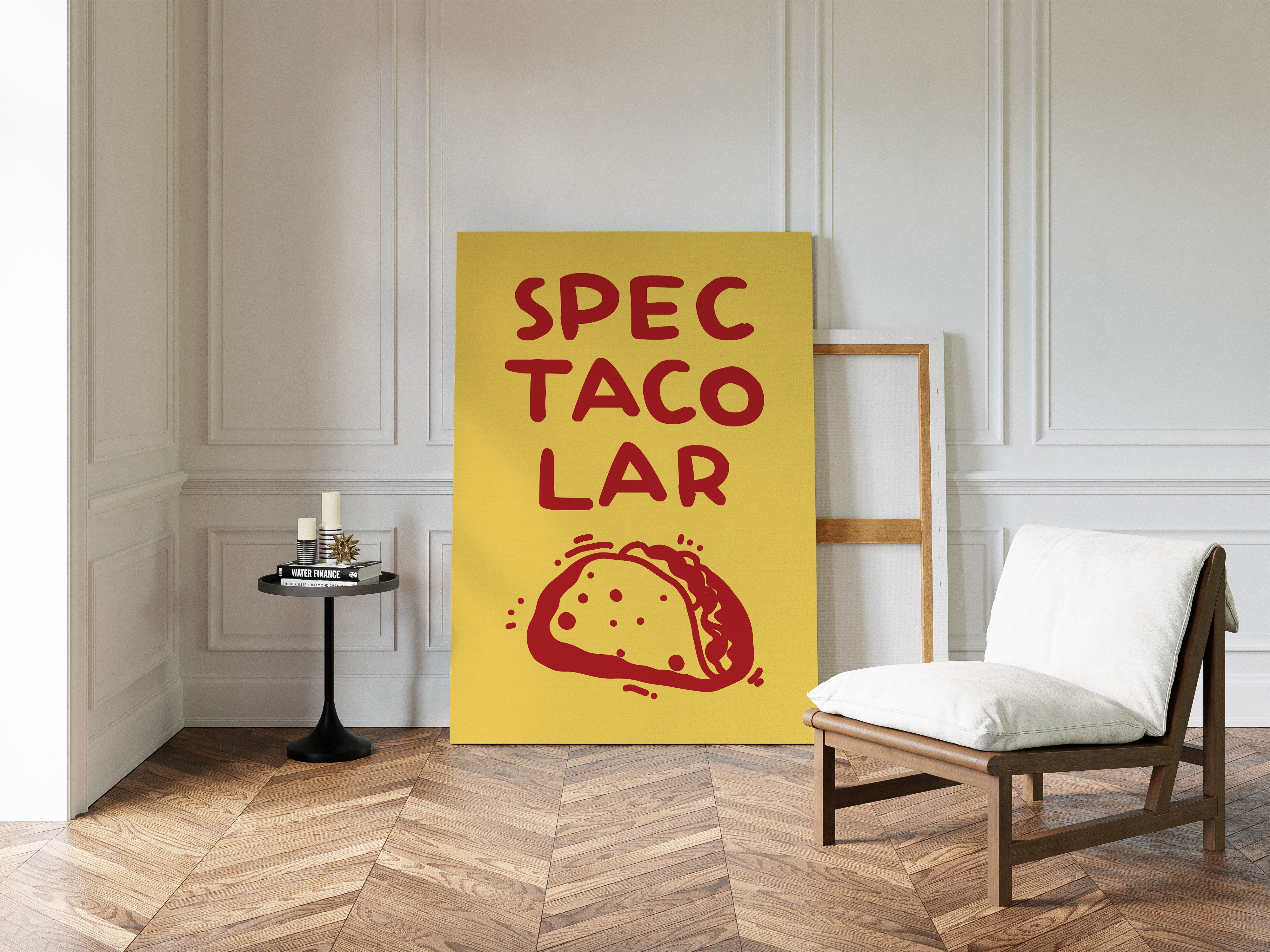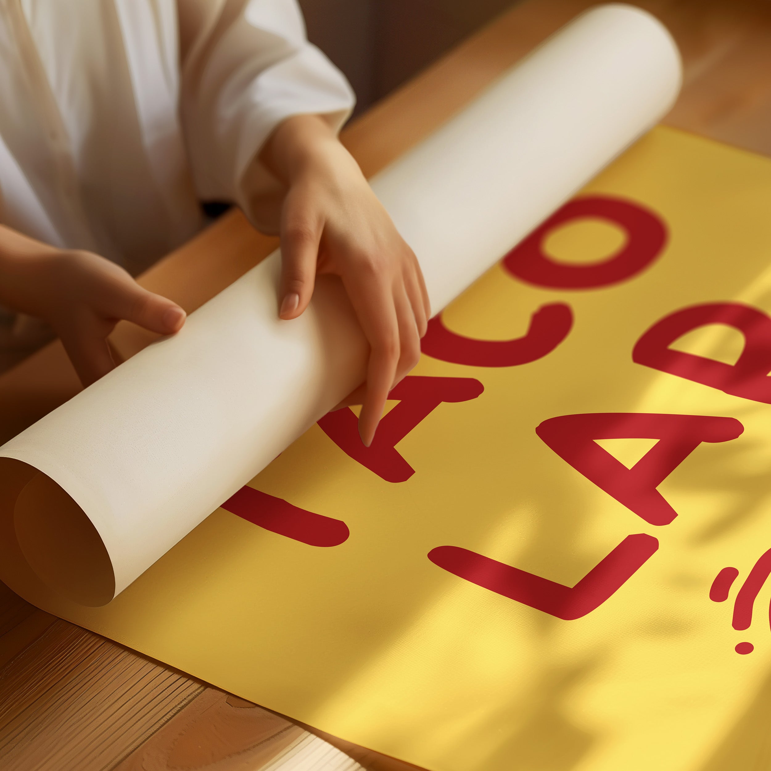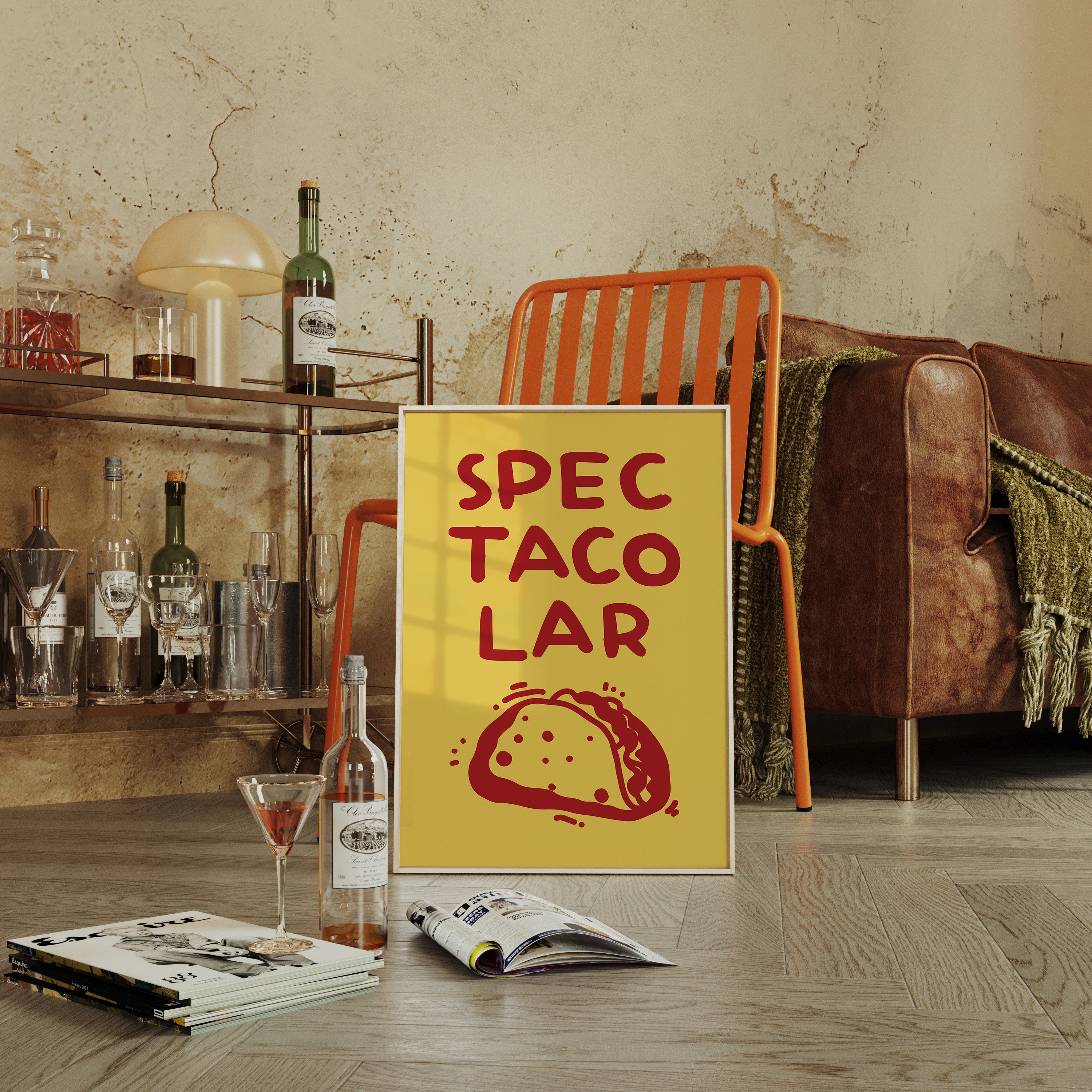 The neon glow of late-night taco runs and endless summer evenings comes alive in vibrant red against sunshine yellow. Part of our Contemporary Typography collection, this piece captures the playful spirit of casual dining culture. Bold letterforms dance with a whimsical taco illustration, creating a perfect balance of modern design and nostalgic comfort food charm. The minimalist two-color palette makes a striking statement while maintaining an approachable, friendly vibe. This piece brings personality to kitchen spaces, dining rooms, or restaurant-inspired home bars, infusing spaces with a dash of foodie fun and urban energy. The design celebrates those memorable moments when simple food becomes the centerpiece of lasting memories.