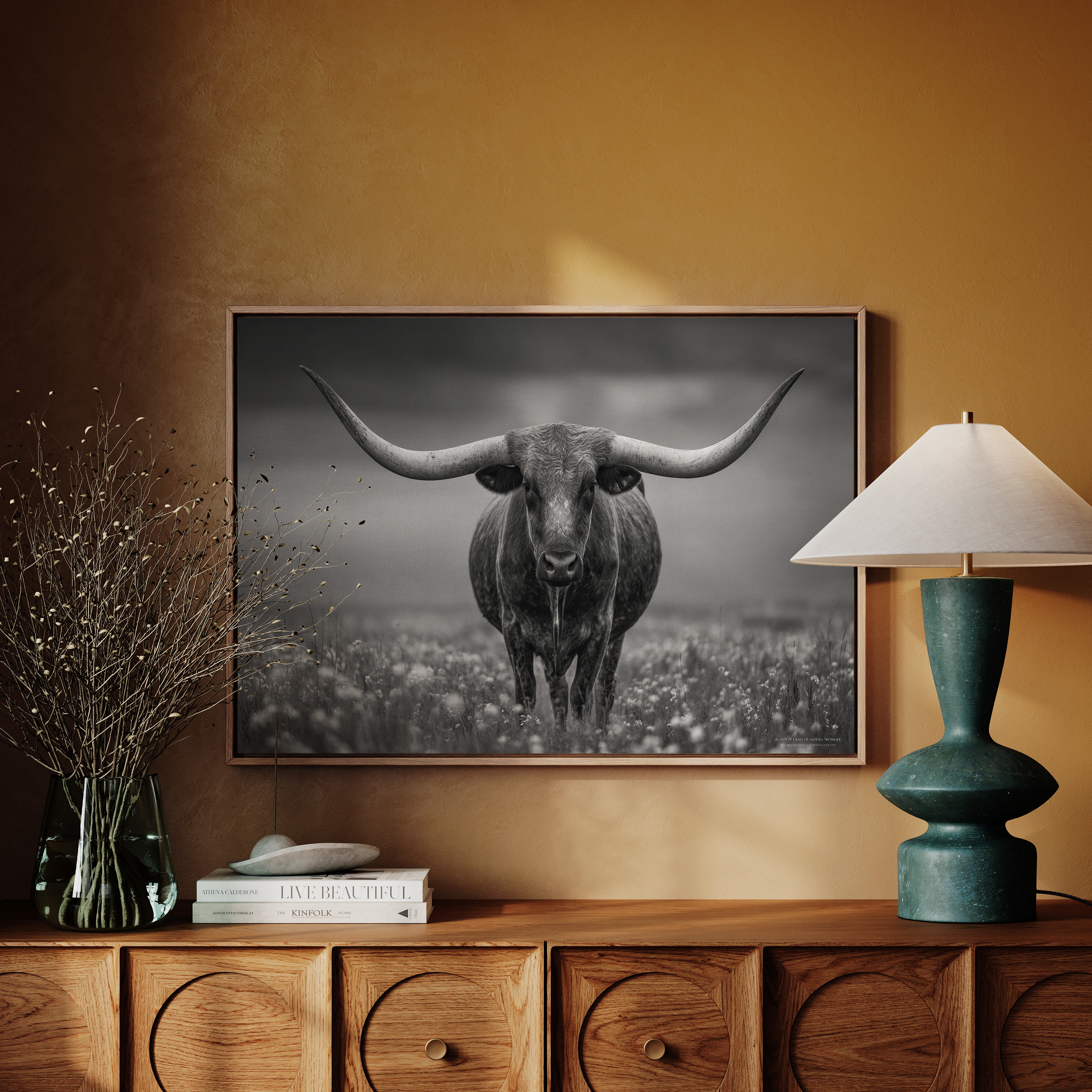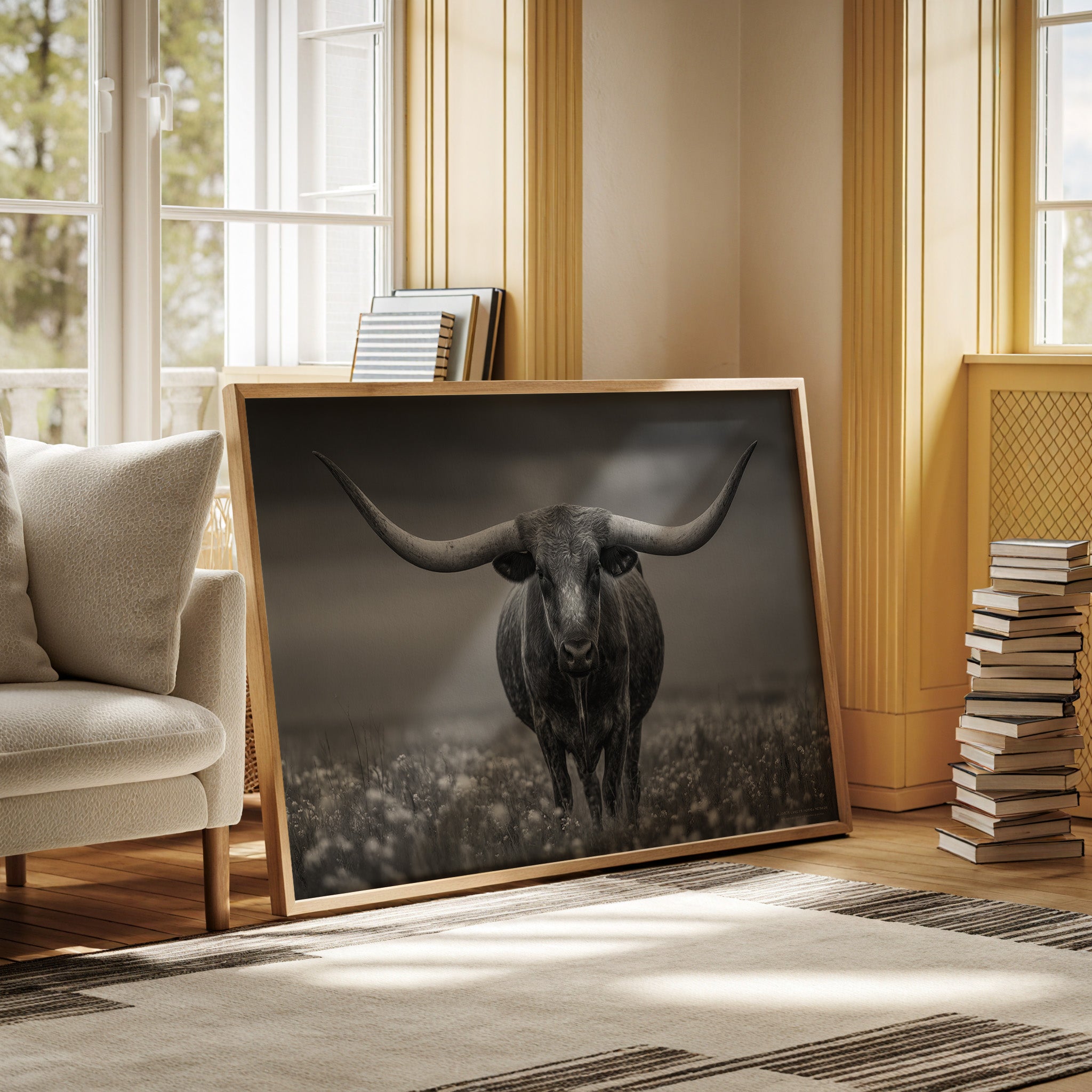 Perfect for creating a powerful focal point in living rooms, home offices, or any space where you want to celebrate the bold resilience of Texas heritage. This piece brings the dramatic spirit of the storm-swept prairie into modern interiors with commanding presence.