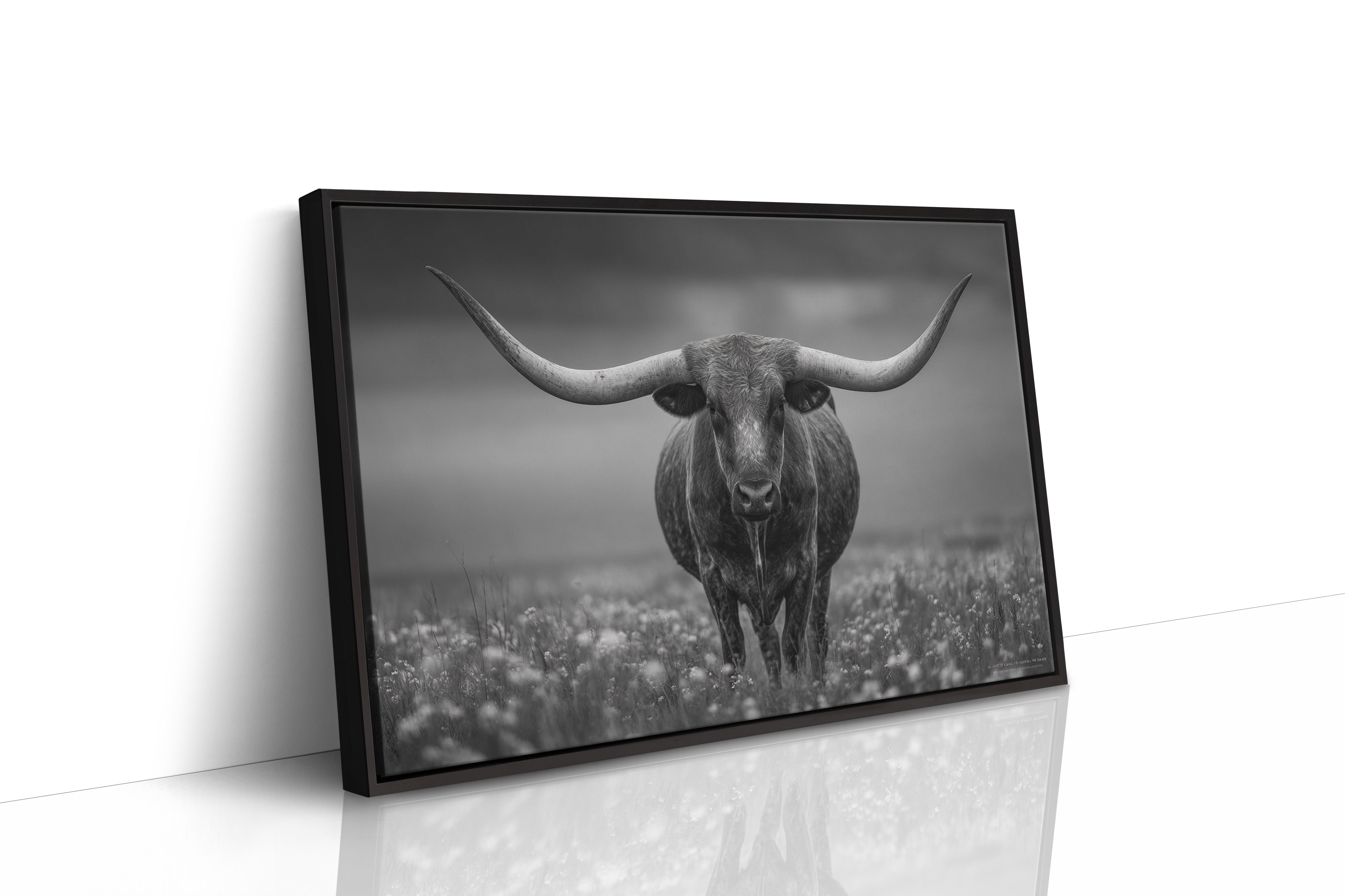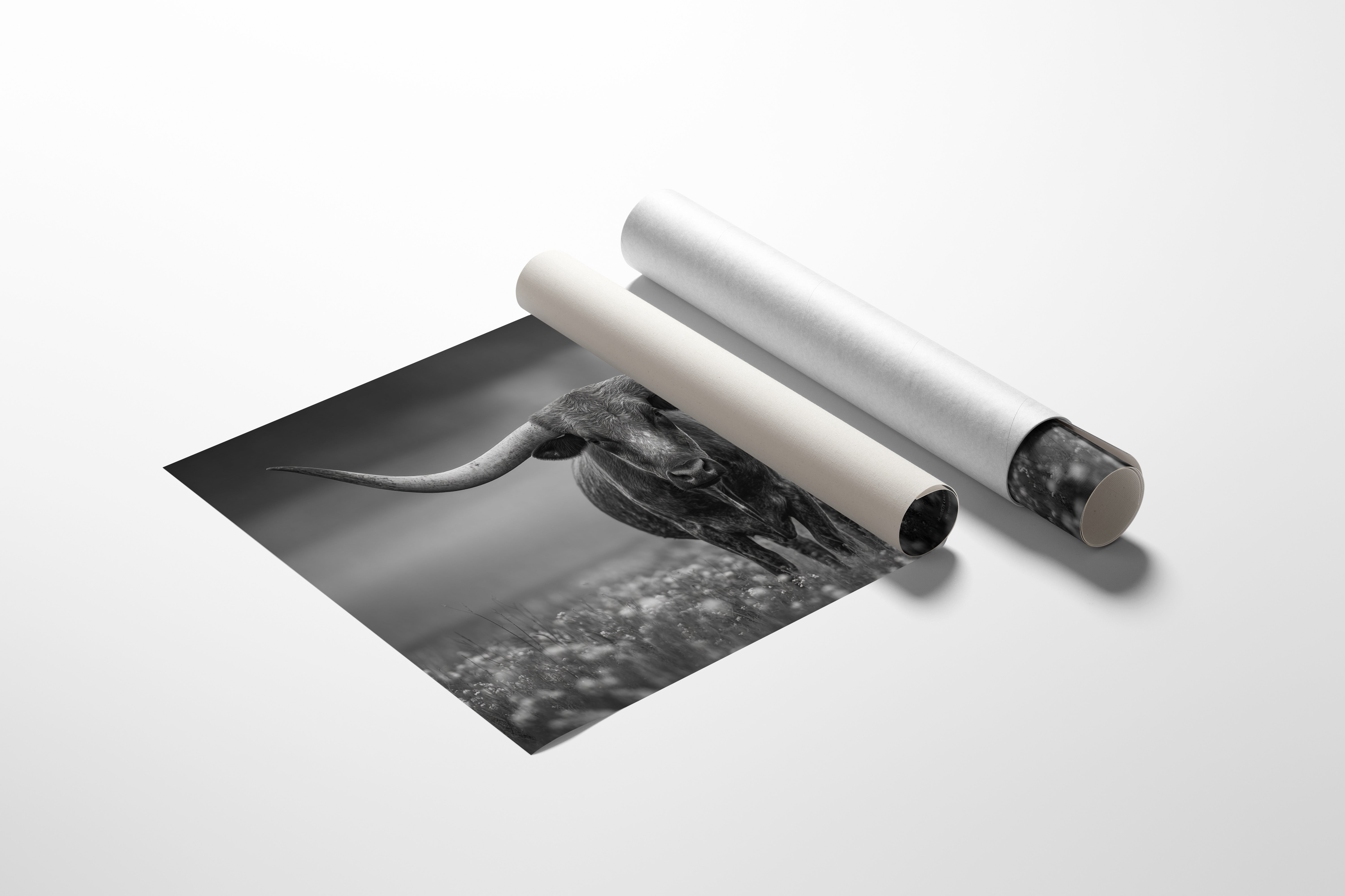 Part of our Storm Country collection, this dramatic black and white photograph captures the raw power and dignity of the legendary longhorn against the moody drama of prairie weather. The threatening sky and unwavering stance create a composition that speaks to the enduring strength that defines both the breed and the land they call home.