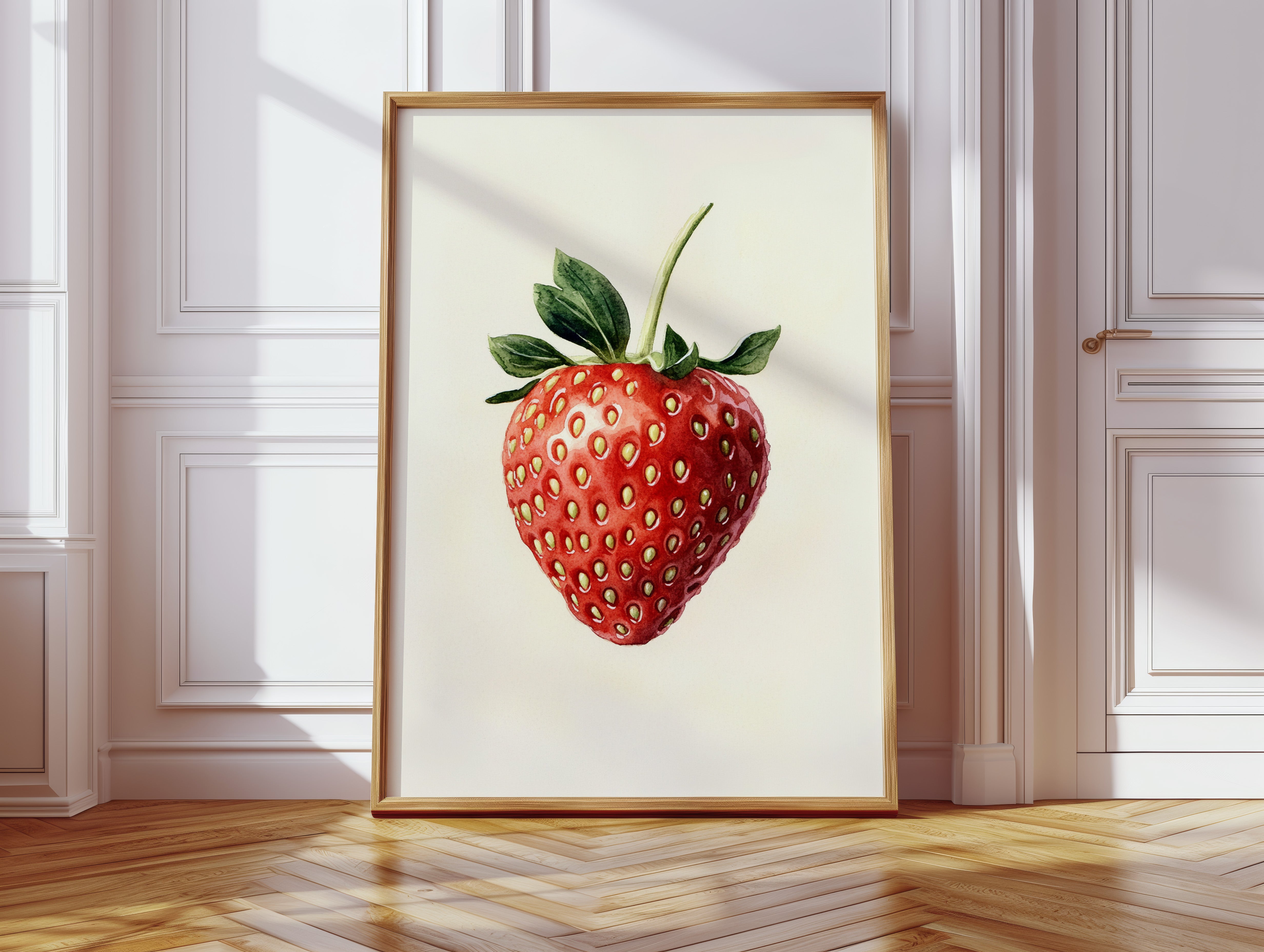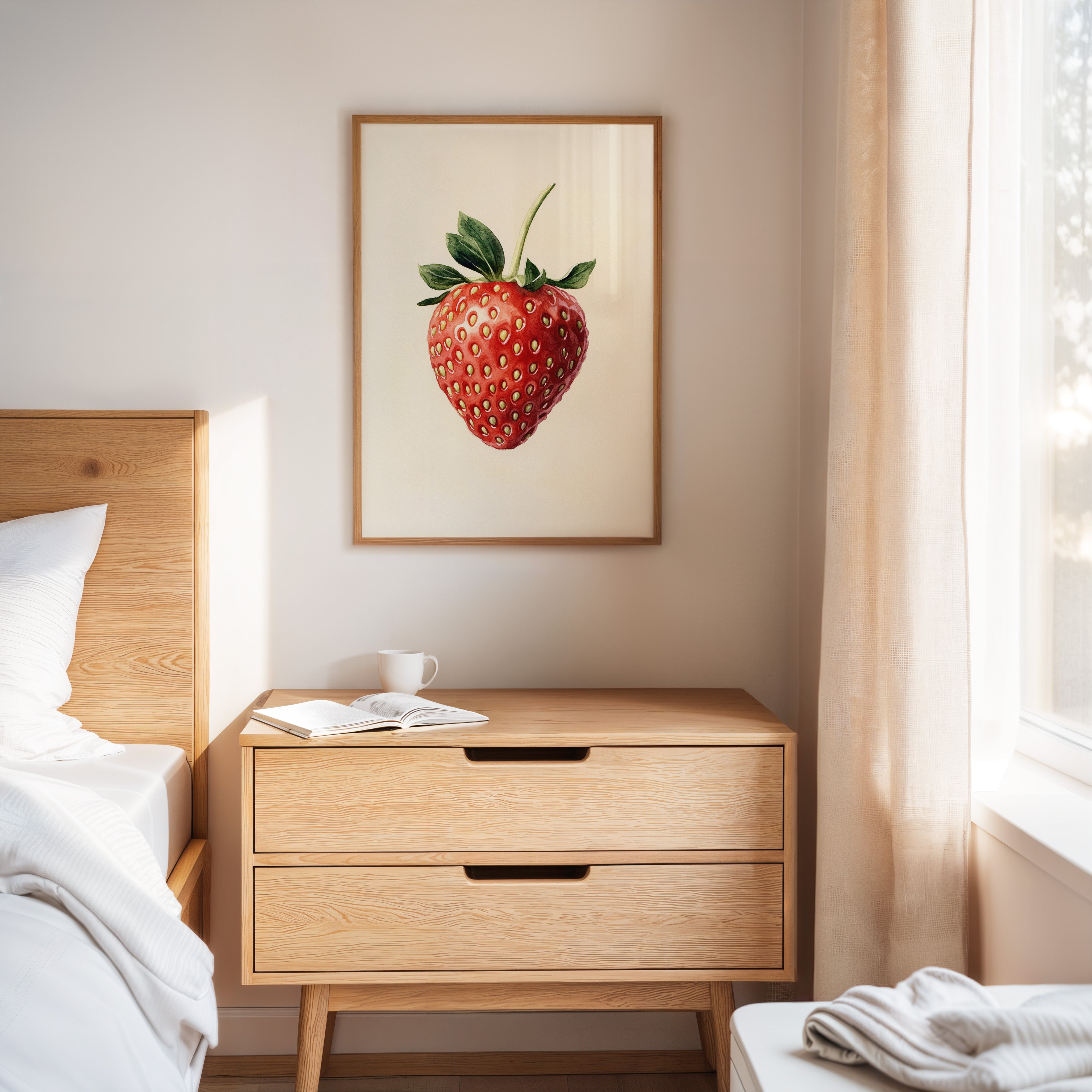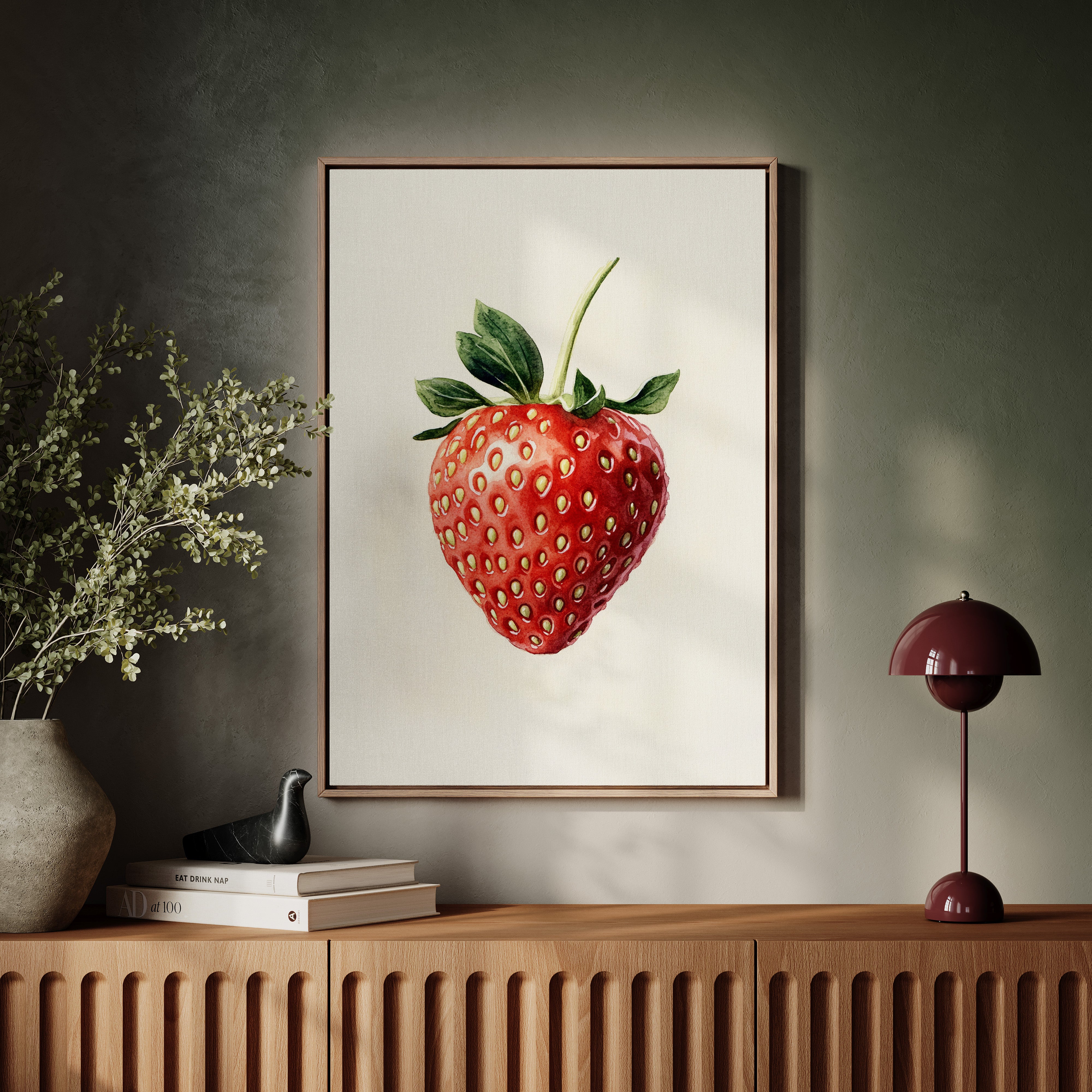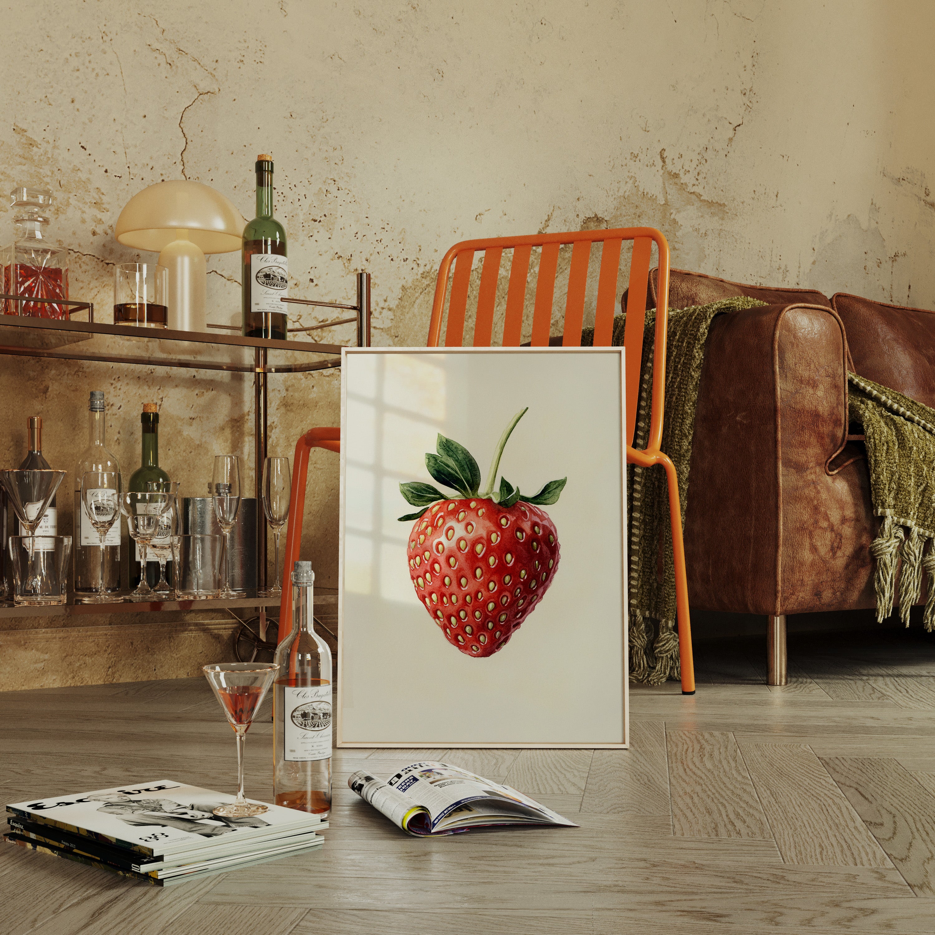 Immerse your space in the sweet nostalgia of summer with 'Strawberry Reverie.' This enchanting piece captures the timeless allure of a perfectly ripe strawberry, rendered with exquisite detail and vibrant hues. Perfect for those who cherish the beauty of nature and wish to bring a touch of rustic charm to their home, this artwork is a delightful nod to simpler times and the joy of fresh, sun-kissed fruit.