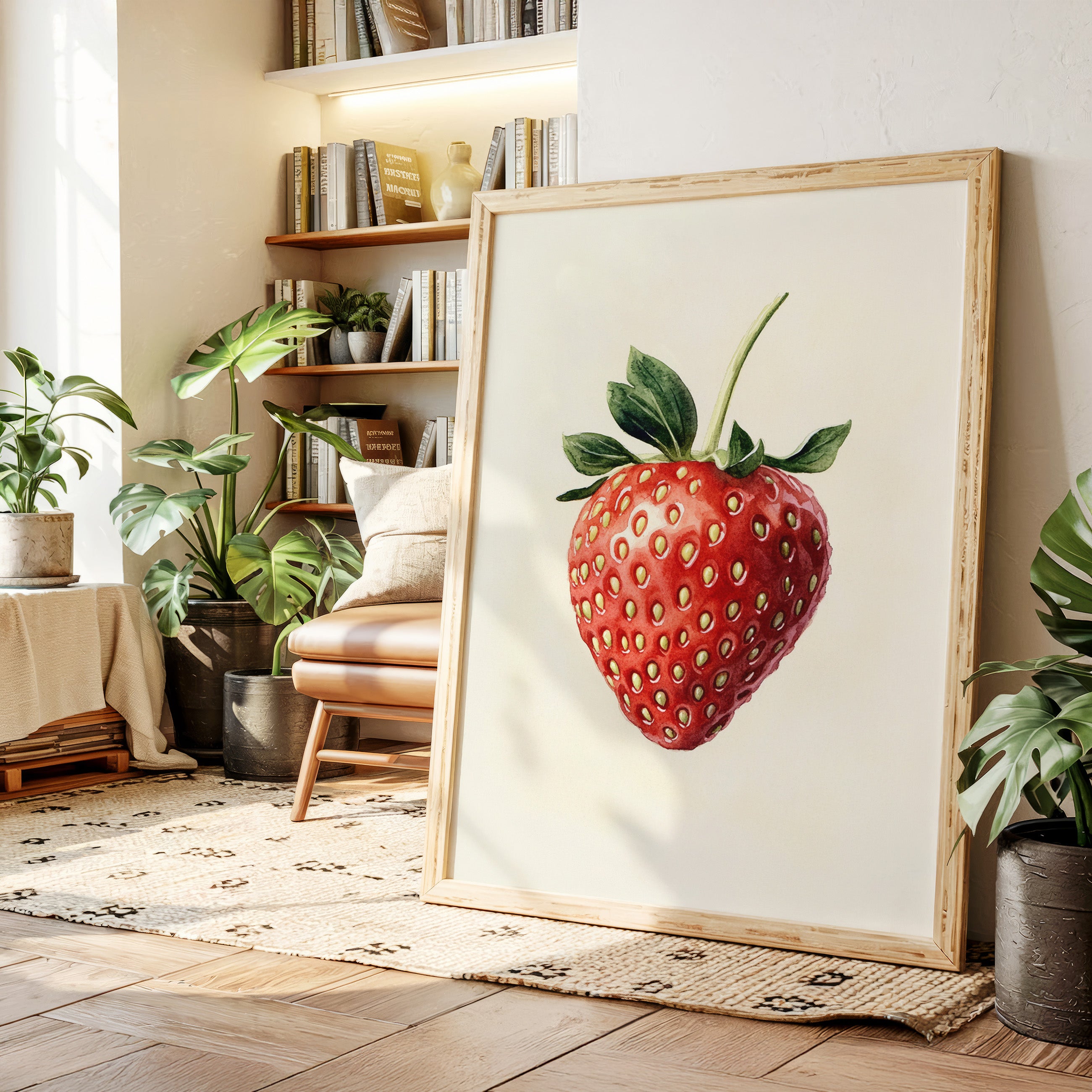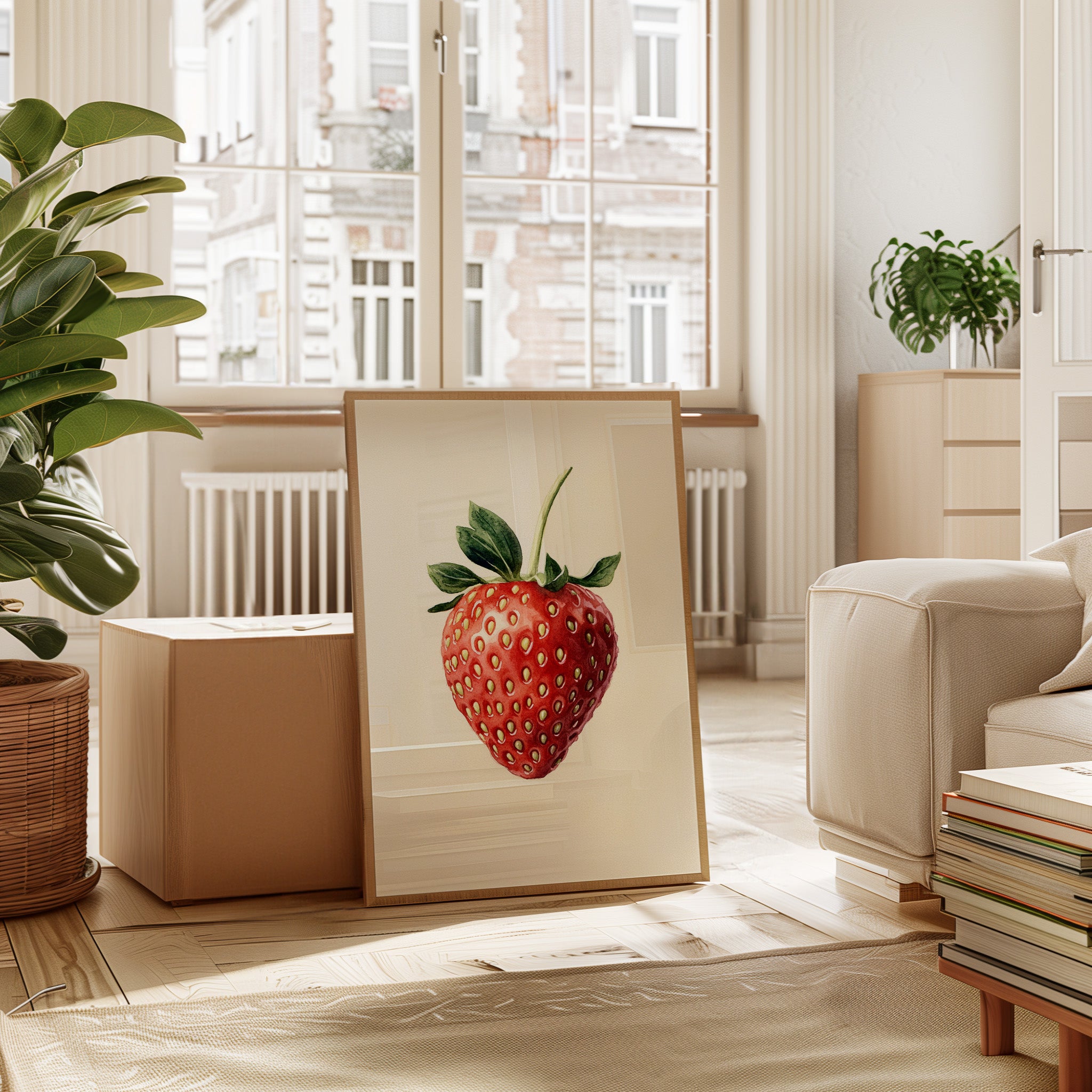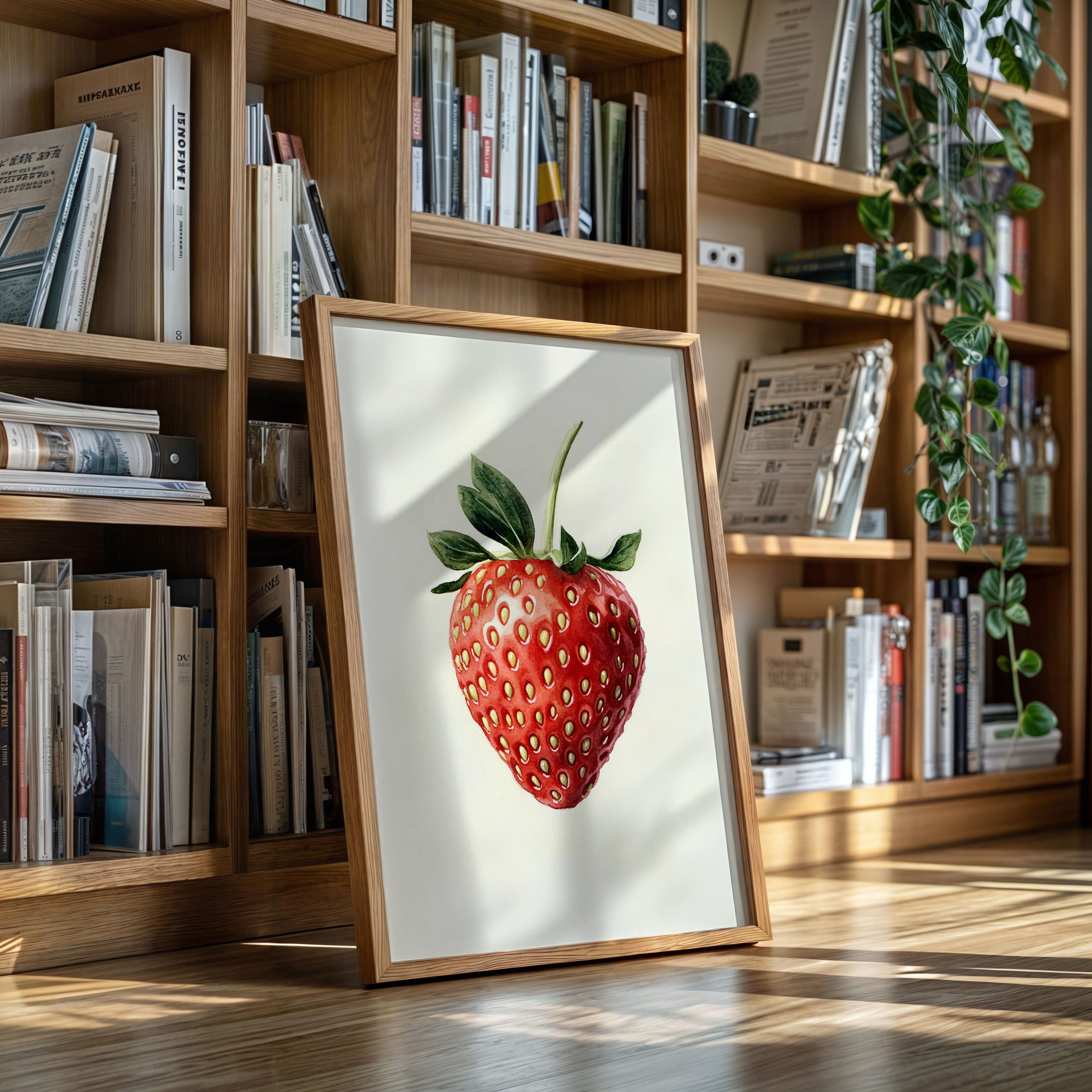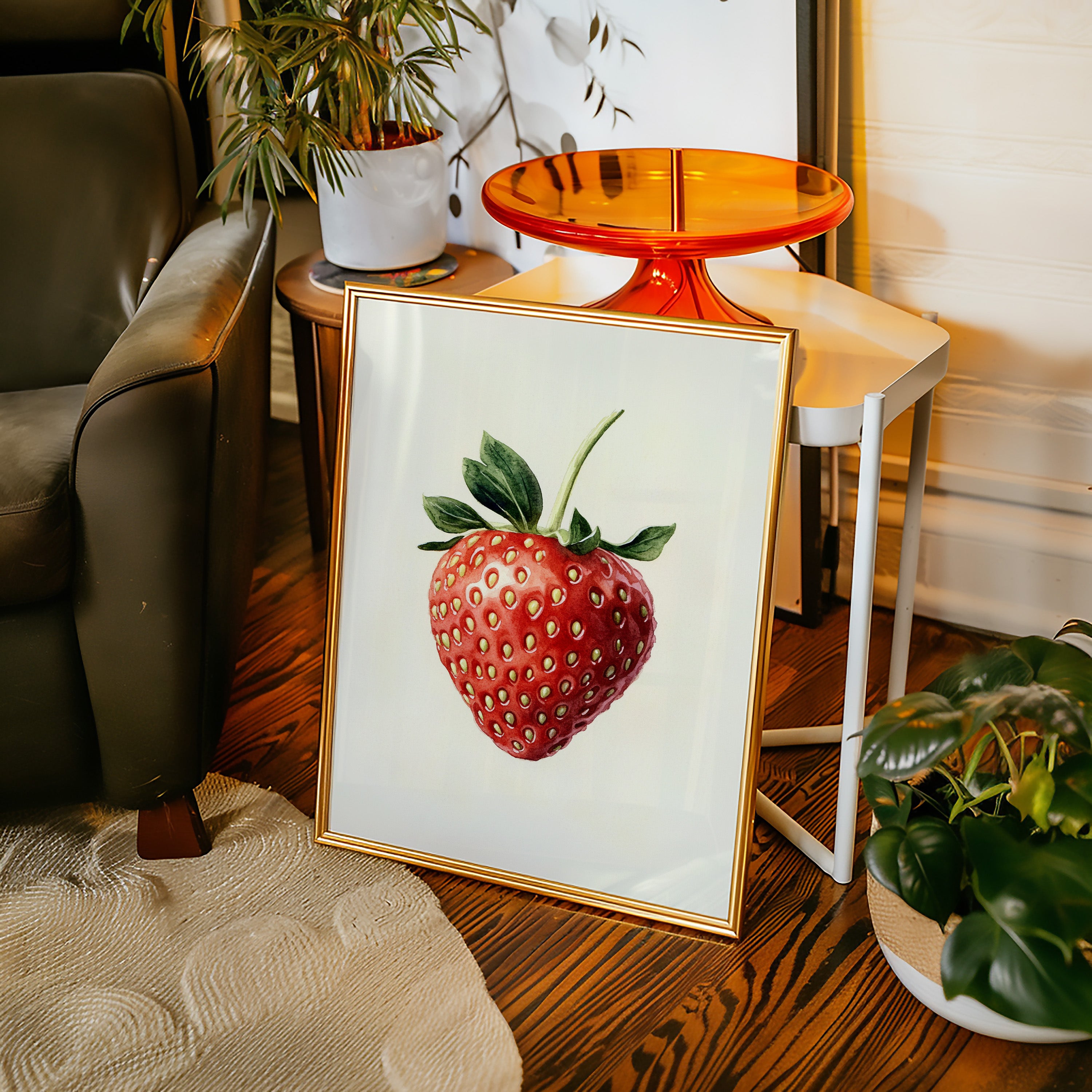 Immerse your space in the sweet nostalgia of summer with 'Strawberry Reverie.' This enchanting piece captures the timeless allure of a perfectly ripe strawberry, rendered with exquisite detail and vibrant hues. Perfect for those who cherish the beauty of nature and wish to bring a touch of rustic charm to their home, this artwork is a delightful nod to simpler times and the joy of fresh, sun-kissed fruit.