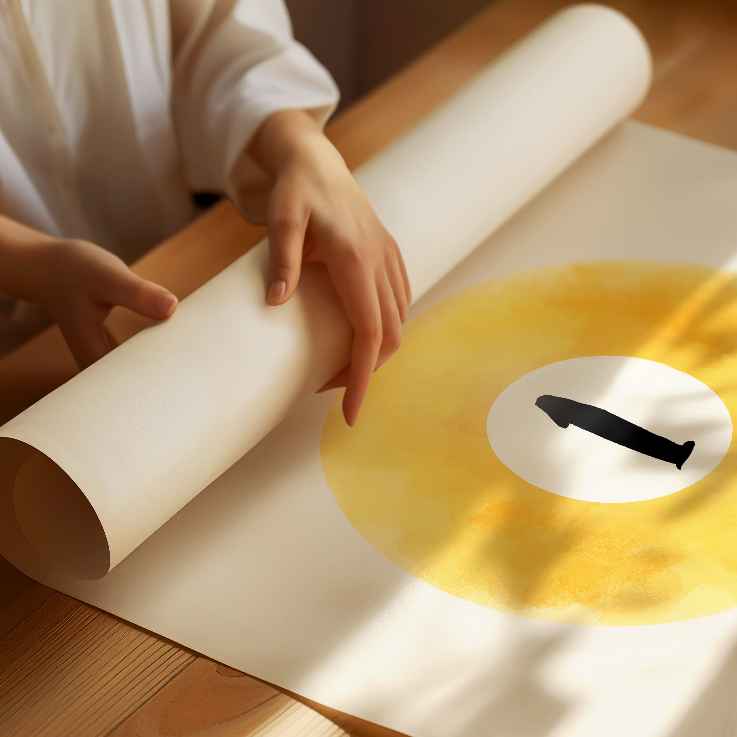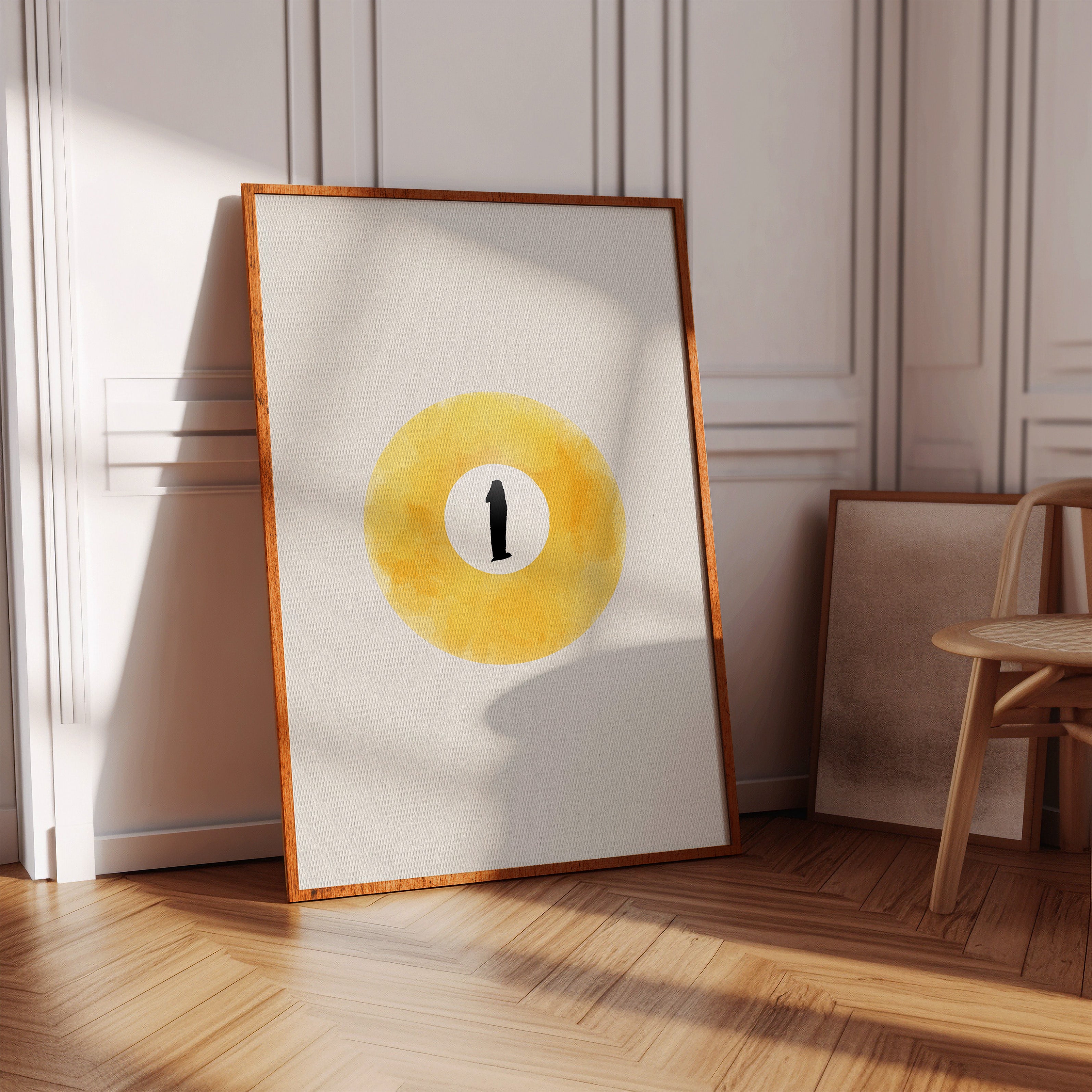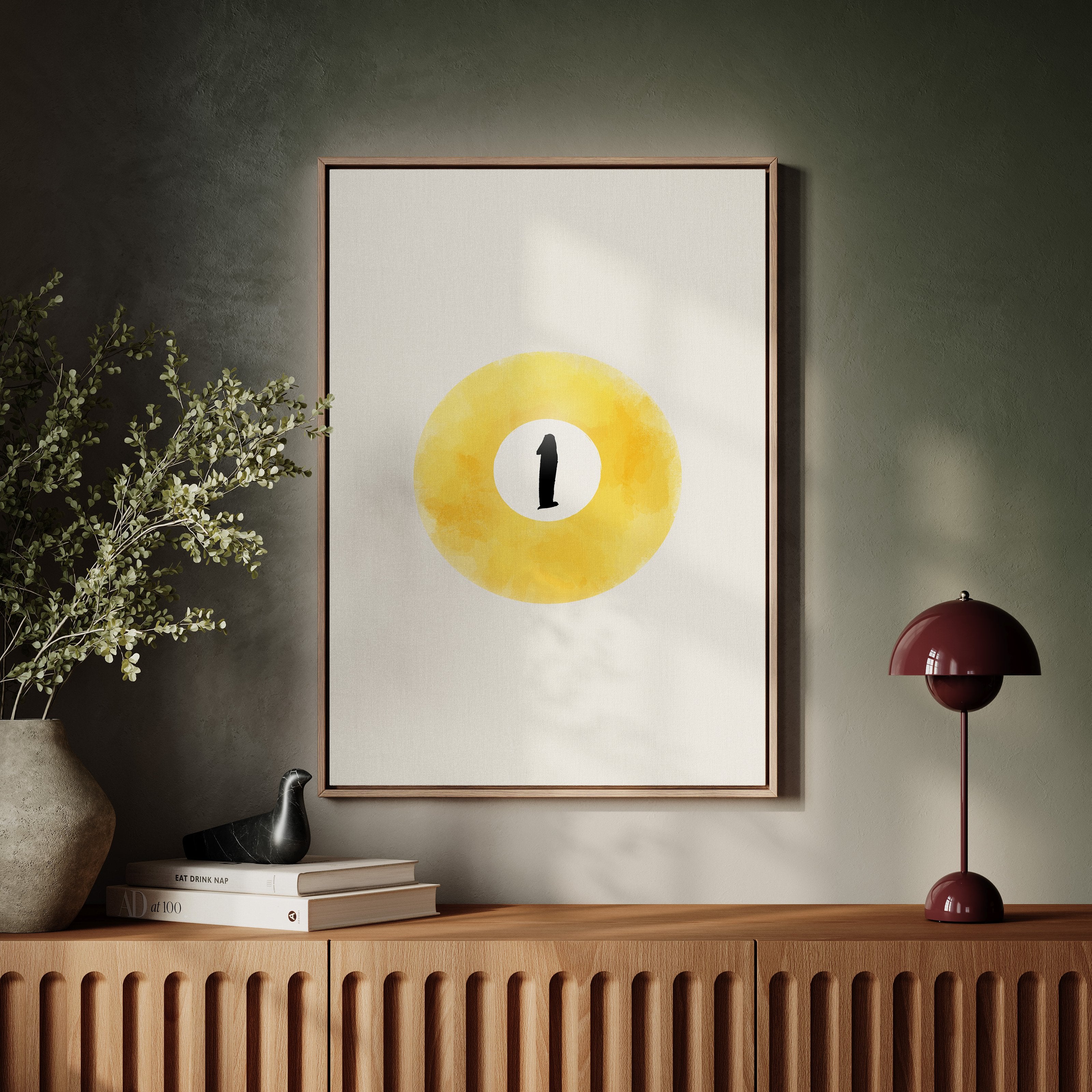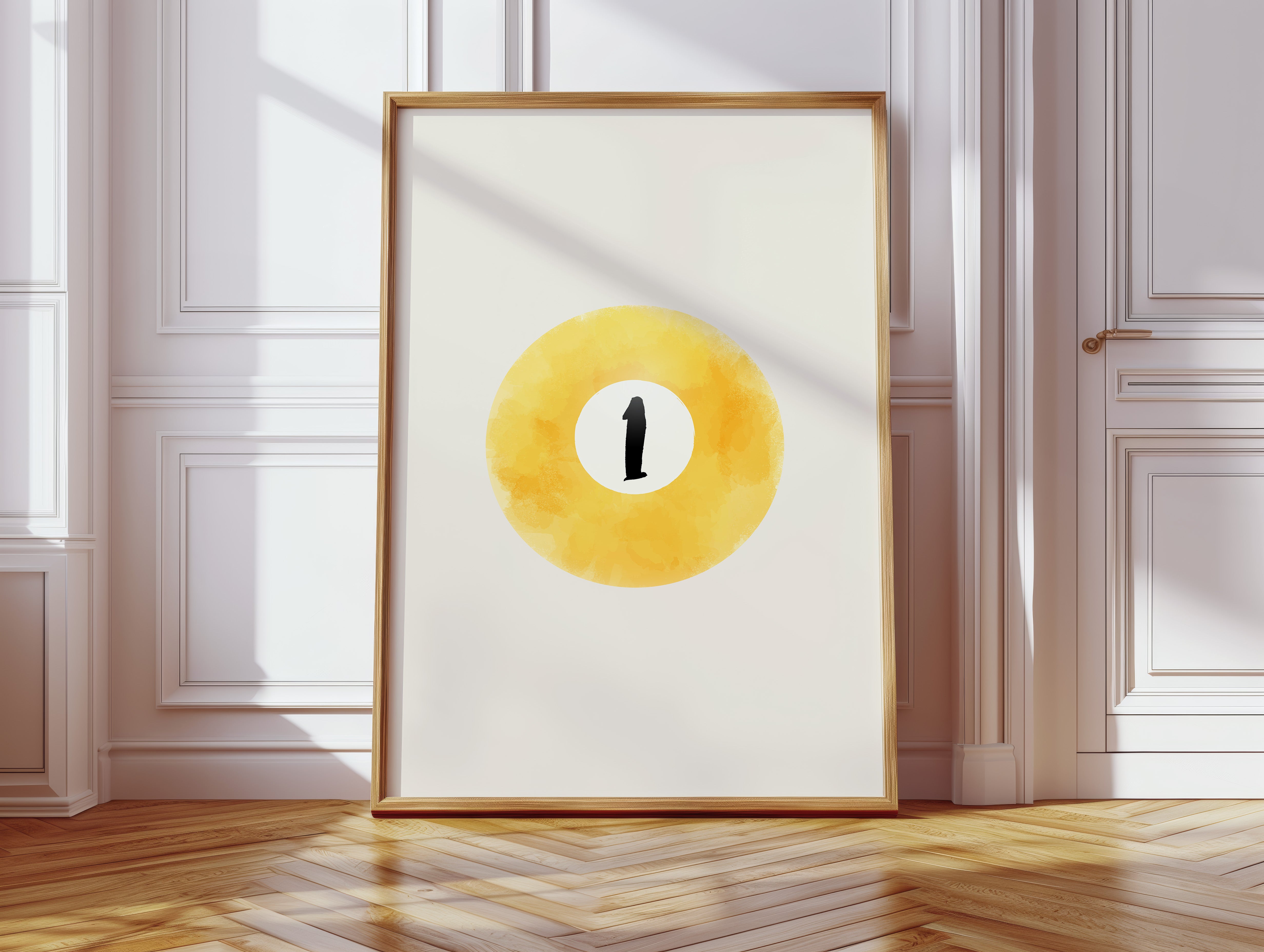 A luminous golden ring radiates warmth against pristine white space, centered by a bold numeral one that commands attention with quiet authority. This piece from our Contemporary collection celebrates the power of minimalist design through essential geometric forms. The watercolor-like texture of the yellow circle creates a soft corona effect, suggesting both solar brilliance and the gentle diffusion of morning light. The stark contrast between the pure white background and the deep black figure speaks to moments of clarity and decisive beginnings. Perfect for modern office spaces or meditation rooms where its clean lines and optimistic energy can inspire fresh starts and focused thinking.