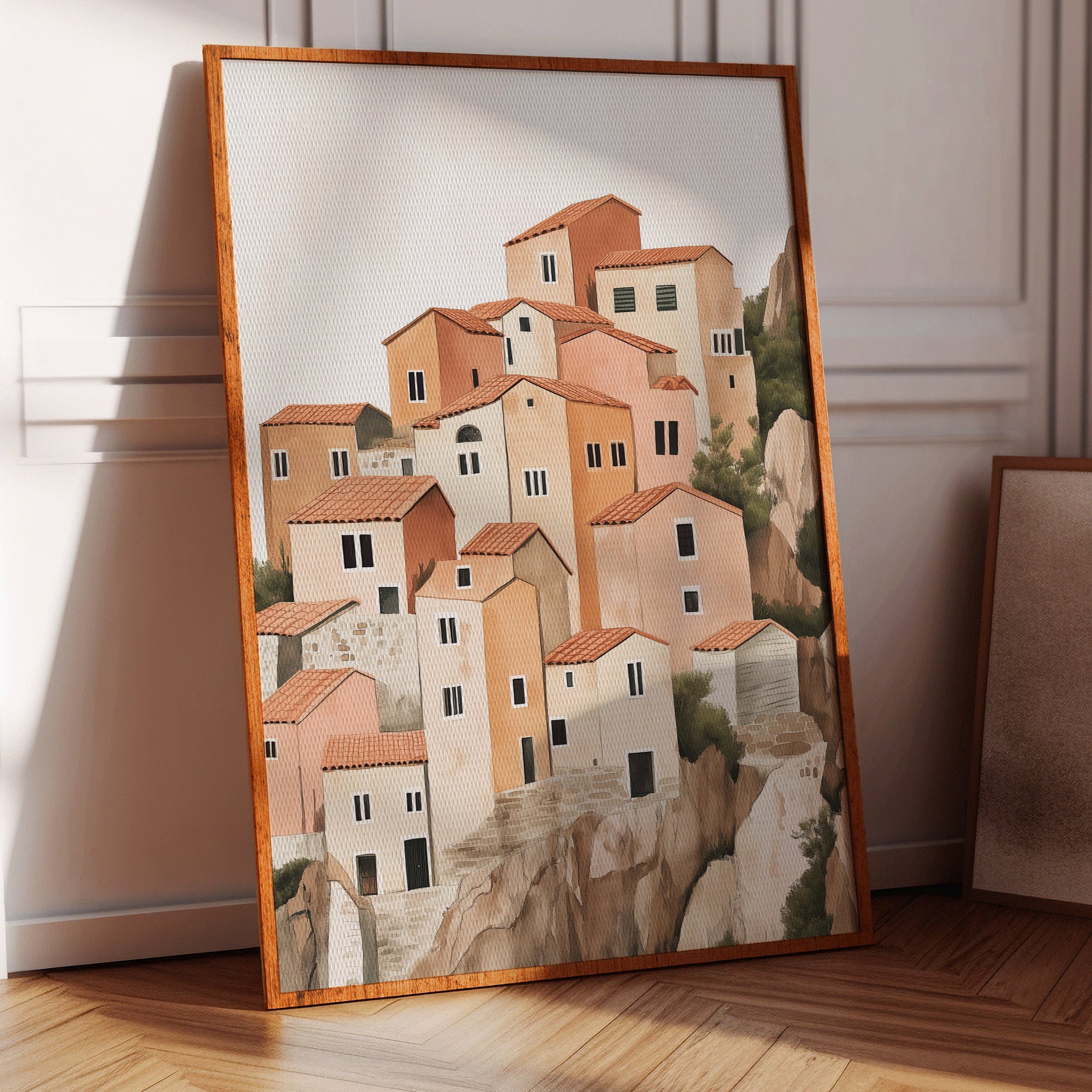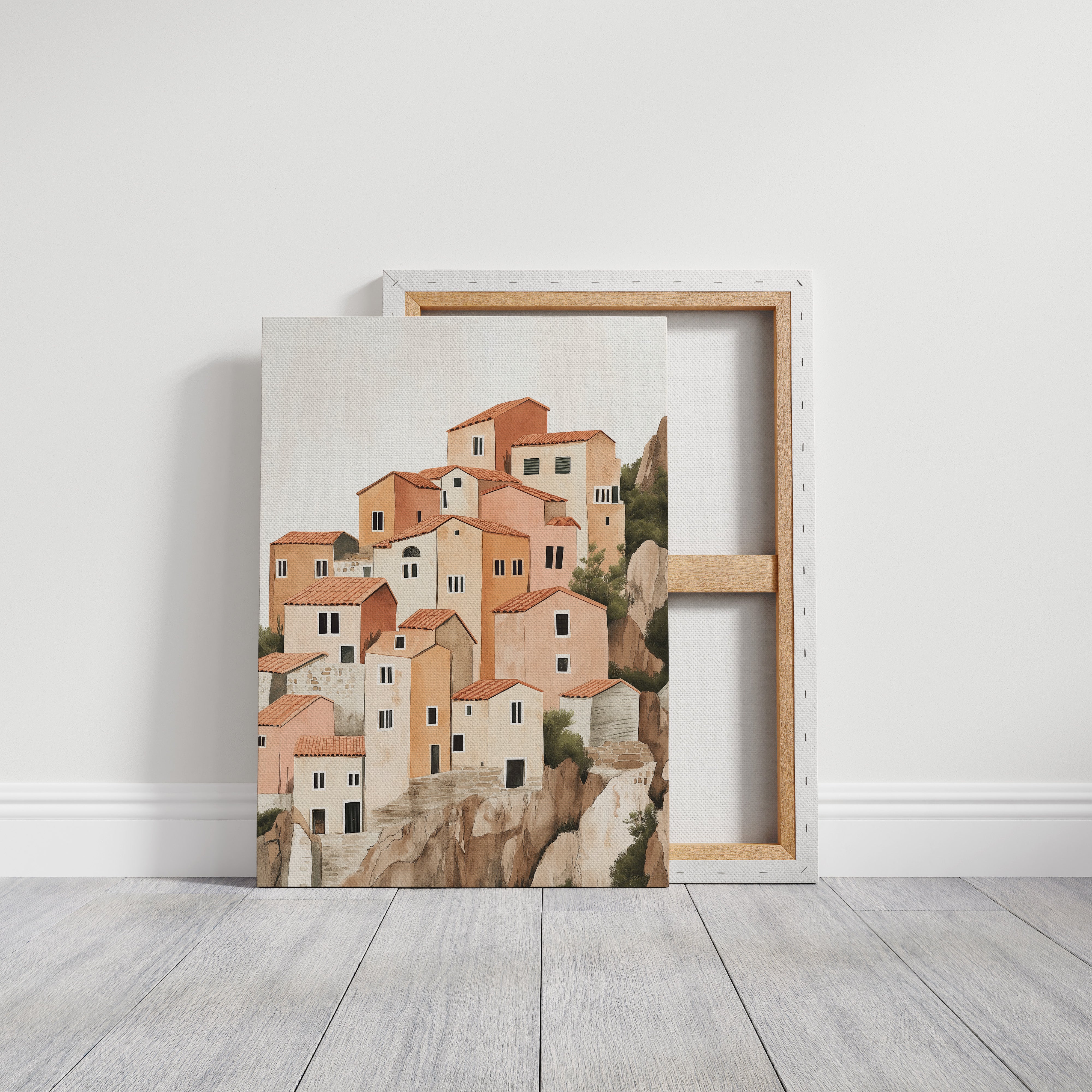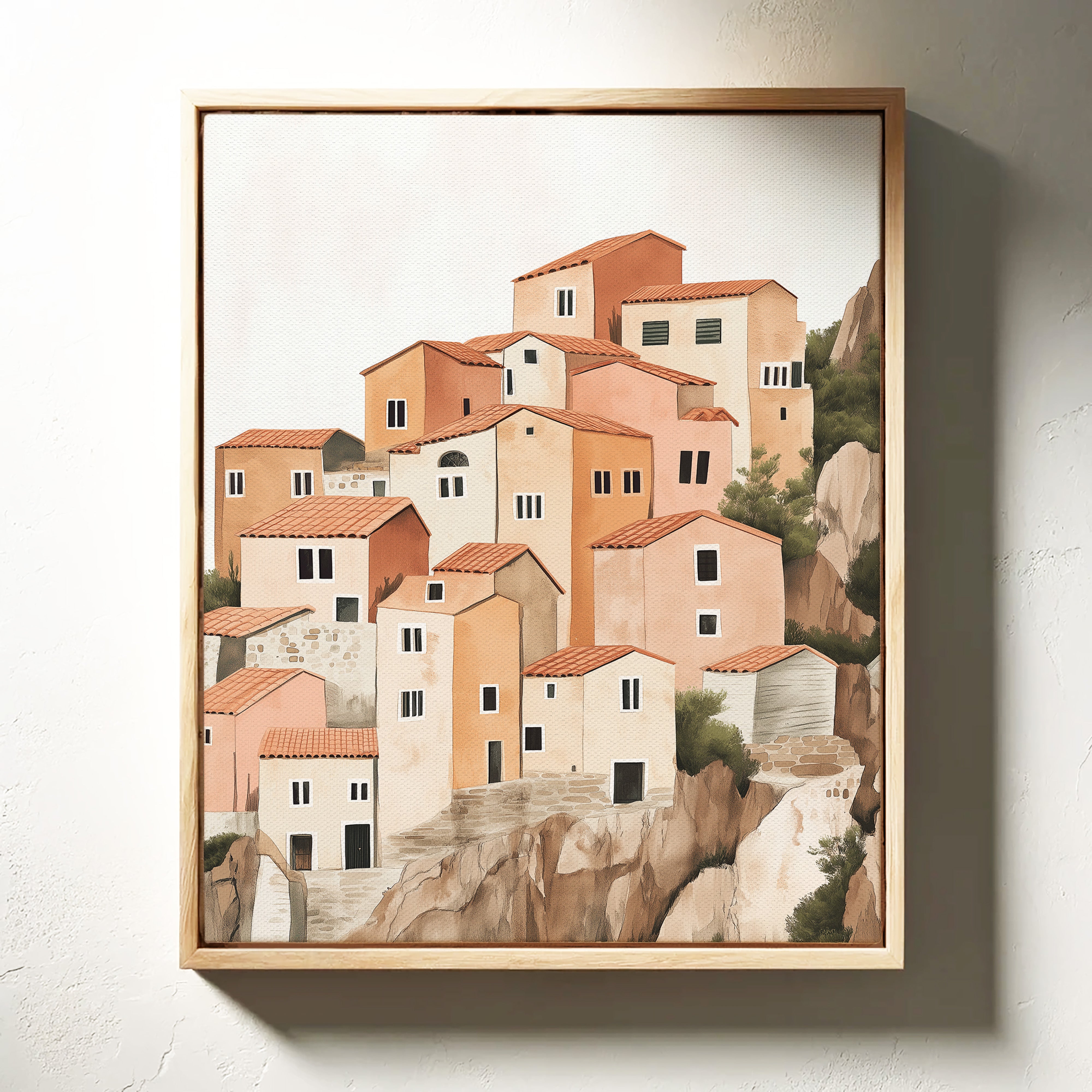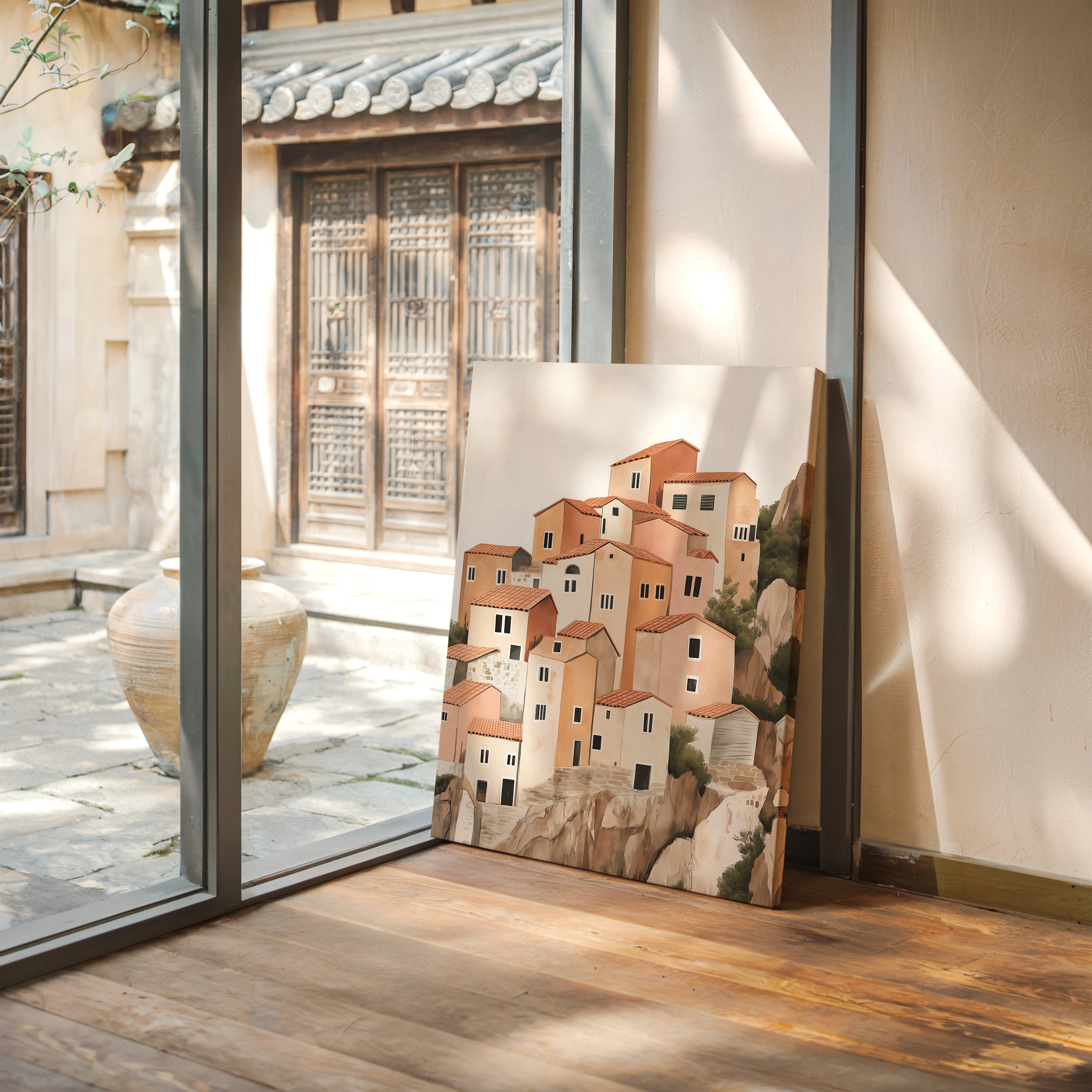 Sunlit Cliffside Village in Warm Earth Tones | Gallery Canvas / 9" x 11" | $65.00