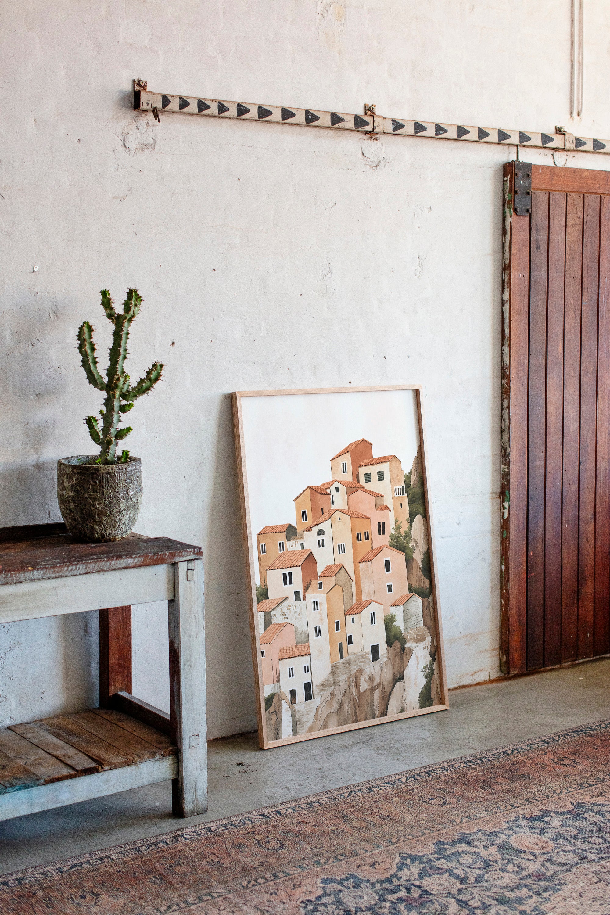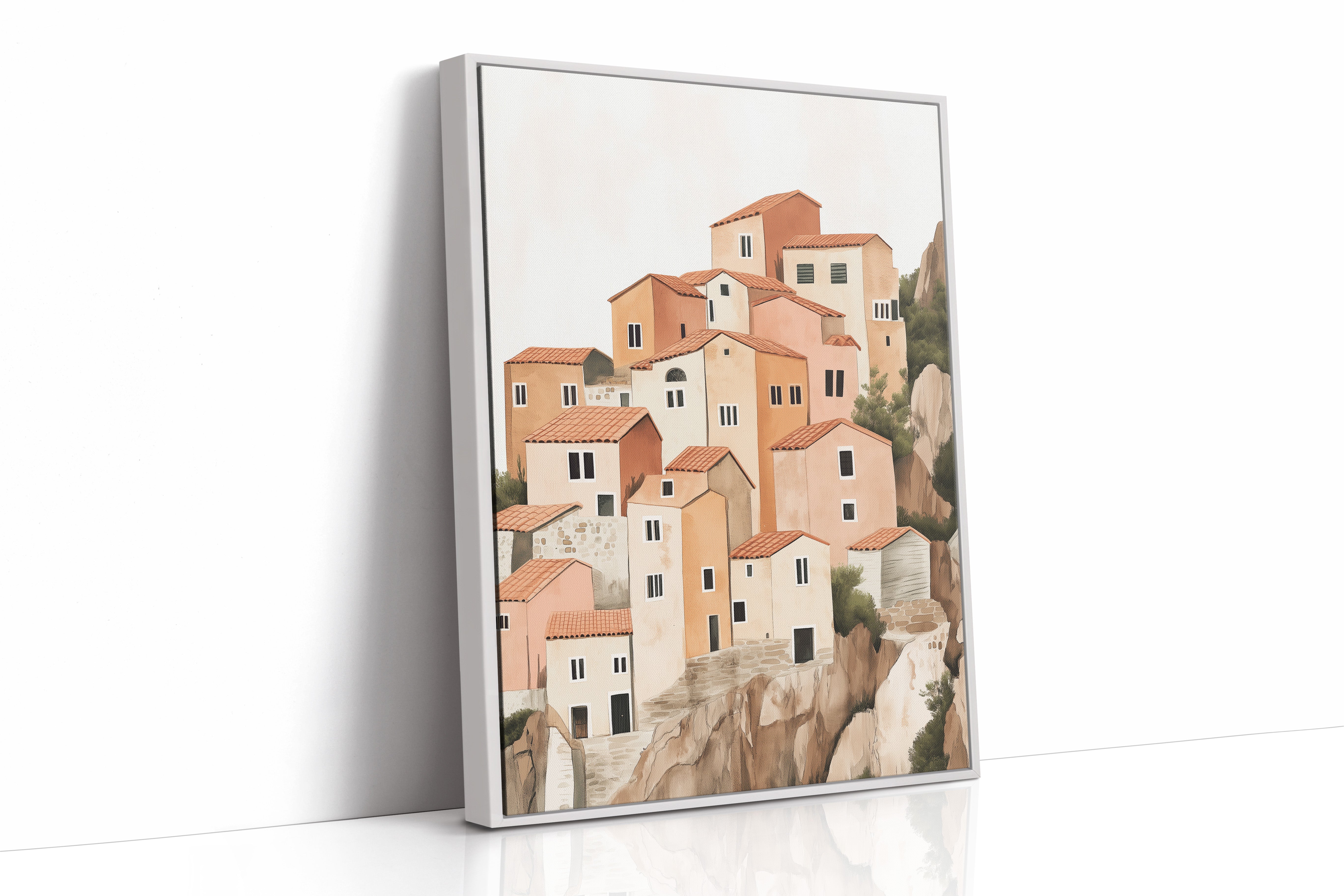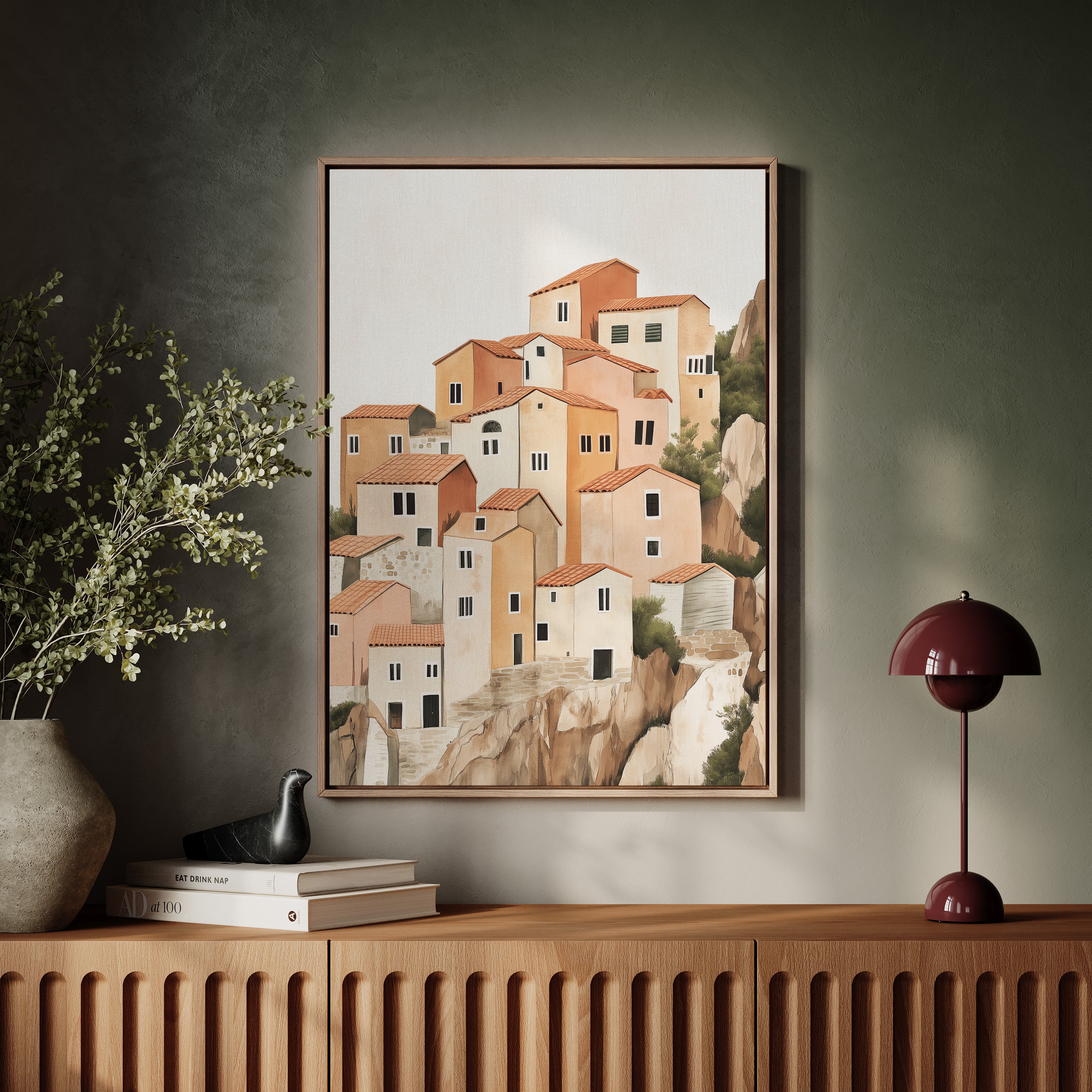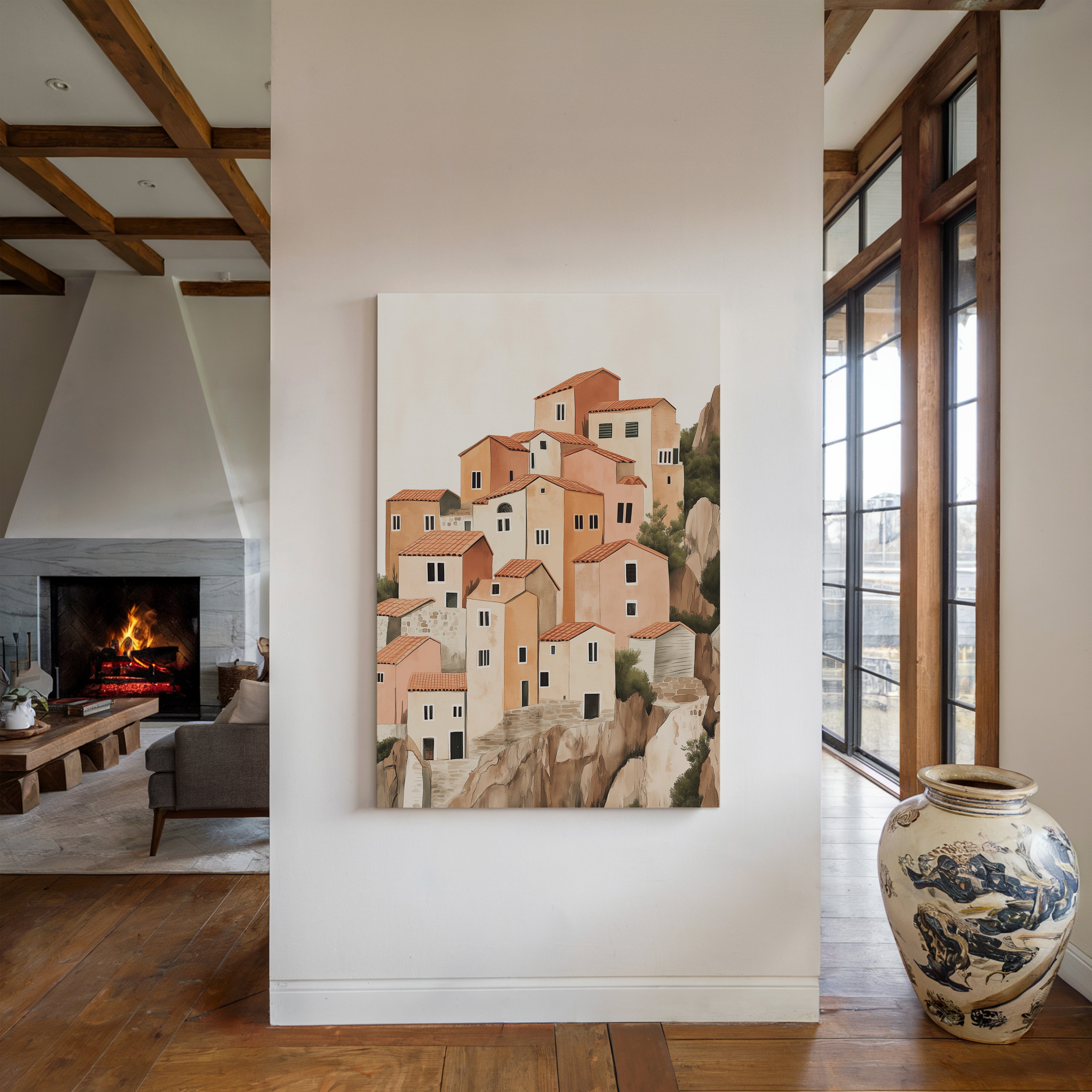 Sunlit Cliffside Village in Warm Earth Tones | Gallery Canvas / 9" x 11" | $65.00