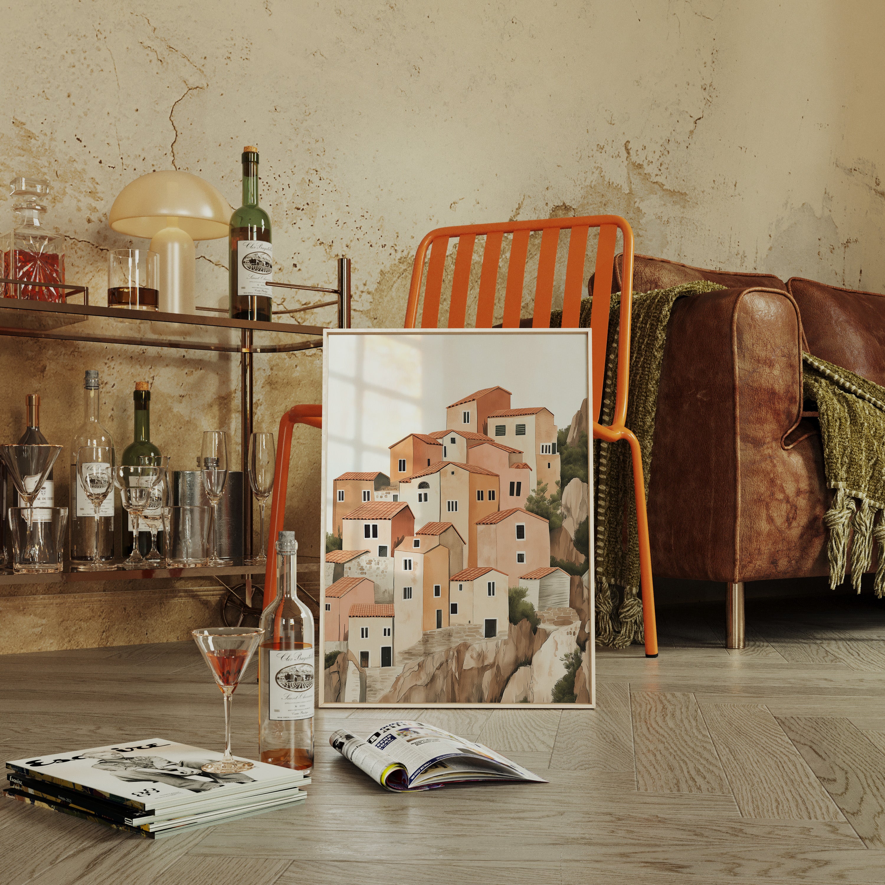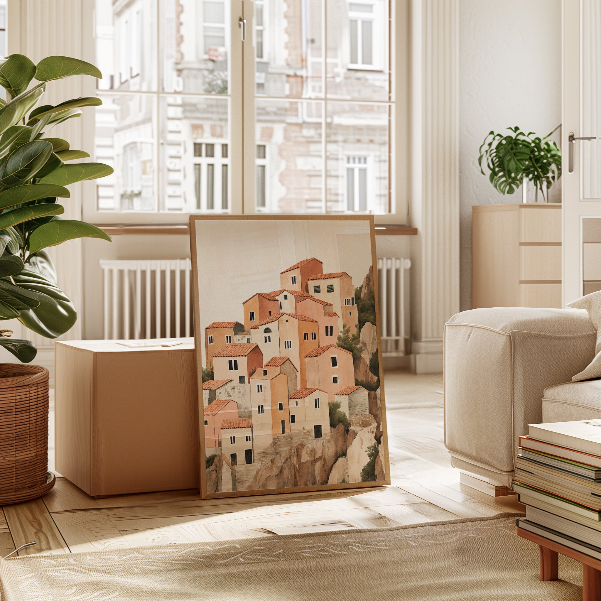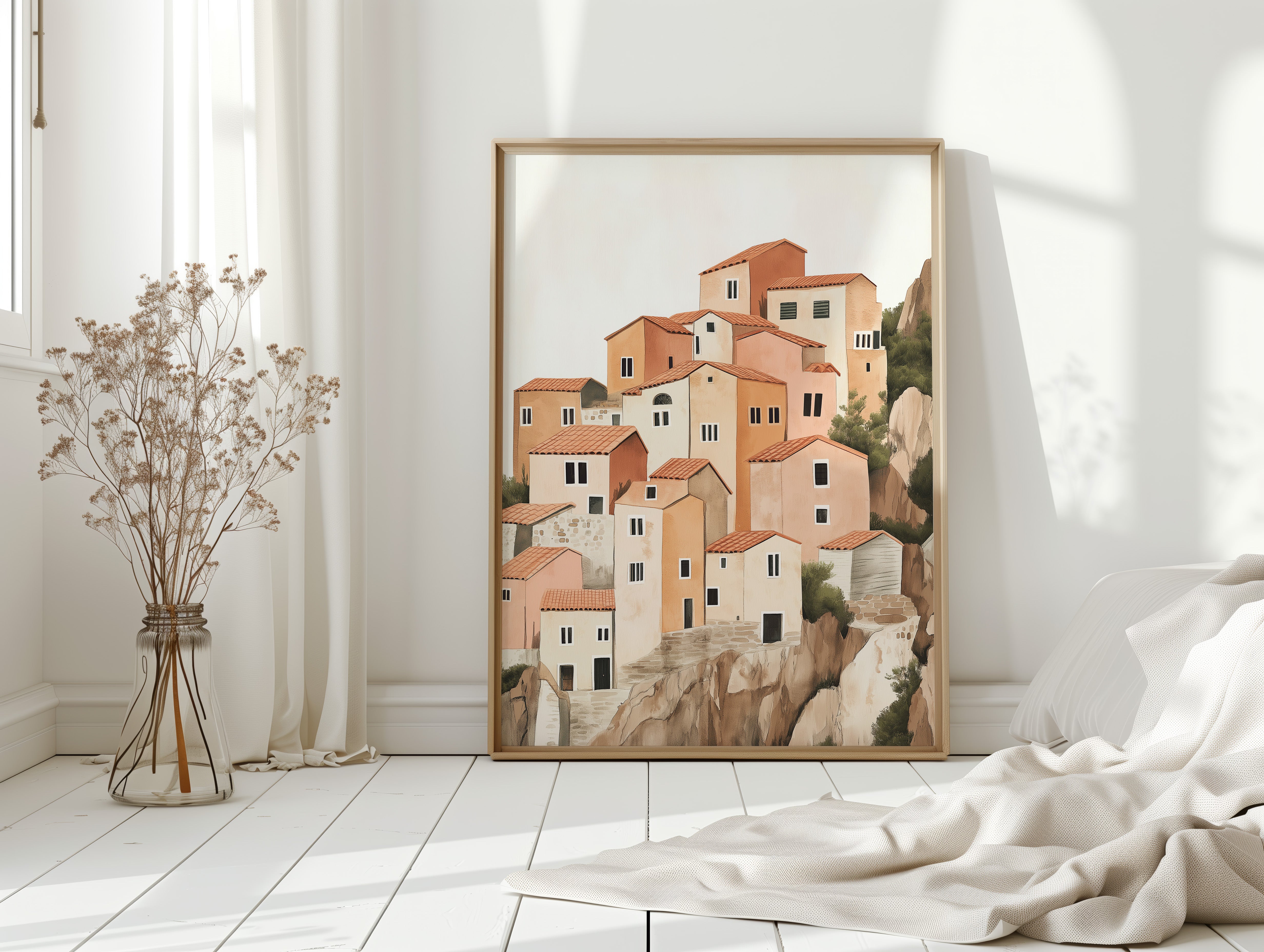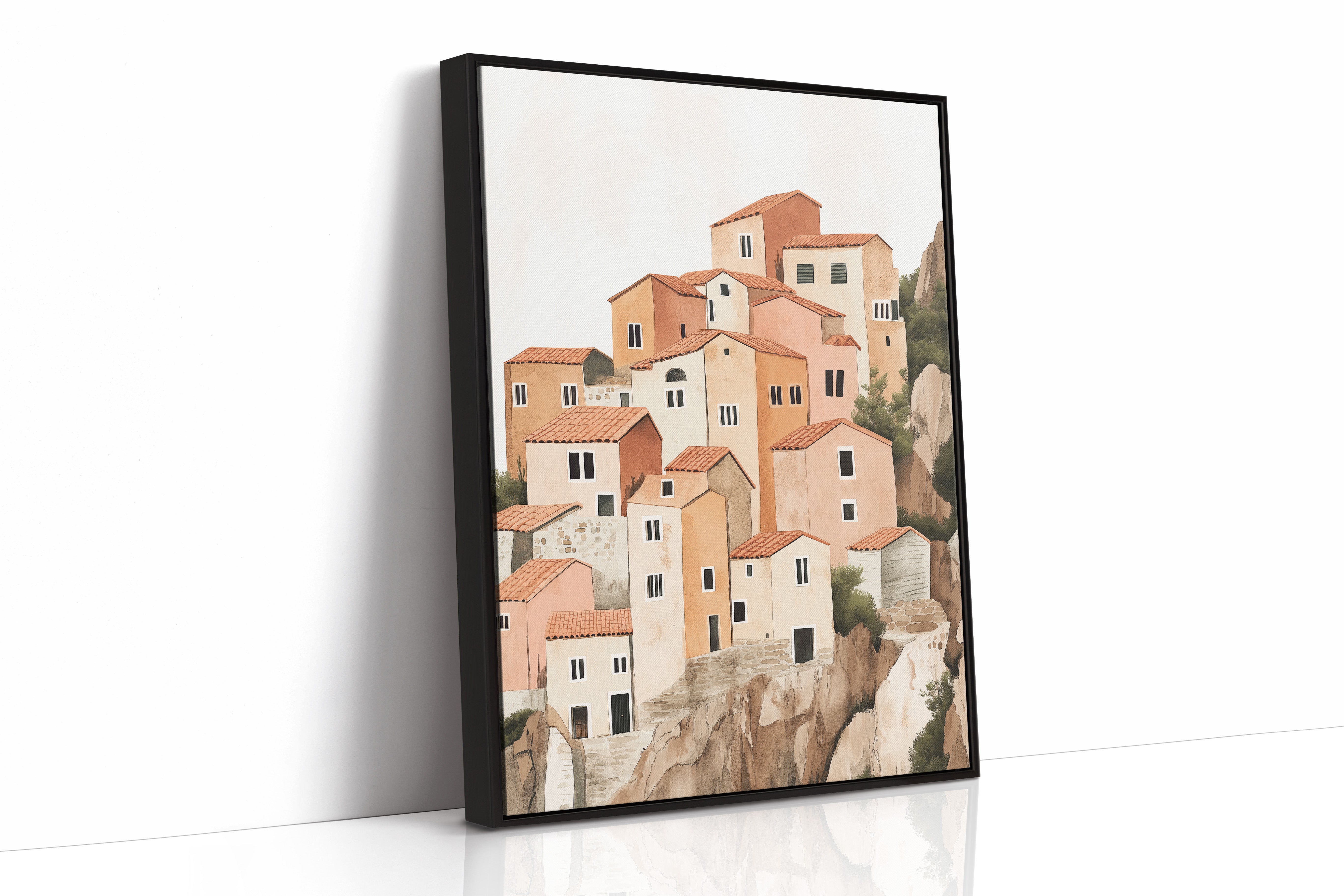 Sunlit Cliffside Village in Warm Earth Tones | Gallery Canvas / 9" x 11" | $65.00