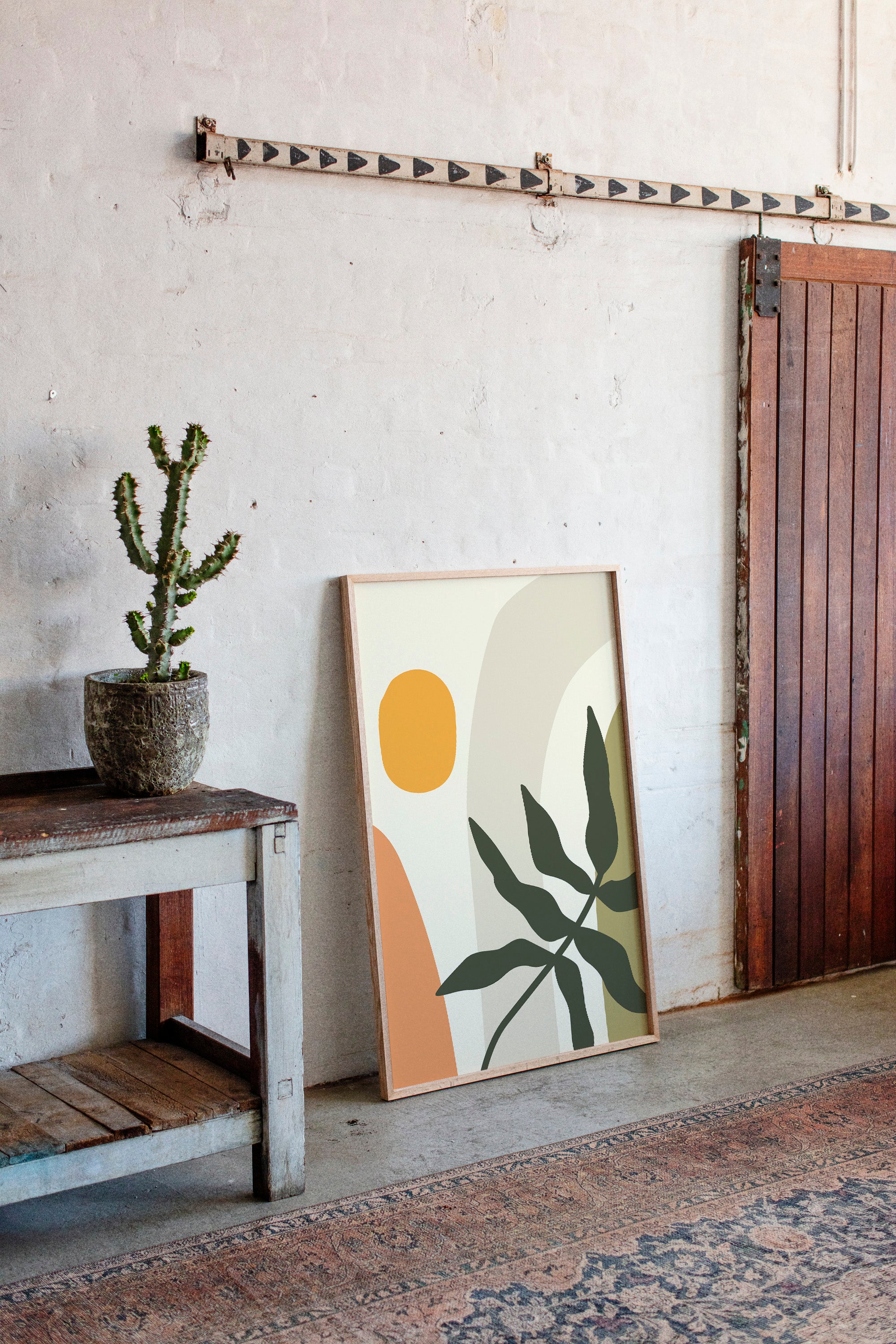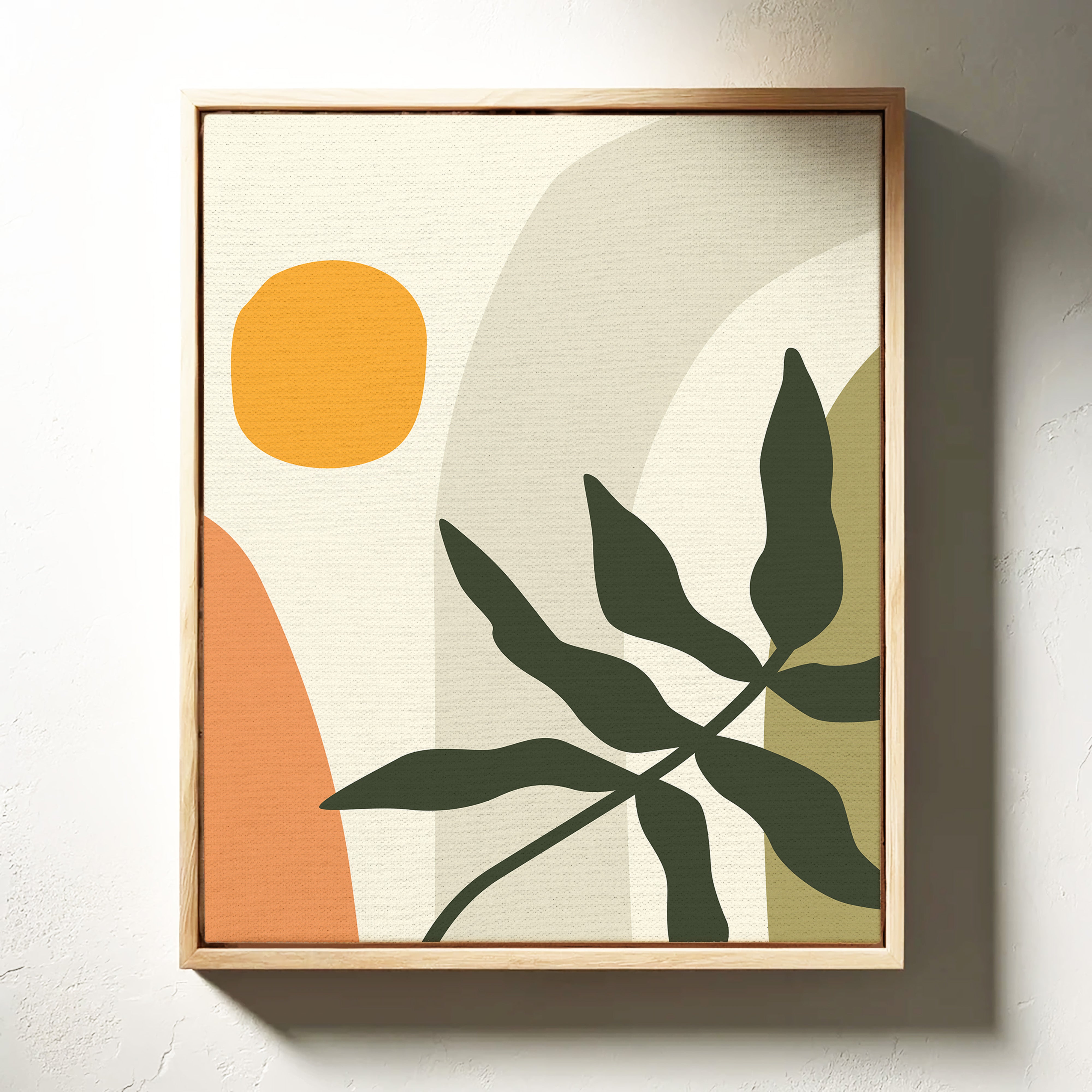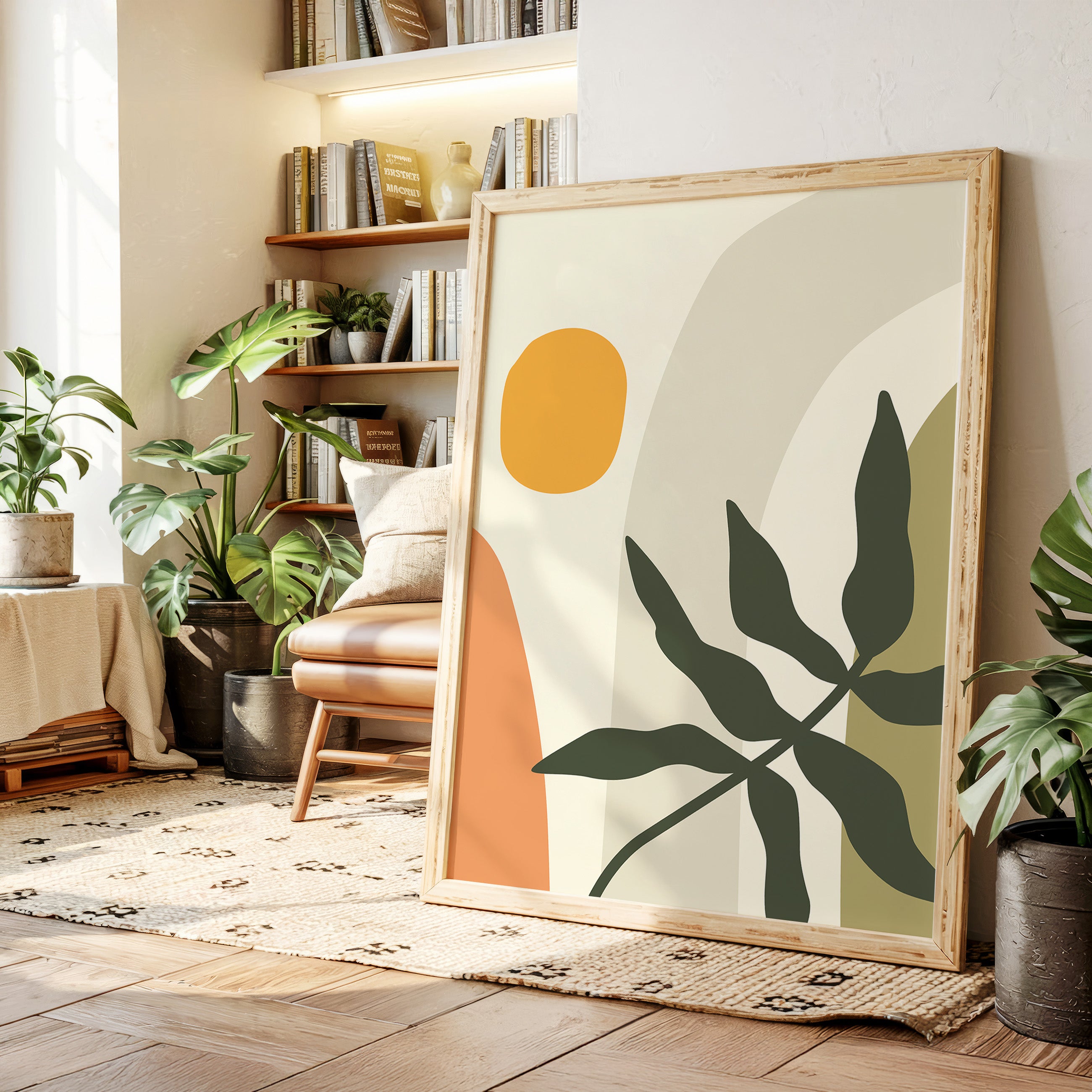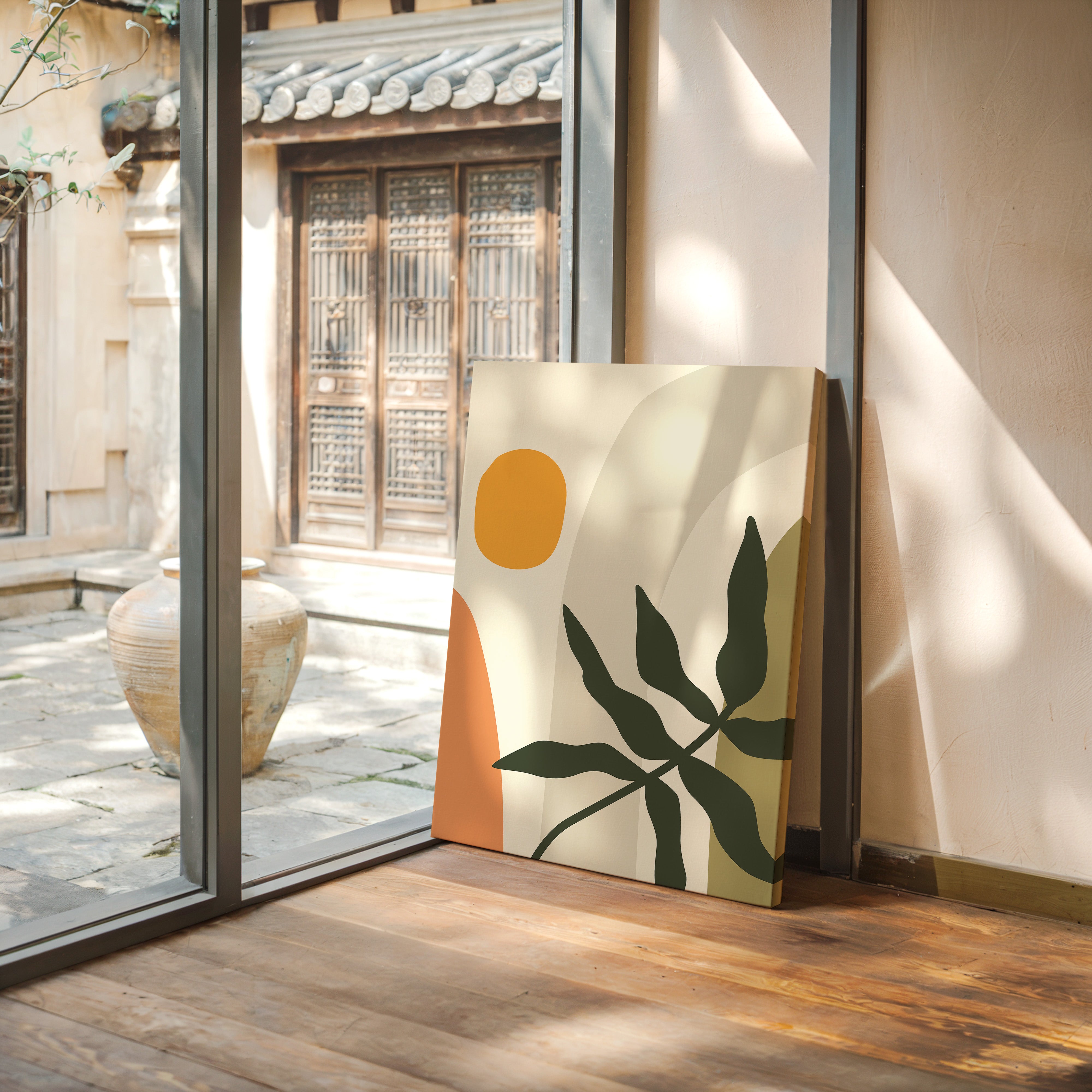 In a dance of colors, a deep green leaf reaches towards the golden sun, framing a moment of tranquil connection. This piece radiates contemporary elegance, inviting a fresh perspective into any space. The gentle interplay of shapes and hues evokes a sense of balance, where nature meets modern design, creating an inviting atmosphere. Ideal for a serene living room or a bright workspace, it inspires creativity and calm. Let the simplicity of this composition remind you of nature's quiet beauty.