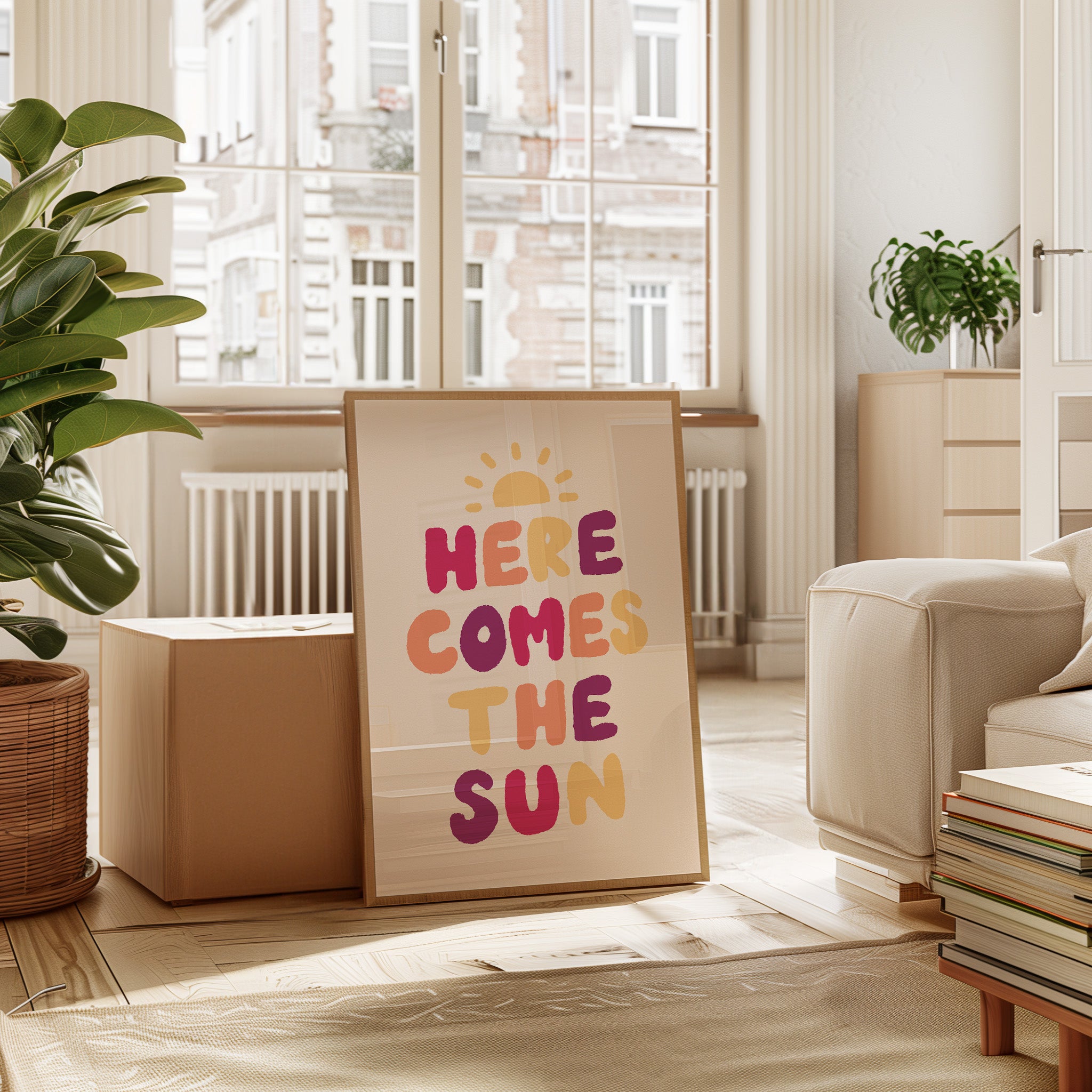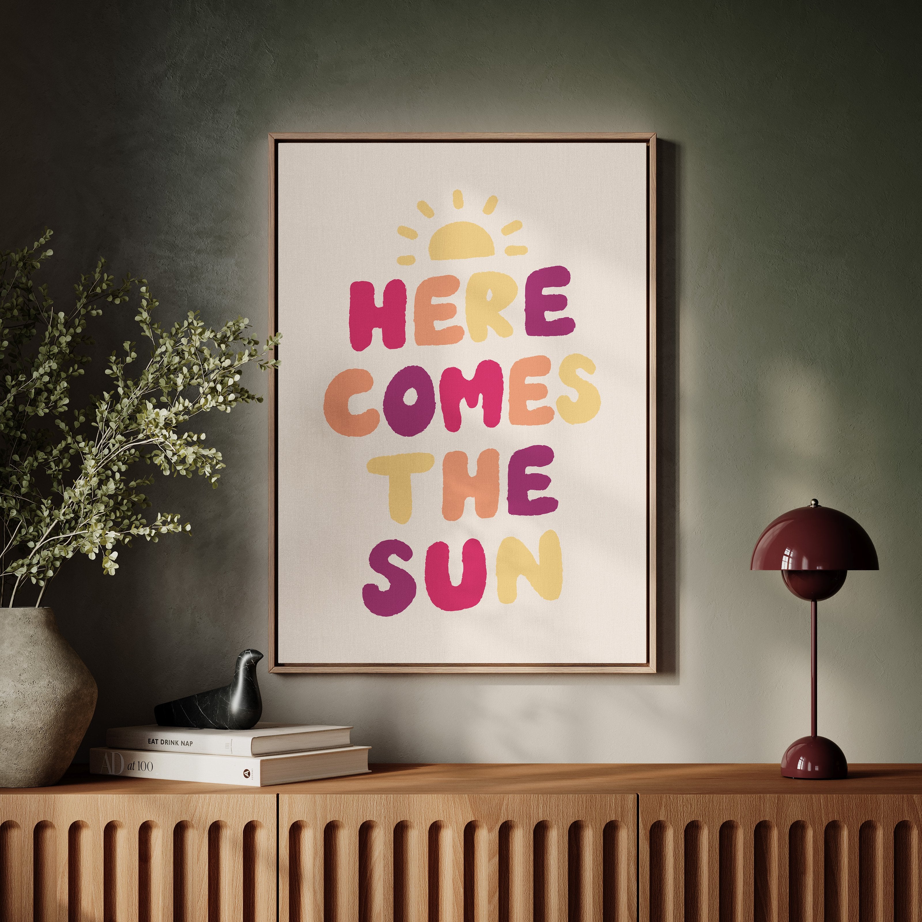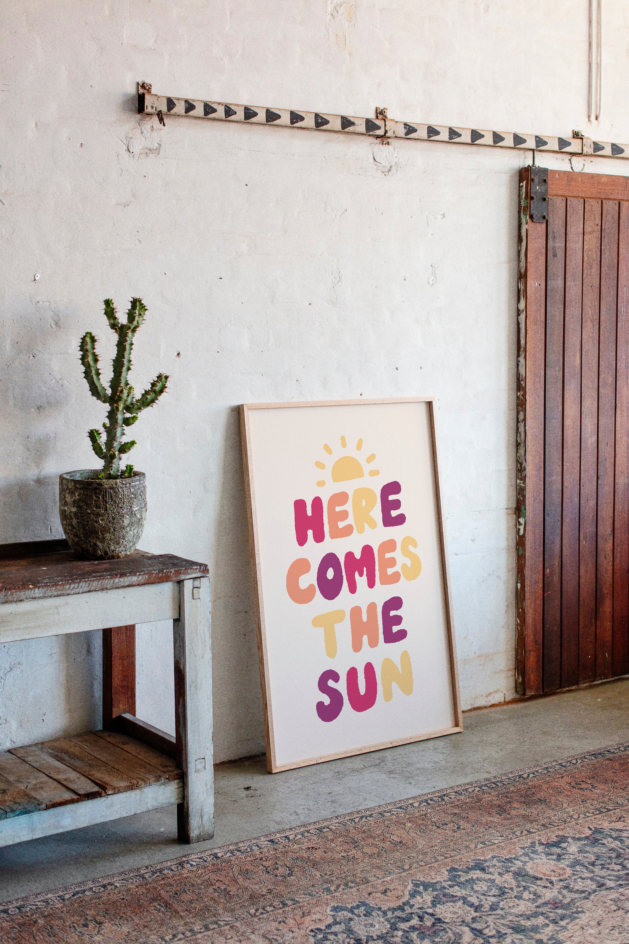 Like a warm morning greeting, playful letters dance across a gentle cream backdrop, radiating optimism and cheerful energy. This piece captures the essence of modern typographic art with its bold, contemporary approach to positive messaging. The gradient of sunset hues - from deep plum to coral and butter yellow - creates a harmonious progression that mirrors the natural warmth of daybreak, while the sun icon adds a whimsical touch to the composition. Perfect for brightening up a child's room, home office, or any space that could use a daily dose of encouragement. This uplifting piece serves as a daily reminder that each new day brings fresh possibilities.