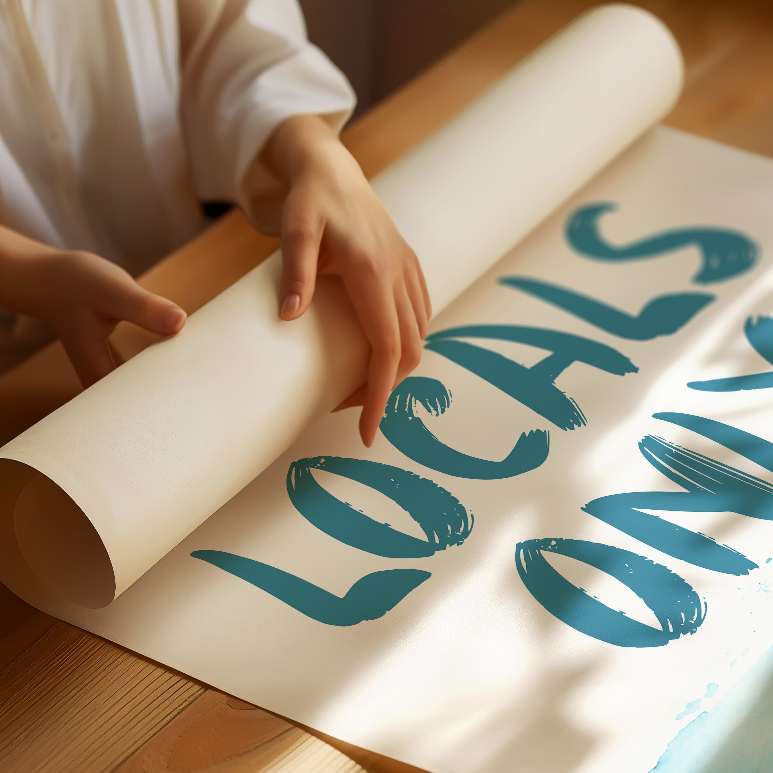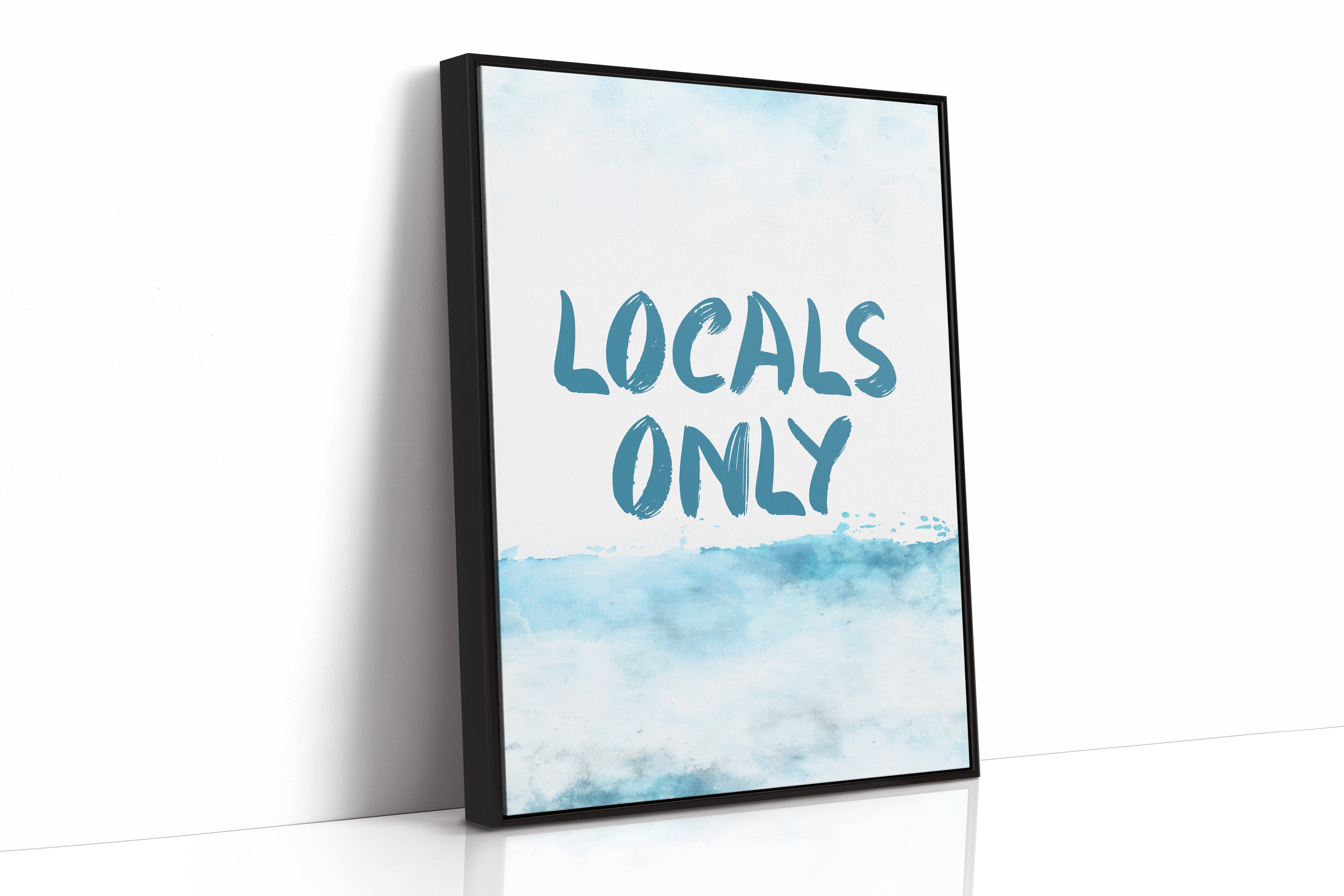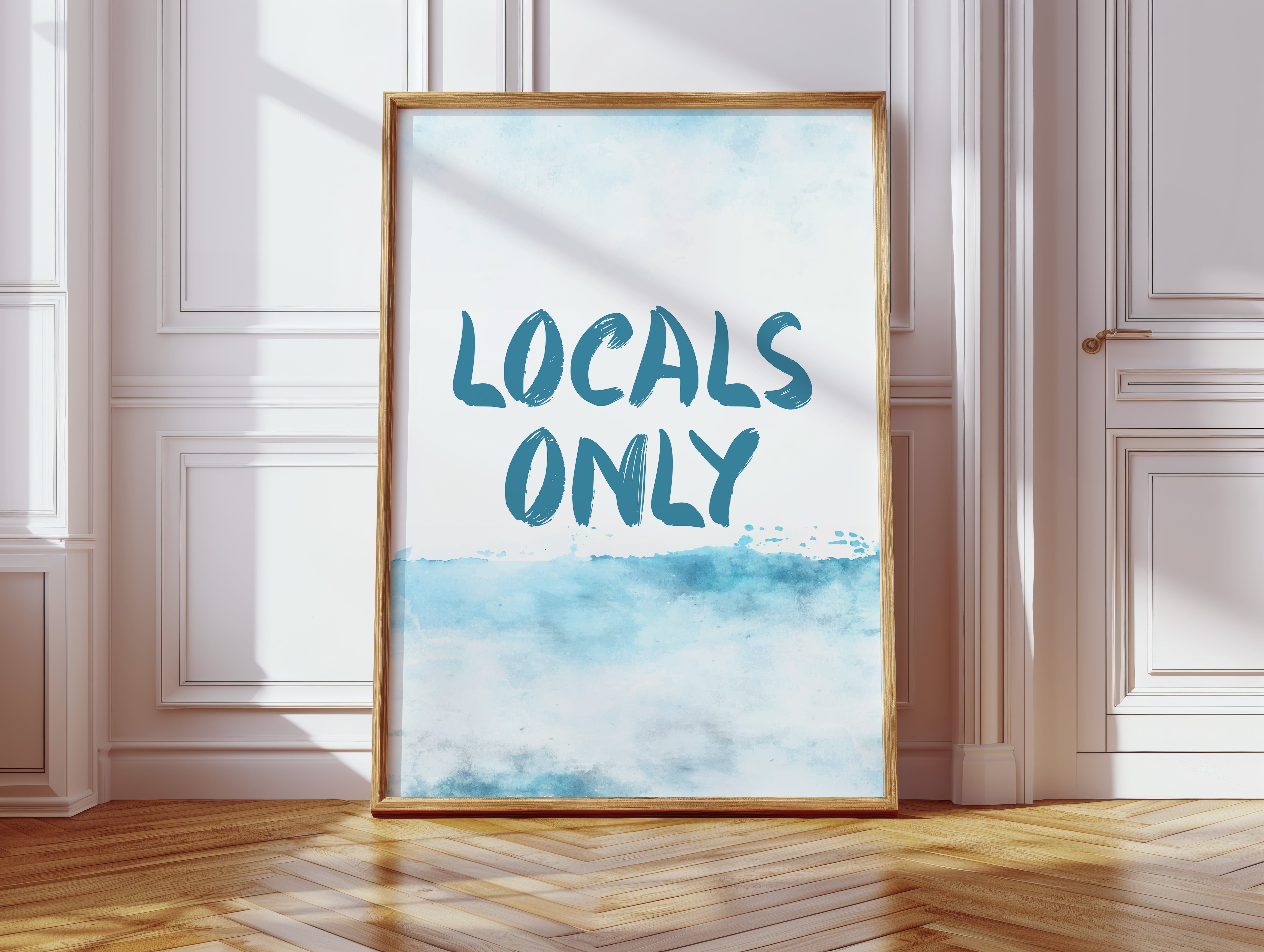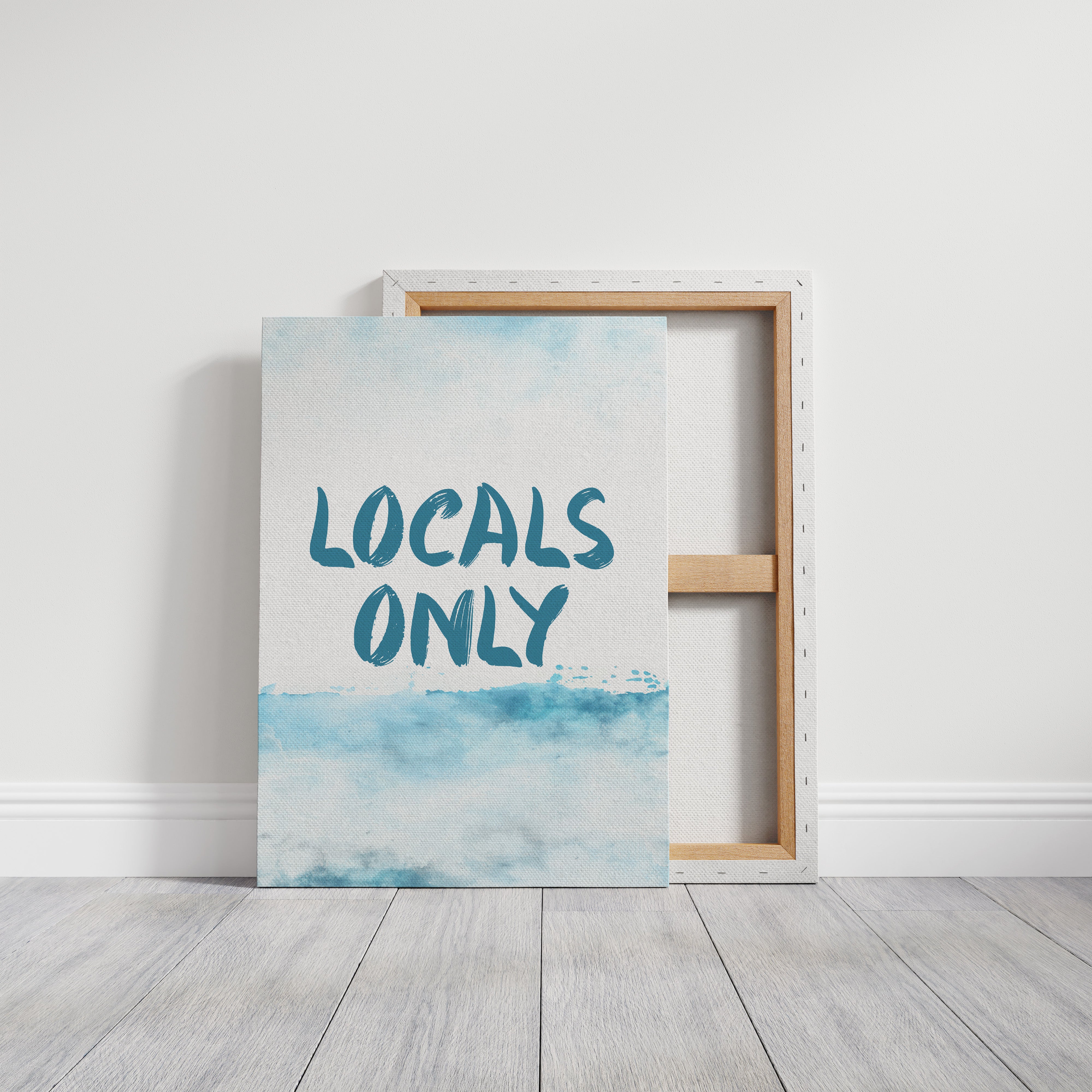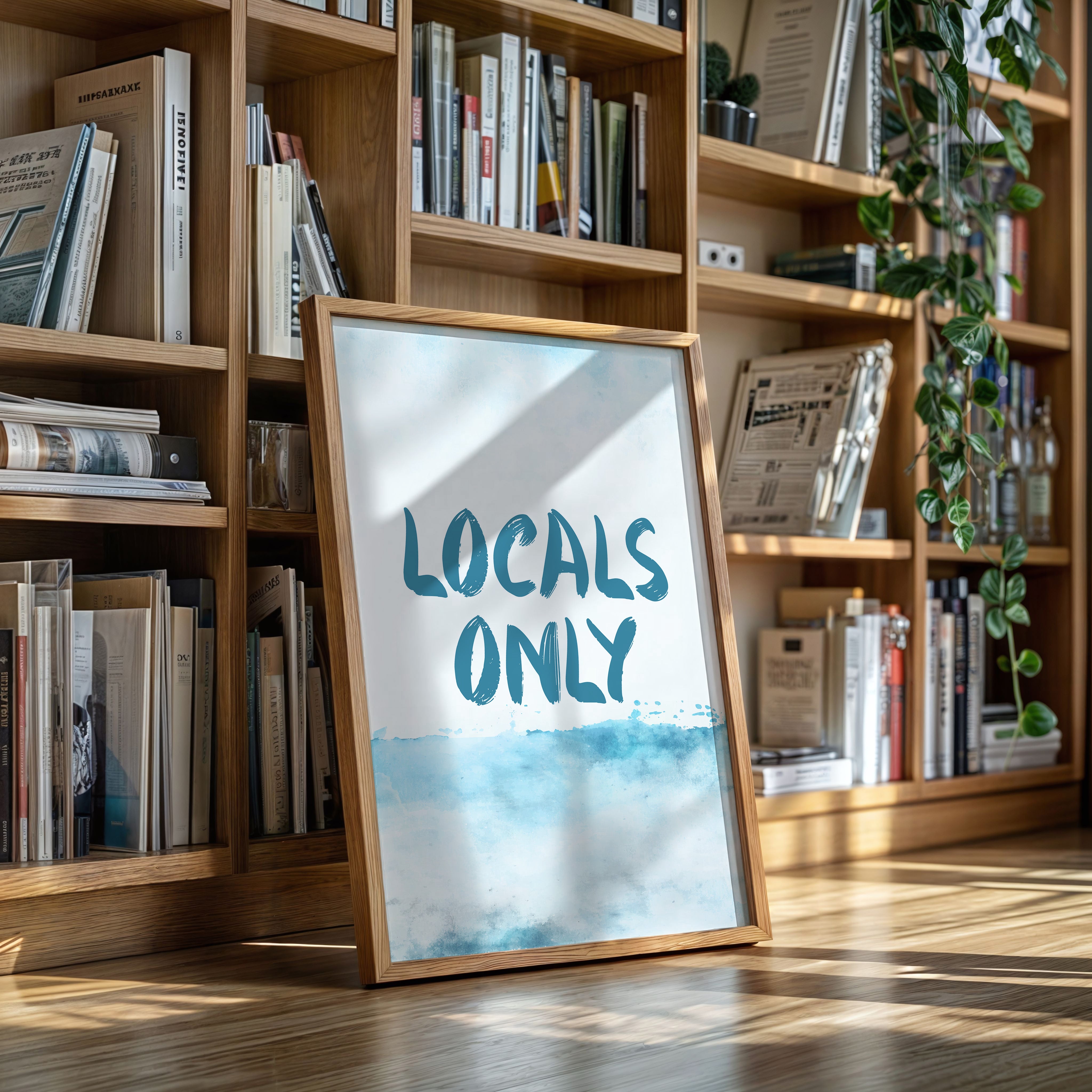 Morning light spills across turquoise letters that hold the casual confidence of a local's favorite hideaway. This contemporary piece captures the playful exclusivity of beach culture with bold brush strokes and oceanic hues. The watercolor wash beneath the text flows like gentle waves, while the assertive typography stands proud against pristine white space - a visual declaration of belonging. Perfect for bringing coastal charm to modern spaces, this piece speaks to anyone who's ever had a cherished local haunt. Its clean aesthetic and touch of attitude make it an ideal accent for a beach house kitchen or urban apartment that dreams of salt air.
