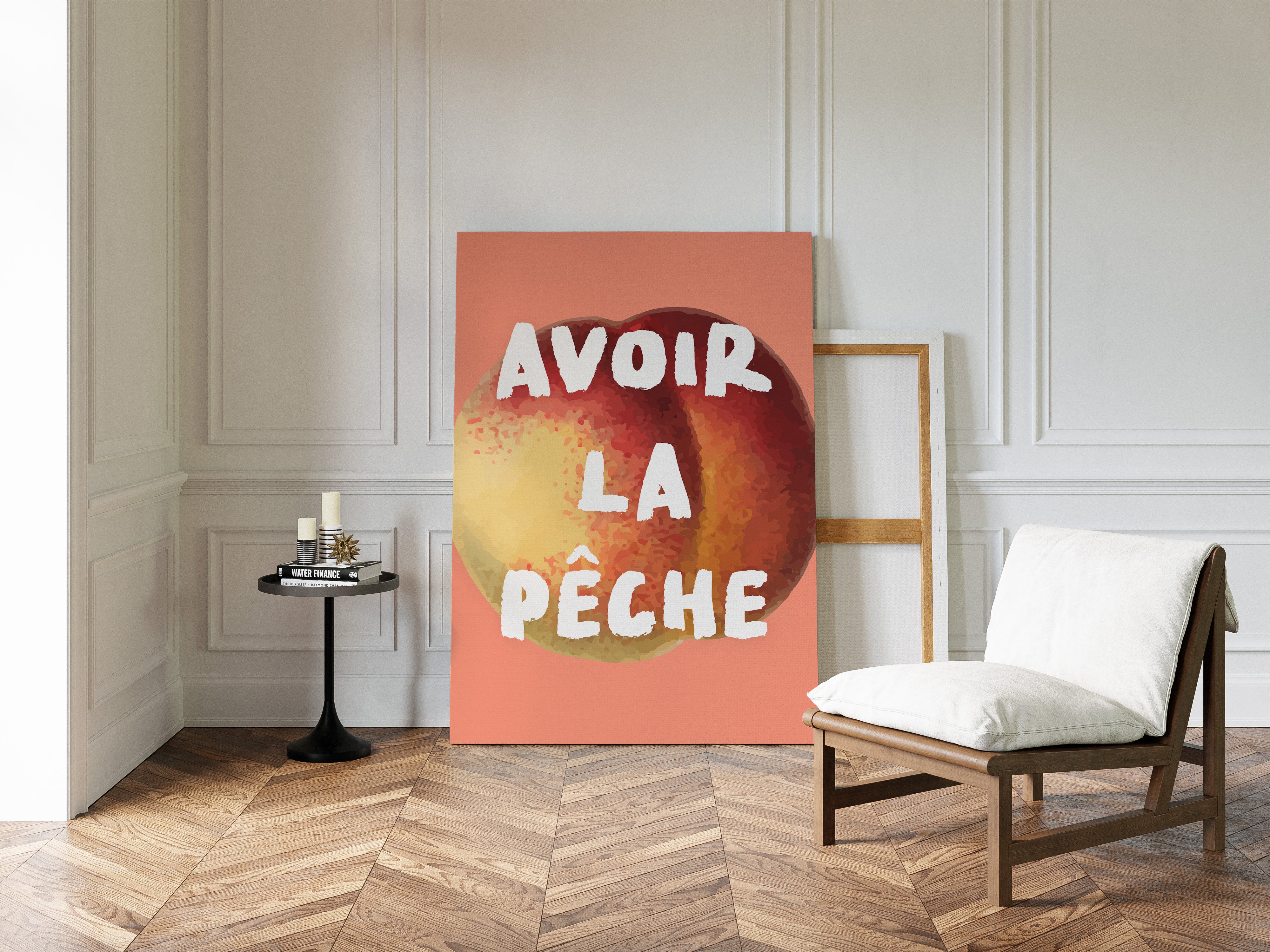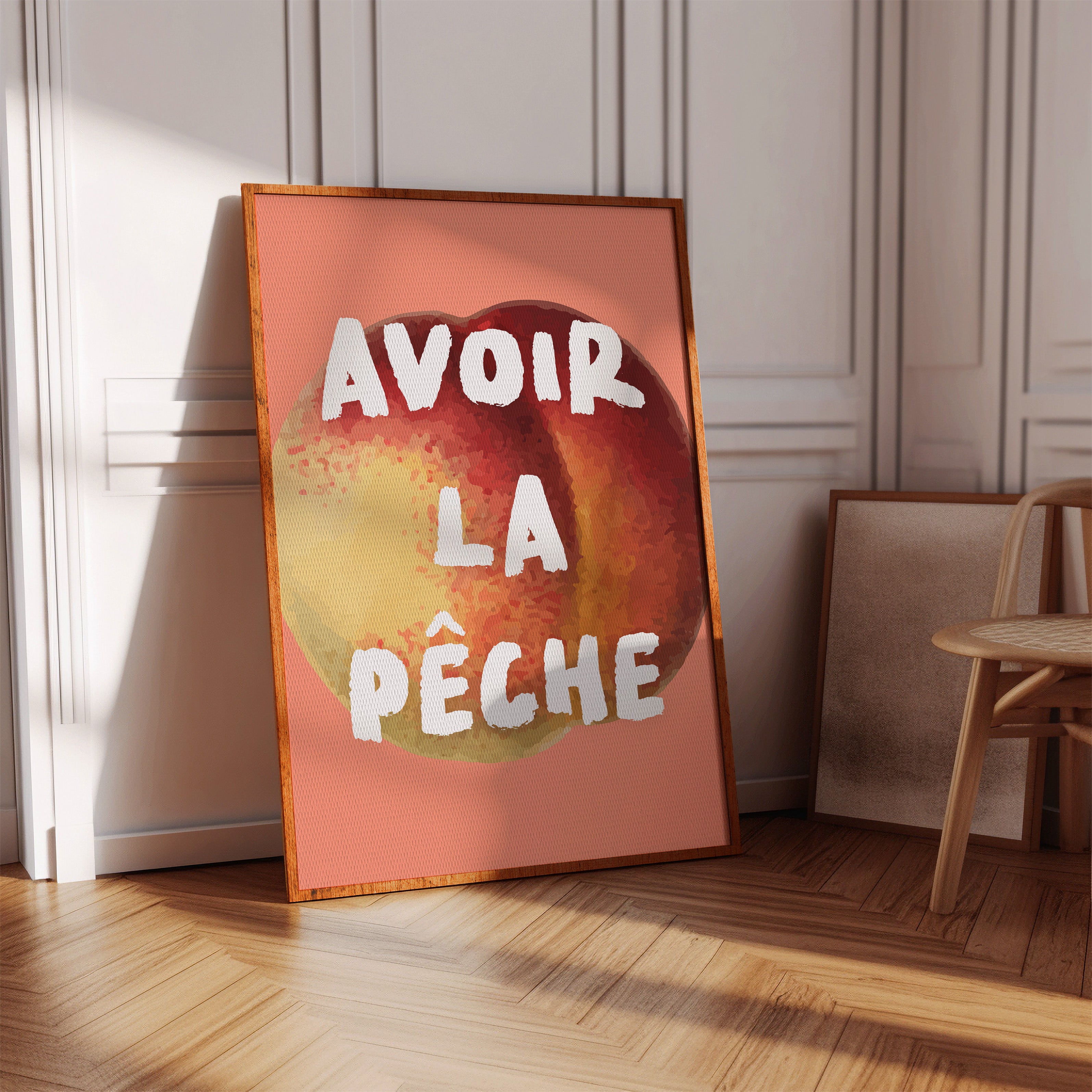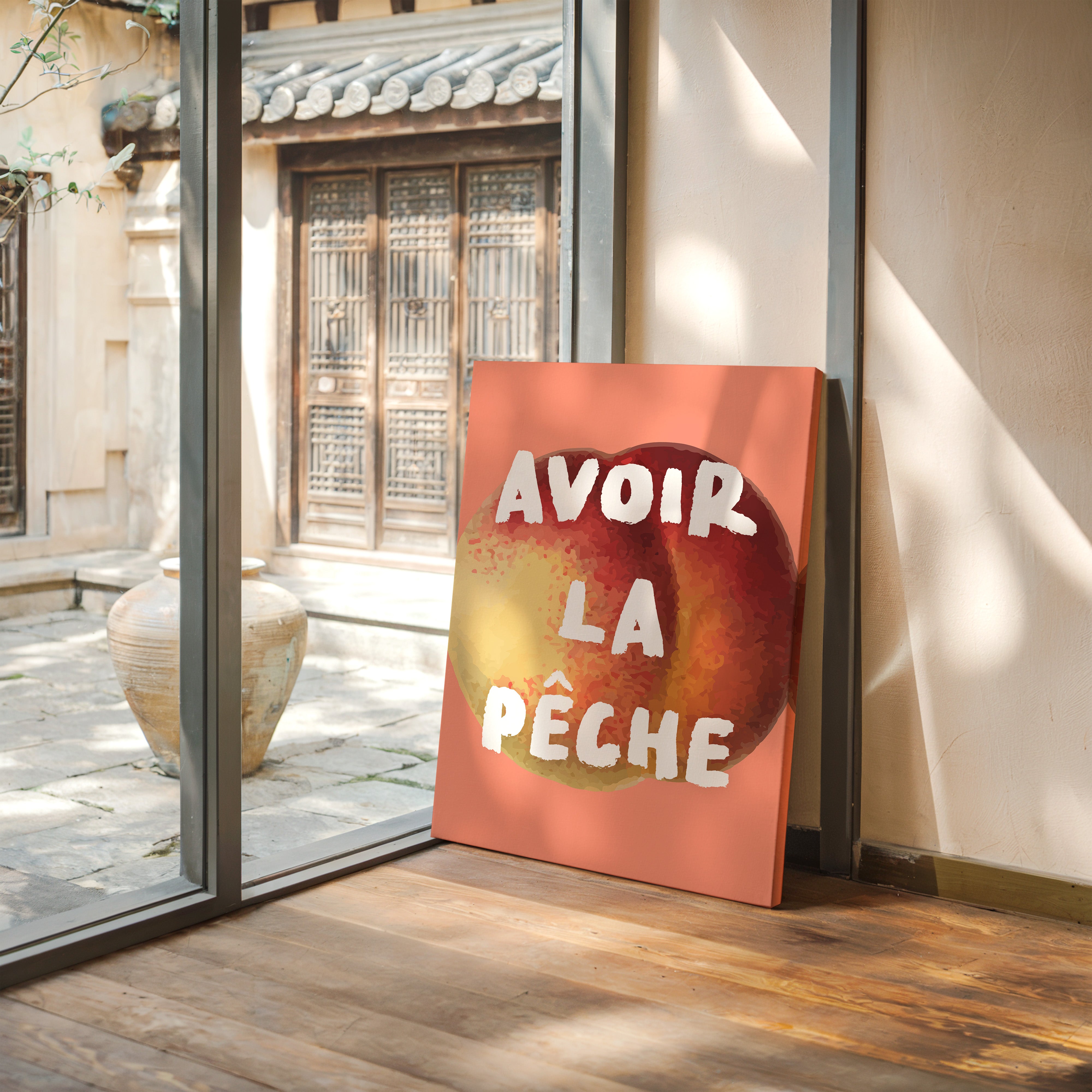 A juicy peach emerges from a coral backdrop, its textured surface telling stories in shades of sunset and gold. This piece from our Contemporary collection marries pop art boldness with minimalist typography. The fruit's organic curves contrast beautifully with stark white letters, creating a playful tension between nature and design. Rich gradients of peach, coral, and amber sweep across the composition like a summer evening's glow. Perfect for adding a splash of modern wit to a kitchen, dining room, or any space that celebrates life's simple pleasures. The piece invites both contemplation and conversation, serving as a delightful focal point that brightens any room.