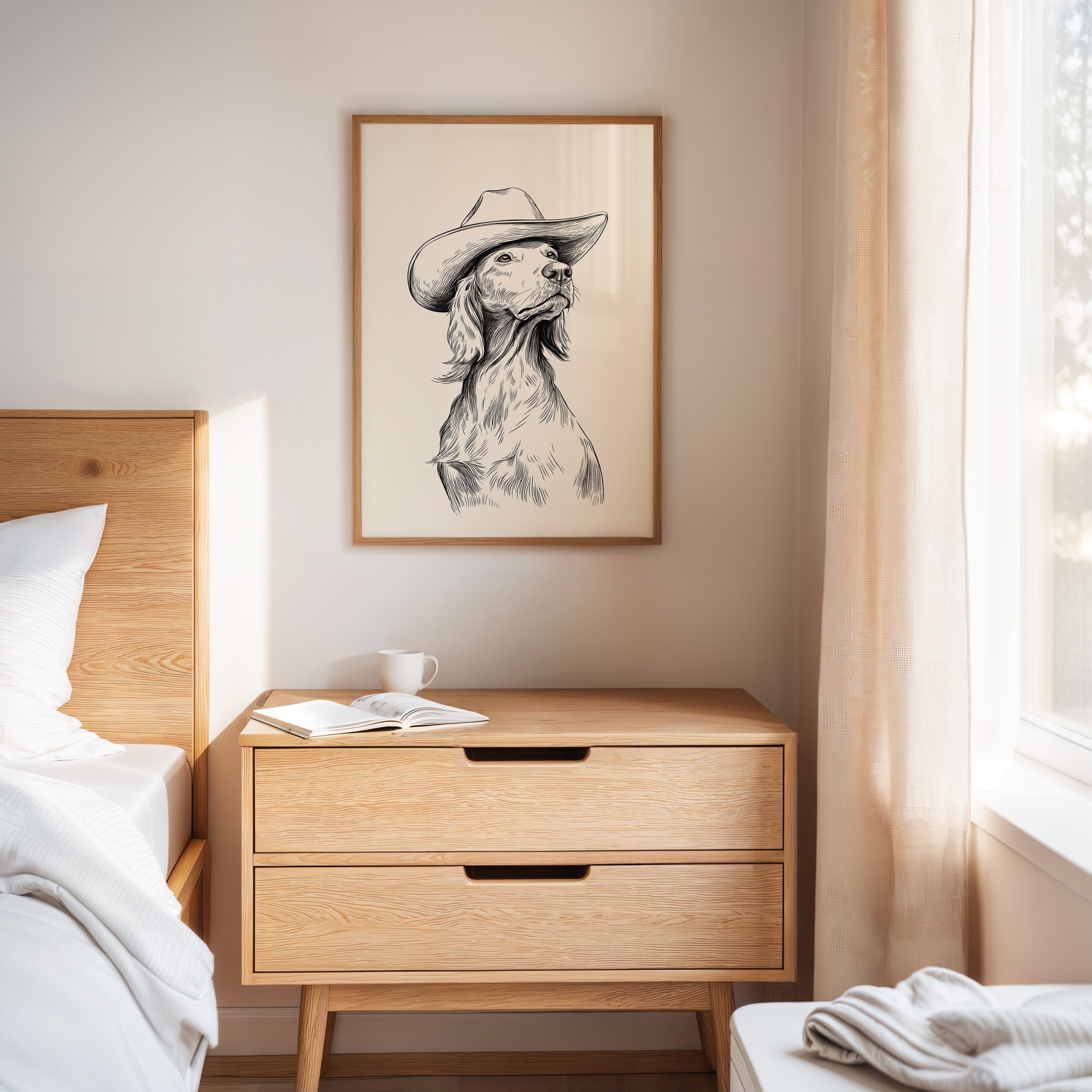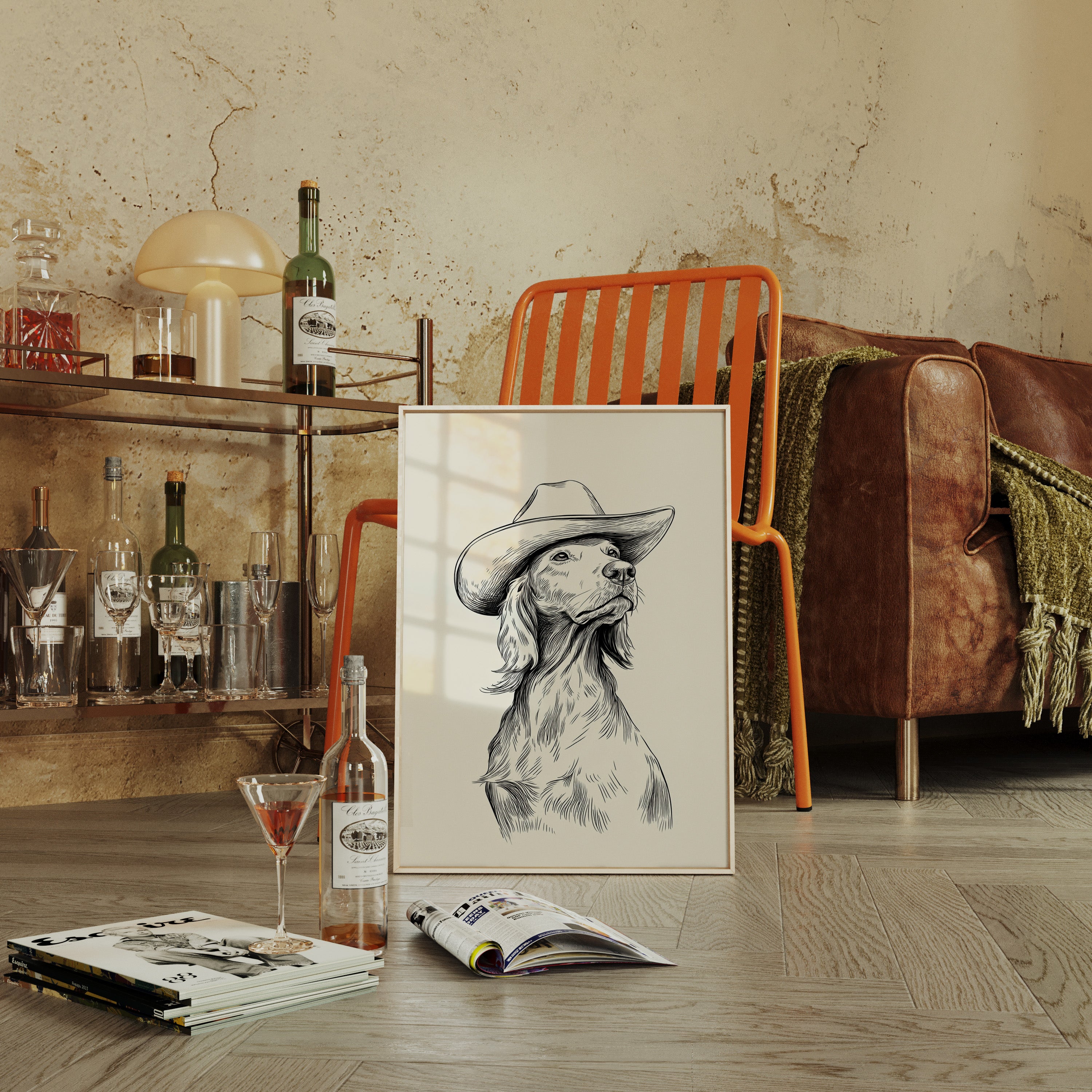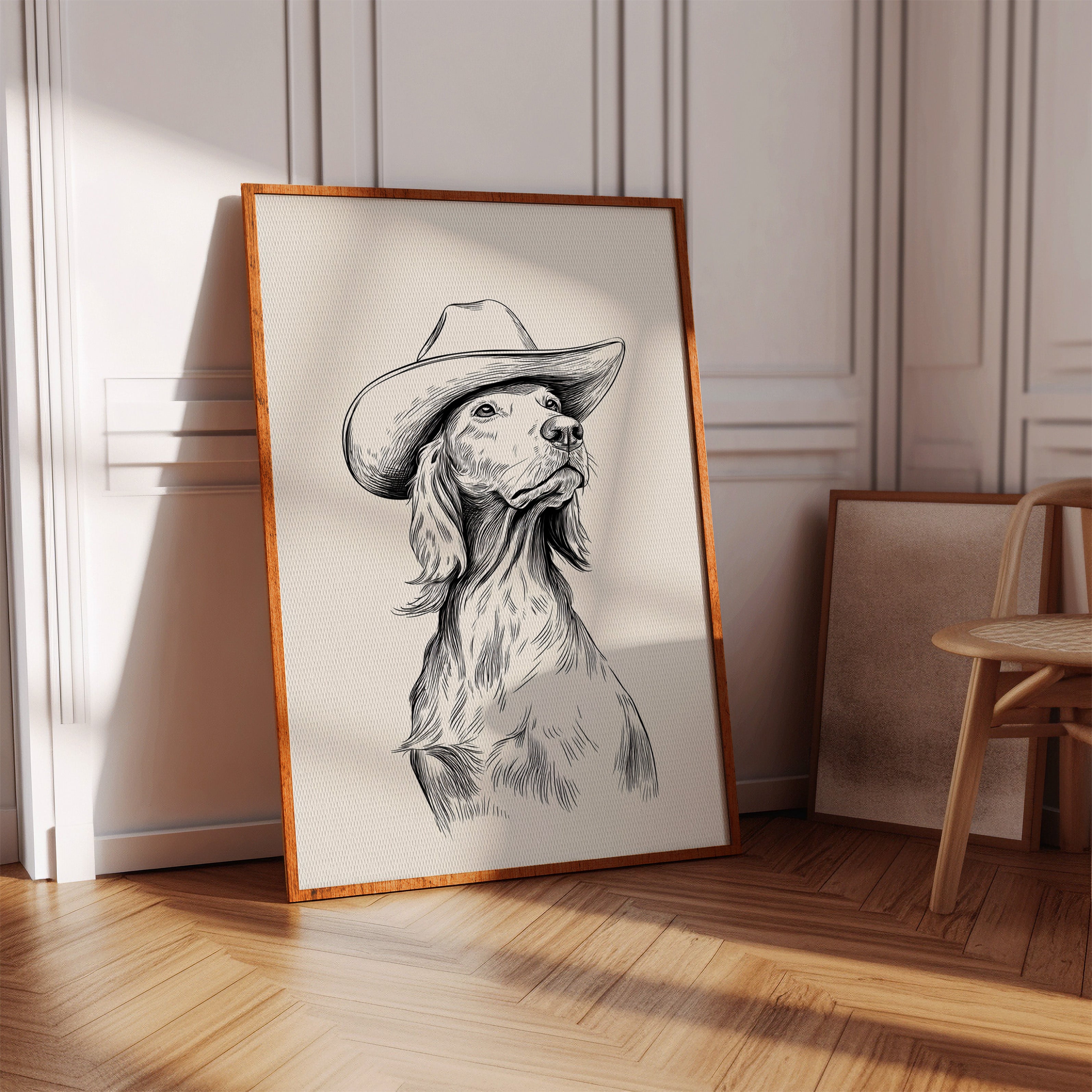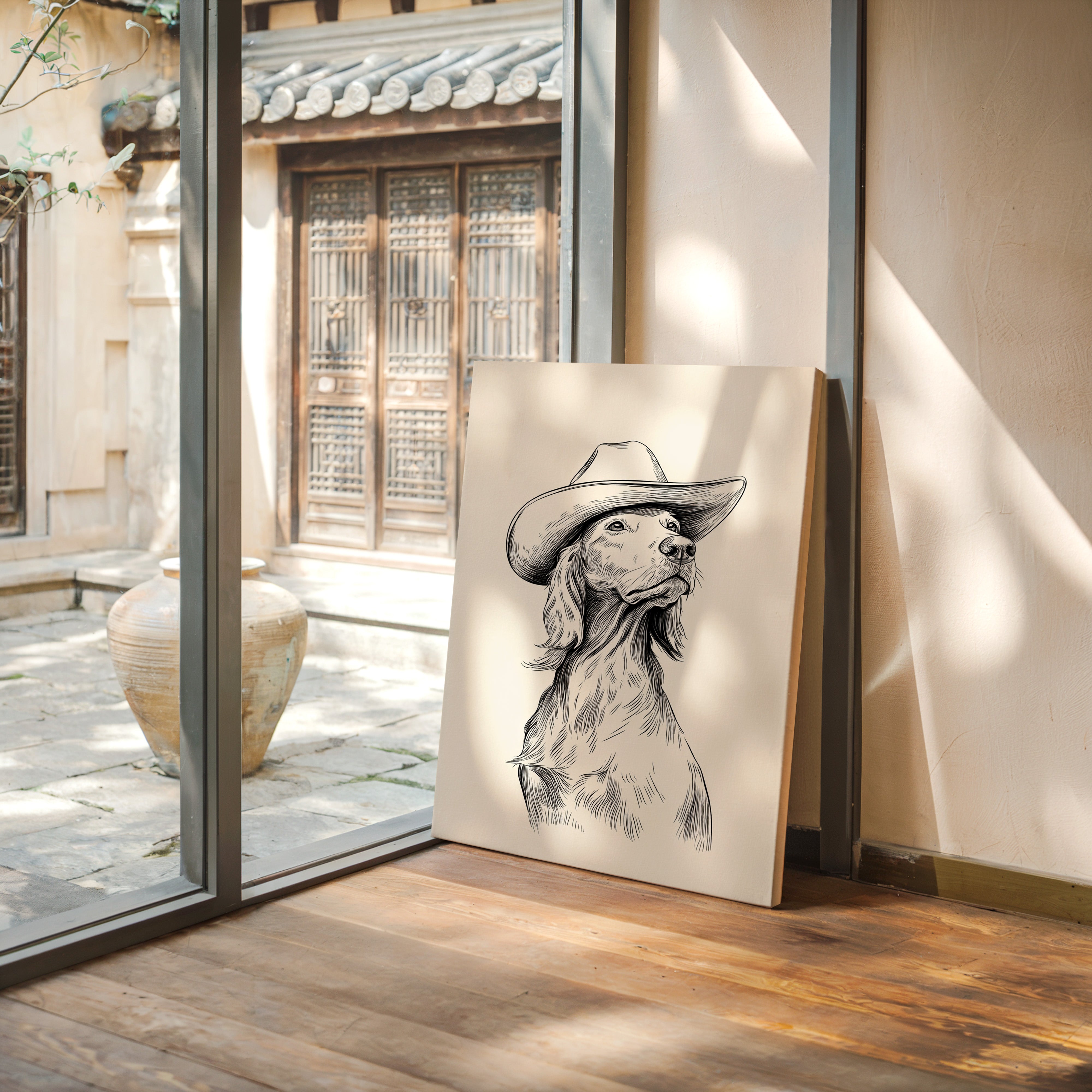 Beneath the wide brim of a hat, a noble canine gazes into the horizon, embodying the spirit of adventure and loyalty. This piece captures the charm of artisanal craftsmanship, celebrating the bond between man and dog. With intricate lines and a playful pose, the illustration invites viewers to explore the vibrancy of life through a whimsical lens, showcasing fur textures and the gleam of determination in the dogs eyes. Perfect for a rustic study or a cozy living room, it adds a touch of character and warmth to any space.