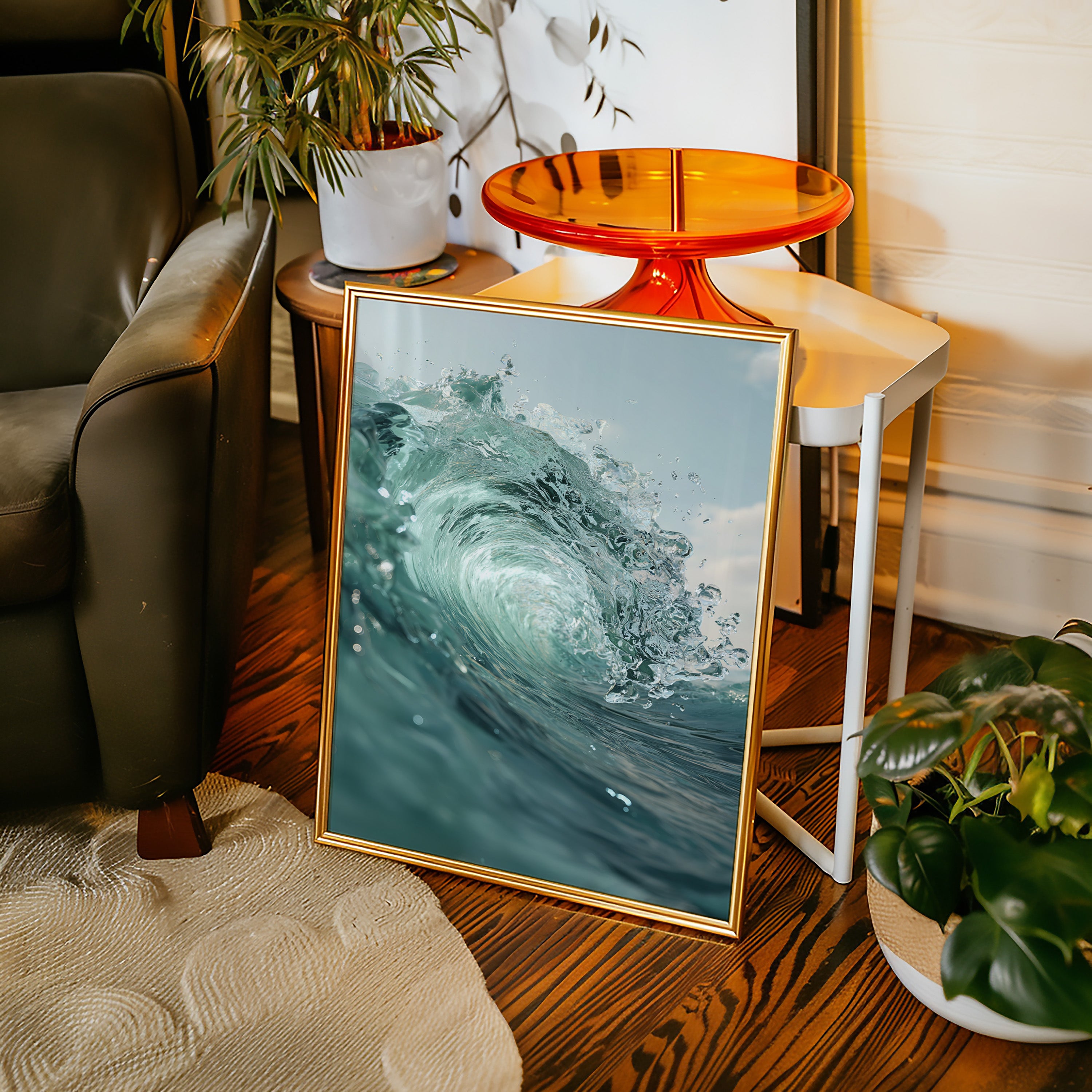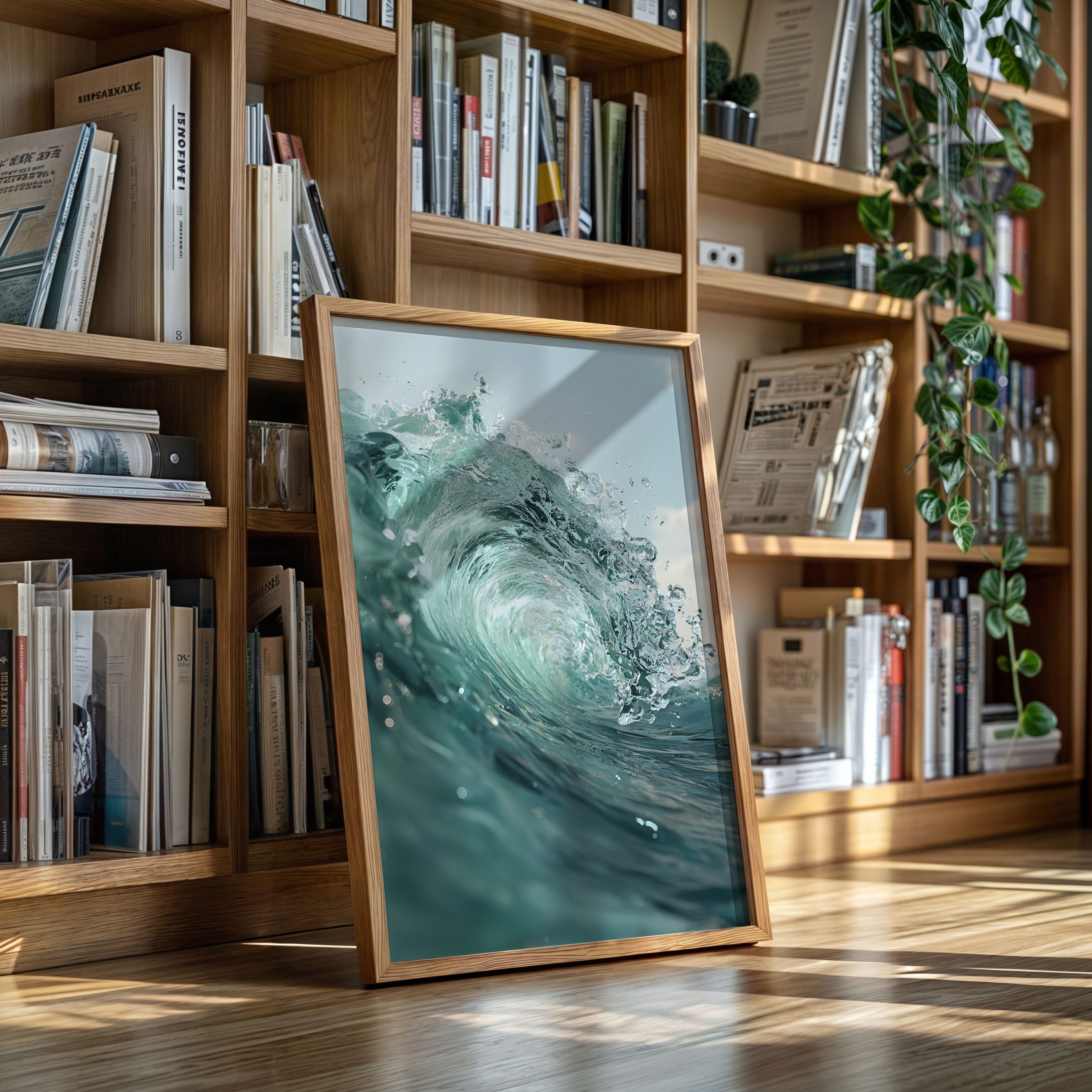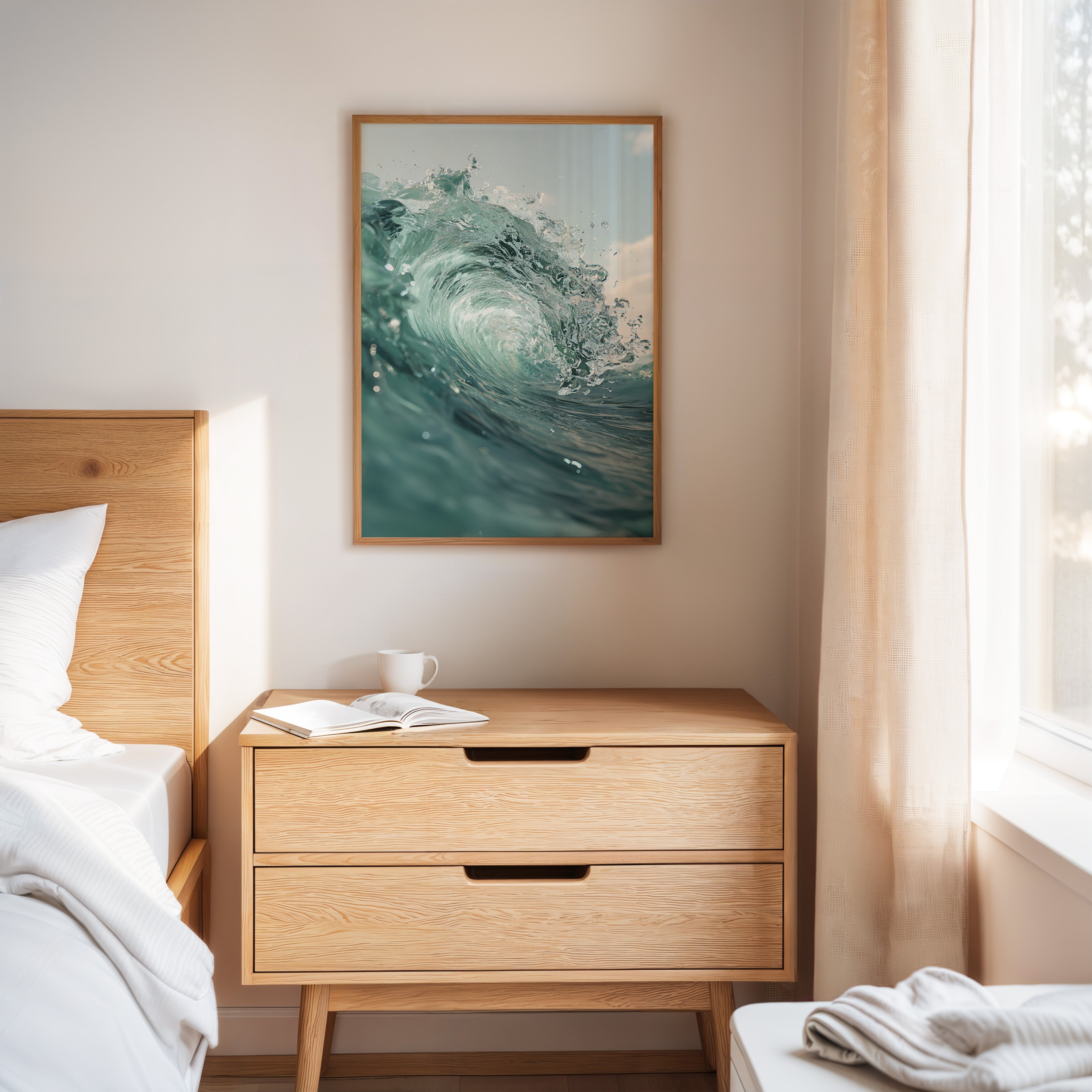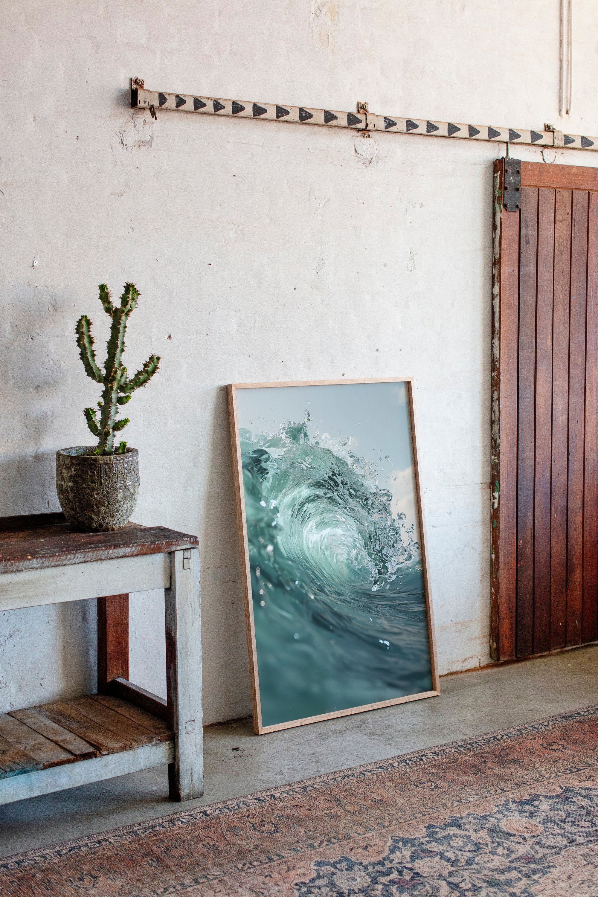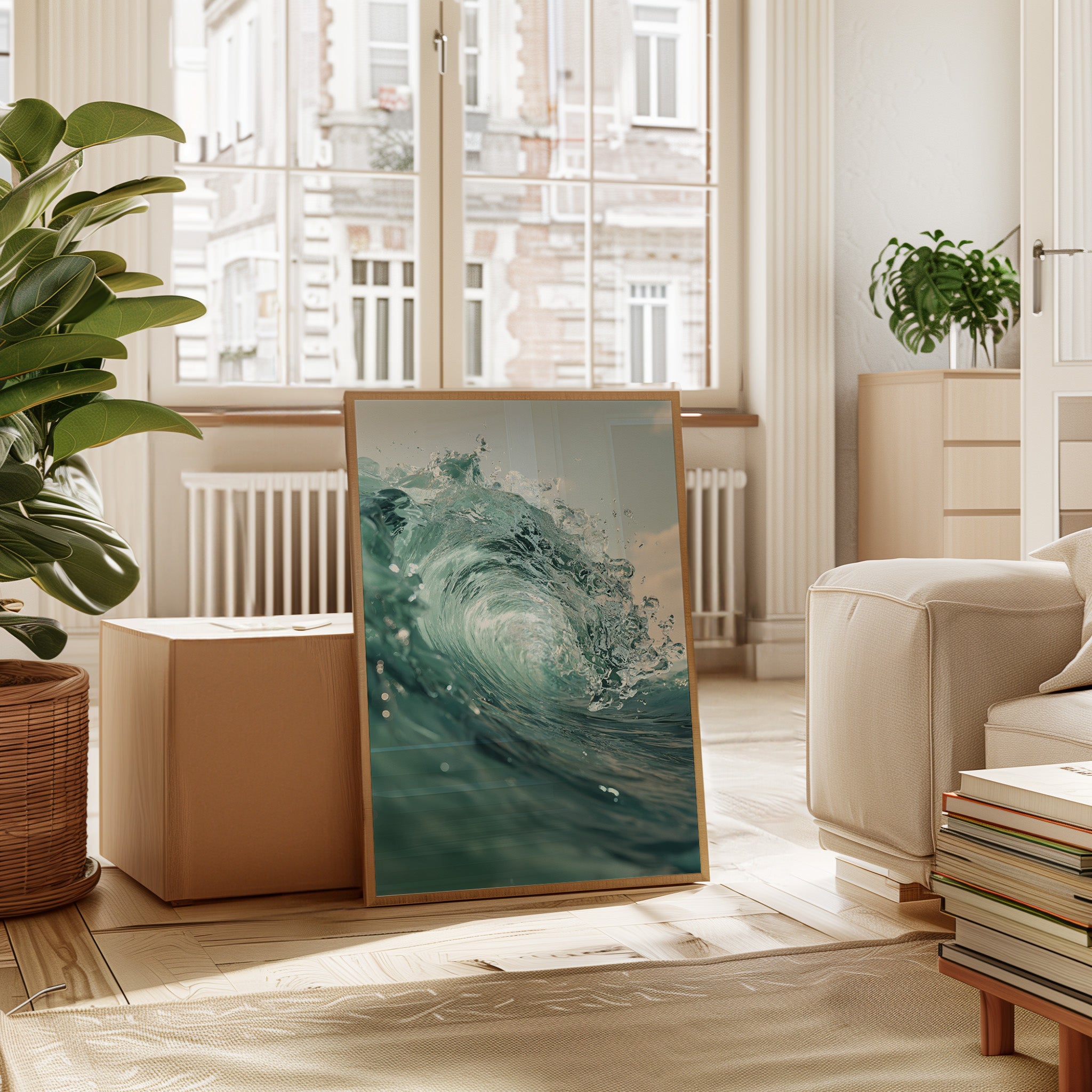 A wave curls gracefully, capturing the light and the essence of the sea. This piece embodies the artisanal spirit, merging nature with artistry. The vibrant hues of turquoise blend seamlessly with the crystalline clarity of water, creating a visual symphony that evokes the energy and tranquility of ocean waves. Perfect for a coastal-inspired living room or a serene bedroom retreat, this piece invites the calming presence of the sea into your space.