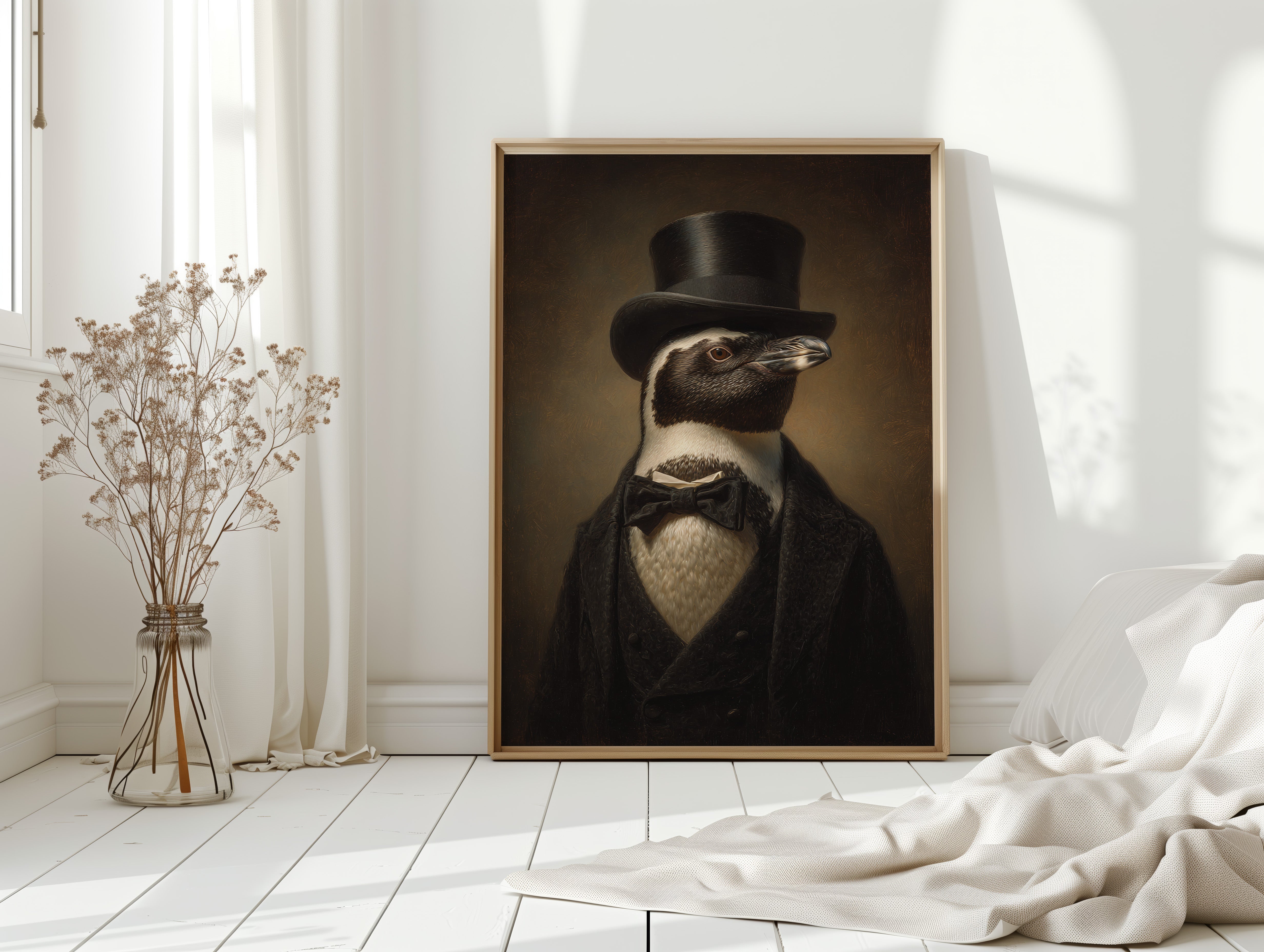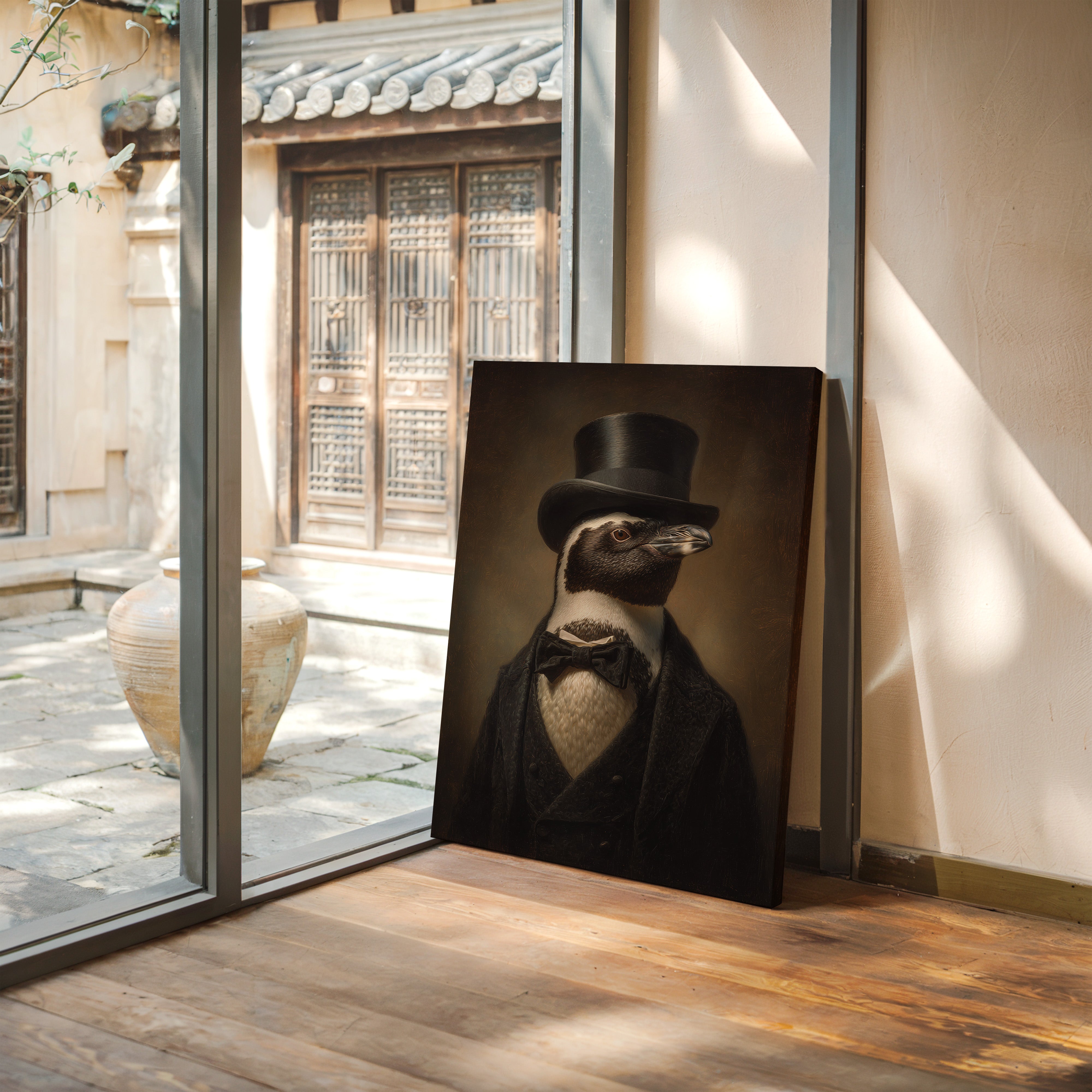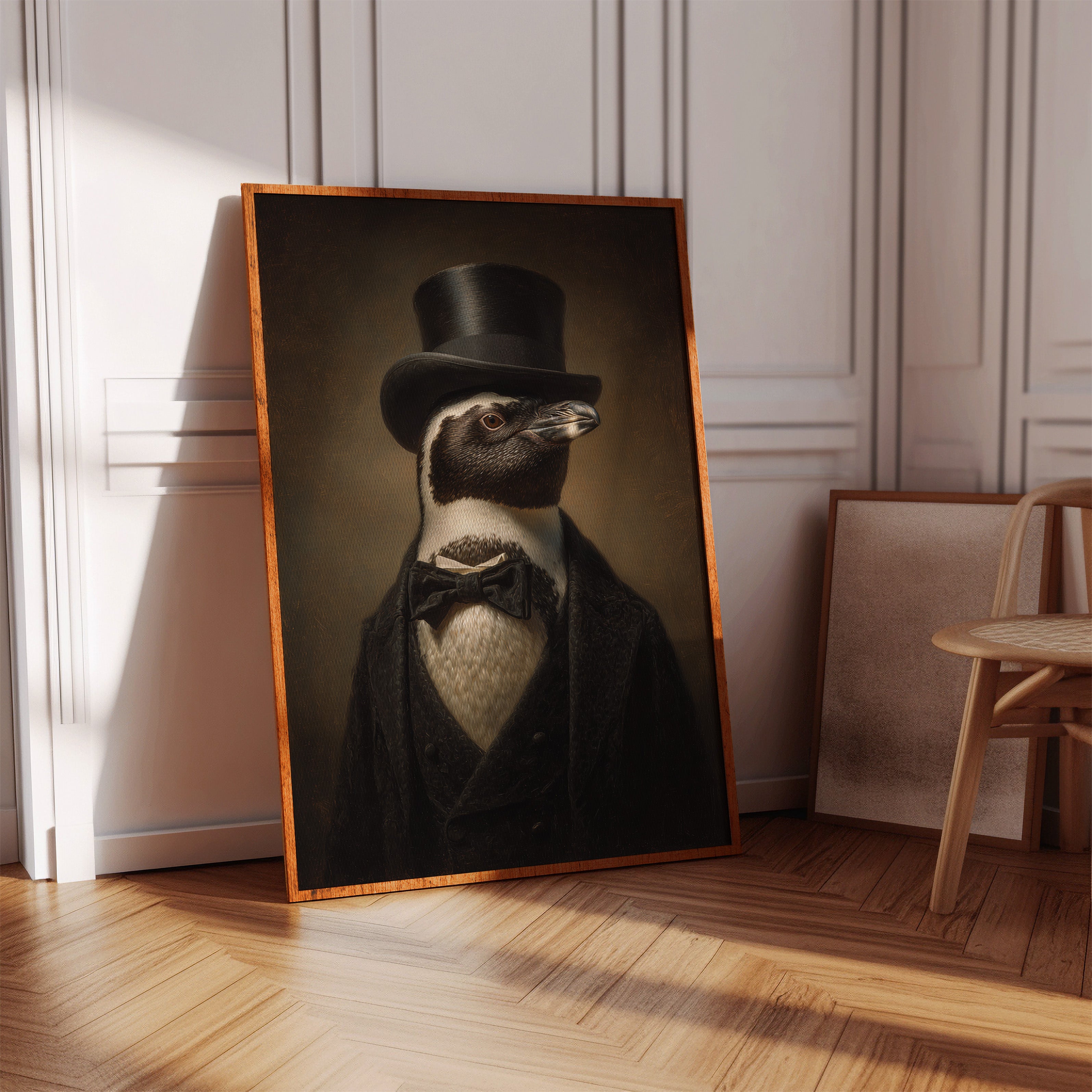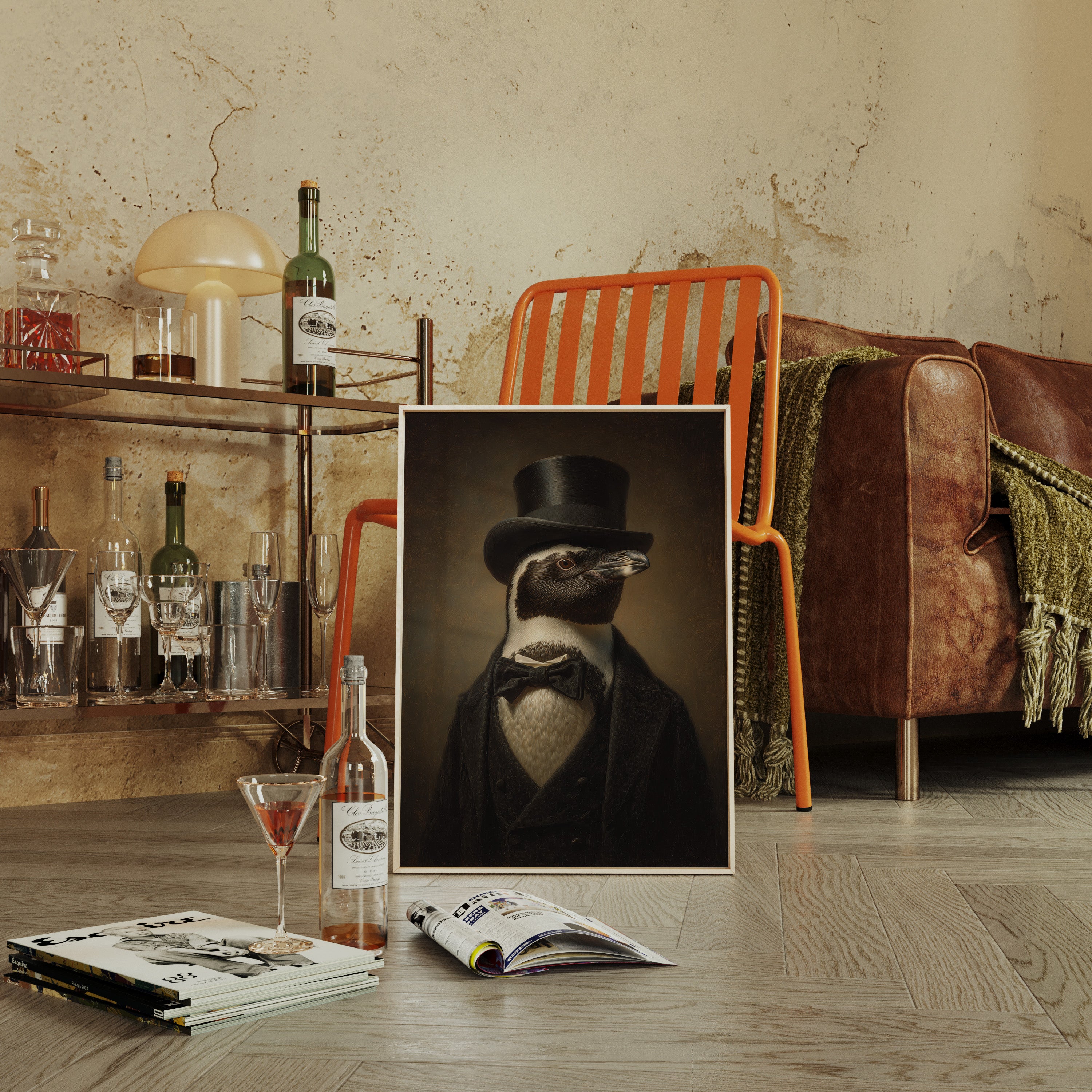 In a world where elegance meets the wild, a penguin dons its finest attire, radiating charm and sophistication. This piece captures the whimsical spirit of the Artisanal collection, where nature and artistry entwine. Clad in a sleek suit and top hat, the penguins gaze holds a story of adventure and refinement, a playful nod to the unexpected. Perfect for a study or a cozy reading nook, this piece invites conversation and delight.