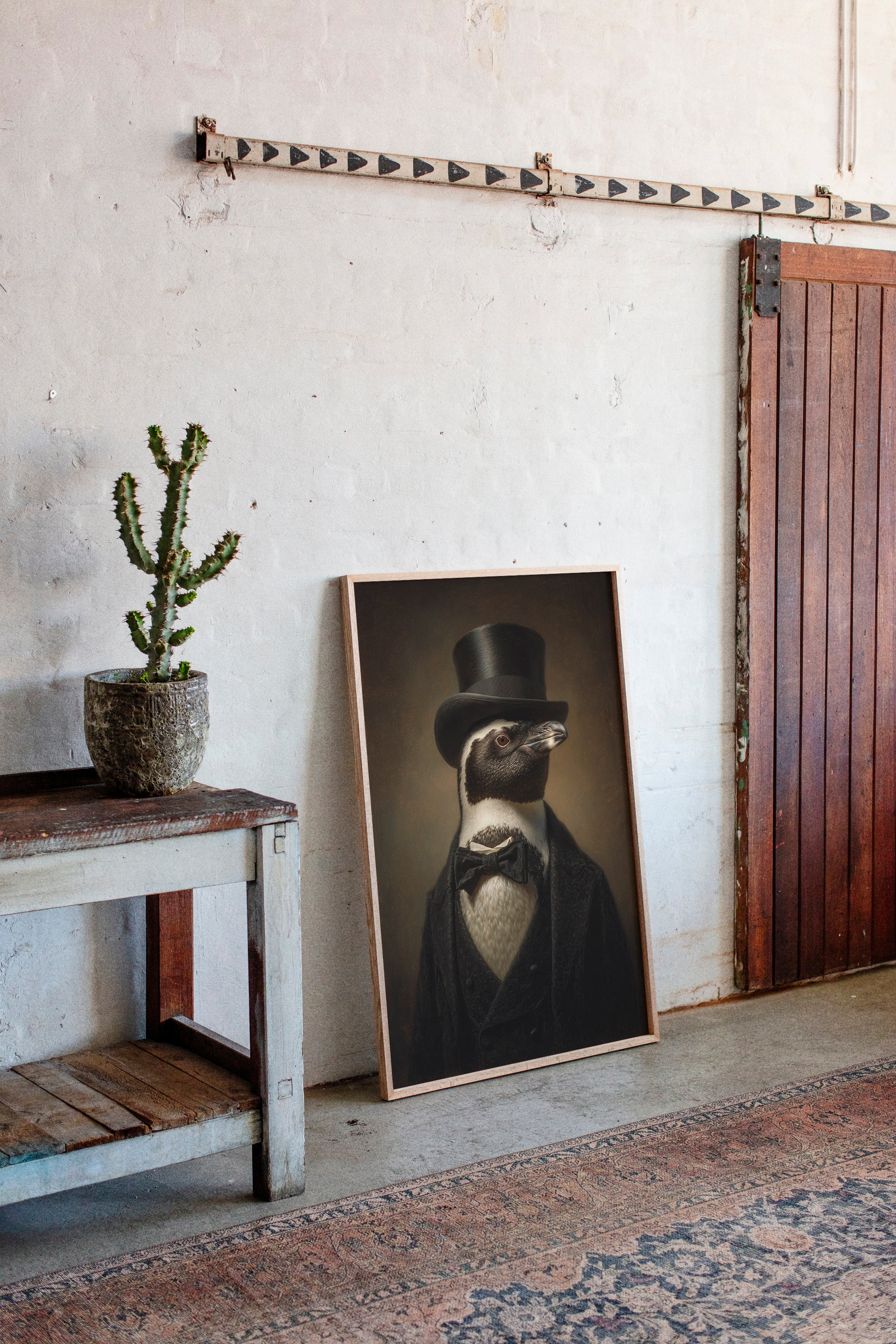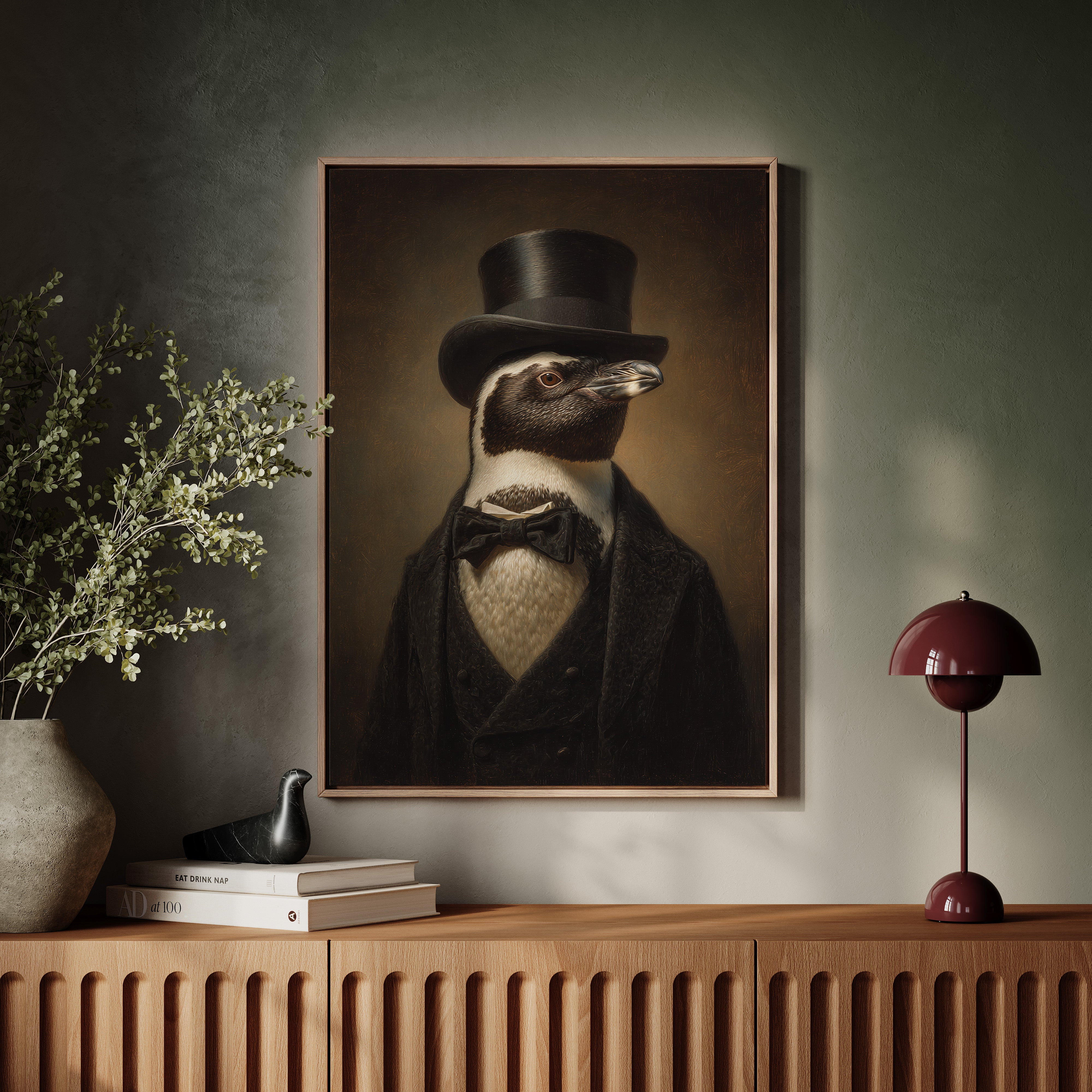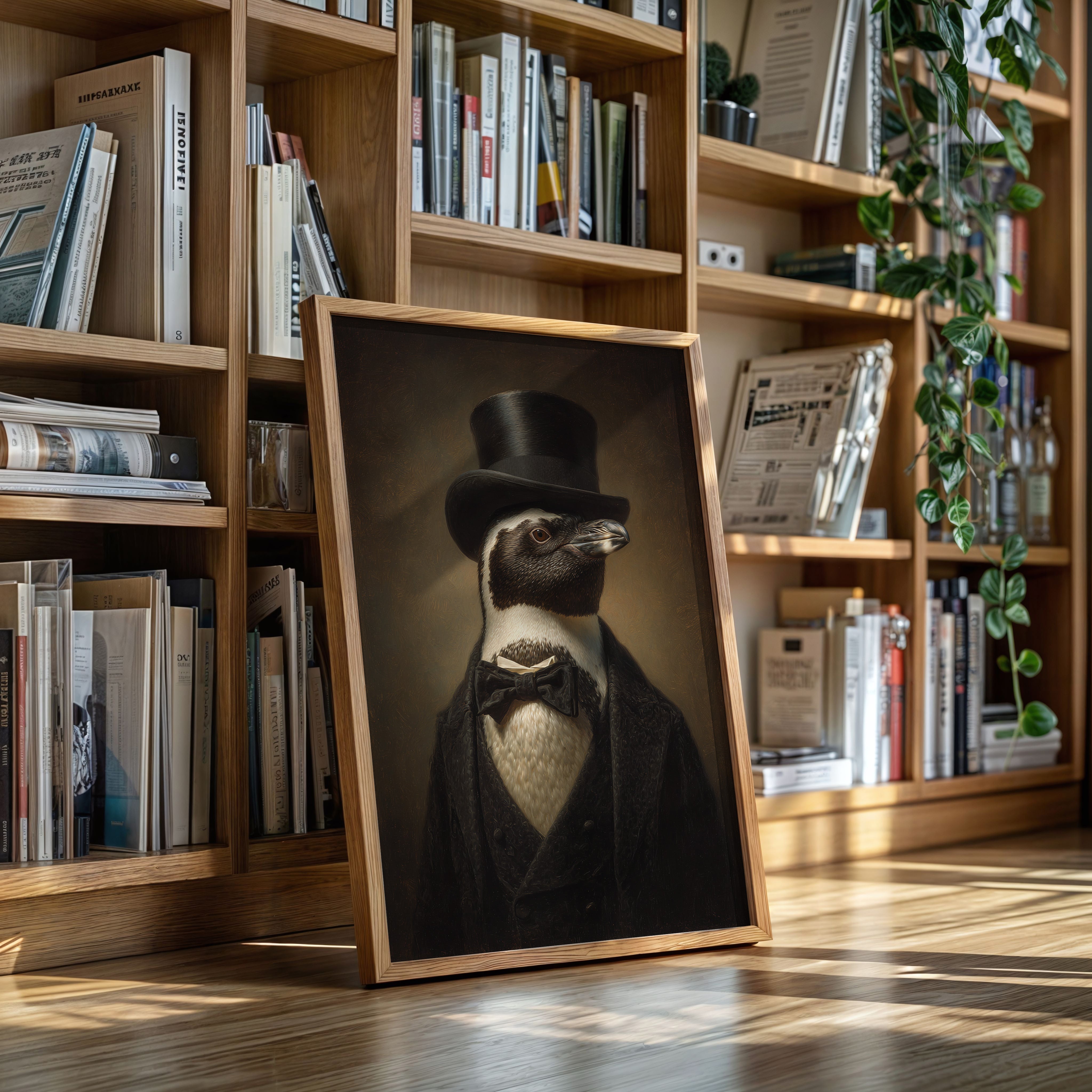 In a world where elegance meets the wild, a penguin dons its finest attire, radiating charm and sophistication. This piece captures the whimsical spirit of the Artisanal collection, where nature and artistry entwine. Clad in a sleek suit and top hat, the penguins gaze holds a story of adventure and refinement, a playful nod to the unexpected. Perfect for a study or a cozy reading nook, this piece invites conversation and delight.
