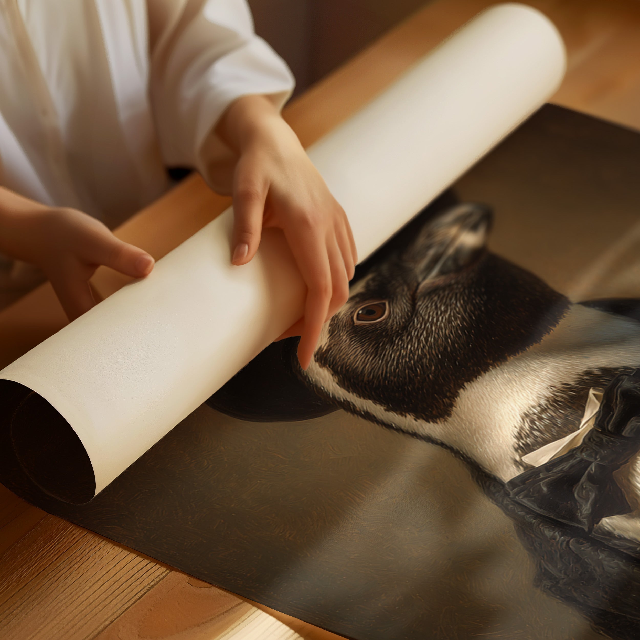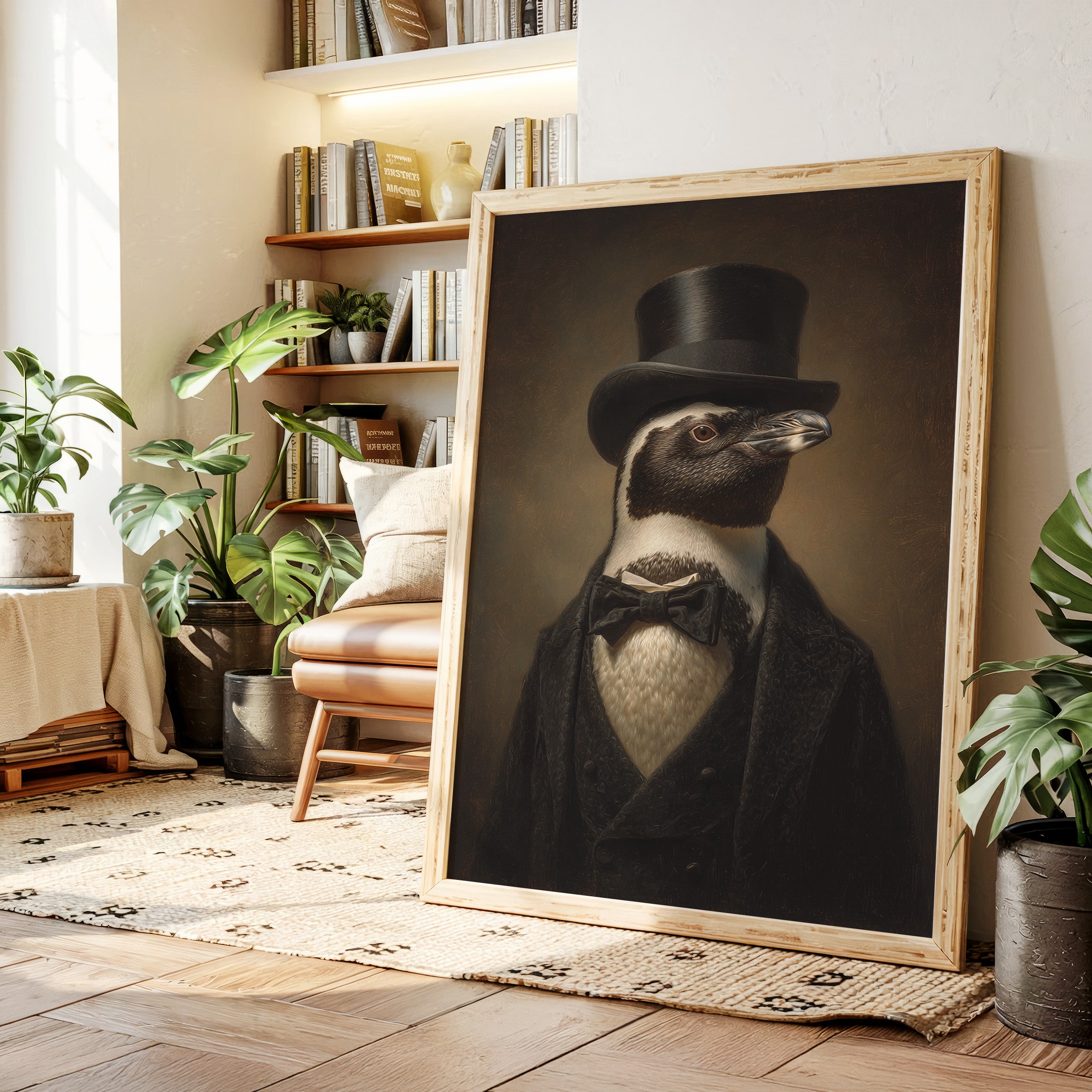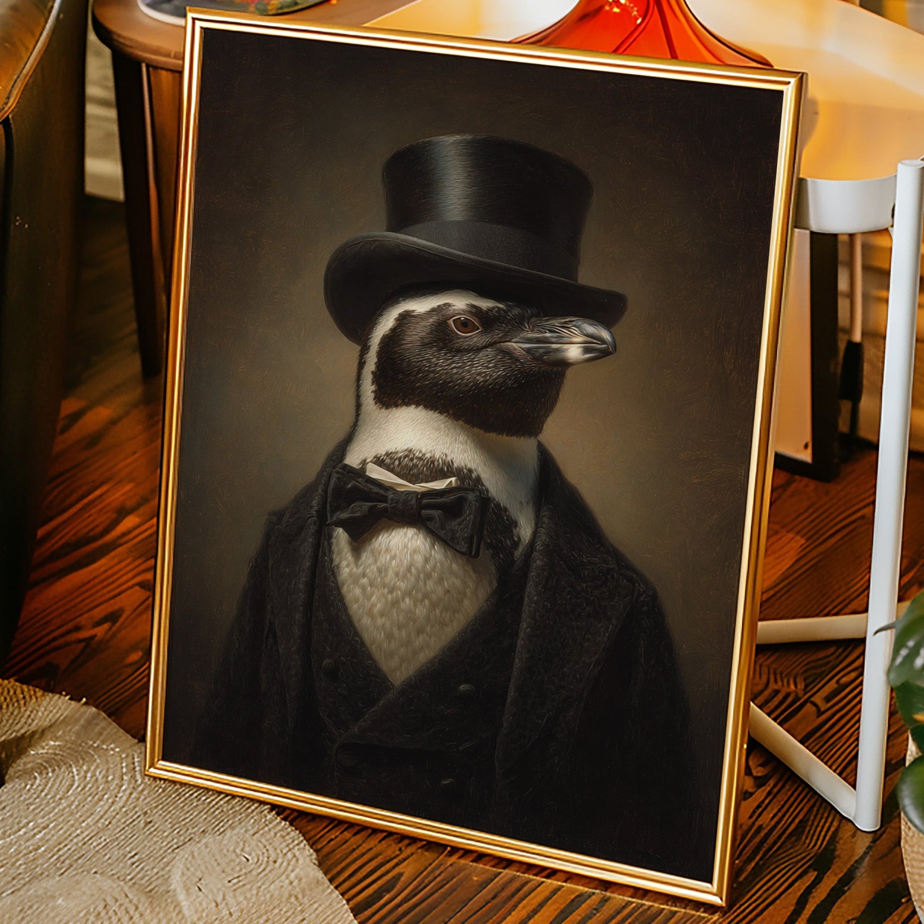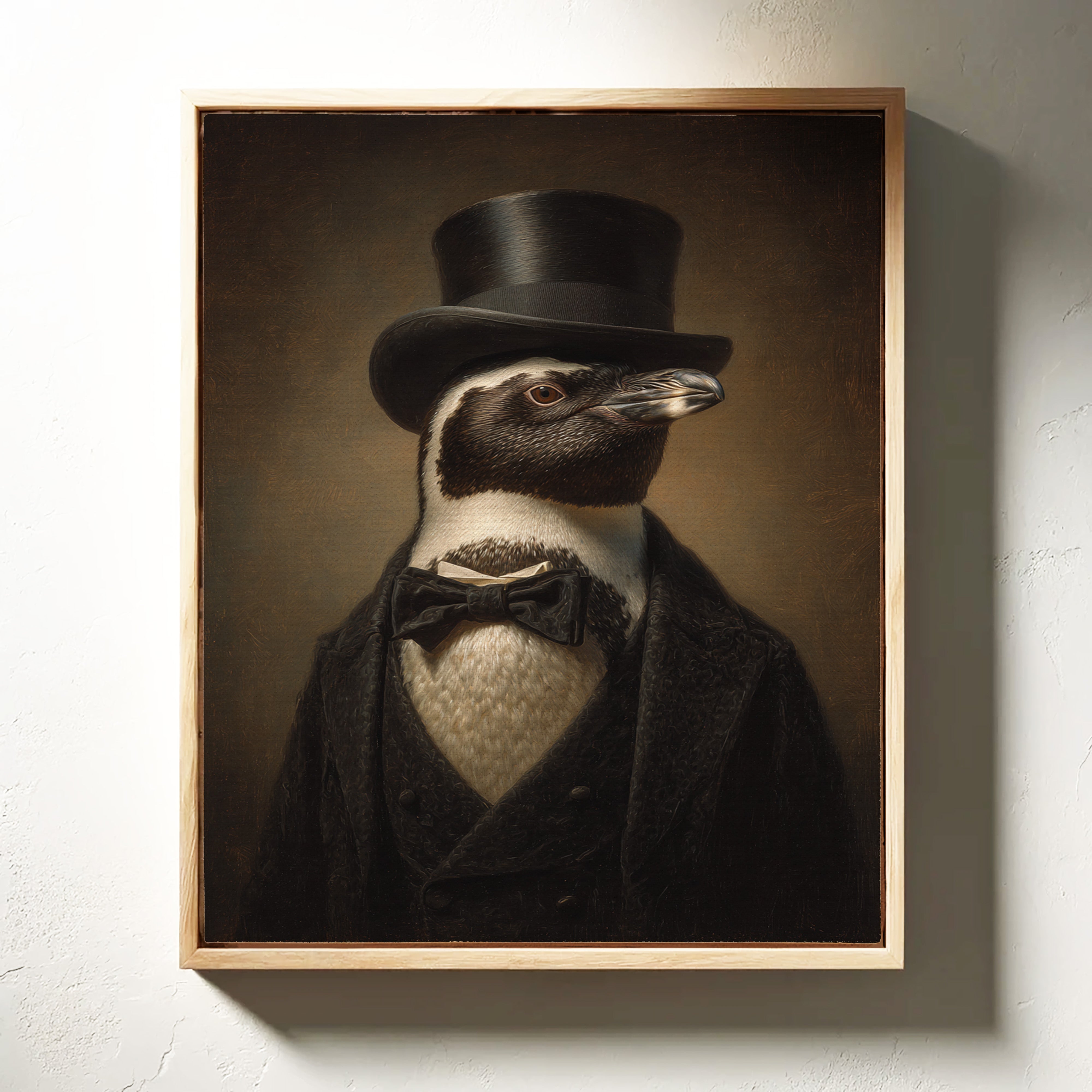 In a world where elegance meets the wild, a penguin dons its finest attire, radiating charm and sophistication. This piece captures the whimsical spirit of the Artisanal collection, where nature and artistry entwine. Clad in a sleek suit and top hat, the penguins gaze holds a story of adventure and refinement, a playful nod to the unexpected. Perfect for a study or a cozy reading nook, this piece invites conversation and delight.